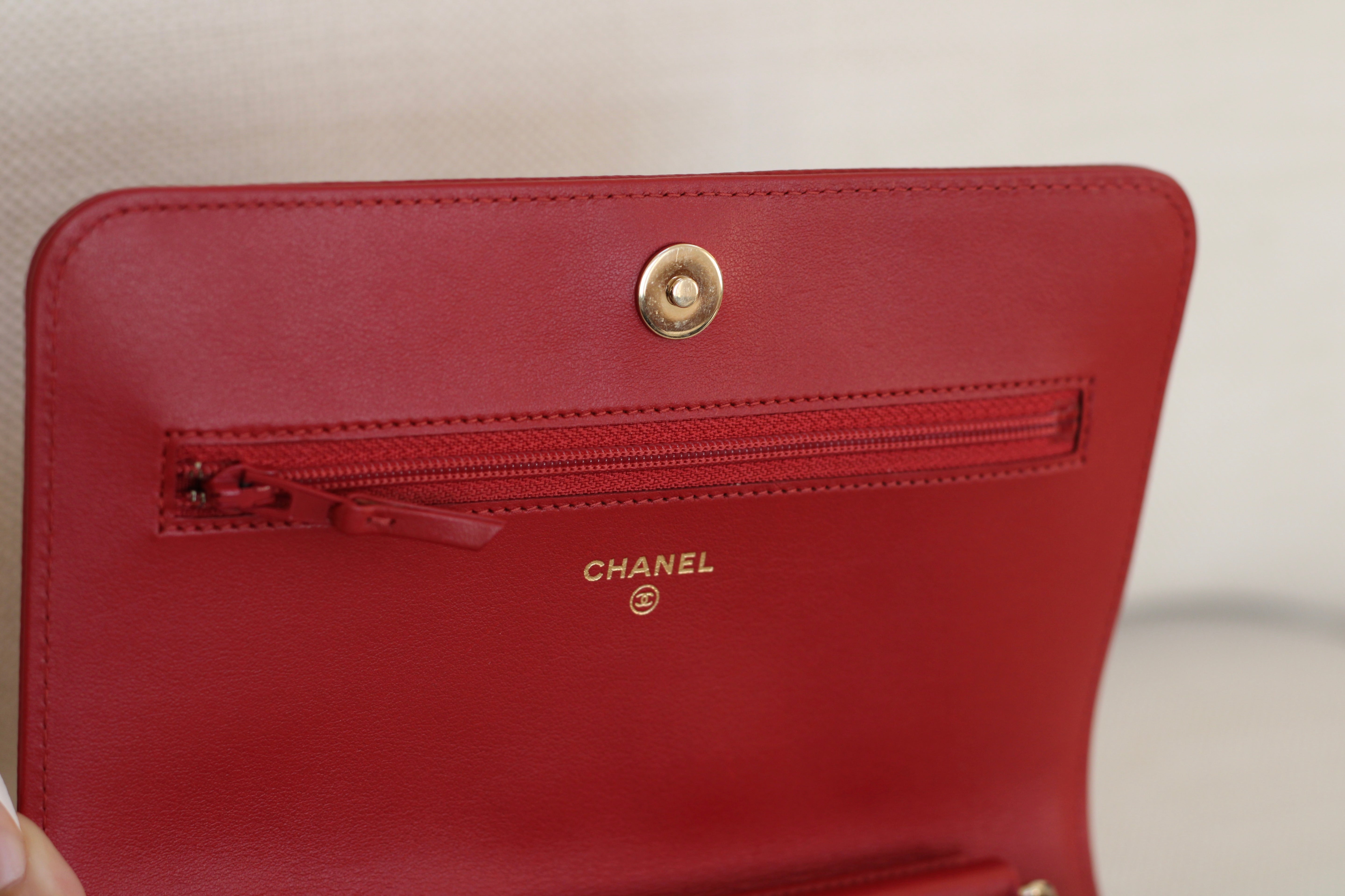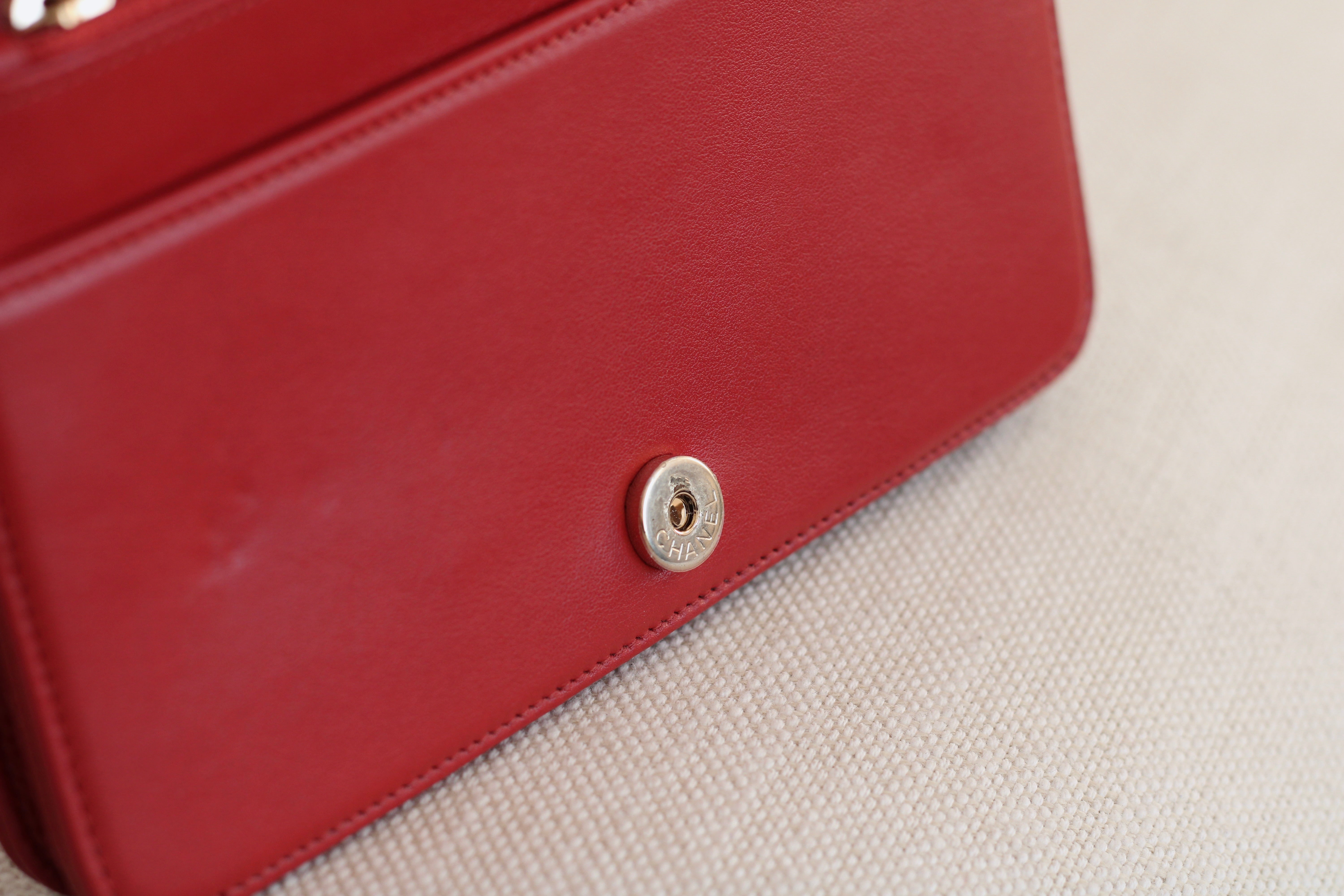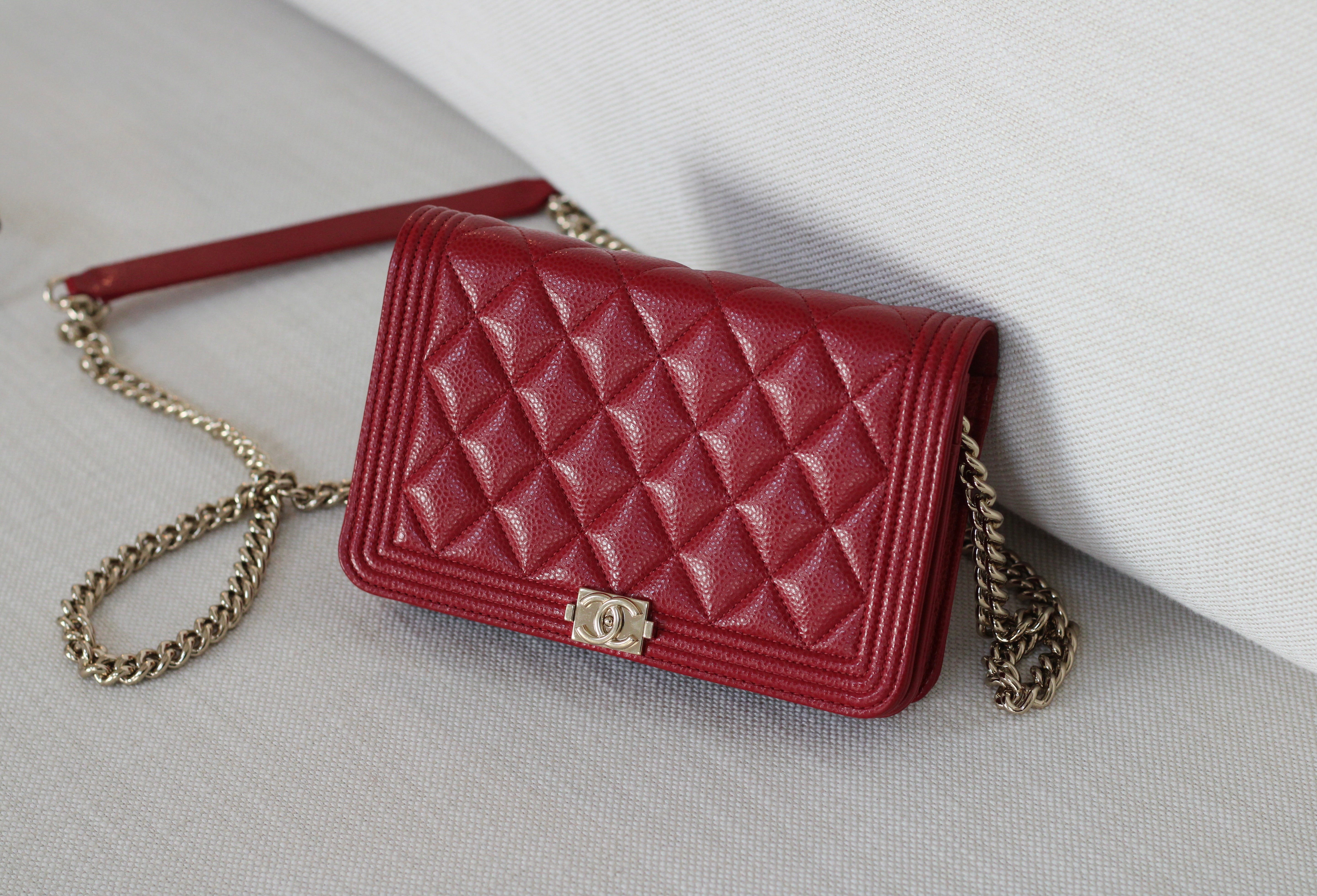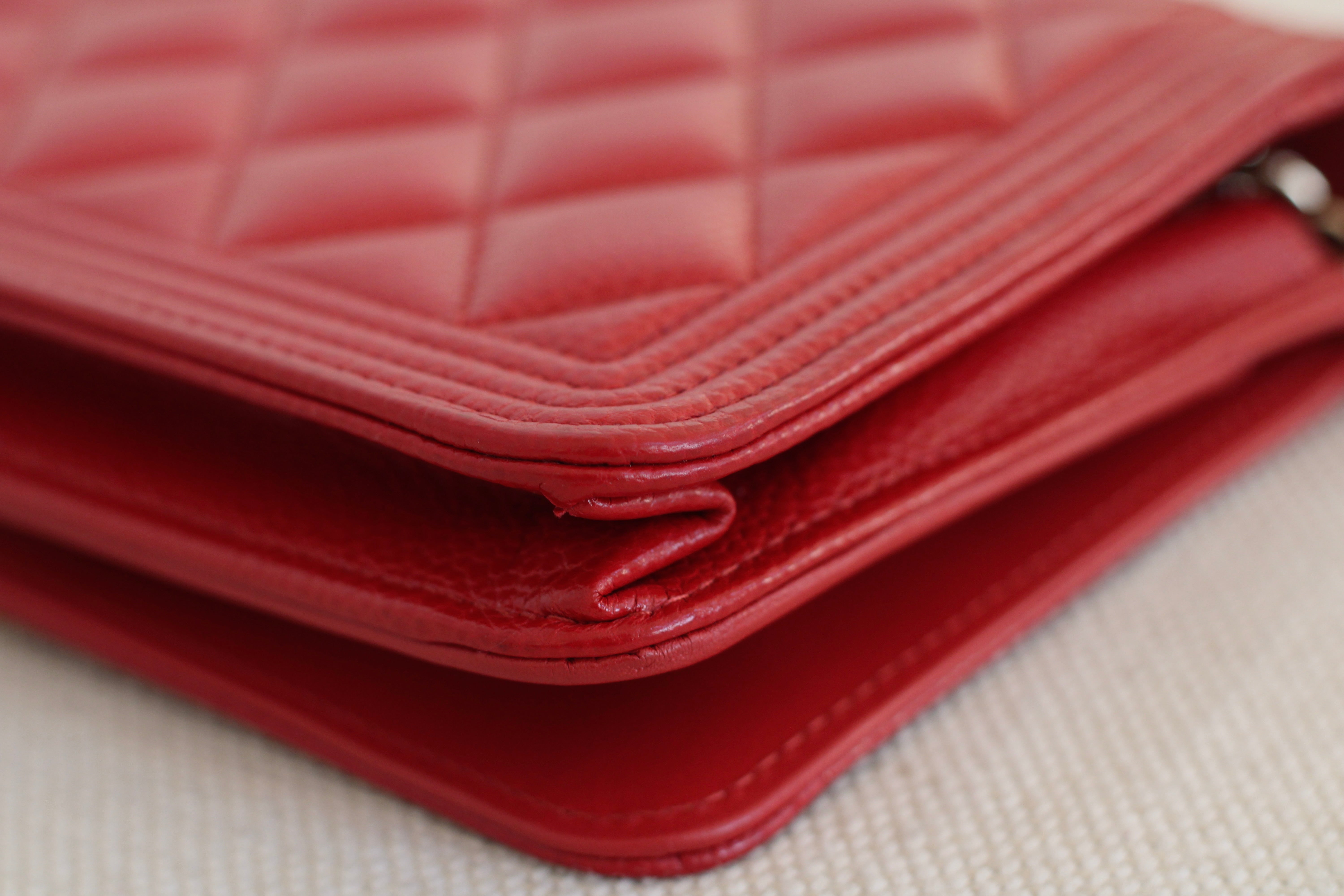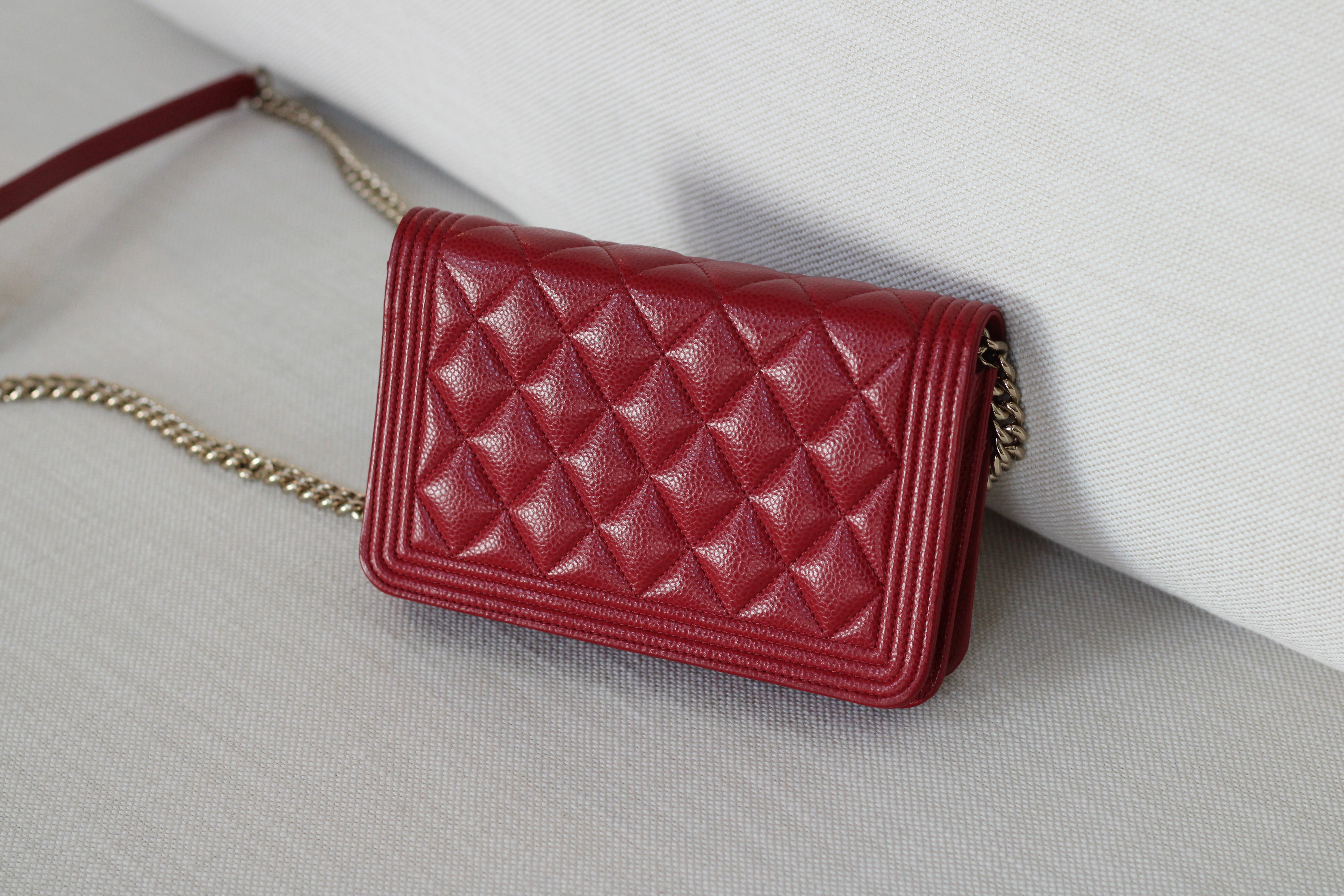 Chanel Red Caviar Boy Wallet on Chain with Light Gold Hardware