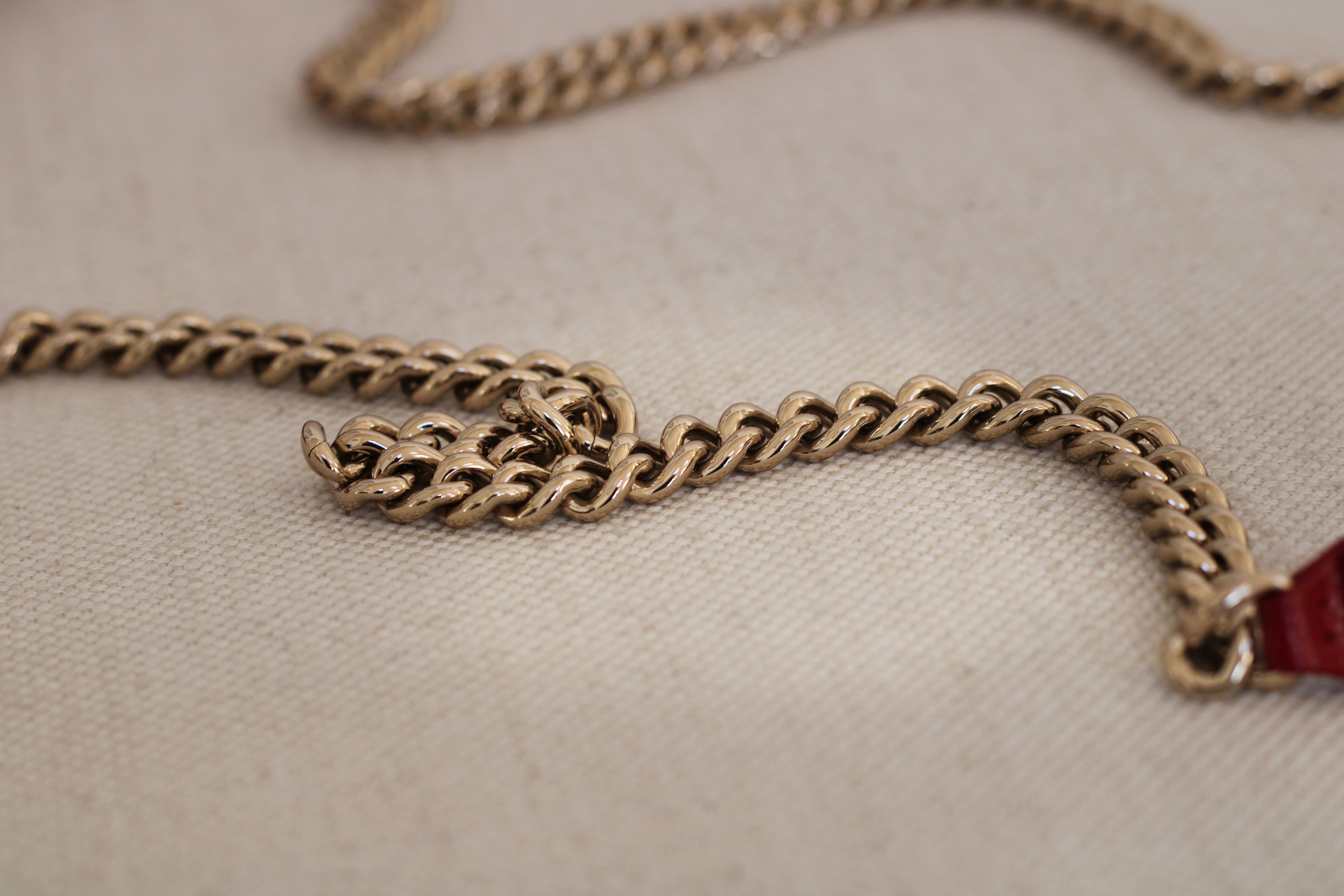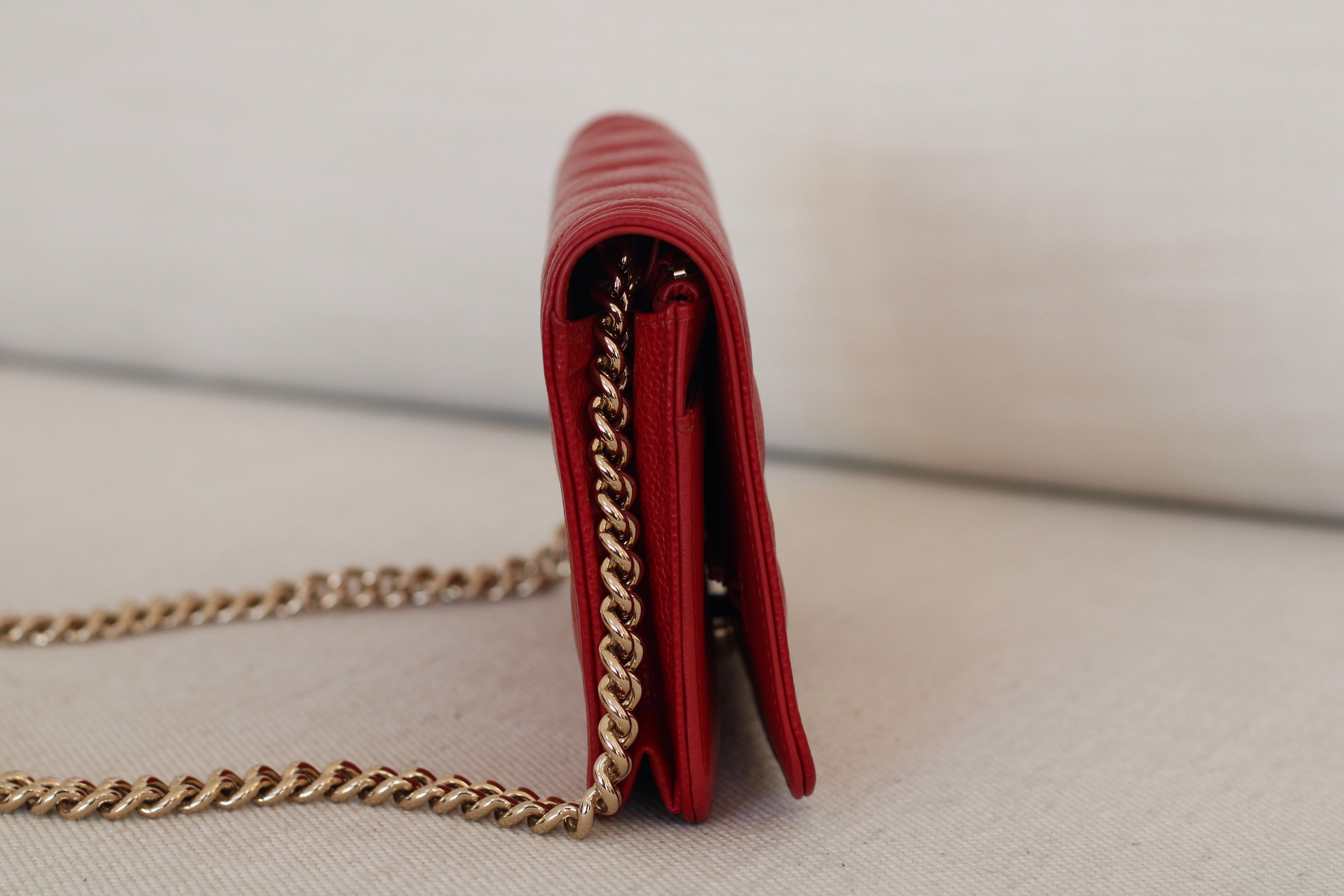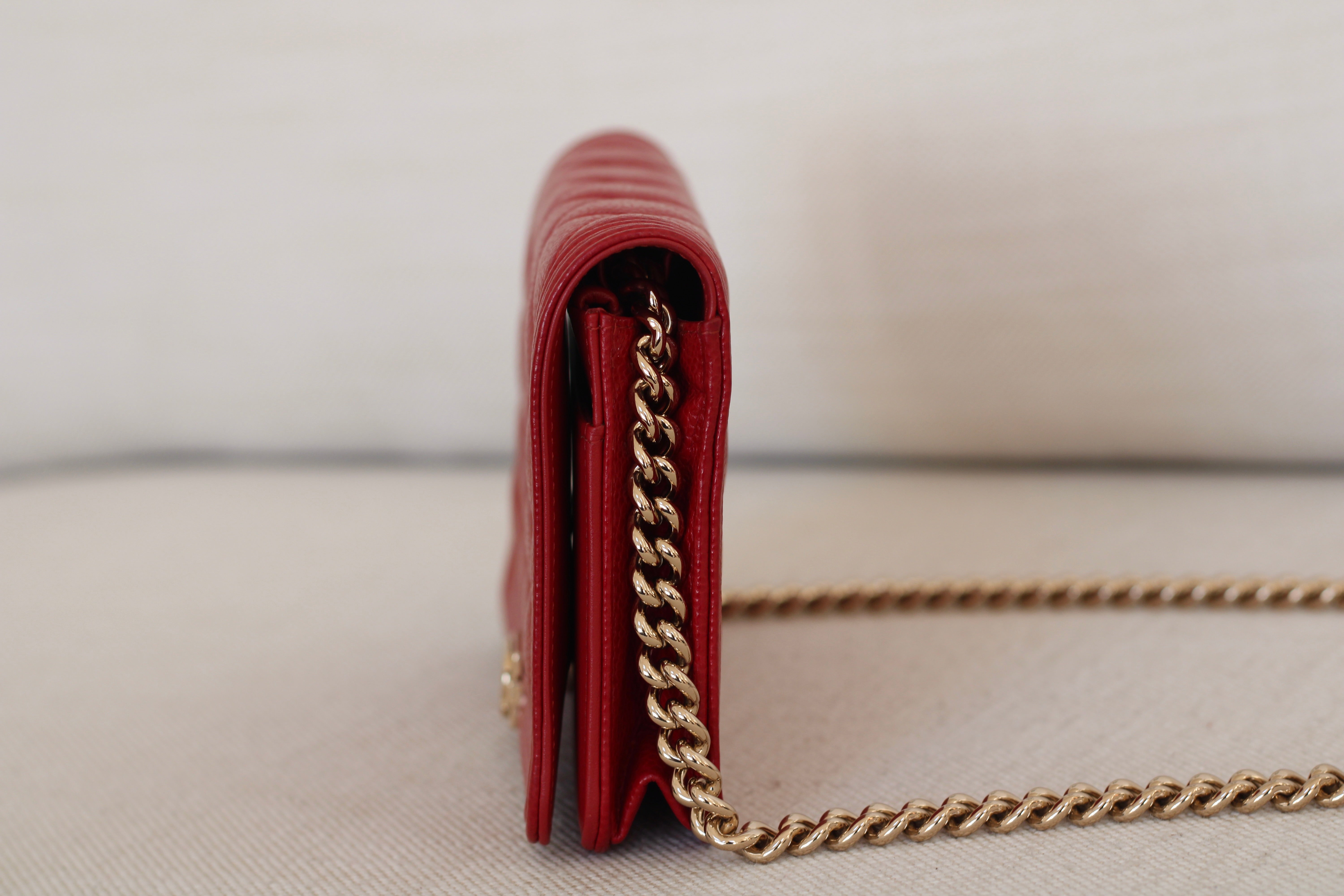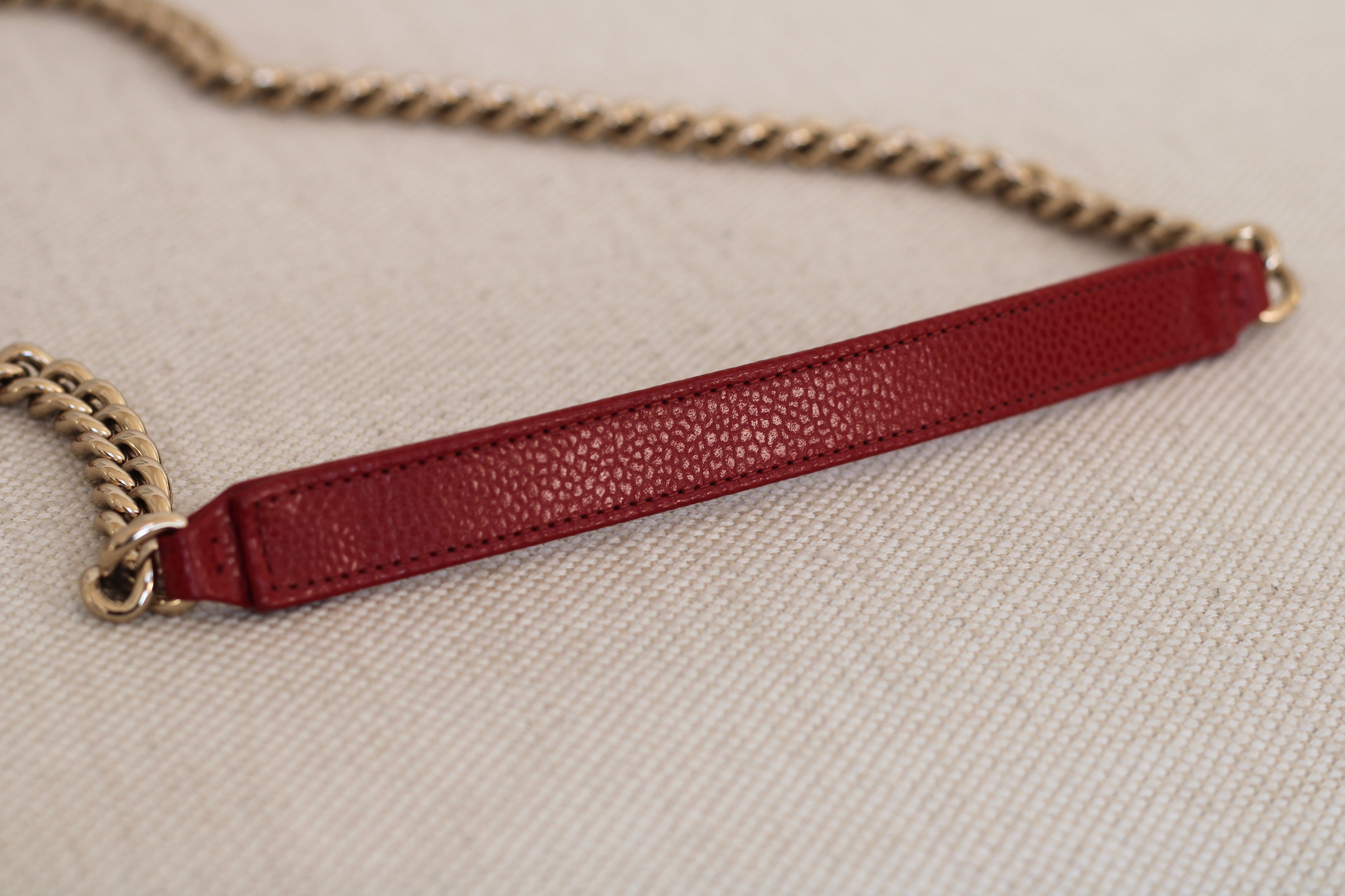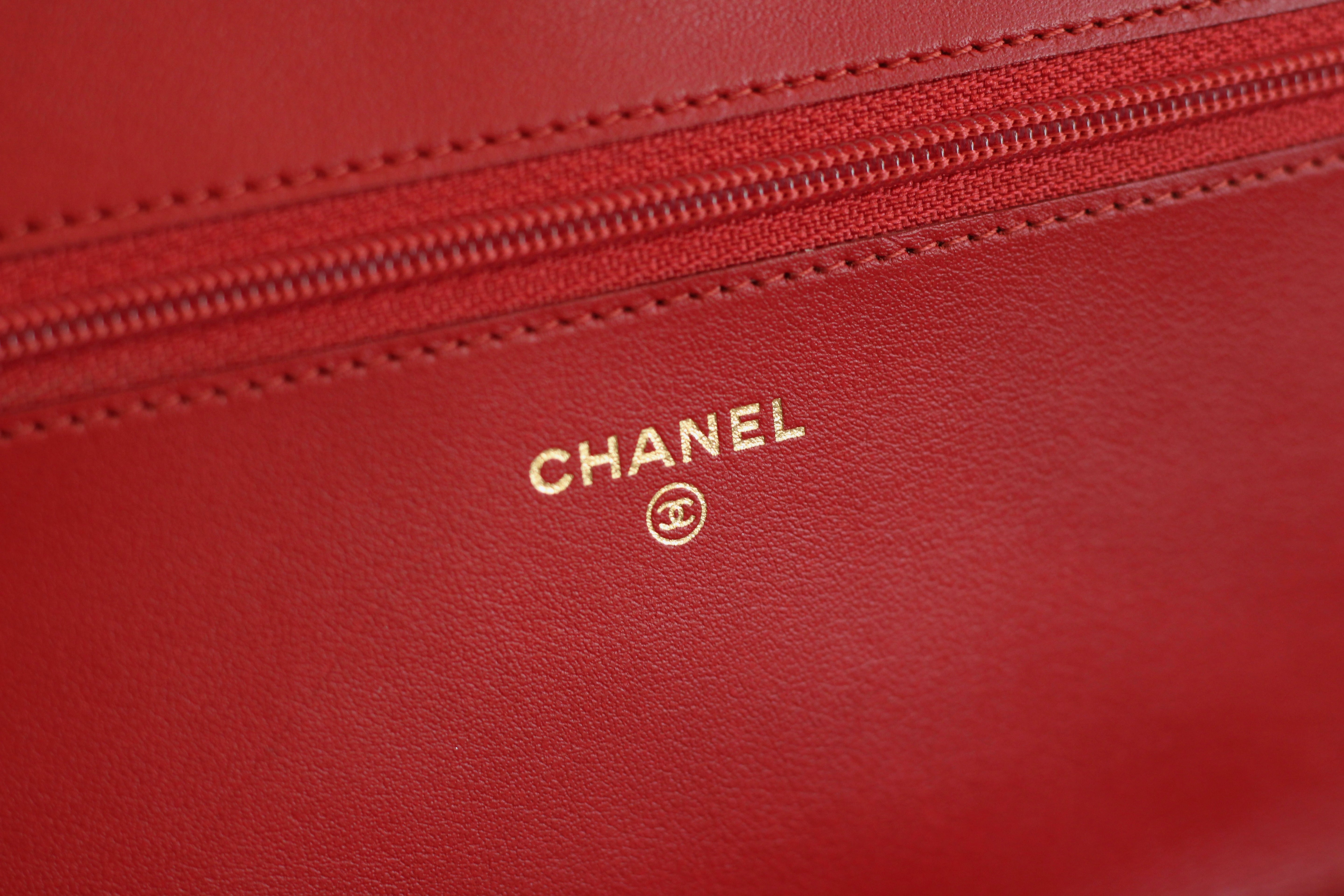 Chanel Red Caviar Boy Wallet on Chain with Light Gold Hardware