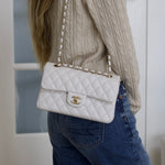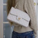 Chanel White Caviar Small Classic Flap with Light Gold Hardware