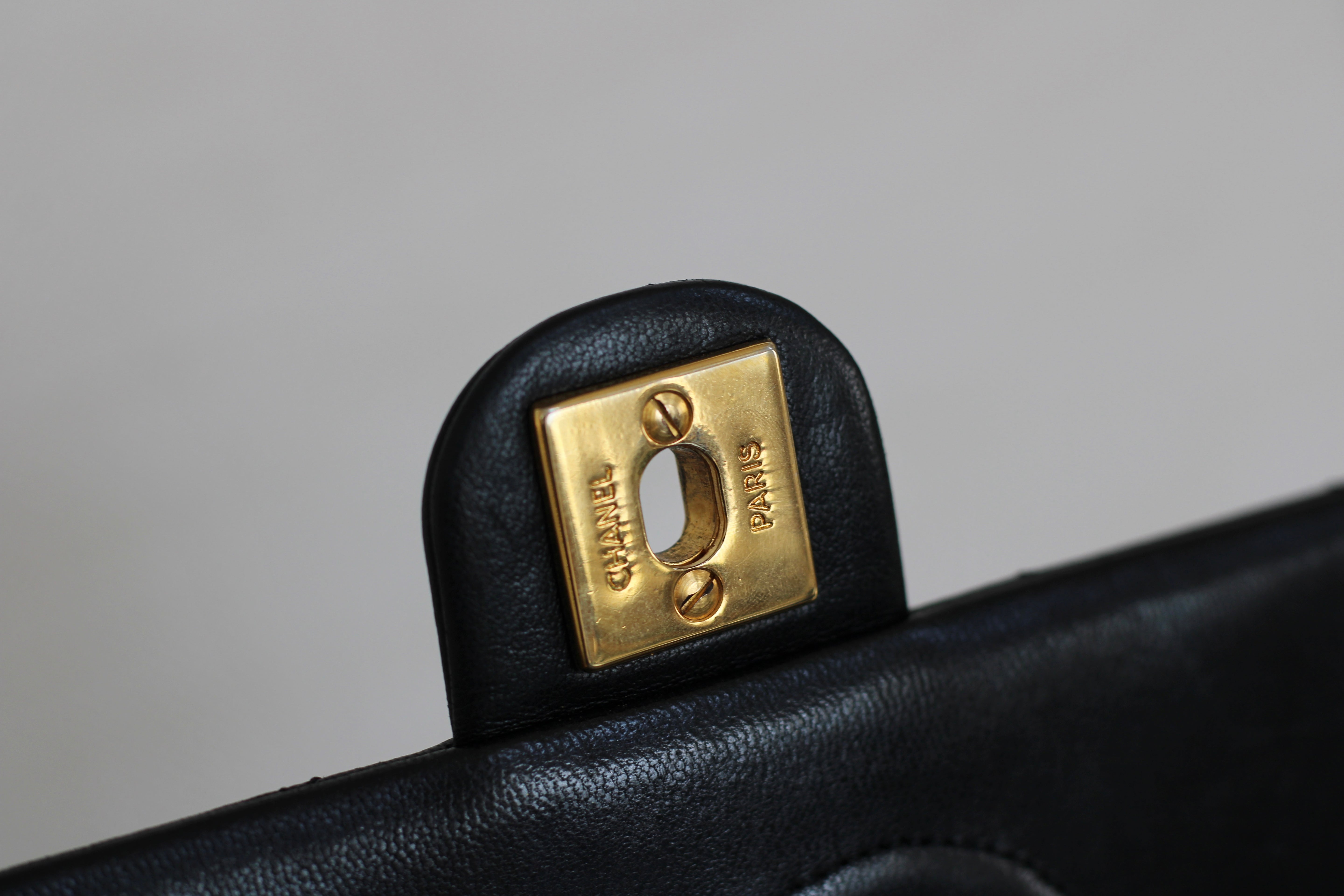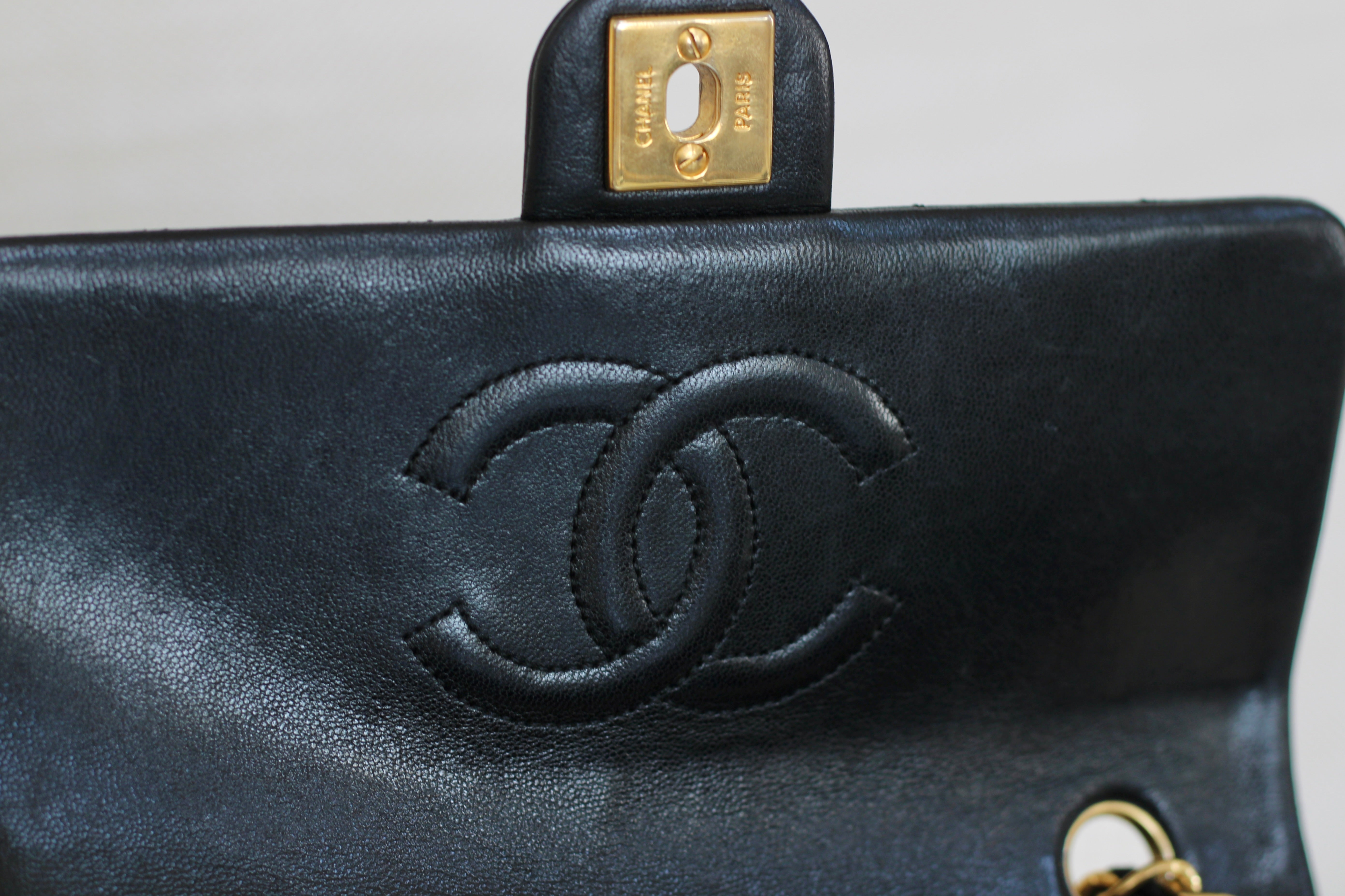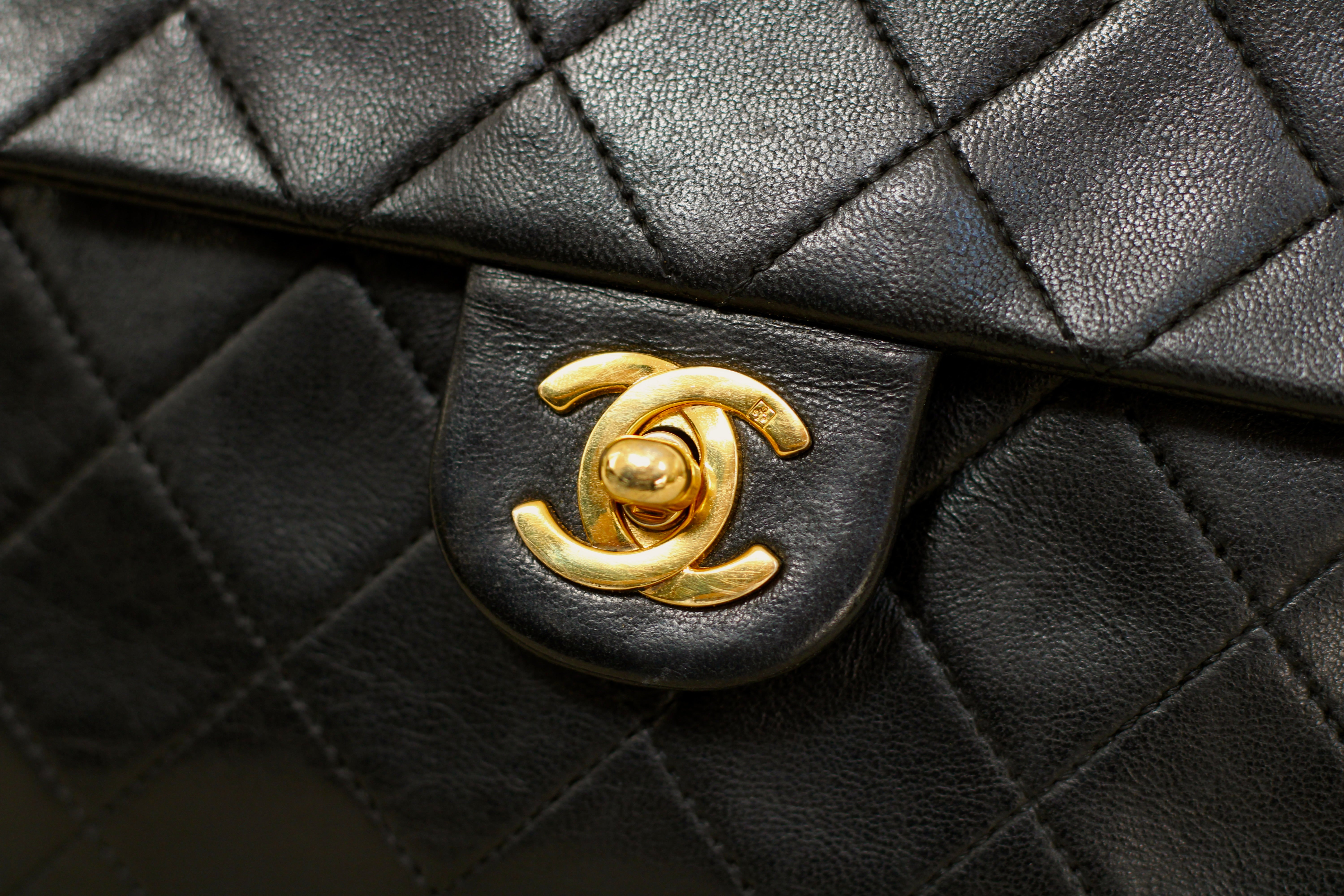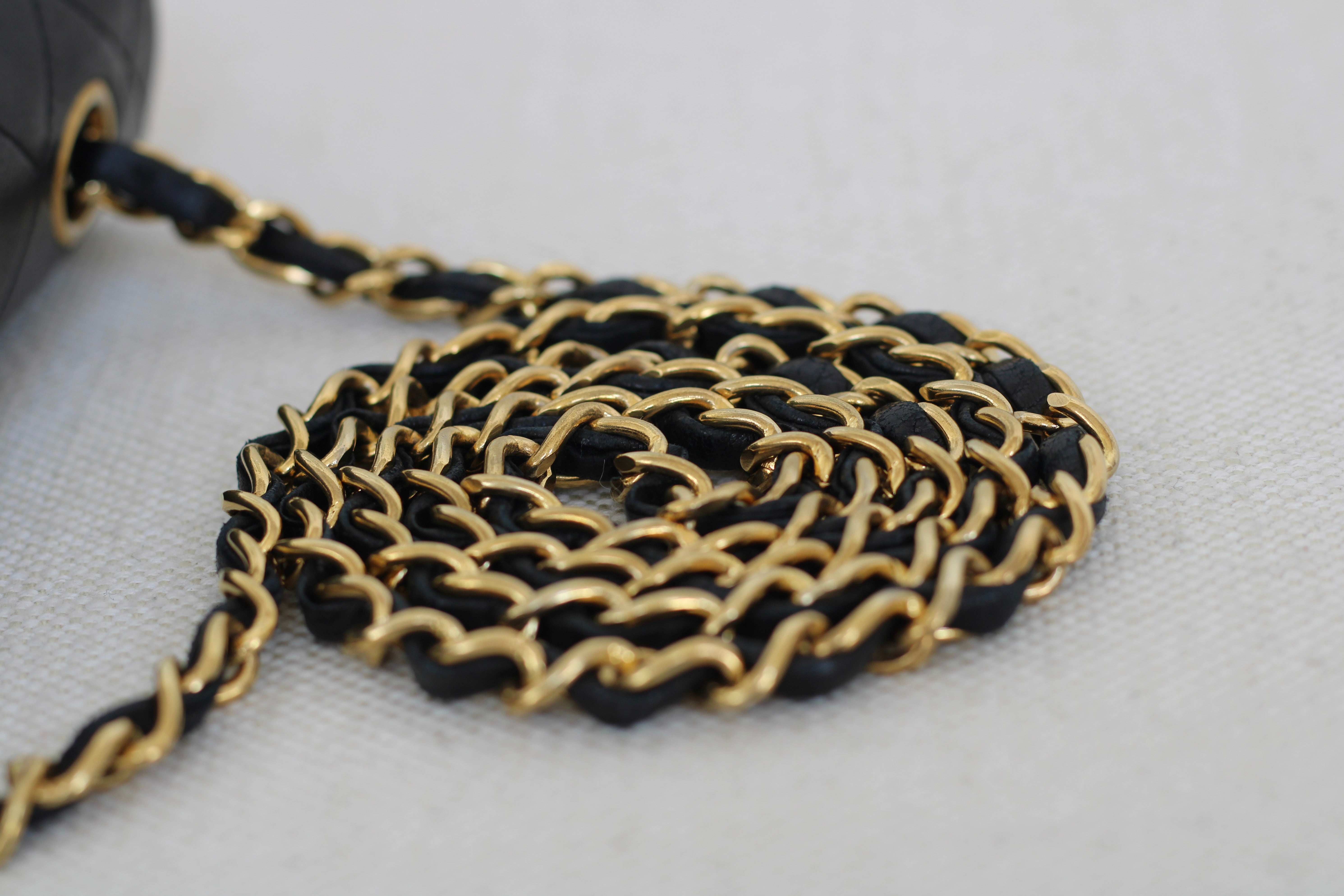 Great/Excellent Vintage Condition. Buttery lambskin leather complimented by a stunning sheen. Some light wear on corners. Some lightening on chains. Gorgeous 24k gold plated hardware with light hairline scratches.