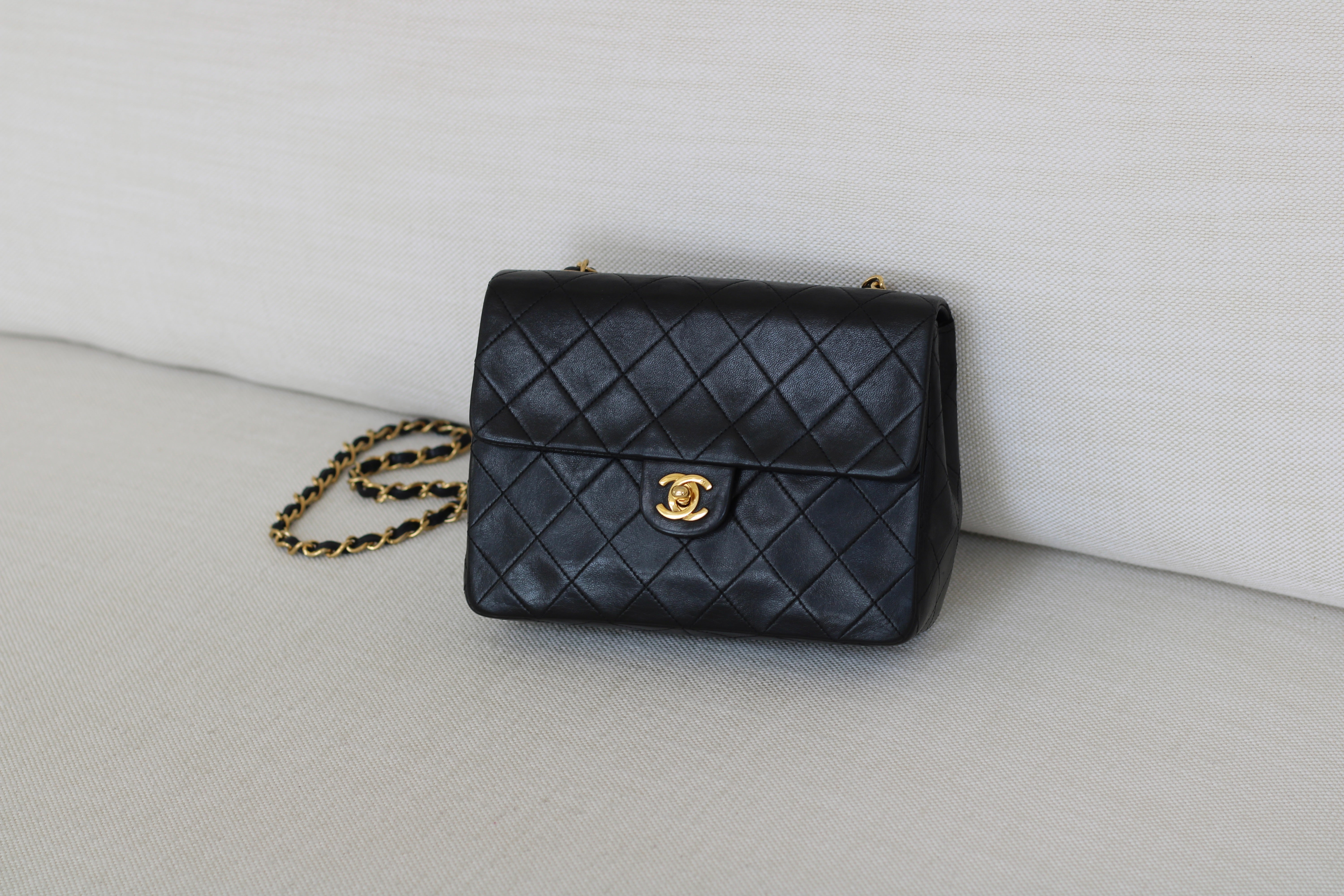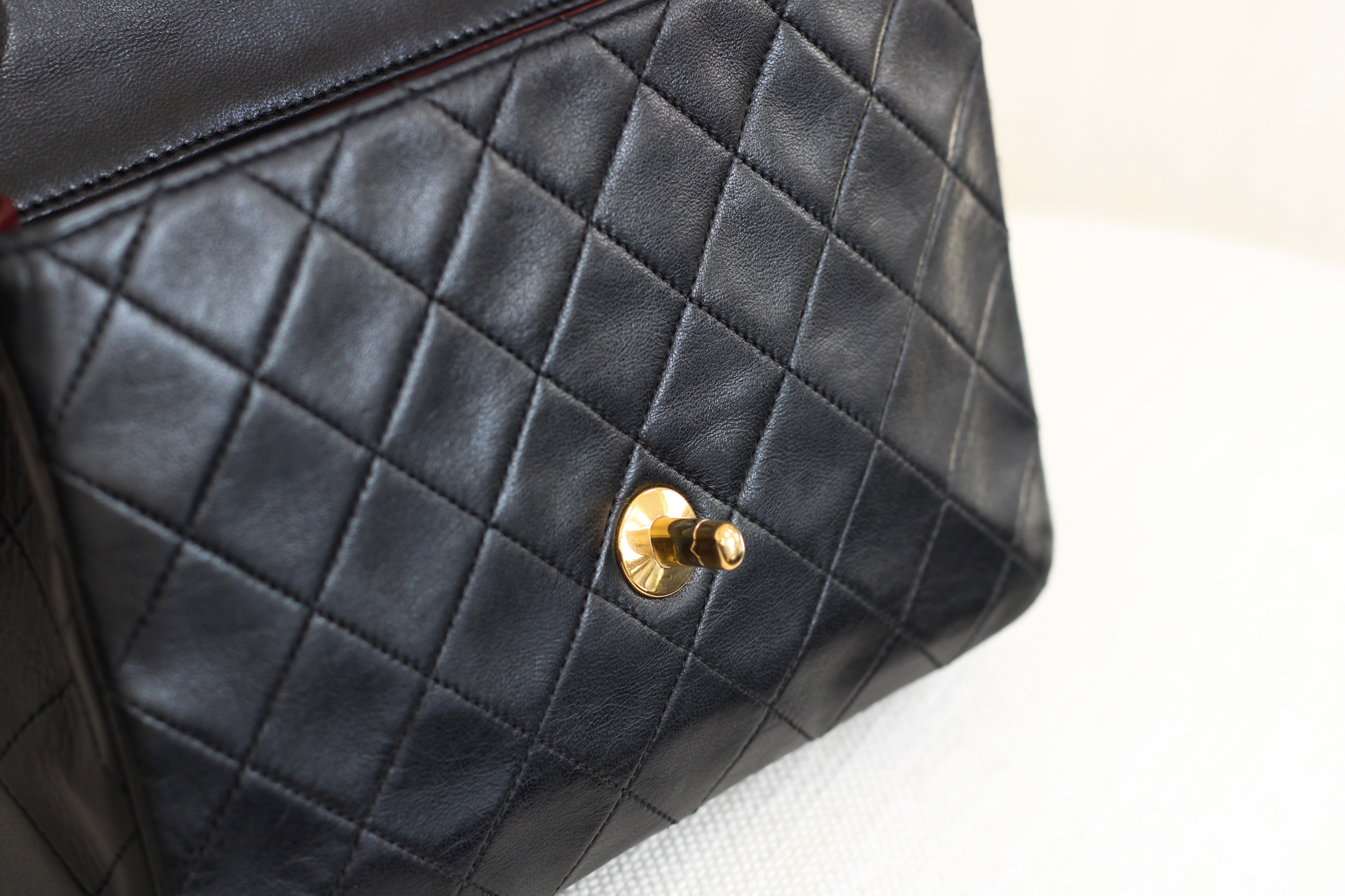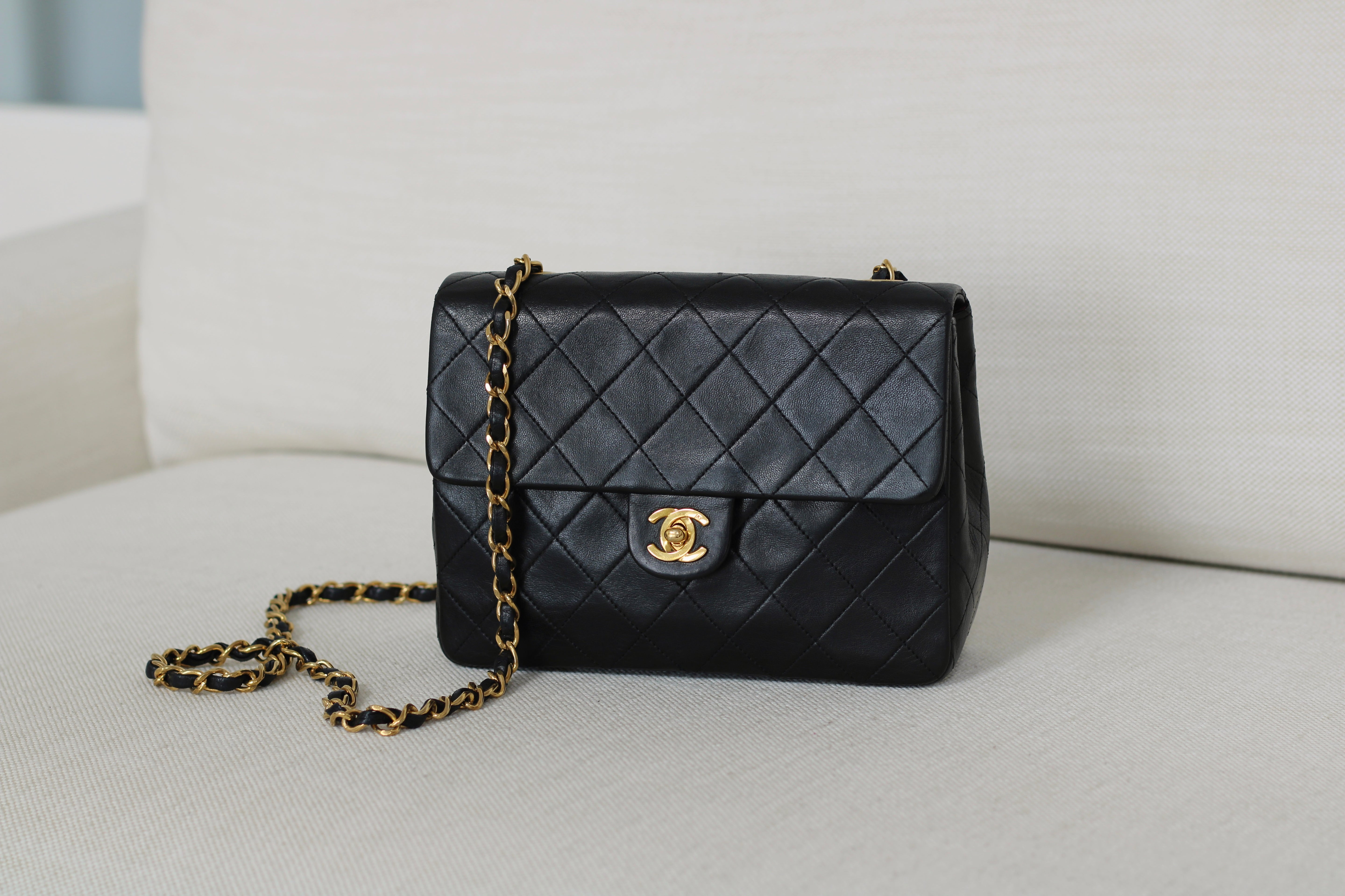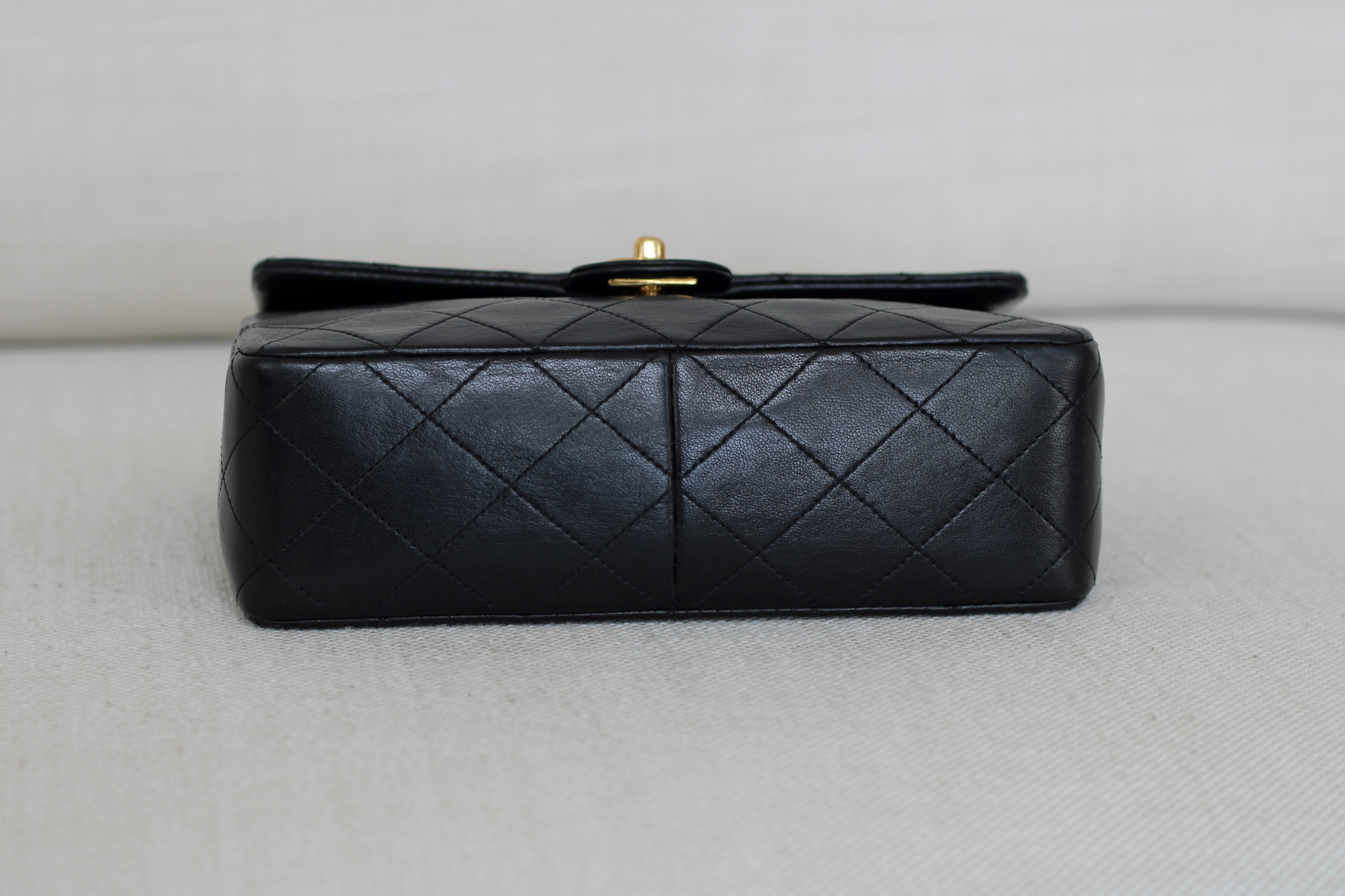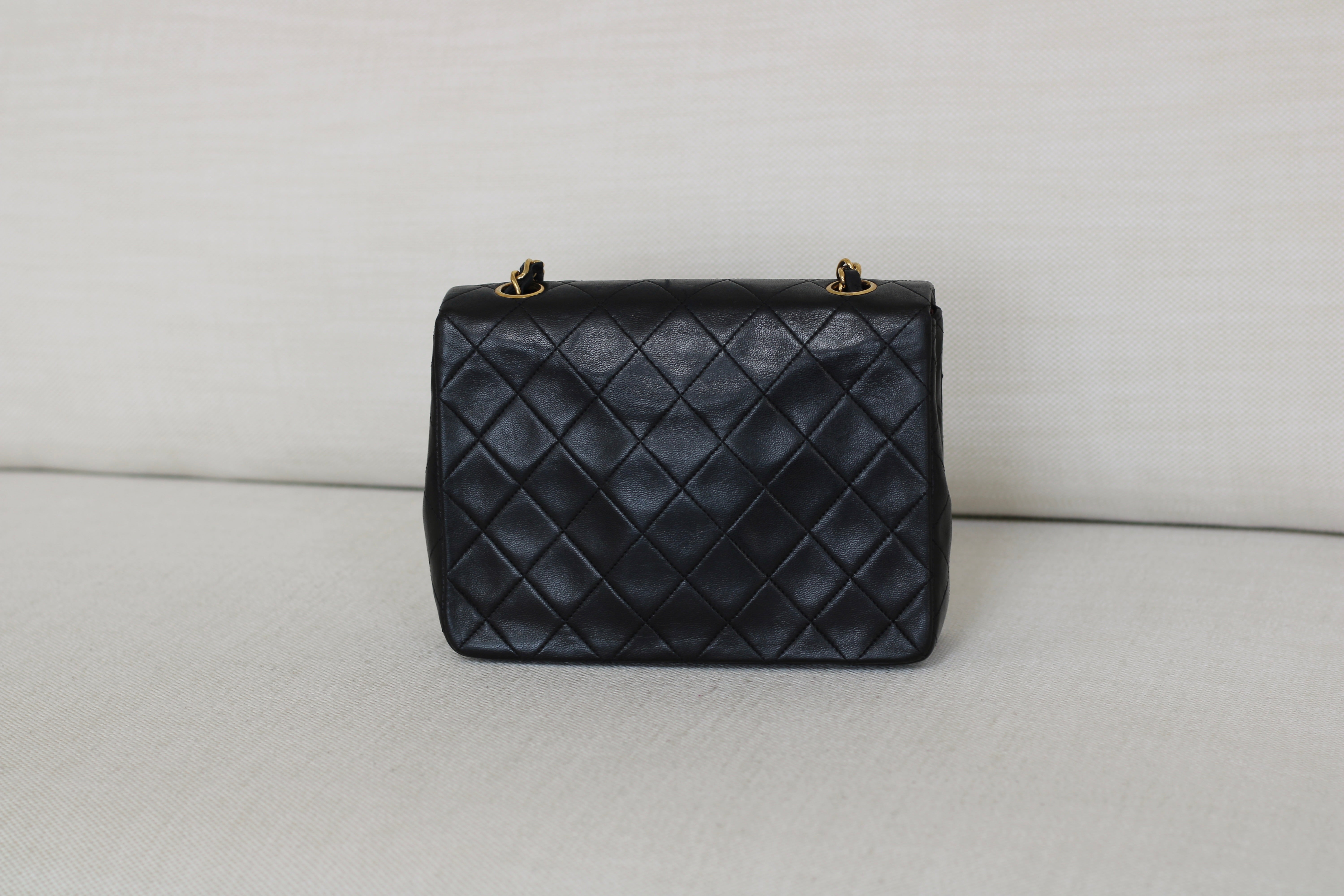Vintage Chanel Black Lambskin 20cm Square with 24k Gold Hardware