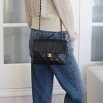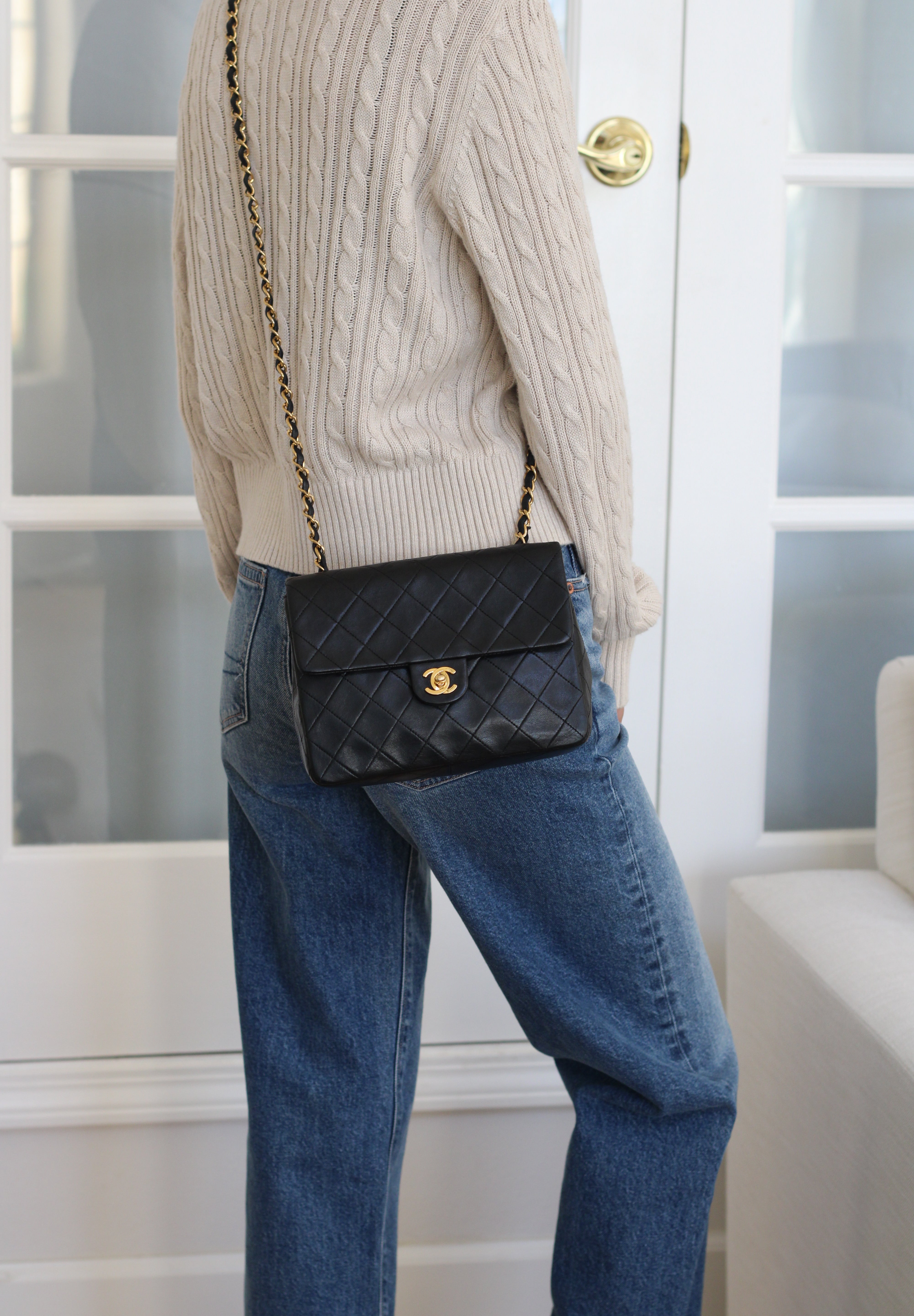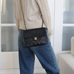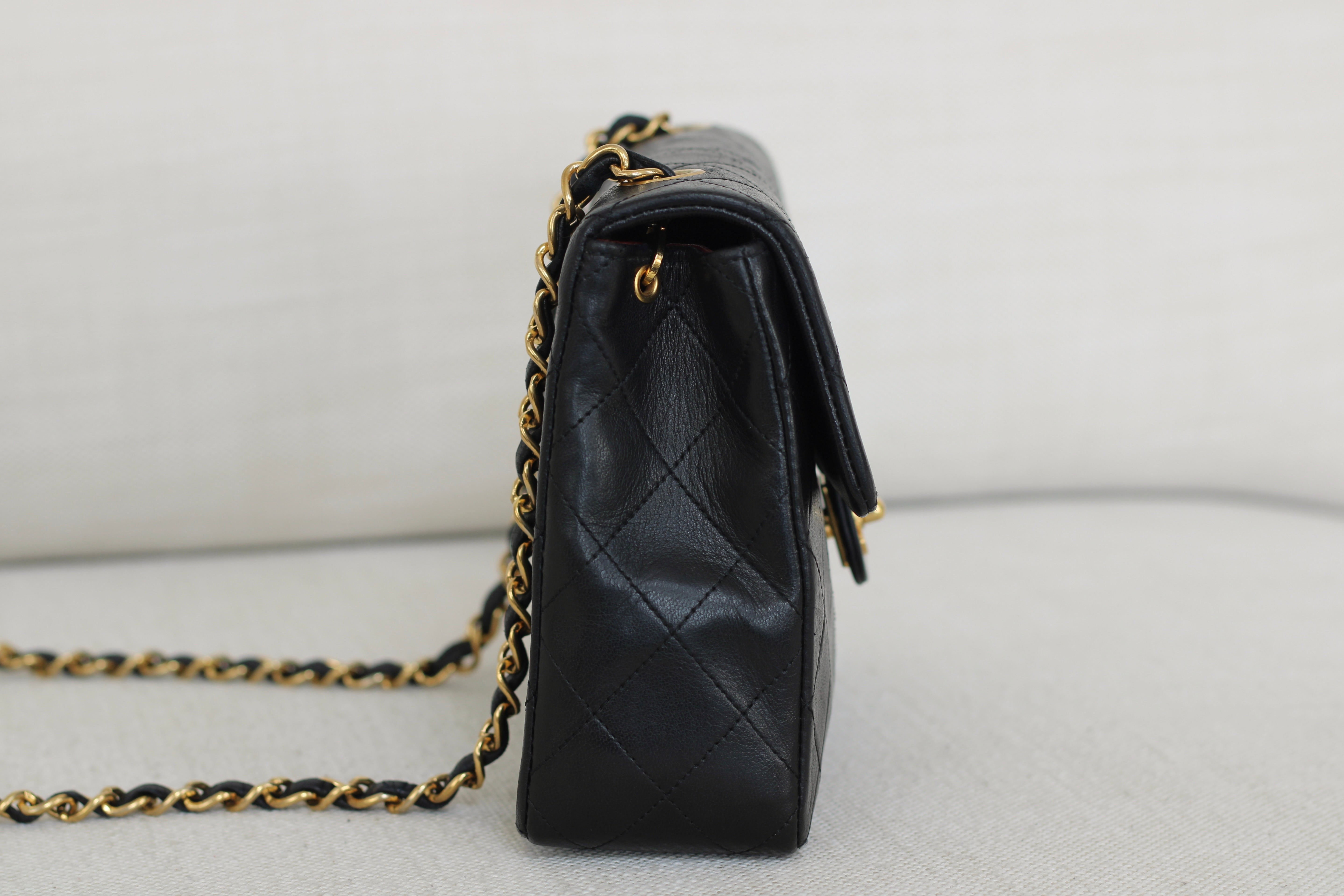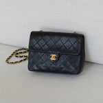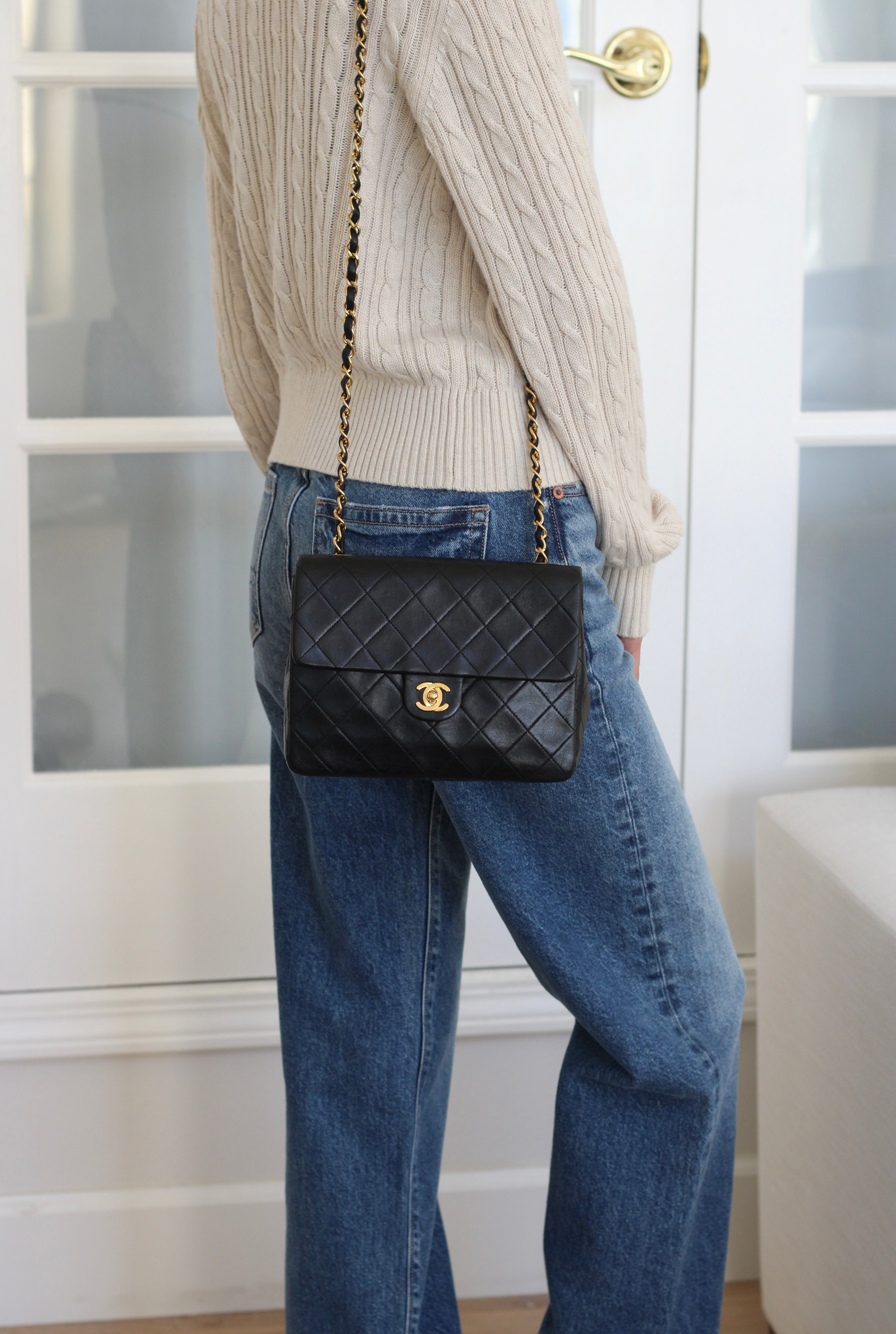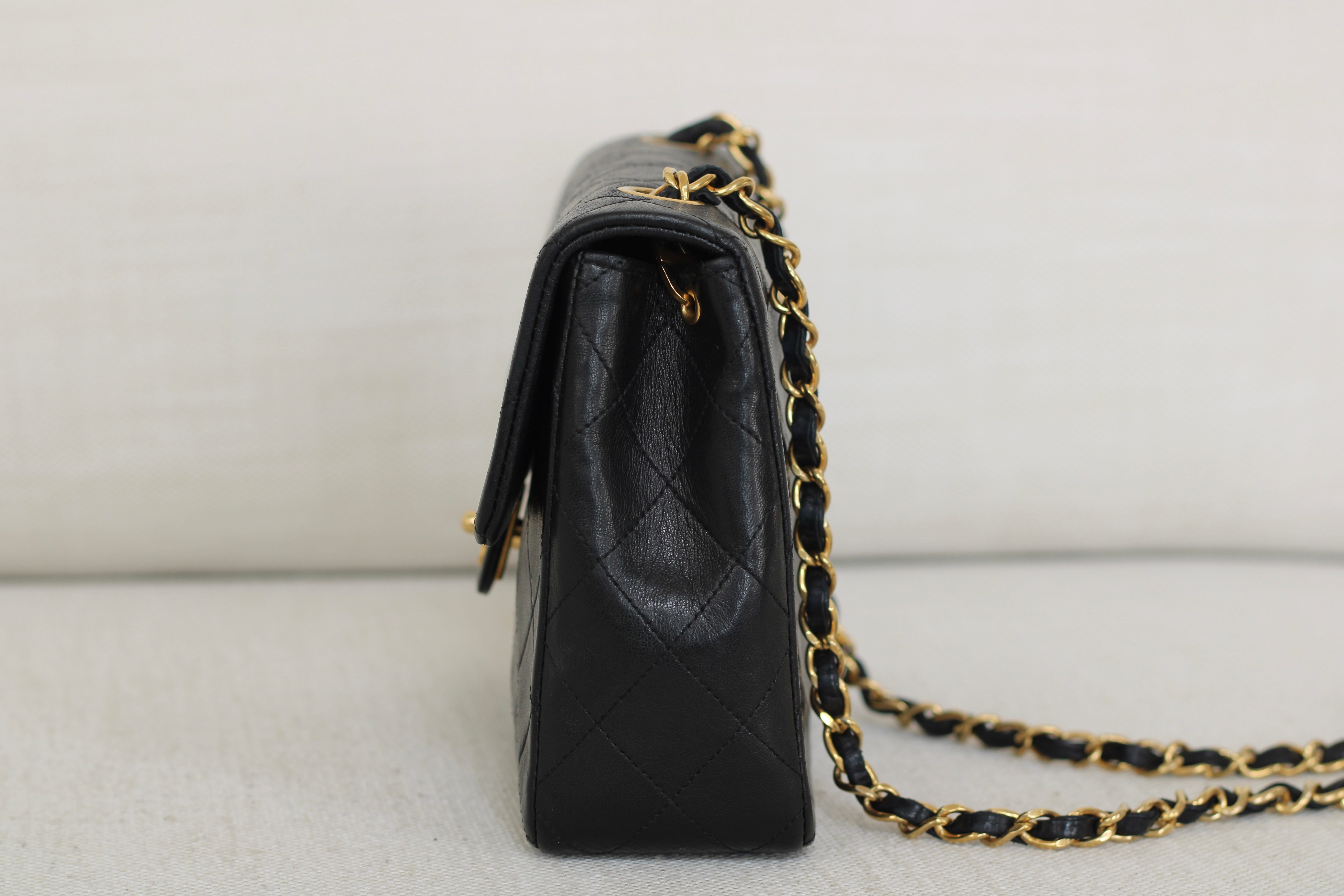Vintage Chanel Black Lambskin 20cm Square with 24k Gold Hardware