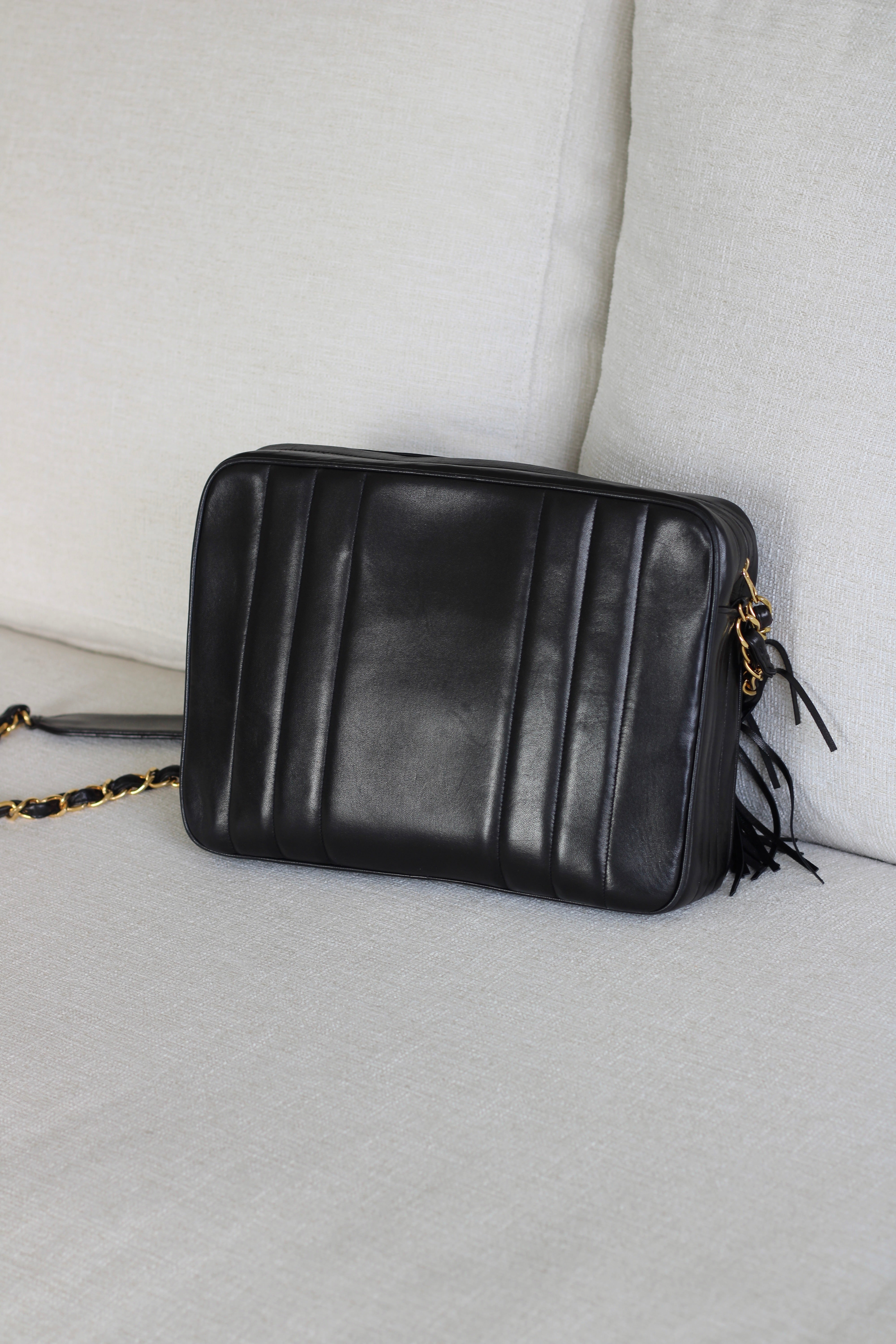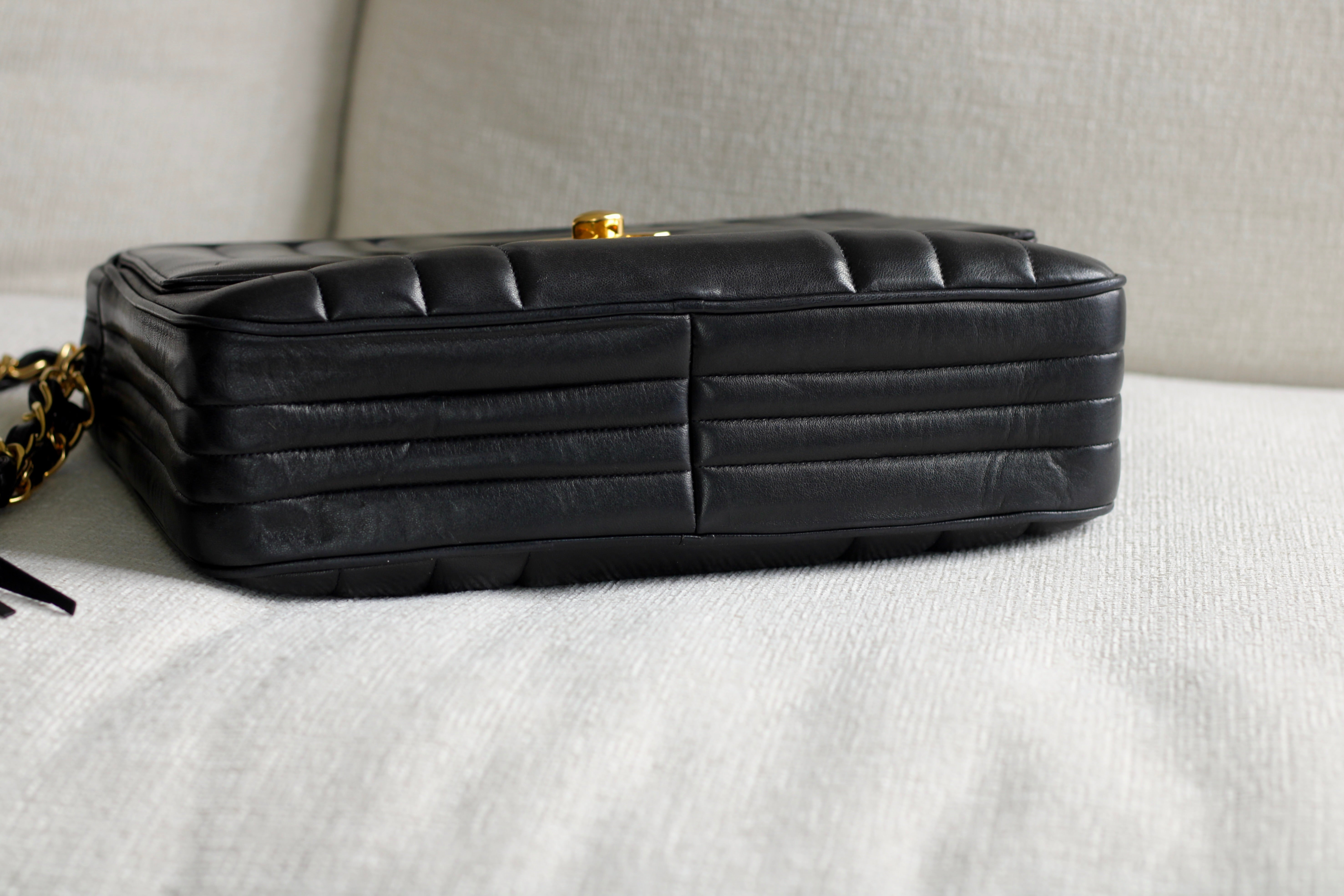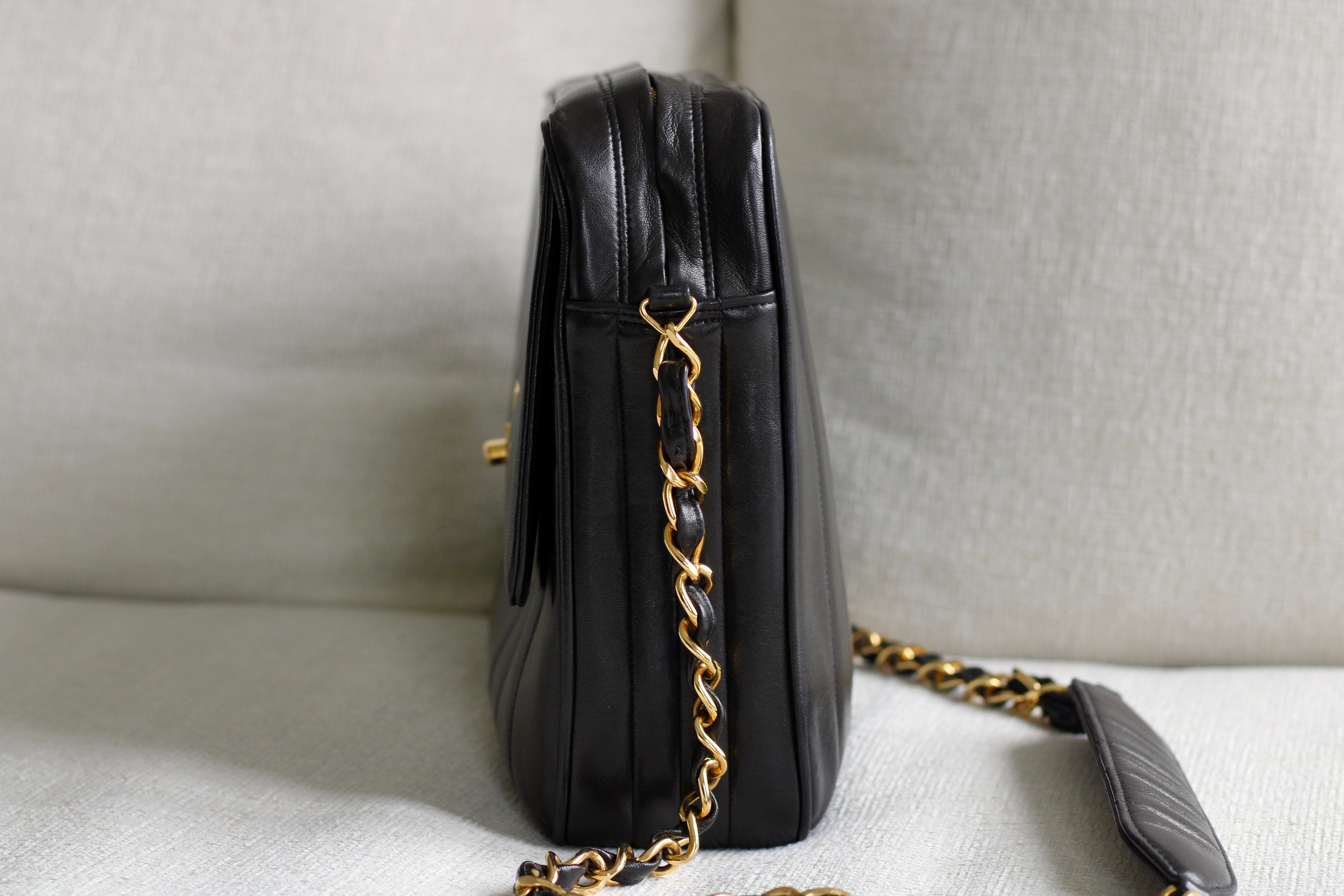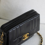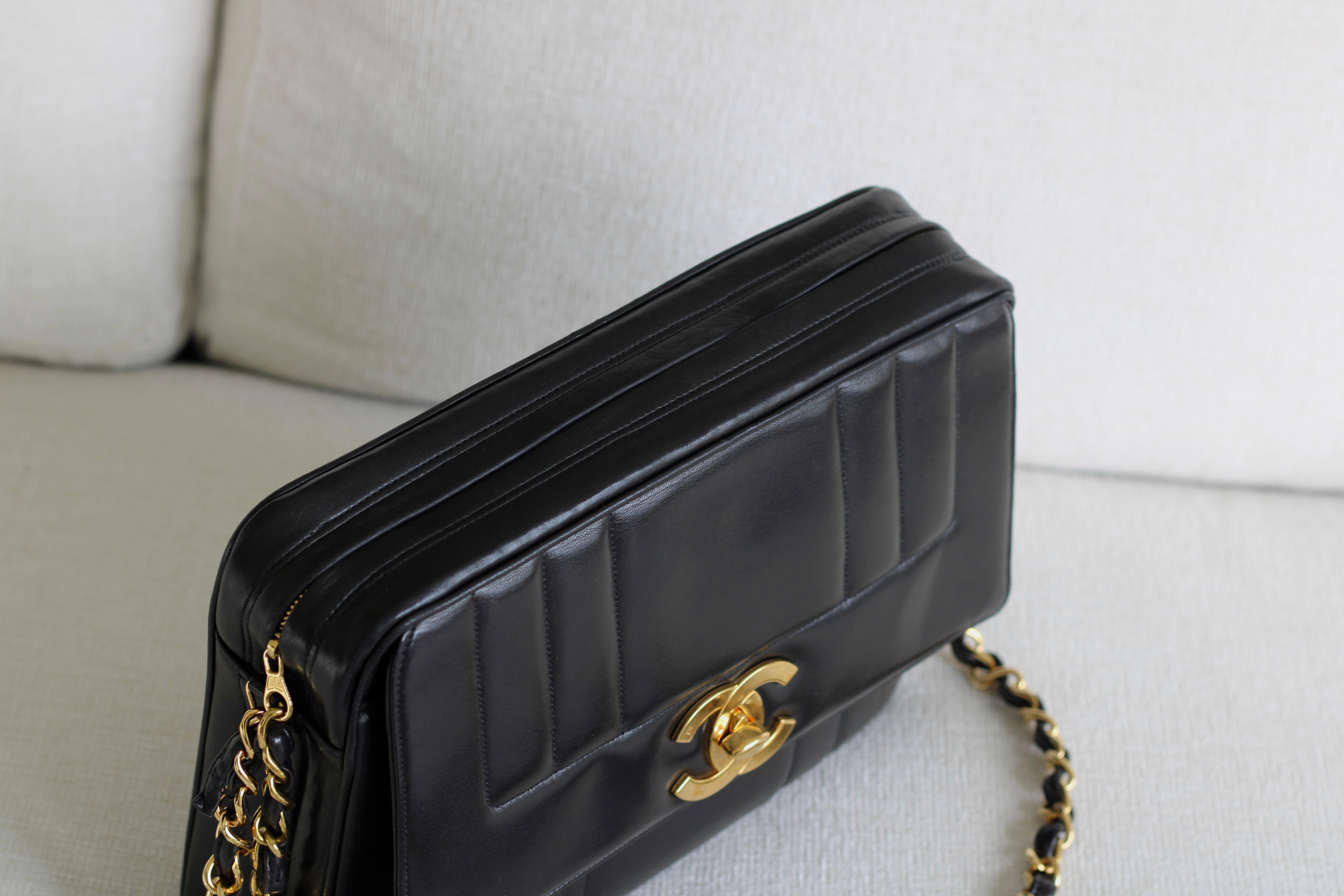Vintage Chanel Black Lambskin Vertical Camera Bag with 24k Gold Hardware