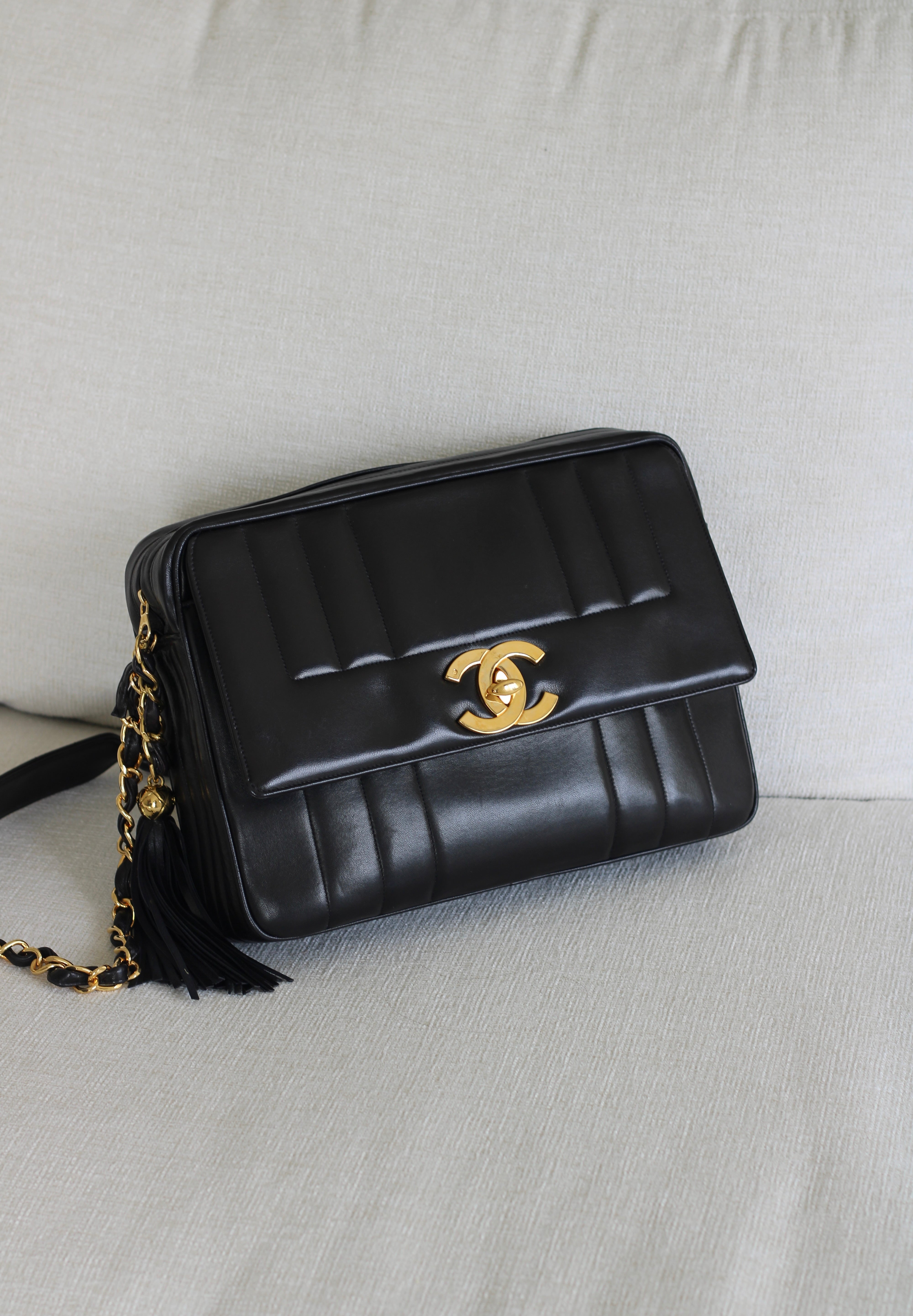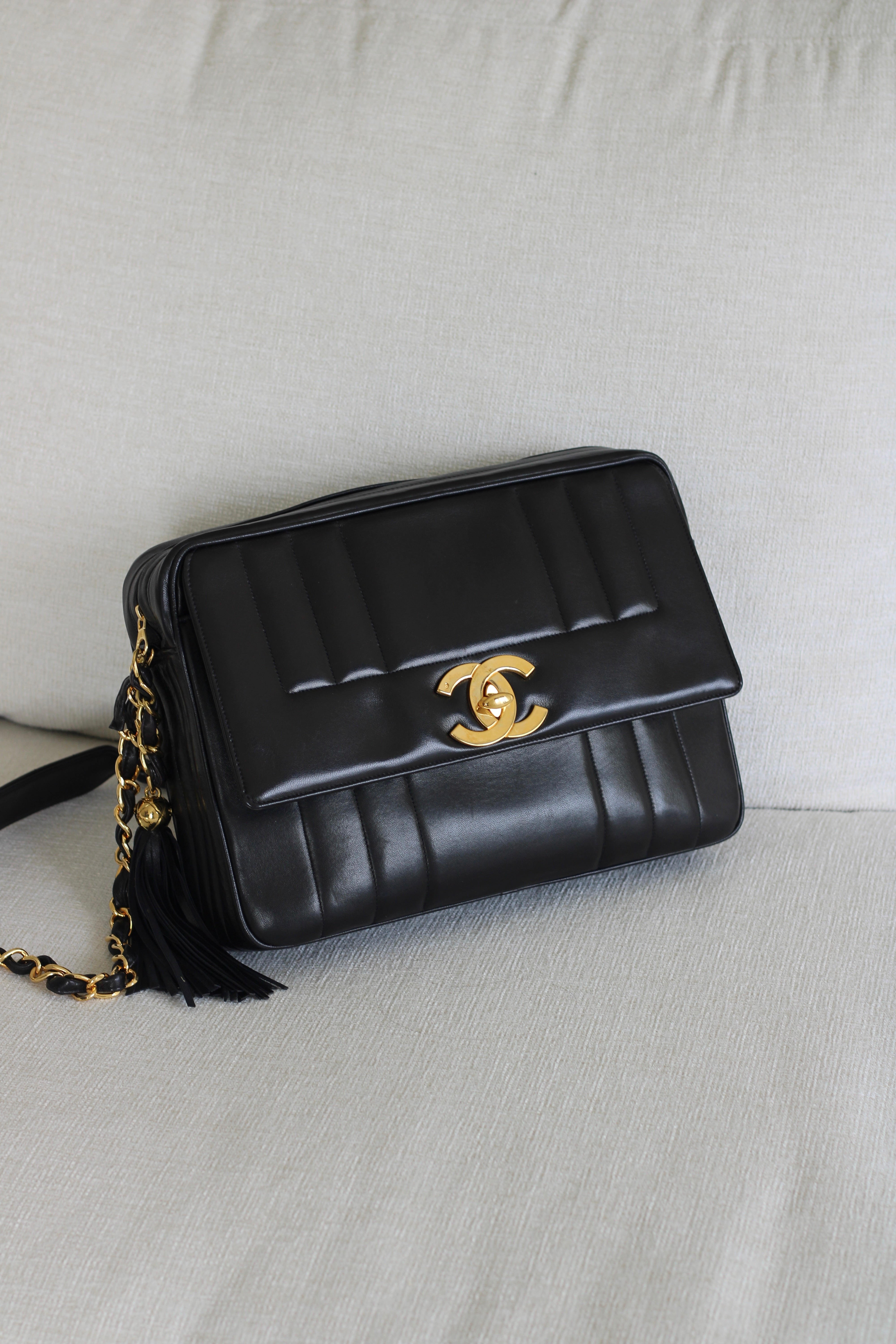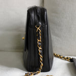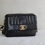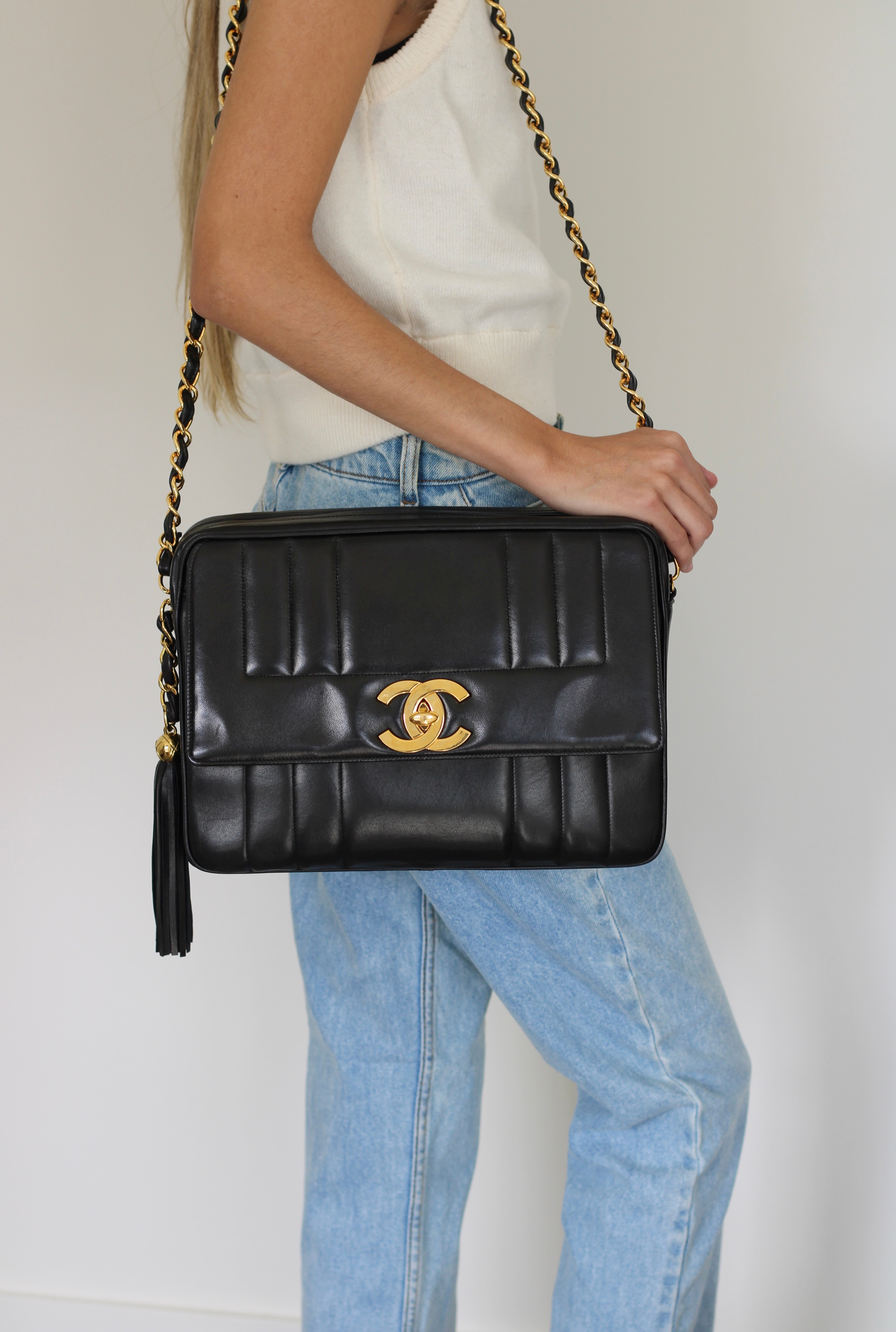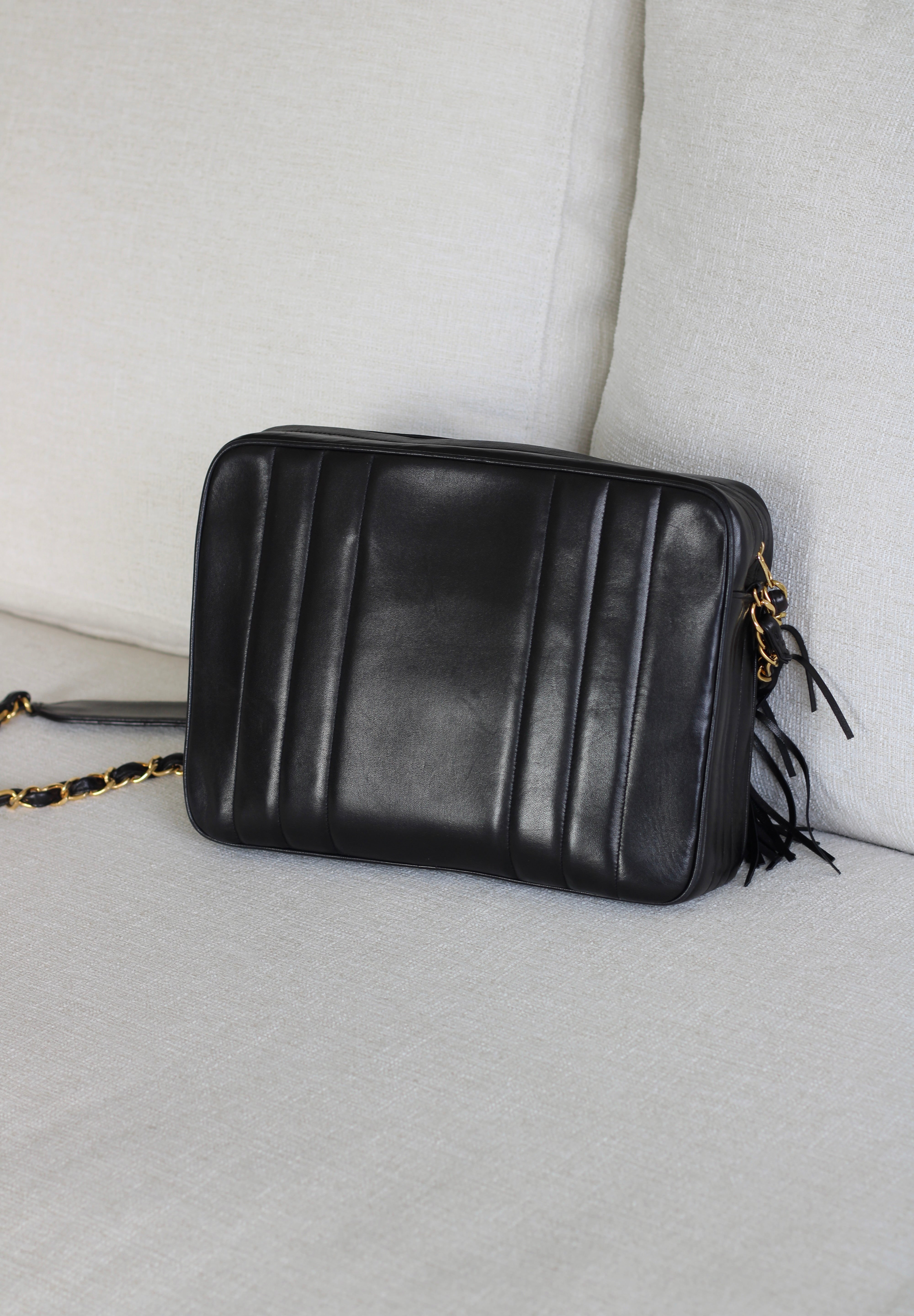 Vintage Chanel Black Lambskin Vertical Camera Bag with 24k Gold Hardware
