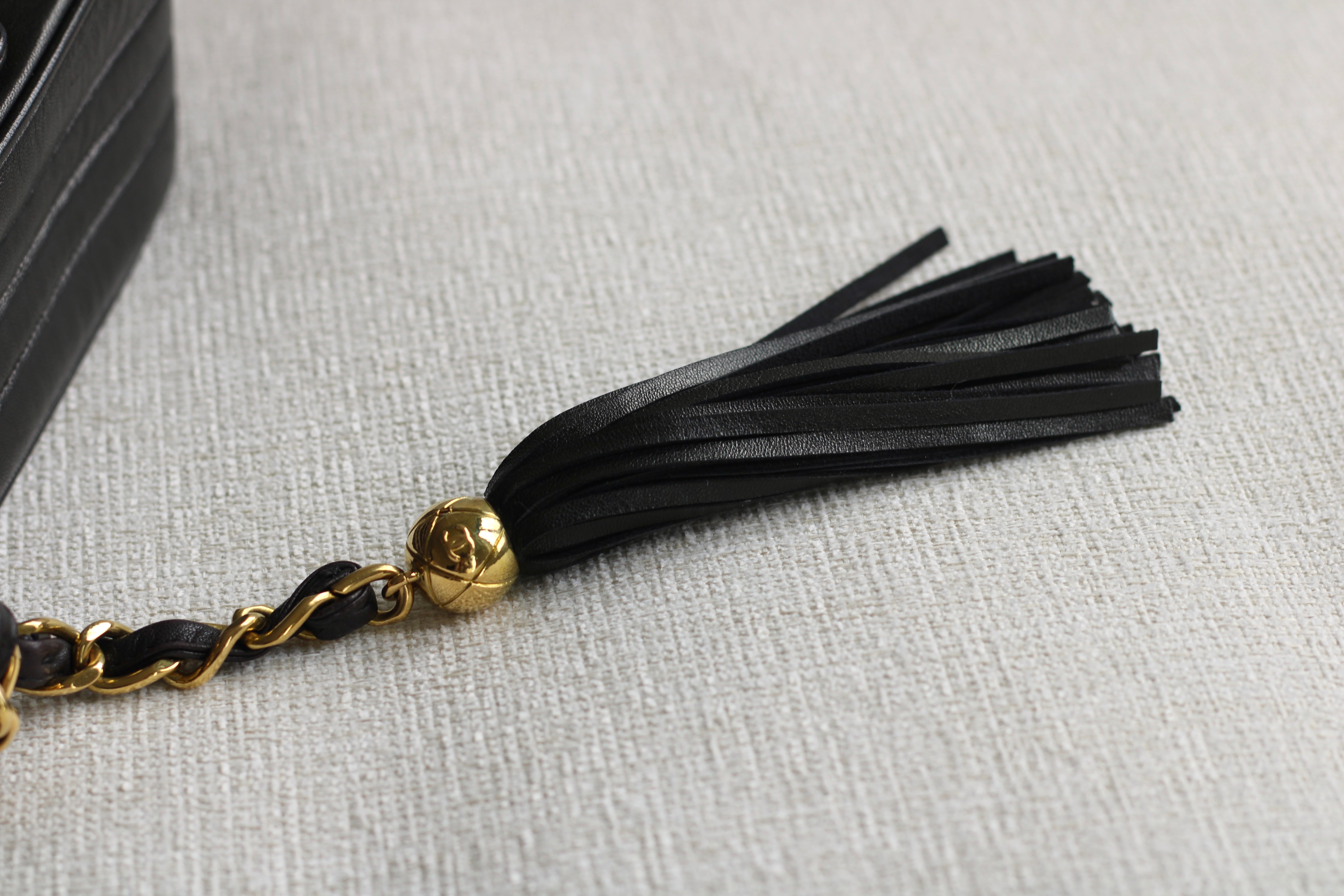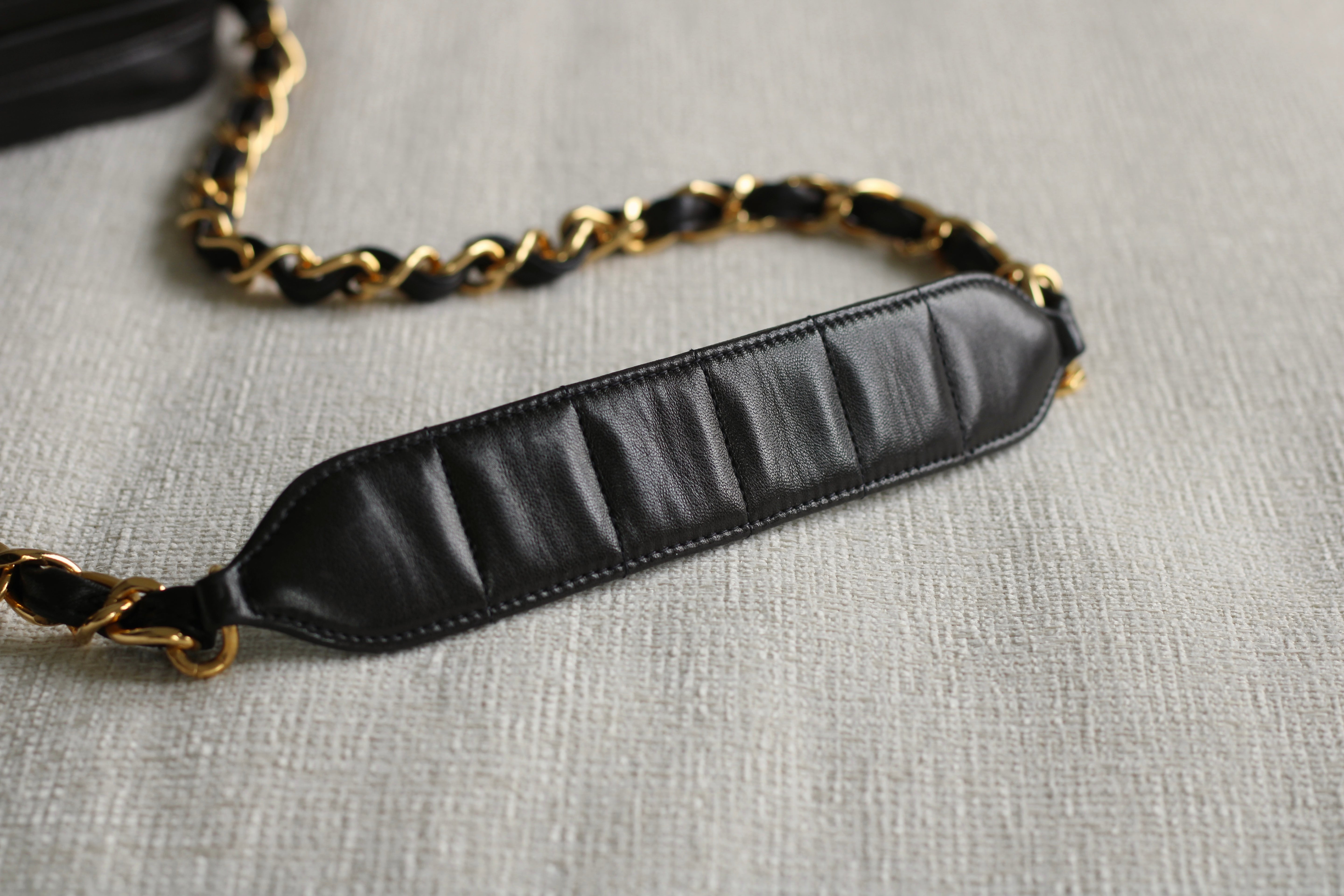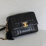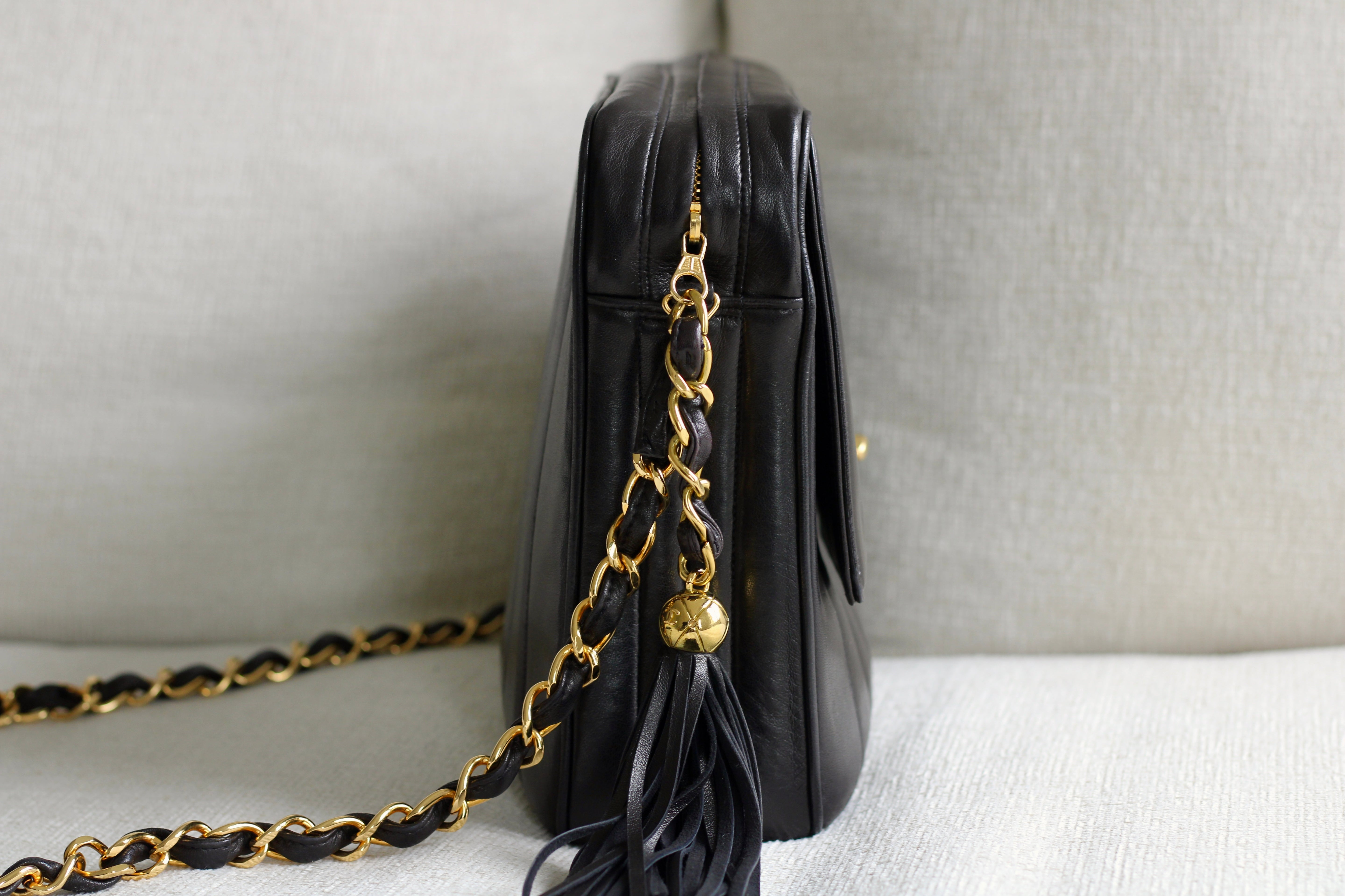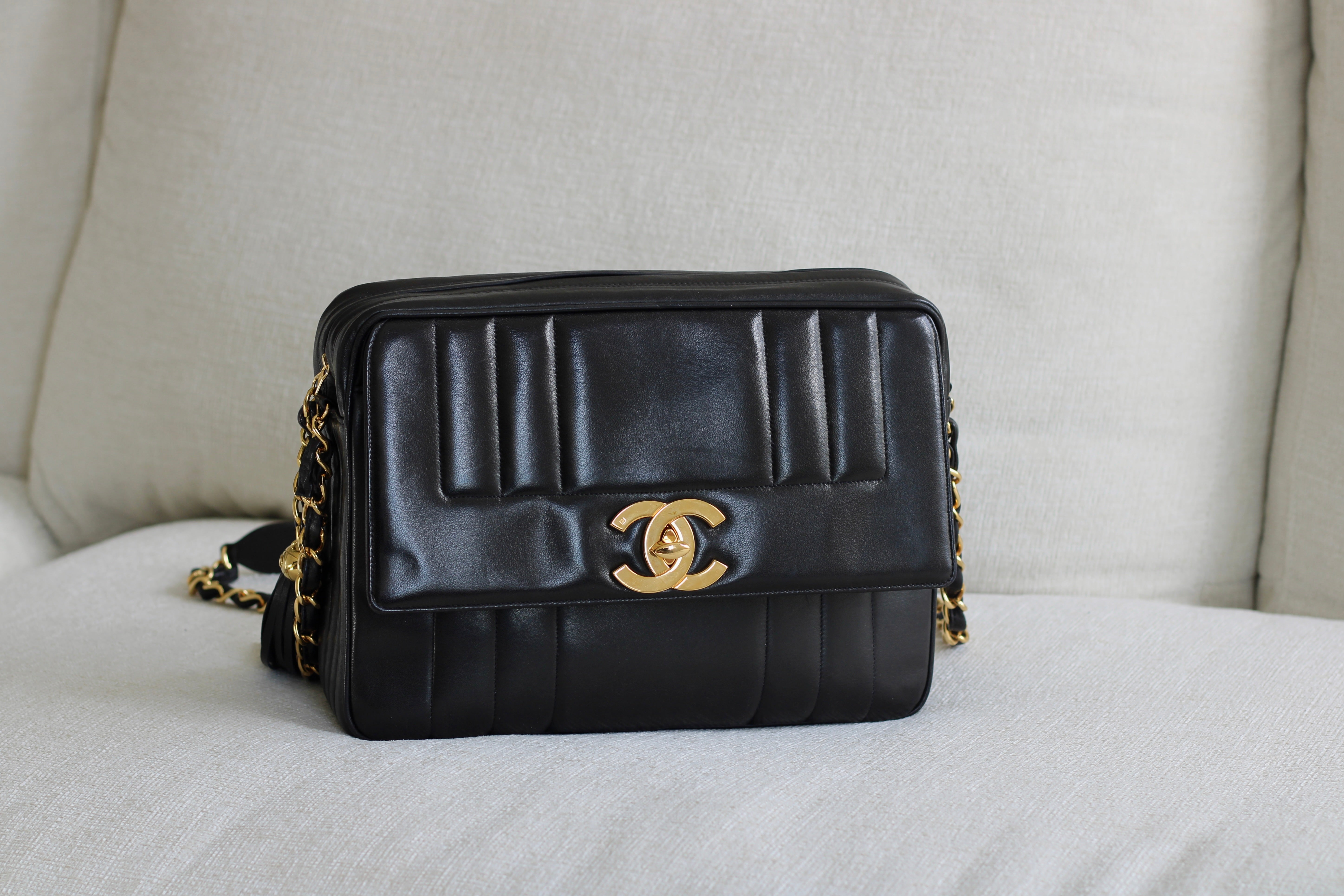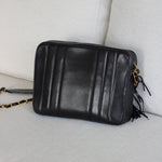 Vintage Chanel Black Lambskin Vertical Camera Bag with 24k Gold Hardware