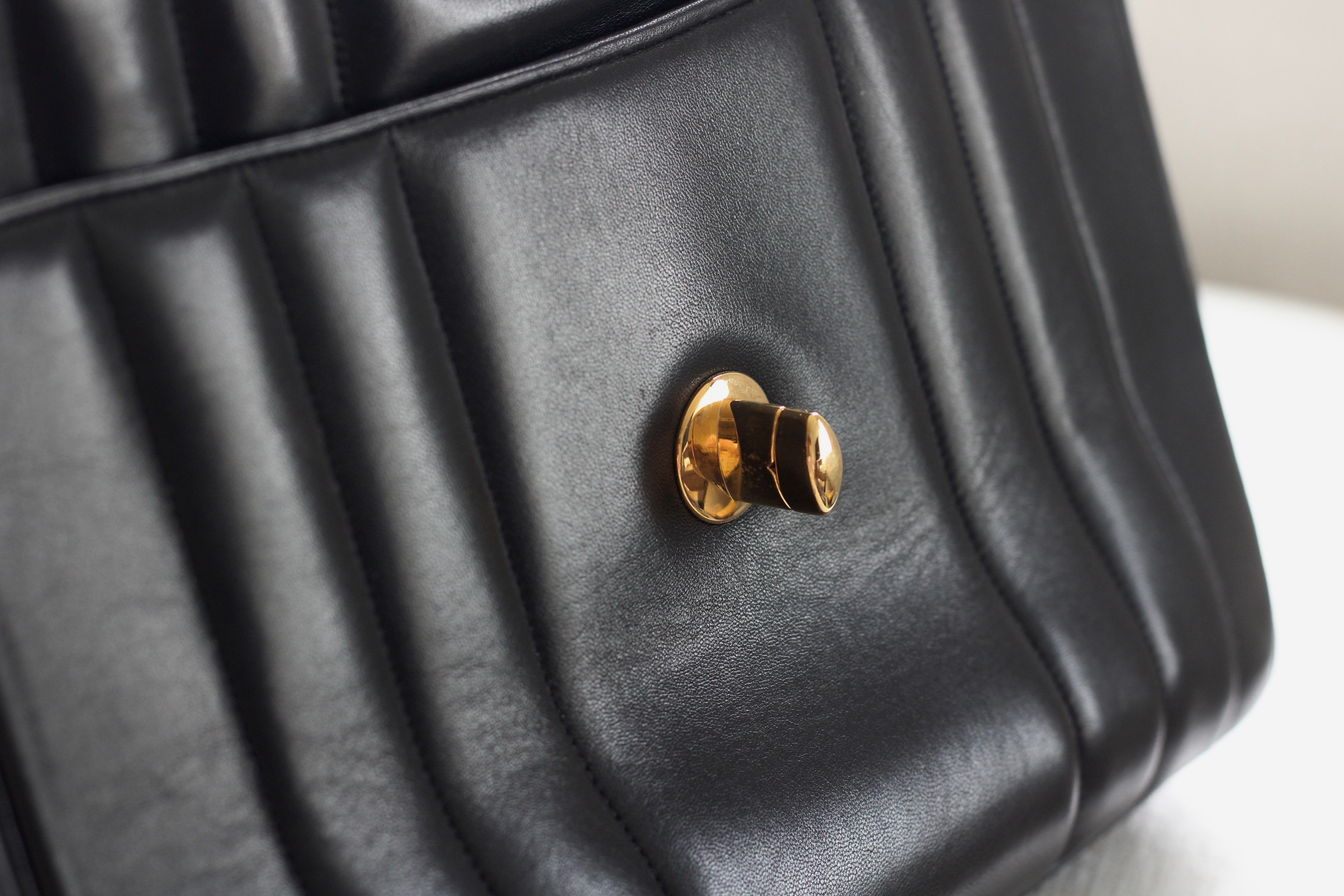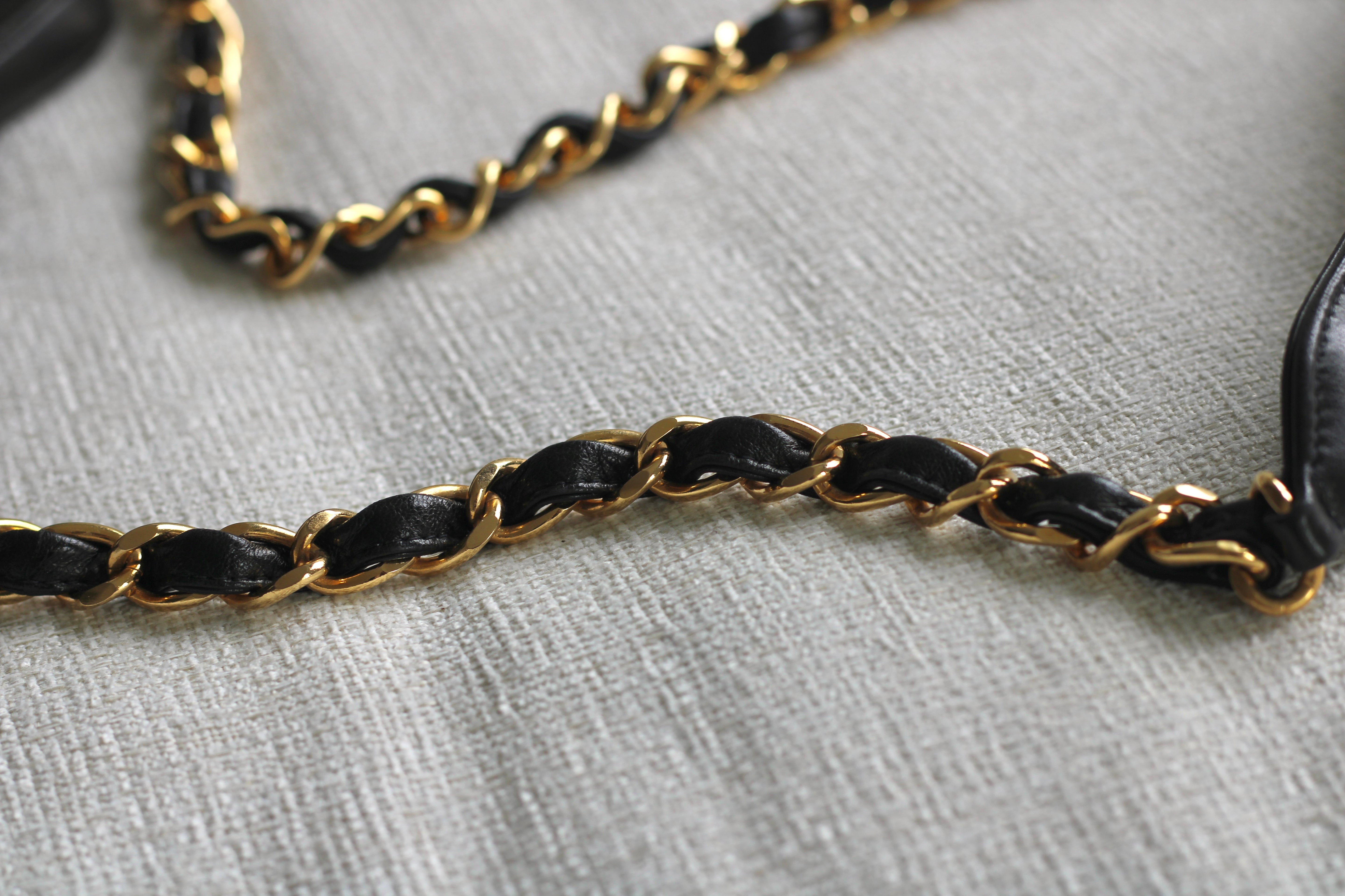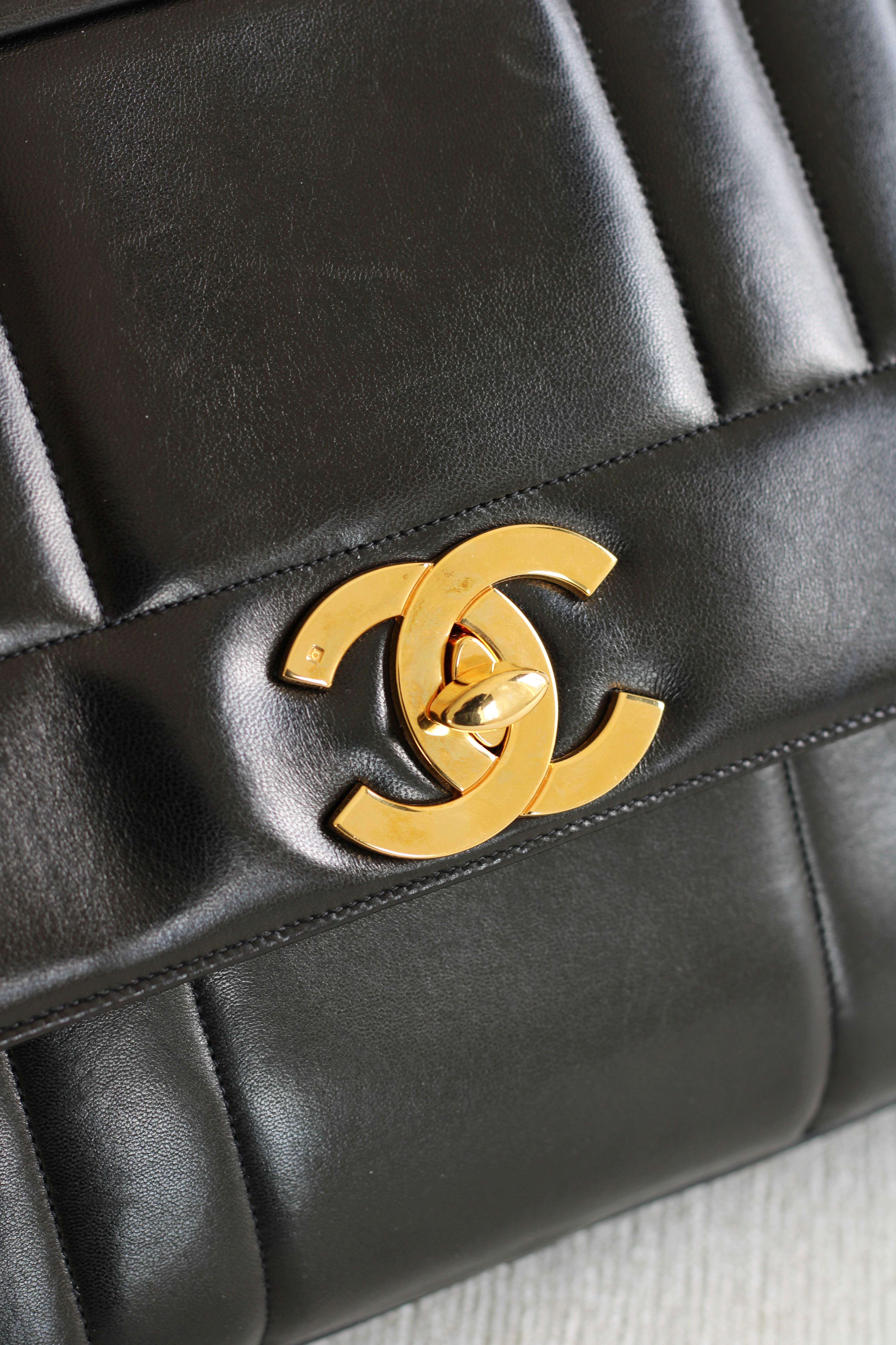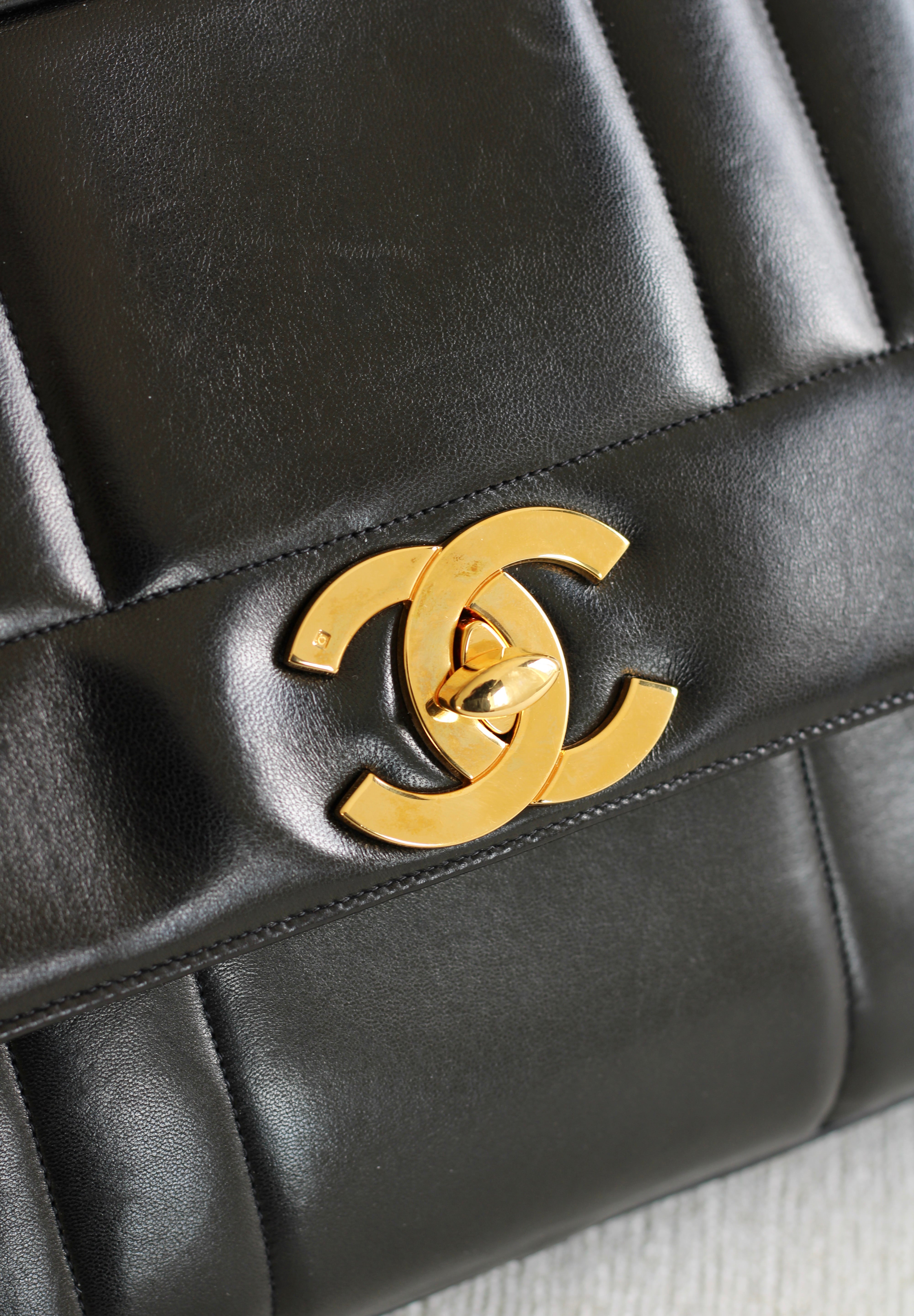 Vintage Chanel Black Lambskin Vertical Camera Bag with 24k Gold Hardware