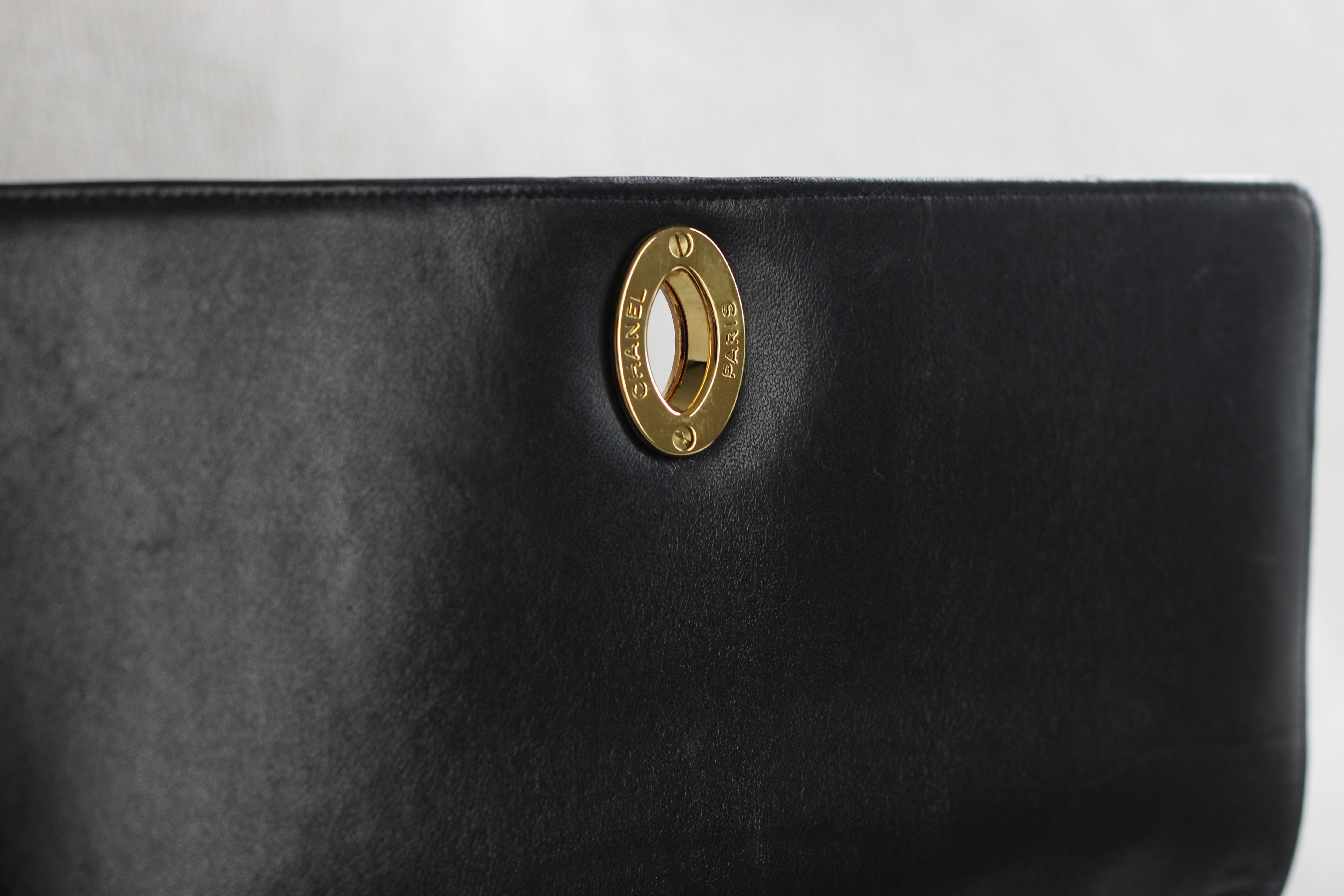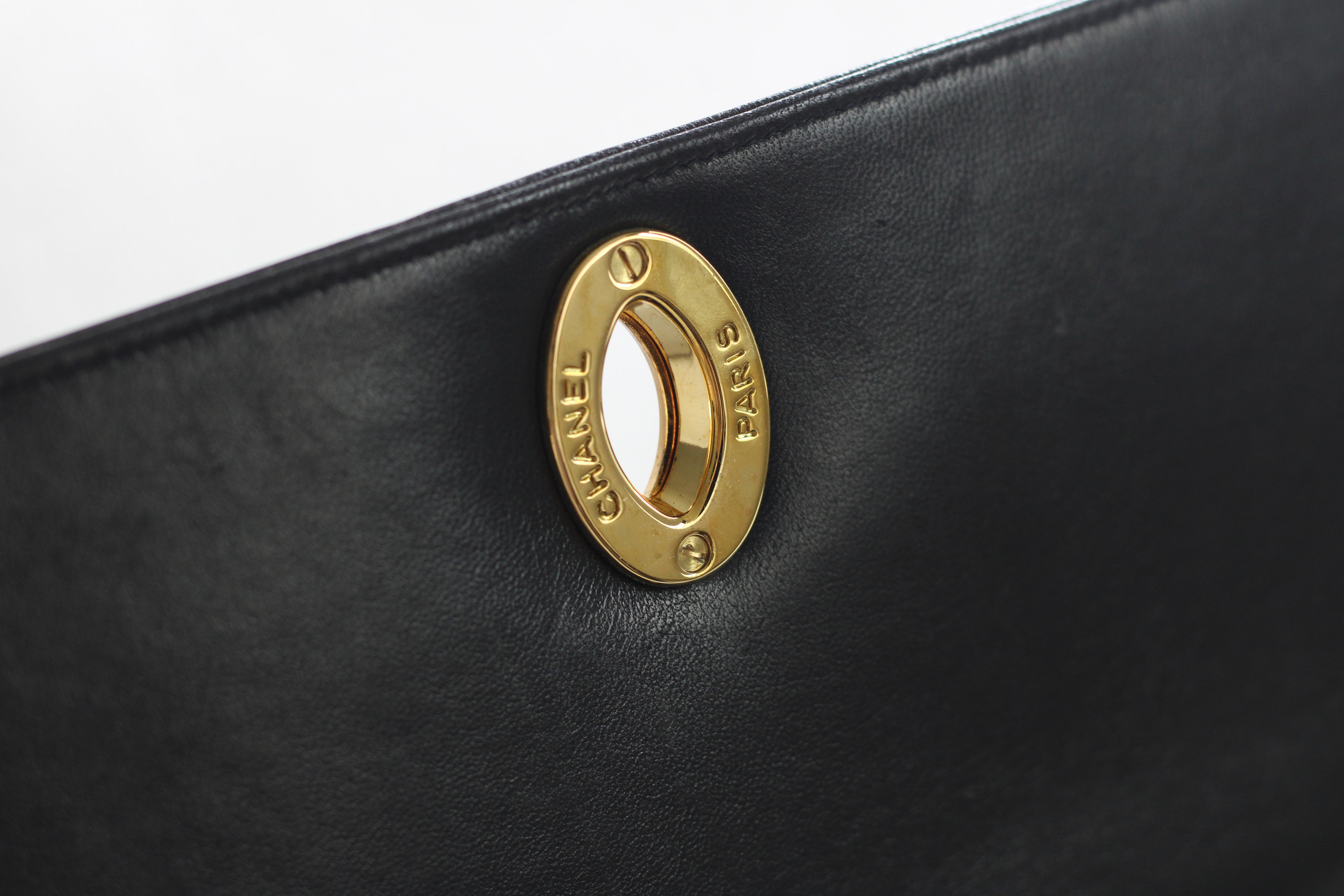 Excellent Vintage Condition. Buttery lambskin leather with a stunning sheen. Excellent structure and very minimal corner wear. Beautiful 24k gold hardware with some light tarnishing on front CCs.