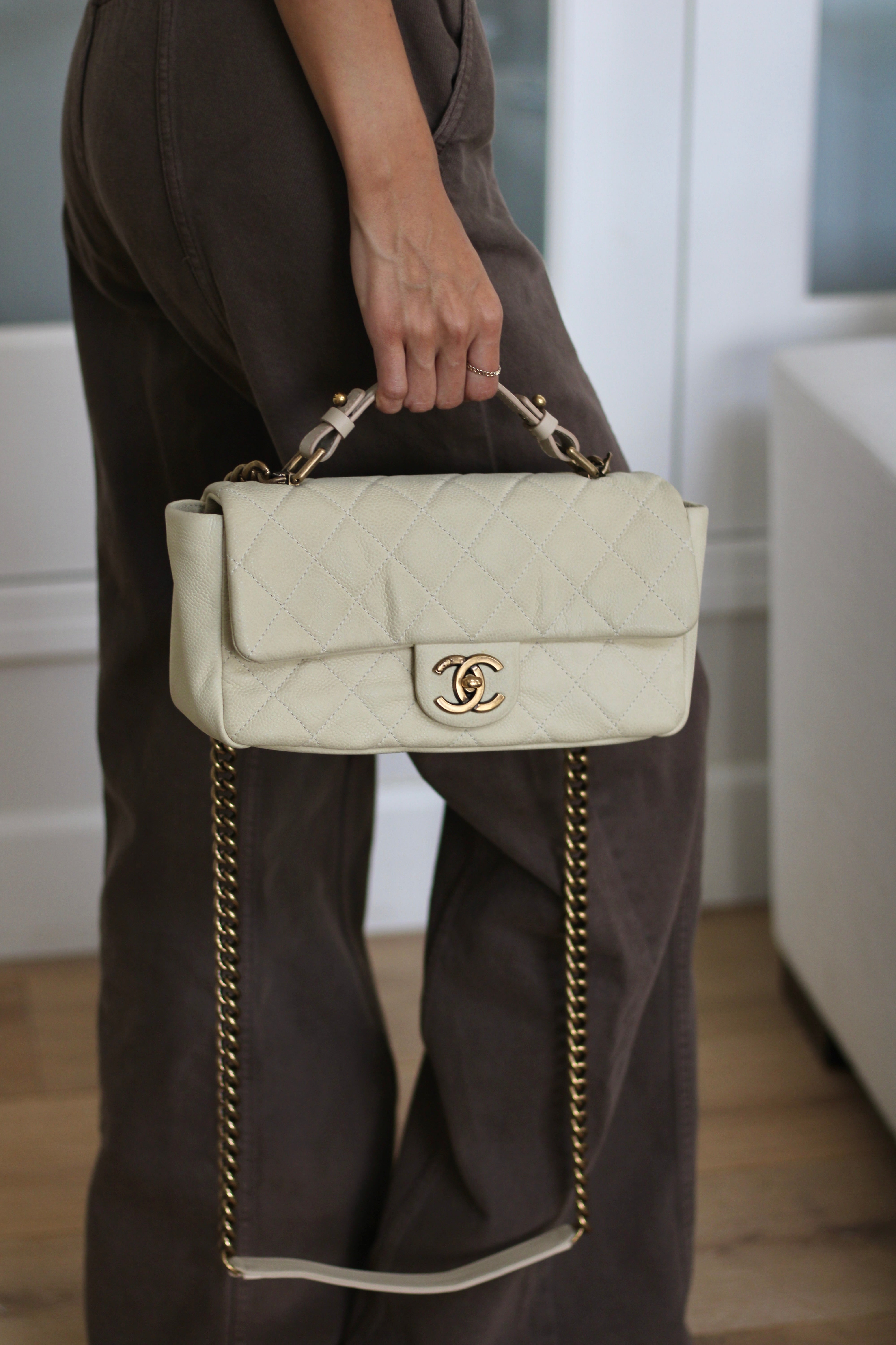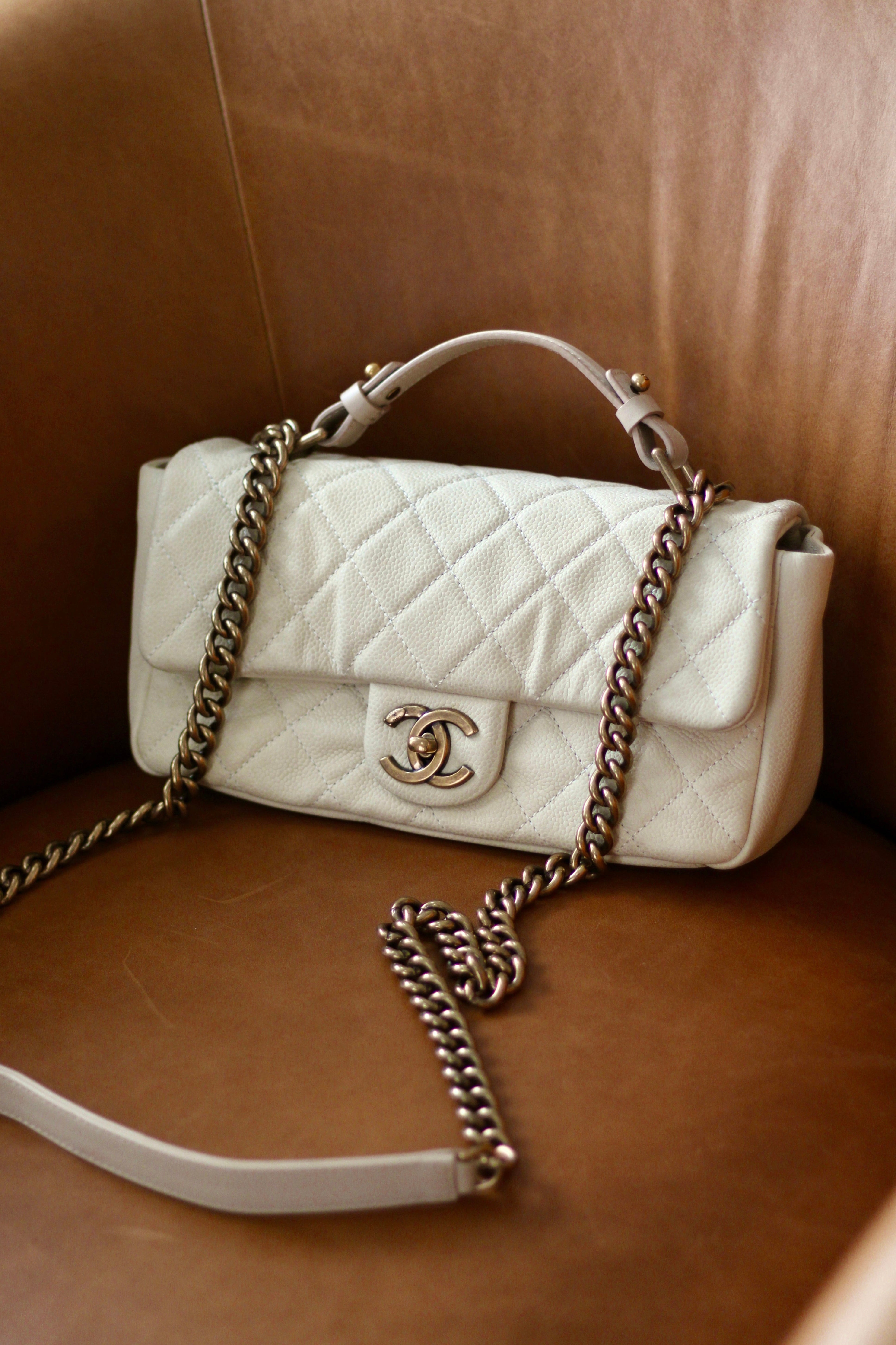 Chanel Iridescent Ivory Caviar Country Chic Flap with Aged Gold Hardware