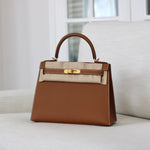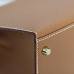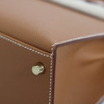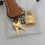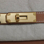 - Polished gold-tone hardware including signature Hermès turn-lock closure