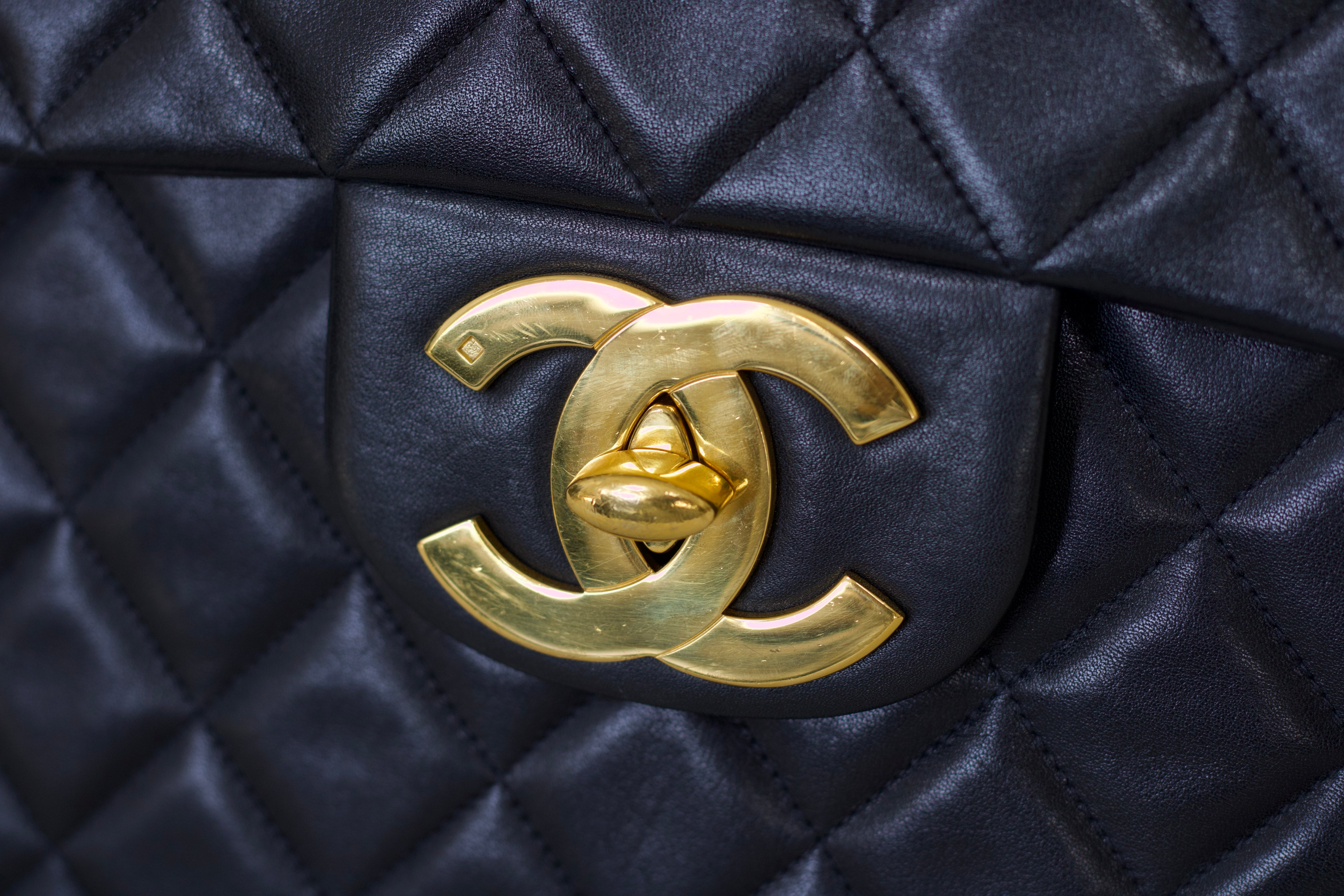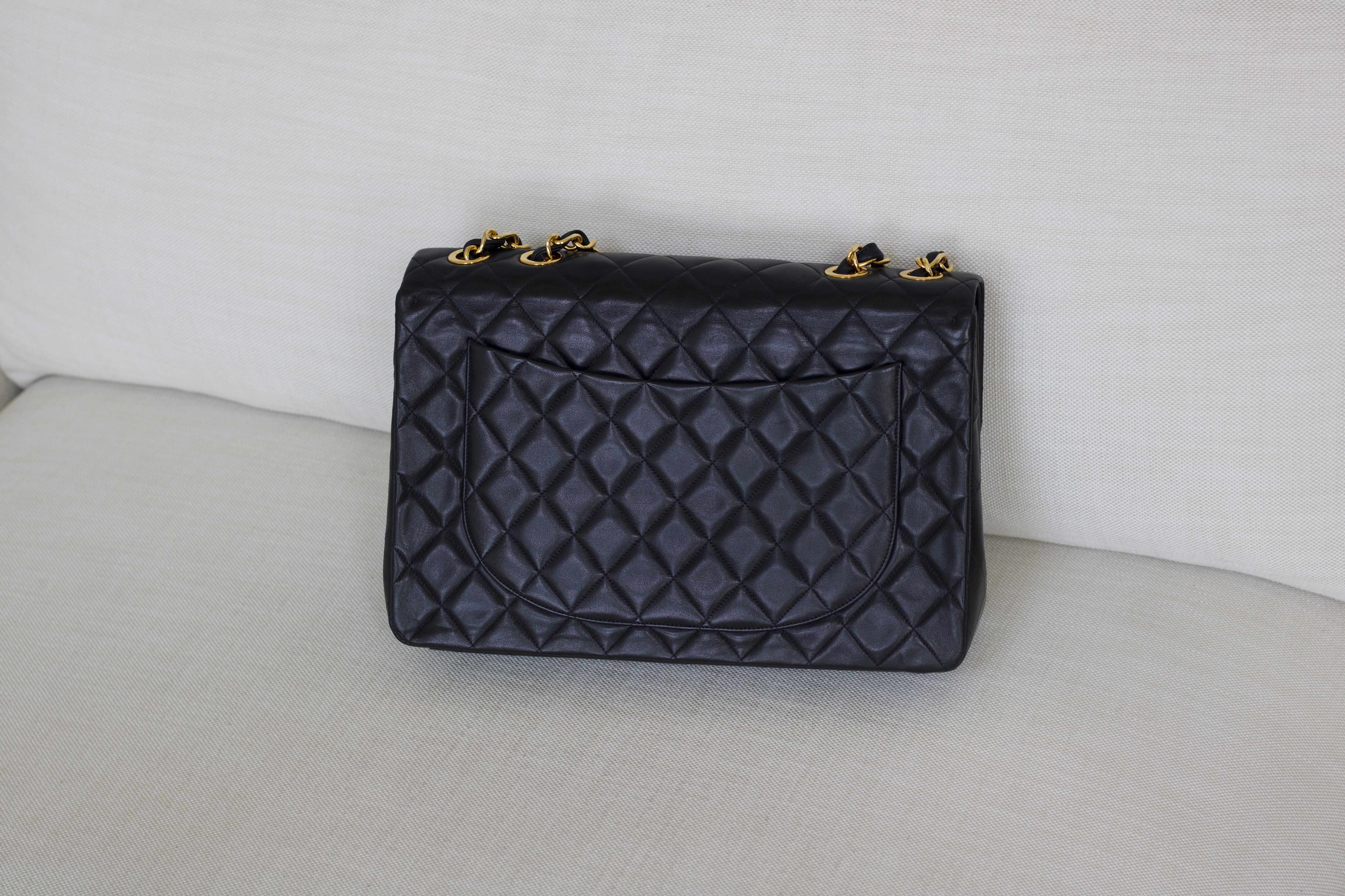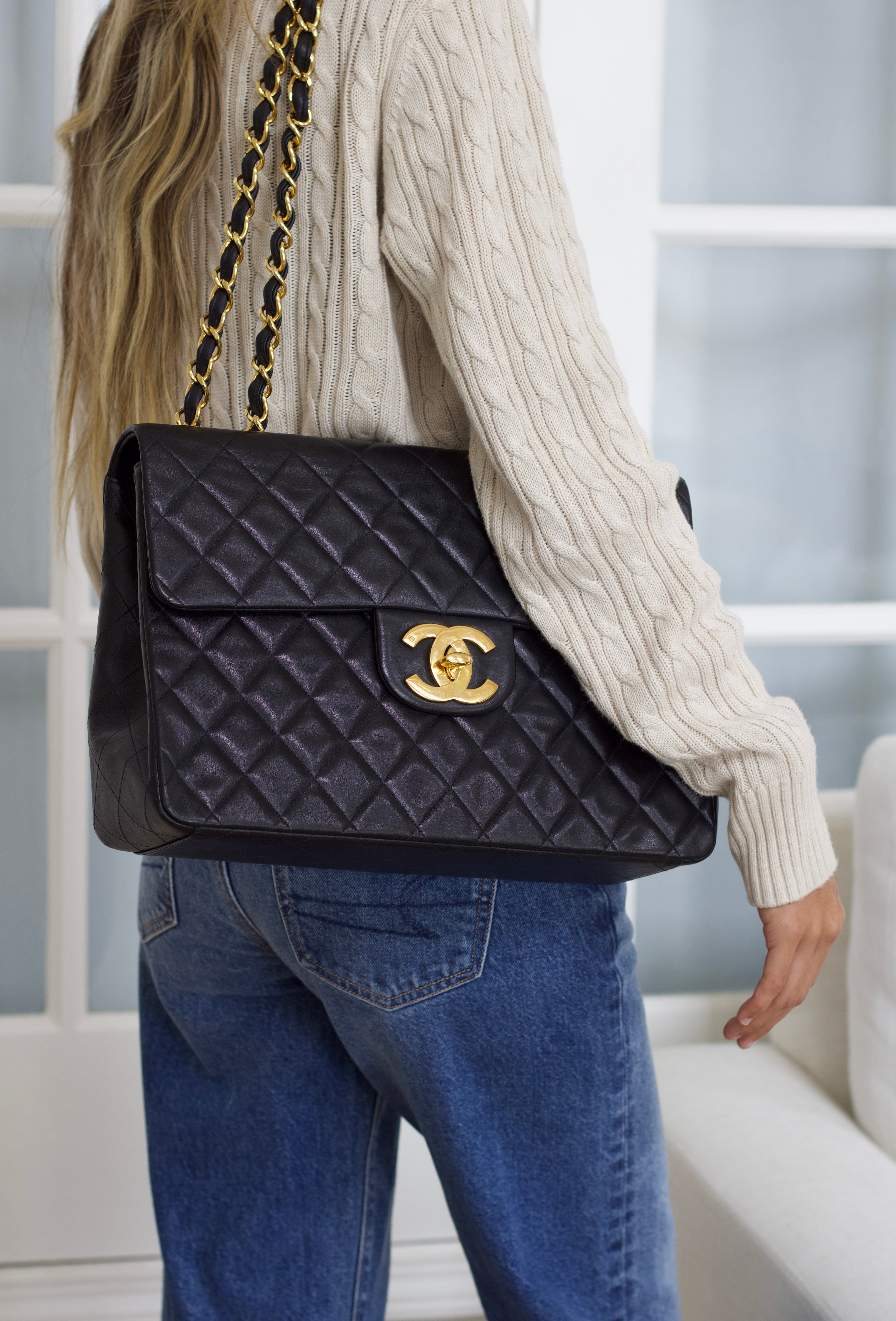 Vintage Chanel Black Lambskin XL Jumbo with 24k Gold Hardware