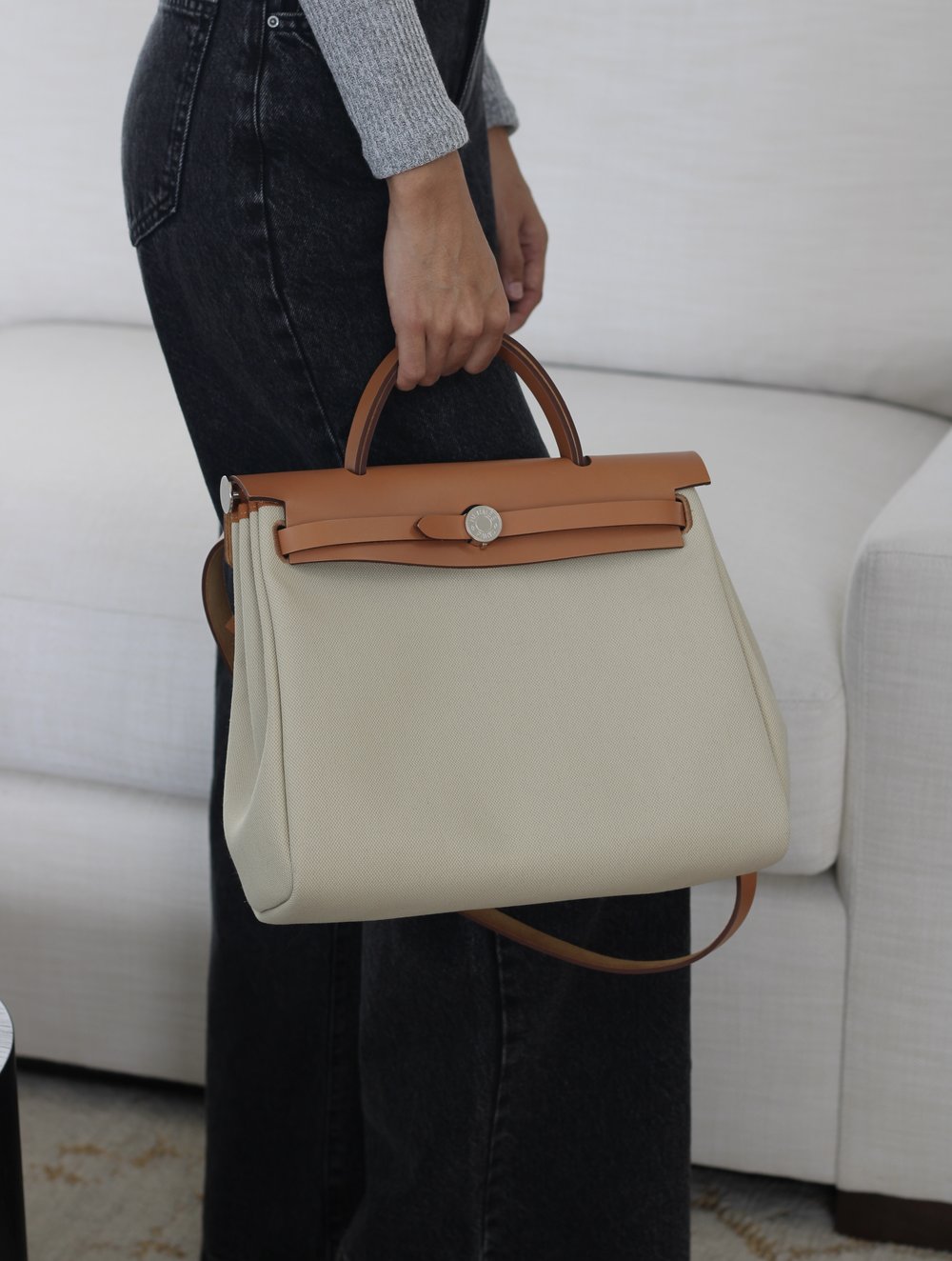 Hermès Beton Naturel Military Toile Herbag Zip 31 Palladium Hardware