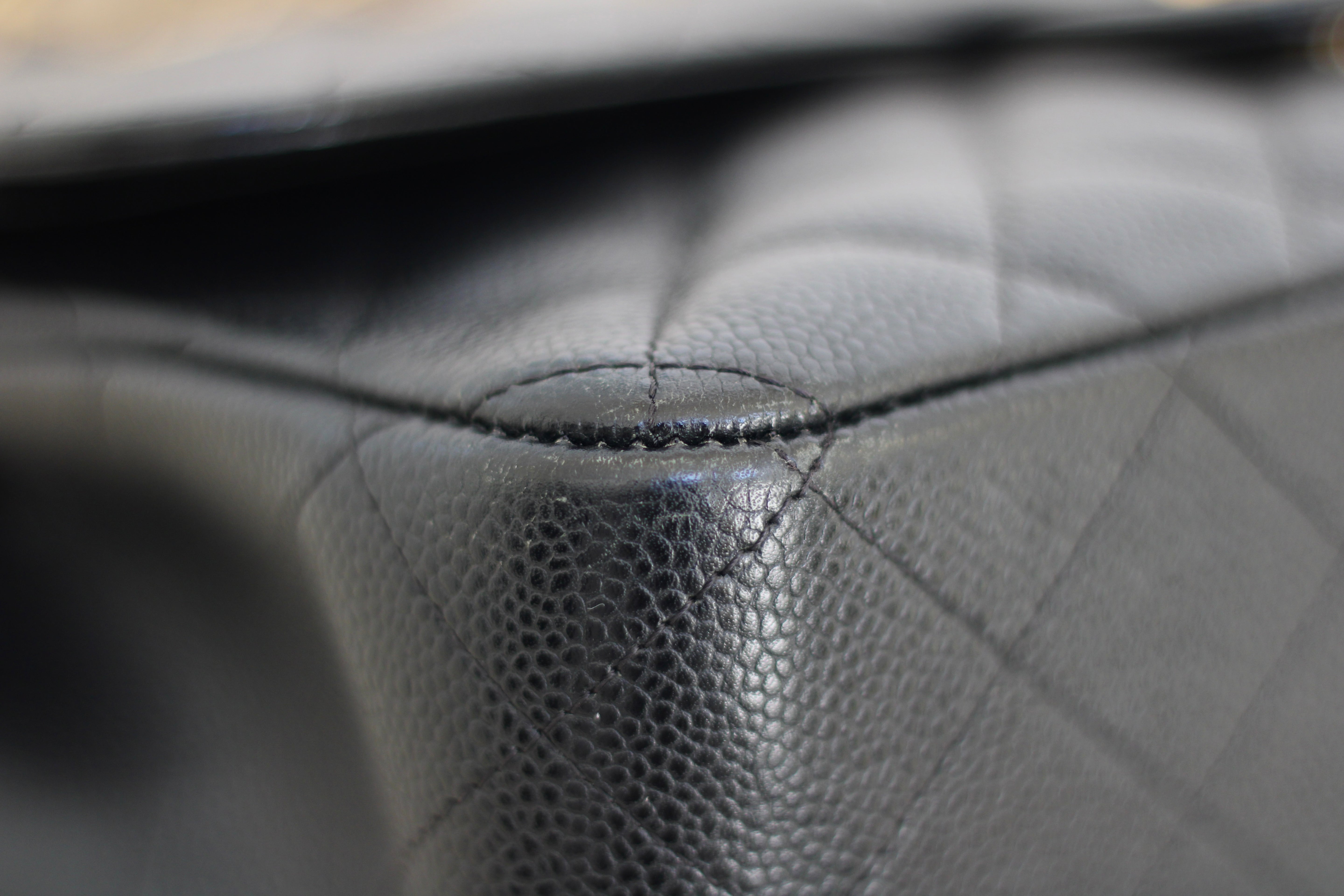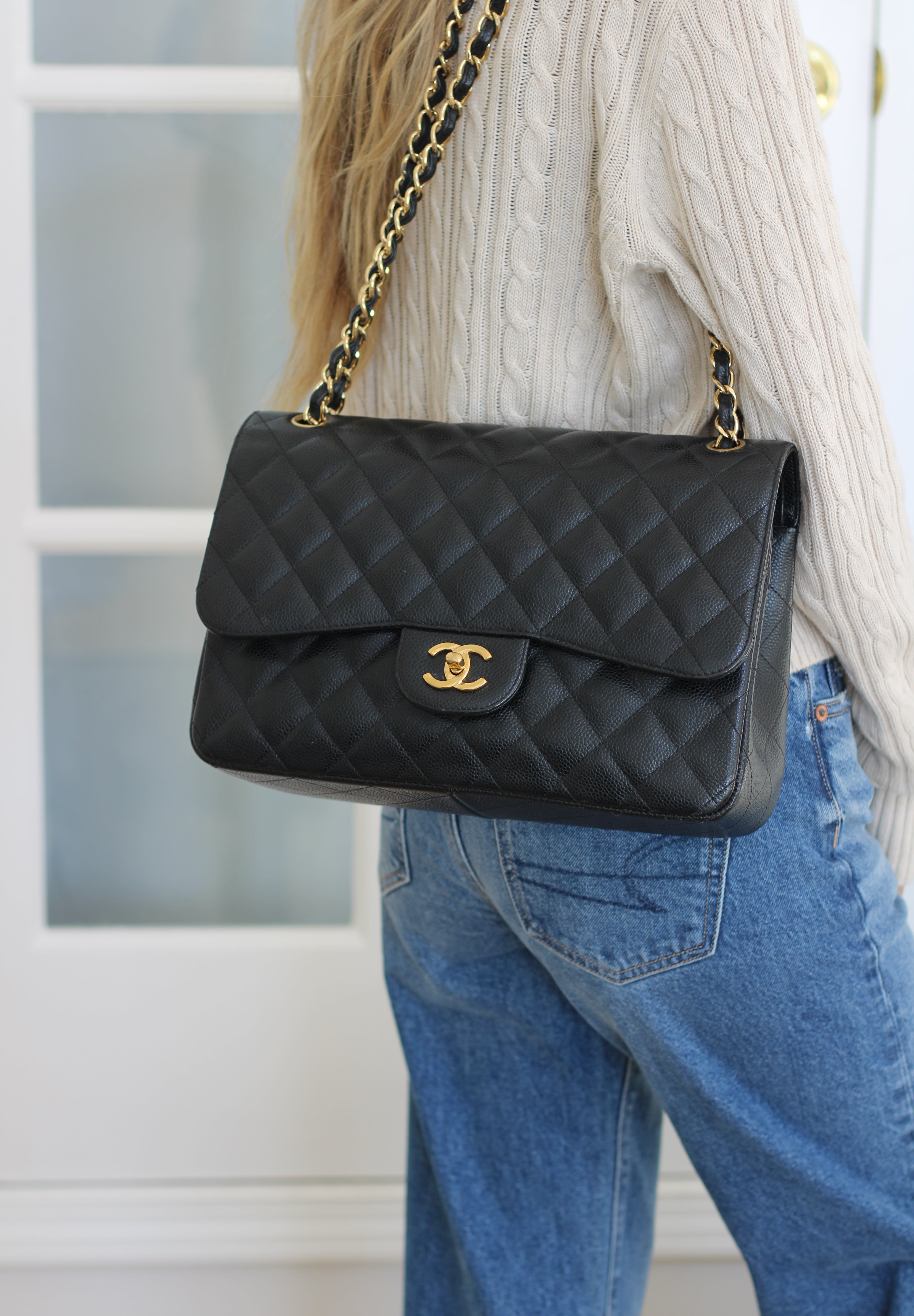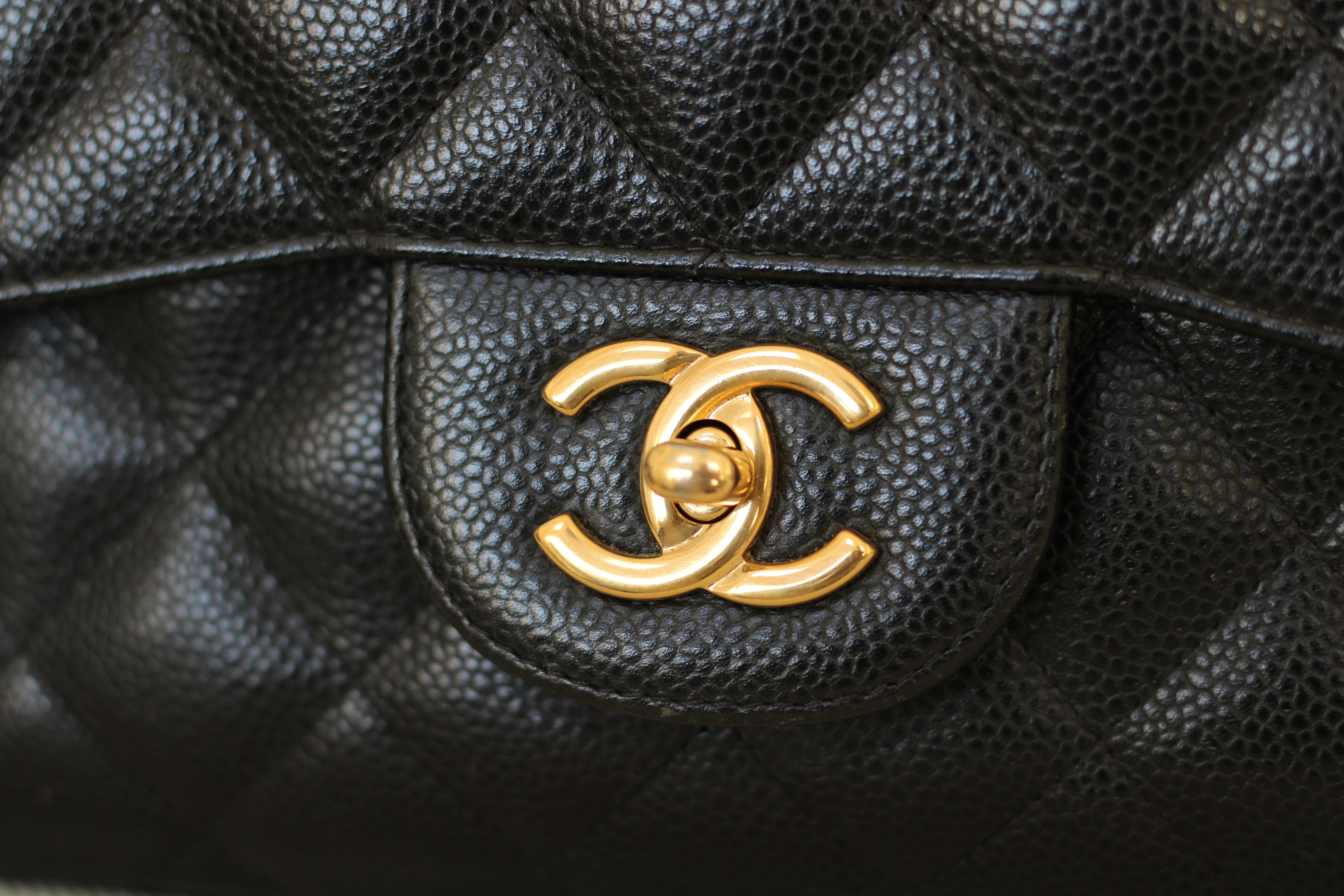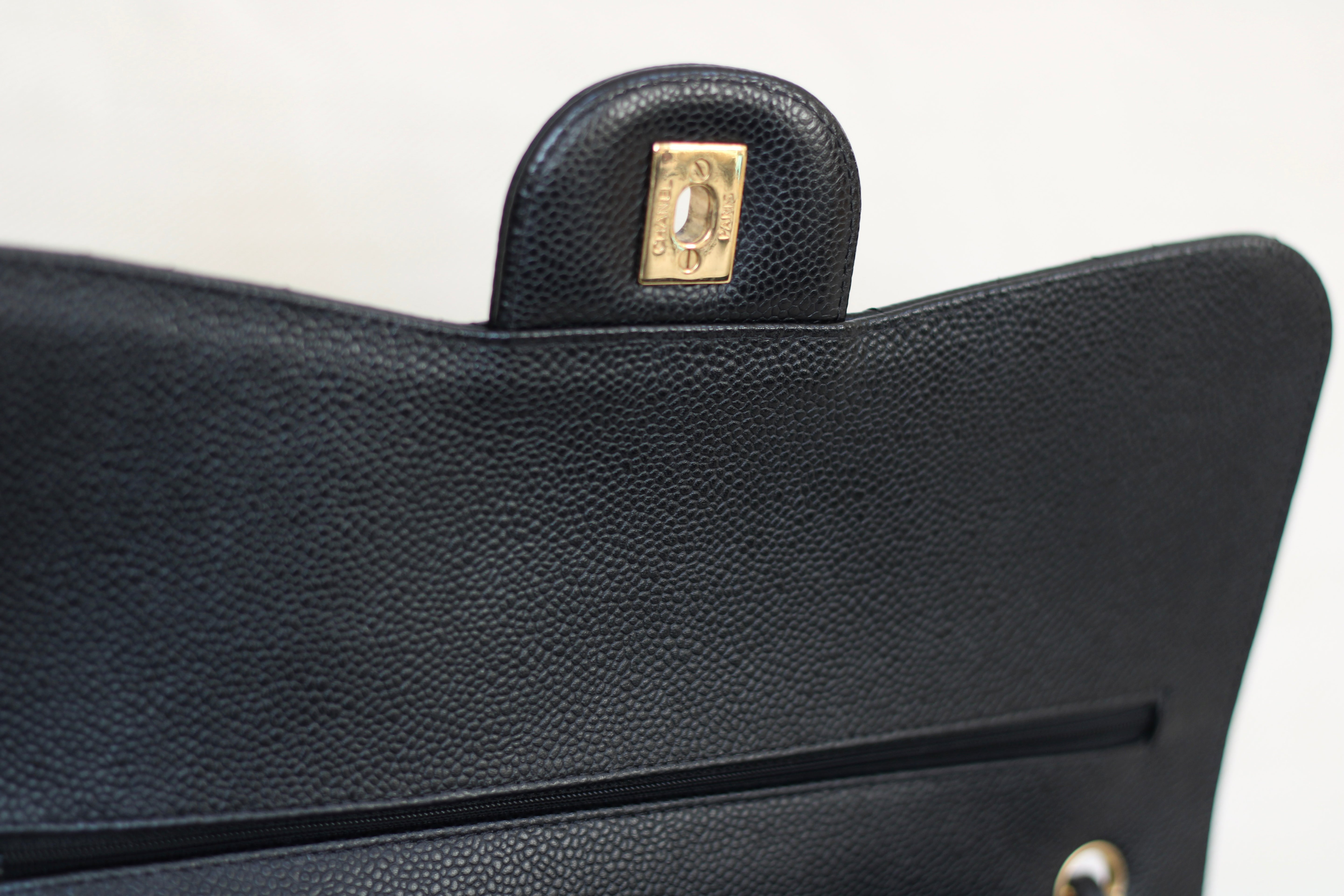 Chanel Black Caviar Double Flap Jumbo with Gold Hardware