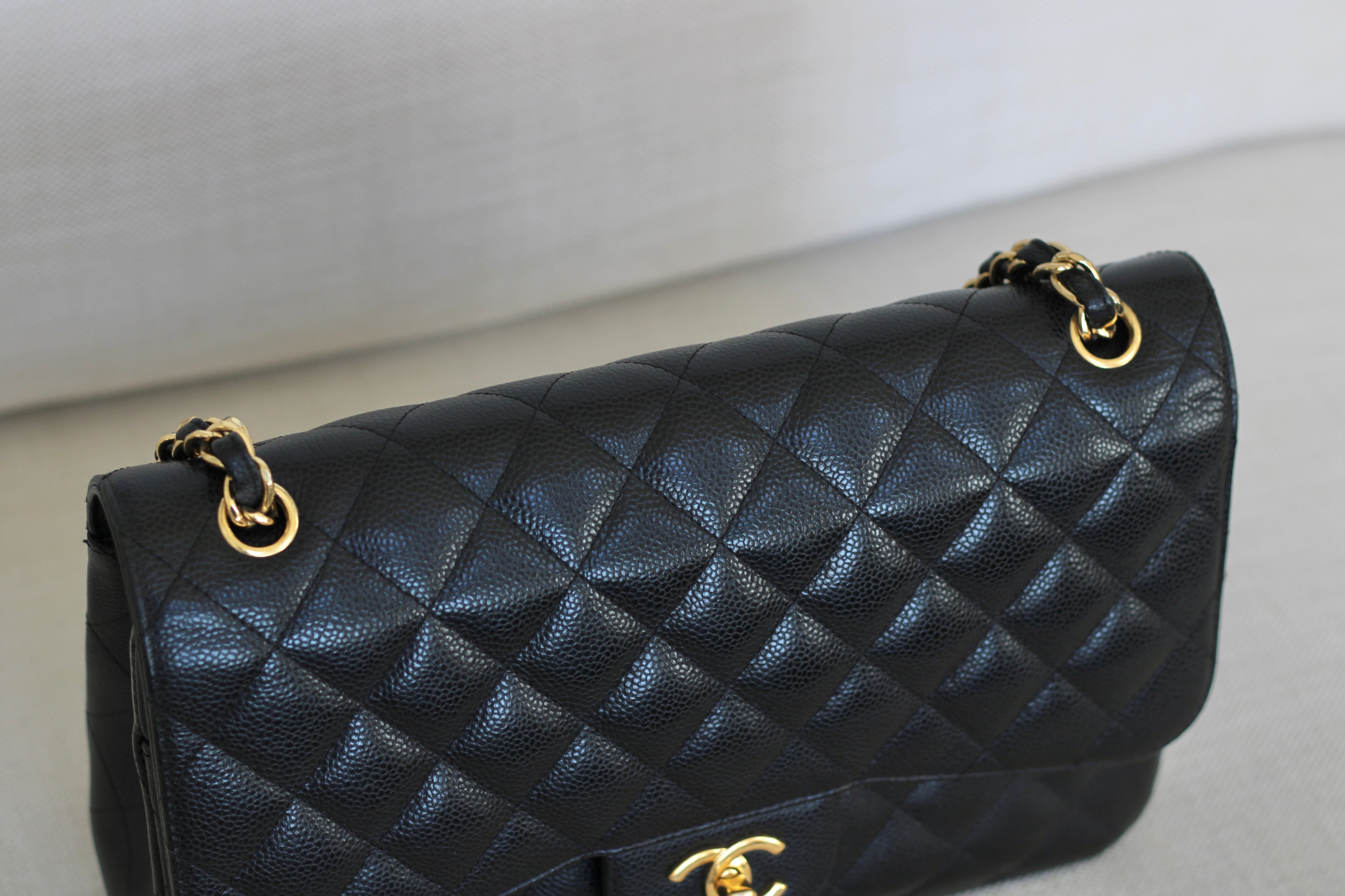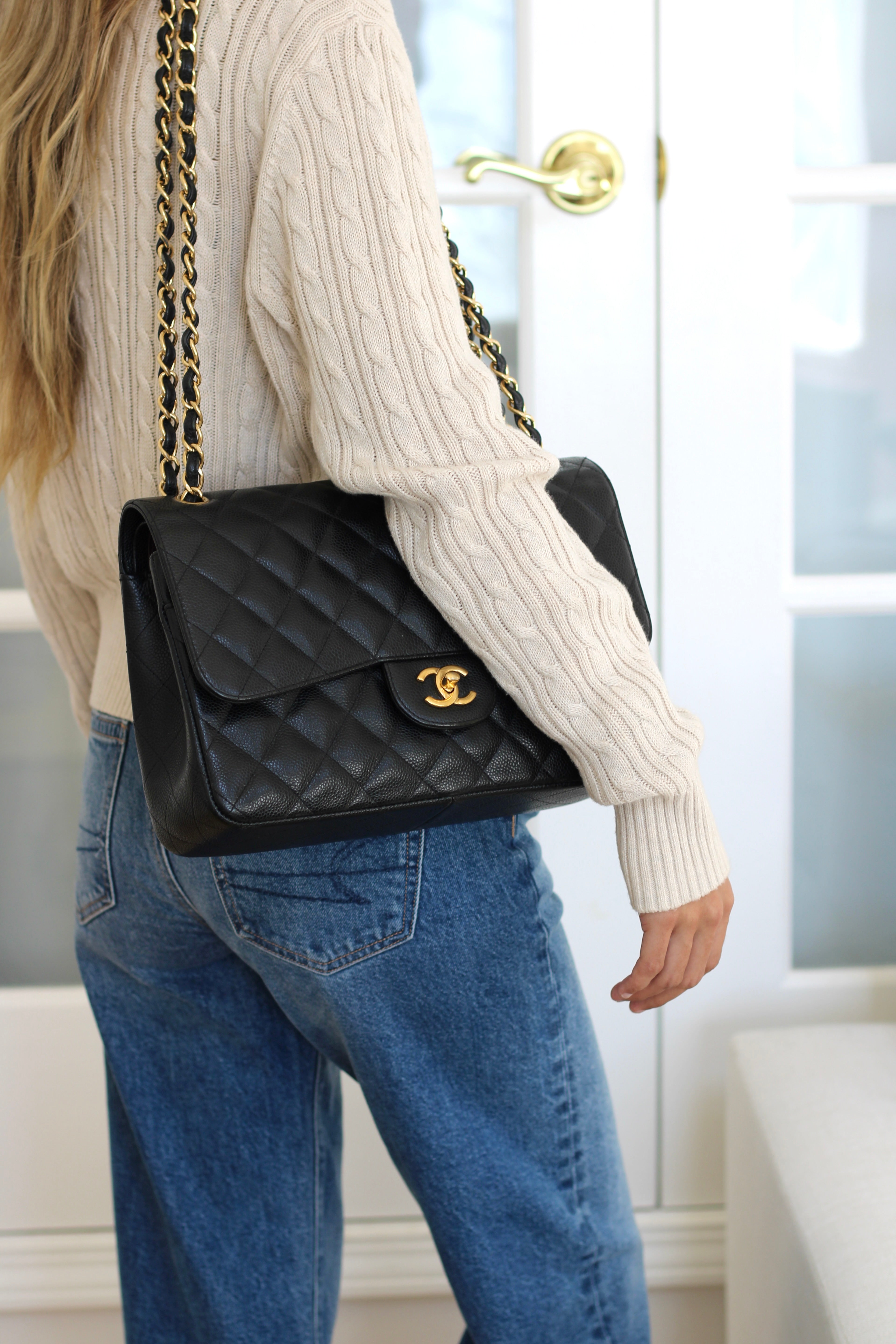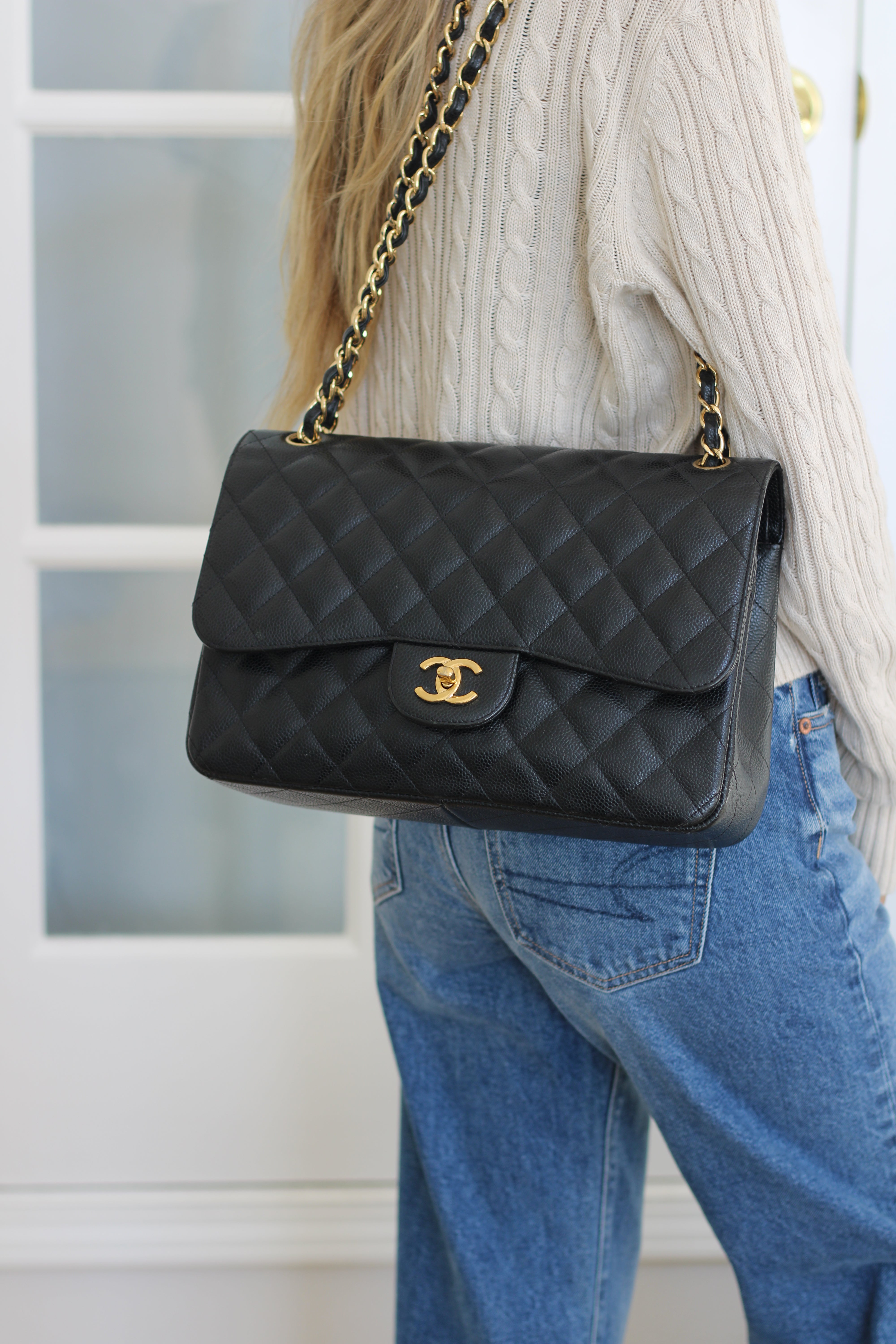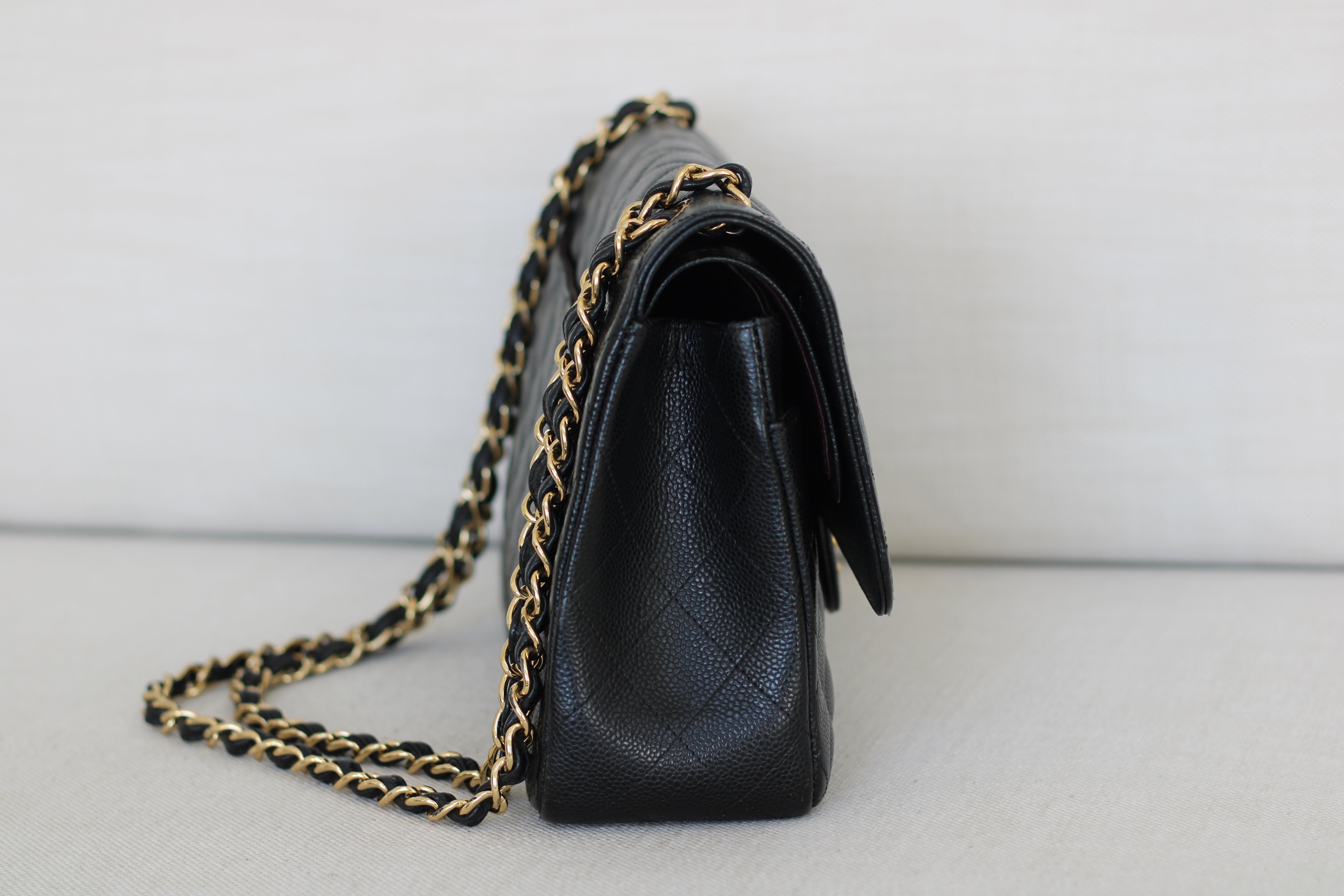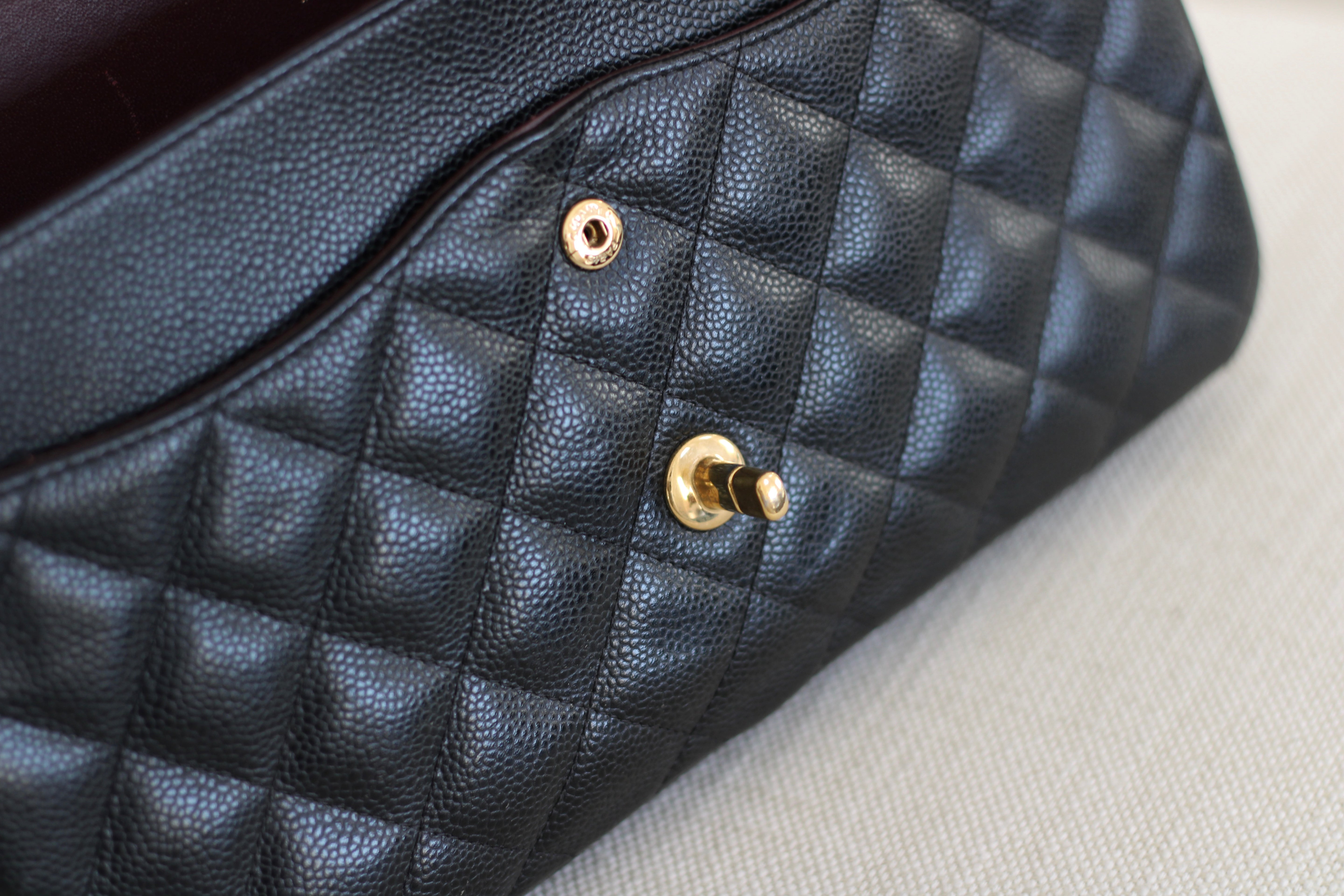 Chanel Black Caviar Double Flap Jumbo with Gold Hardware