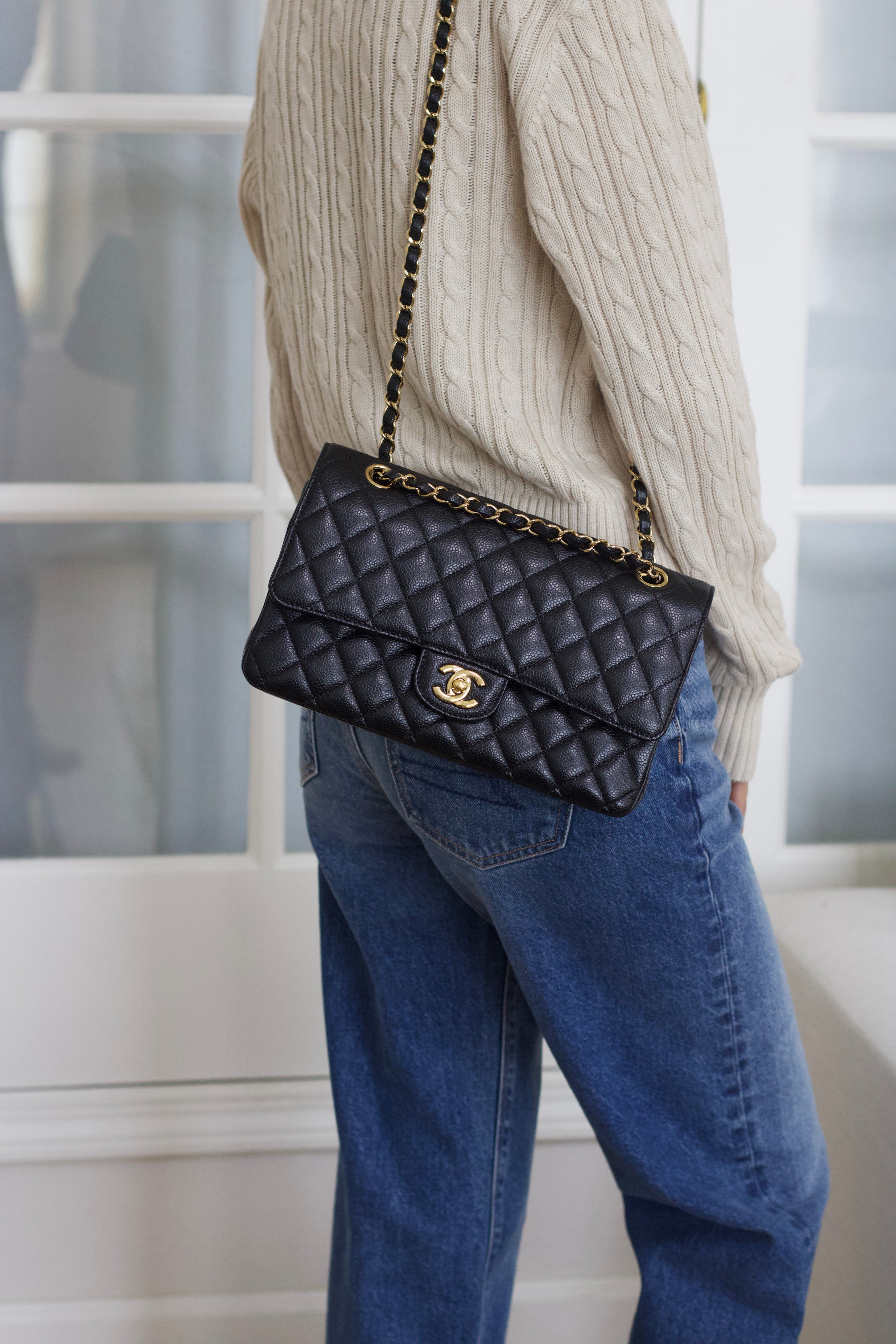 Chanel Black Caviar Medium Classic Flap with Gold Hardware