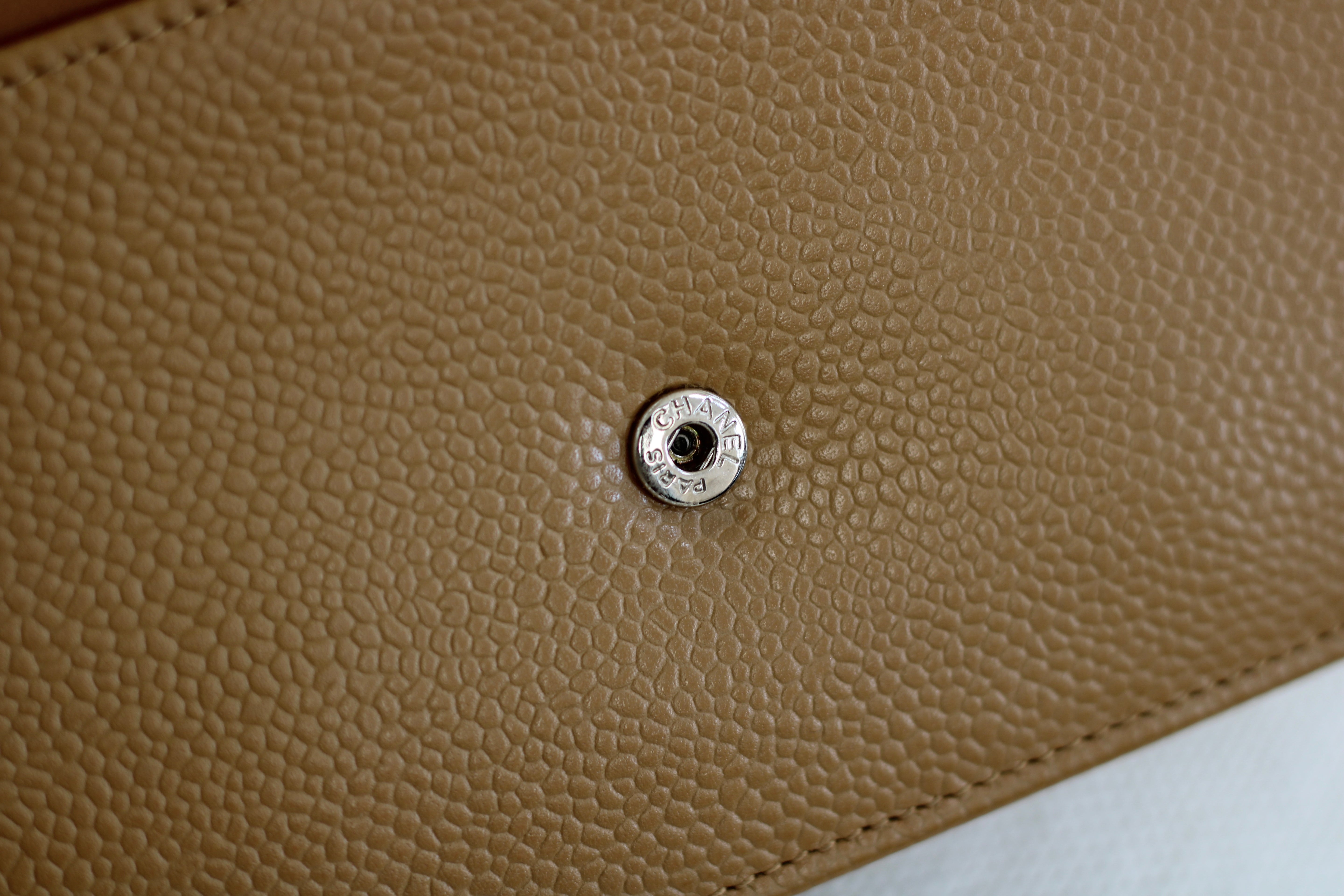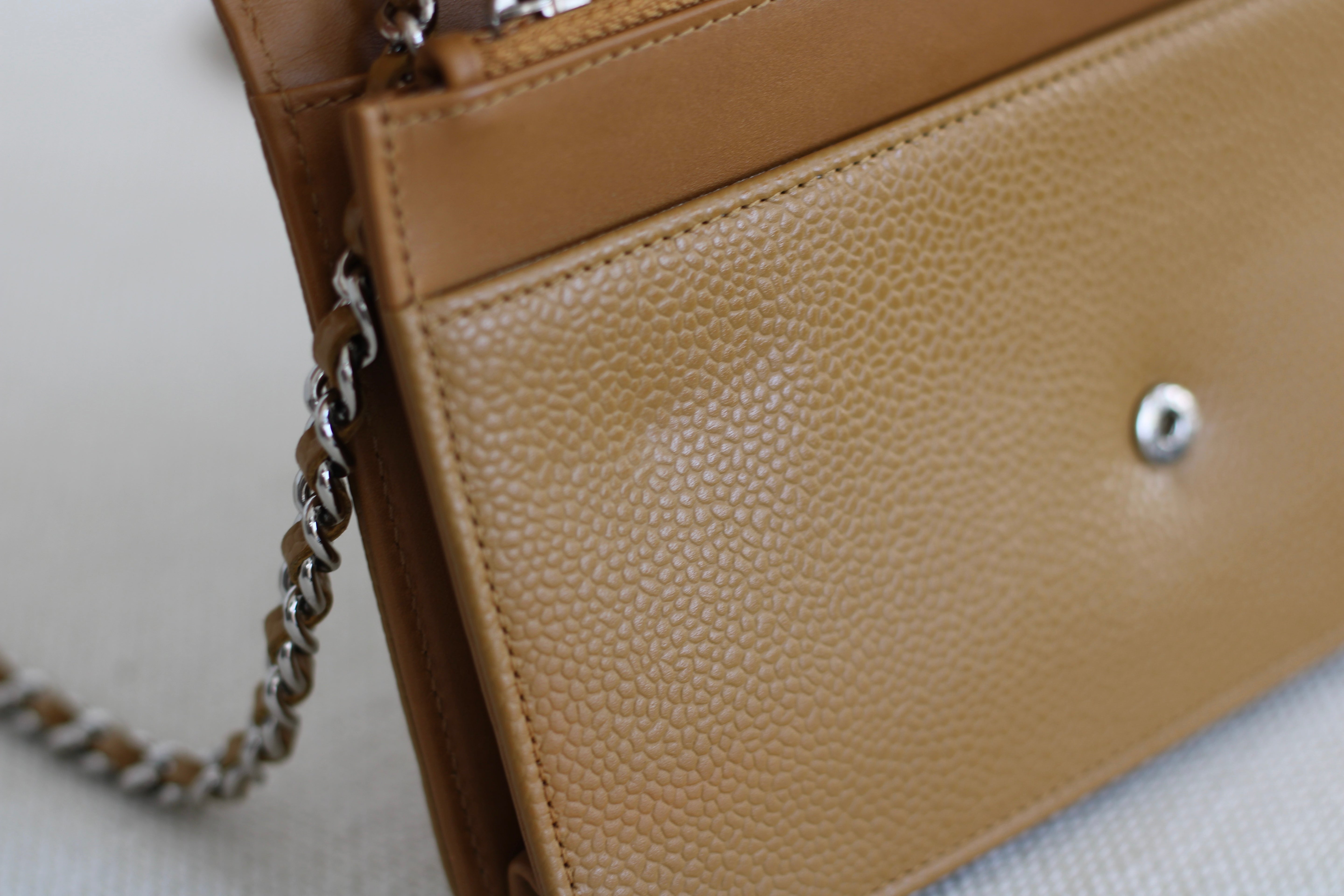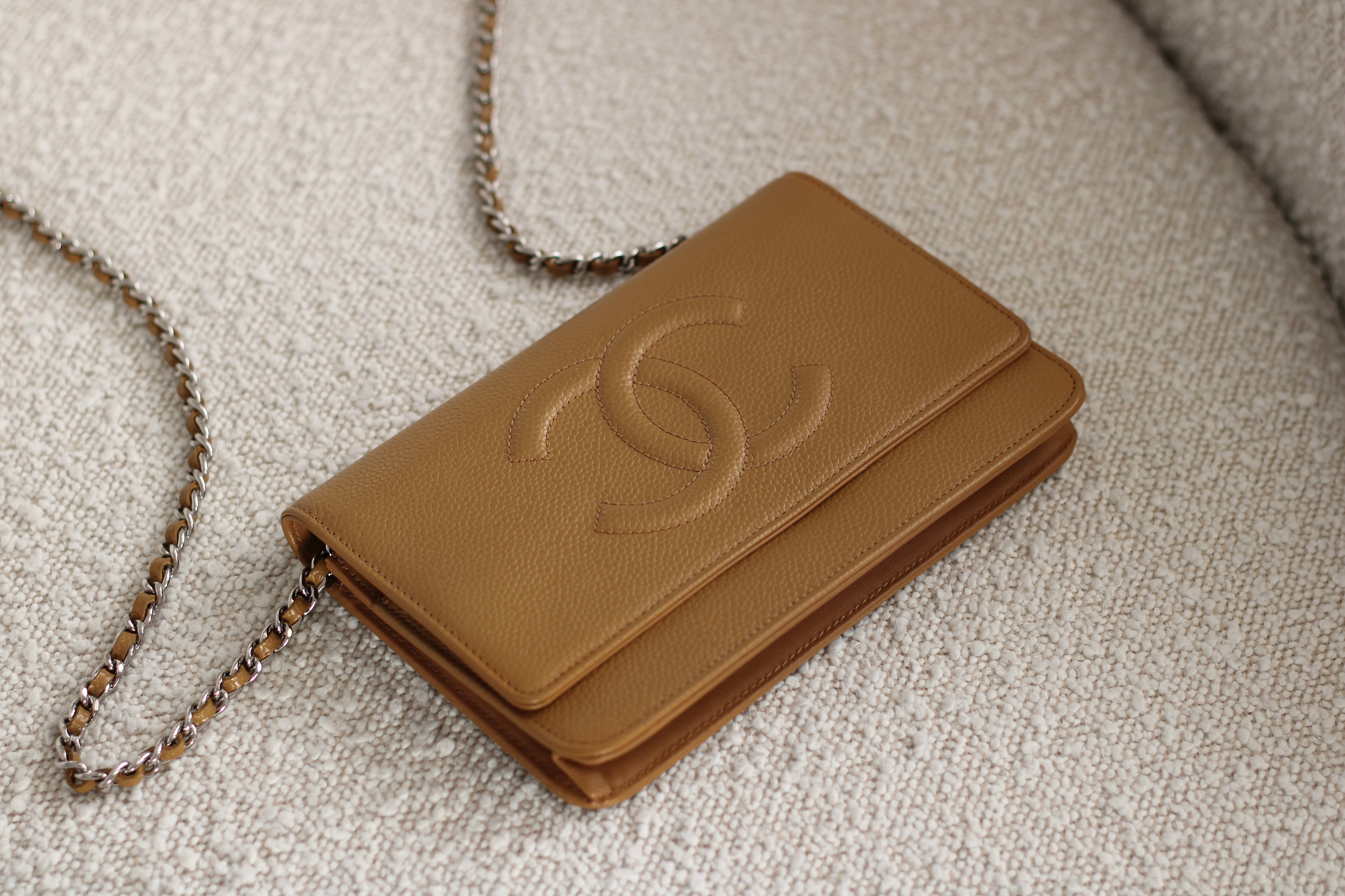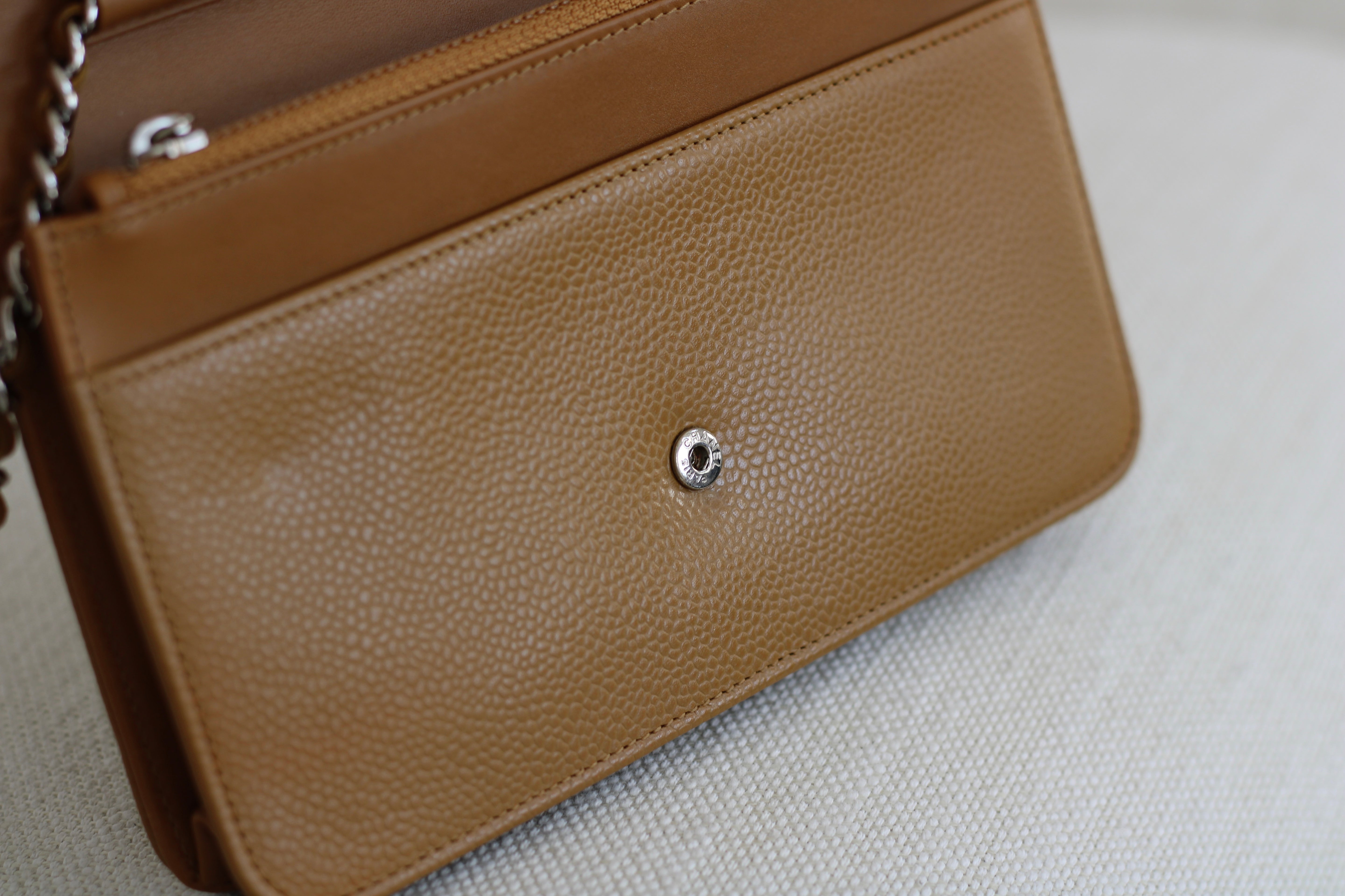 Chanel Dark Beige Caviar Wallet on Chain with Silver Hardware