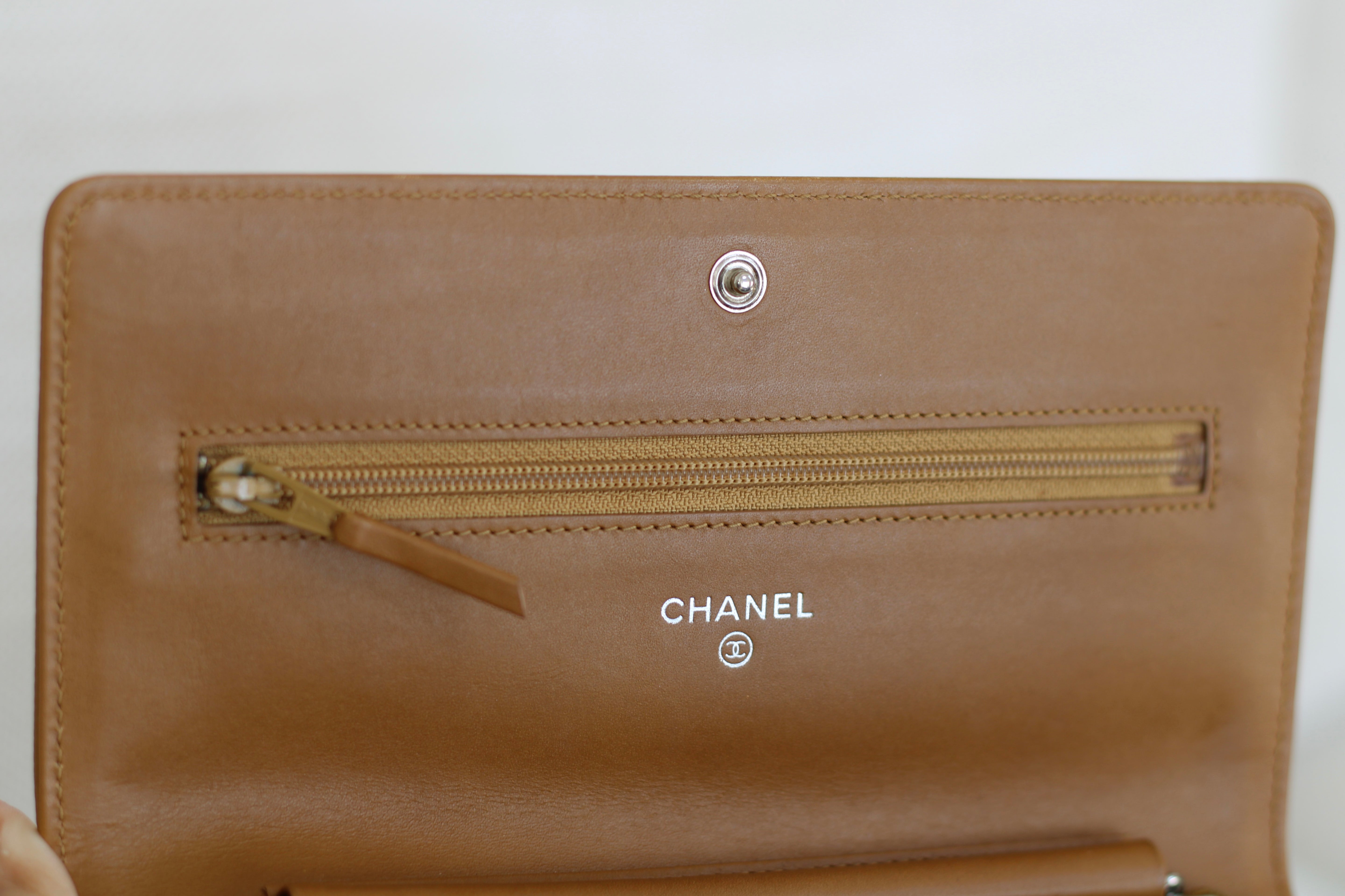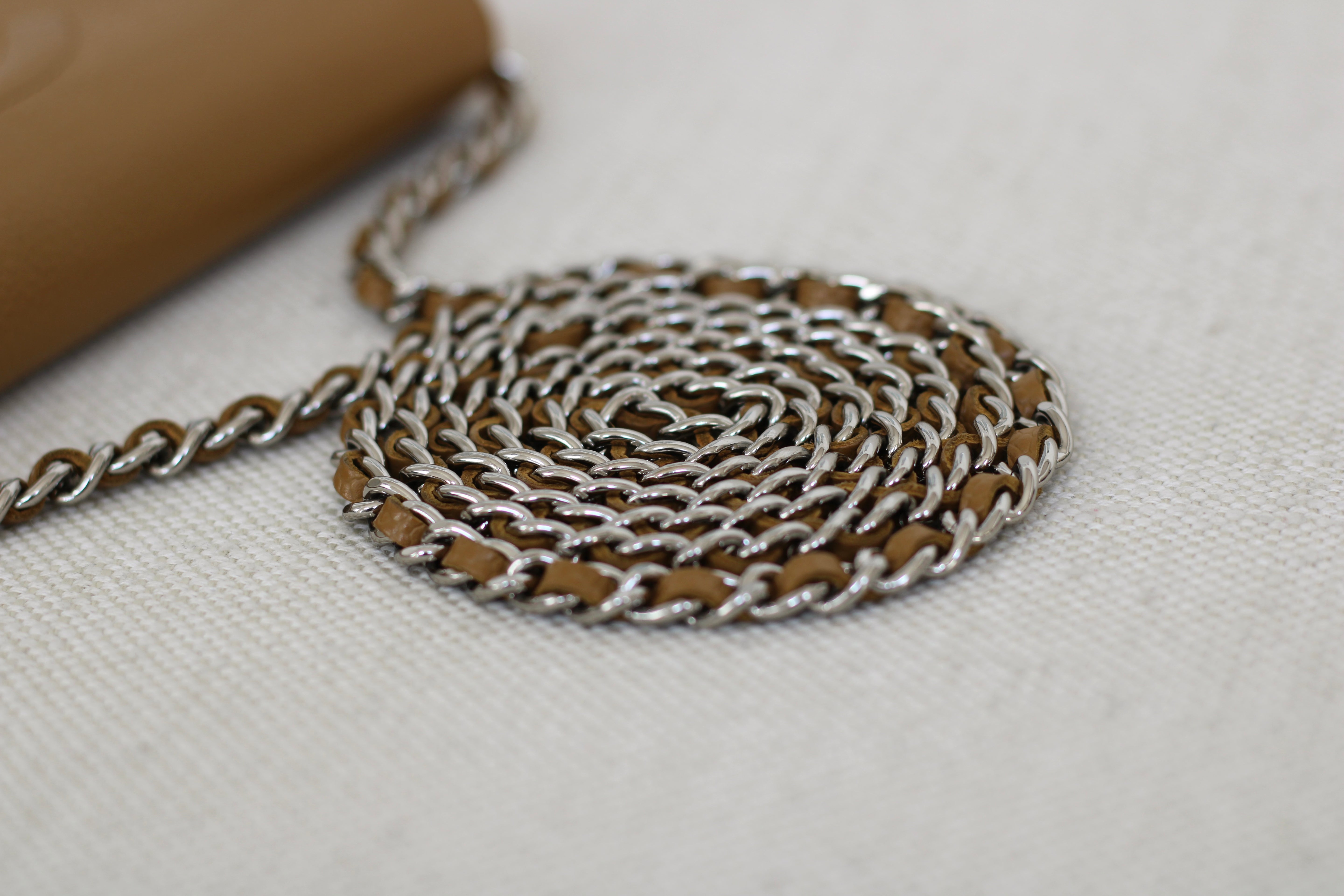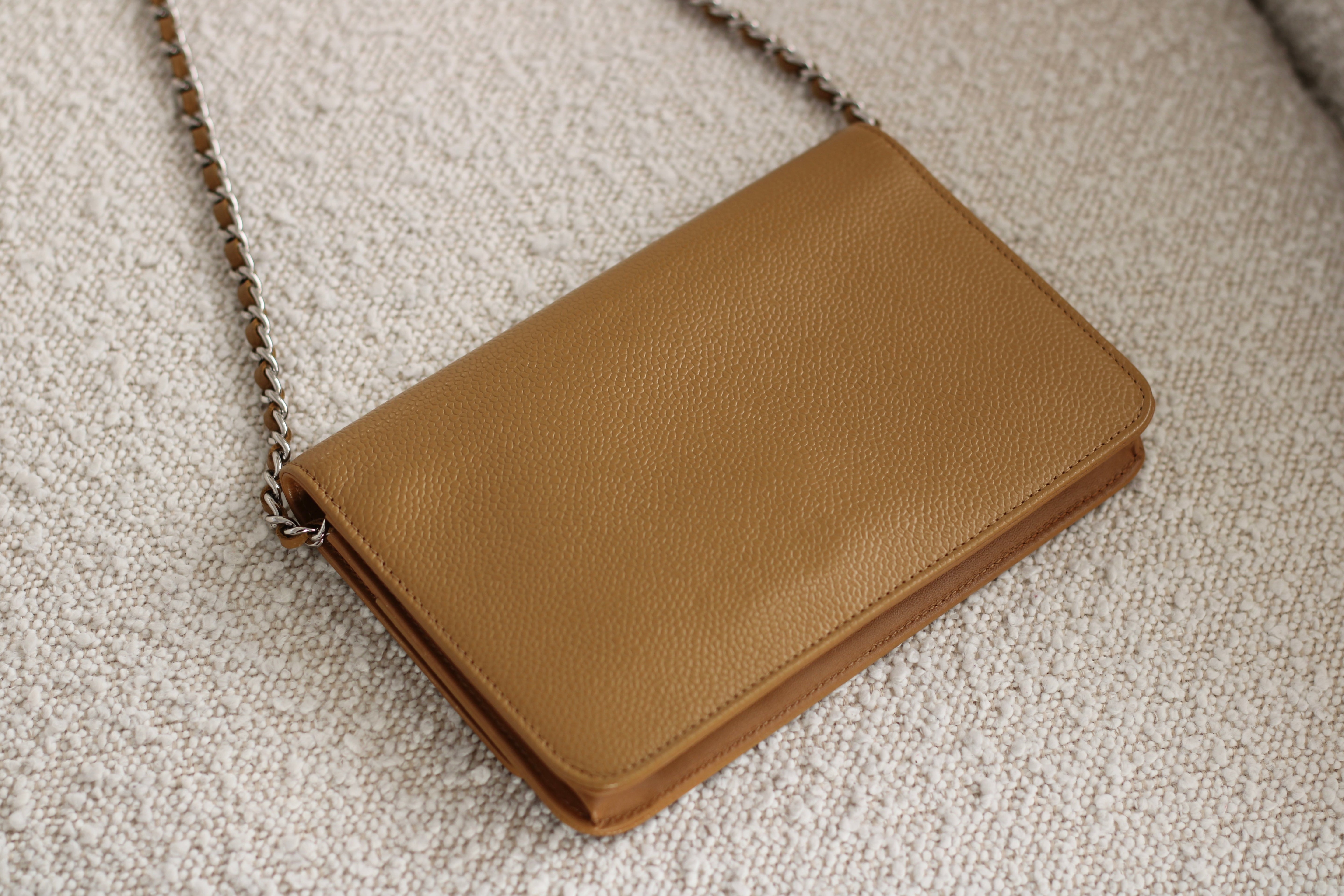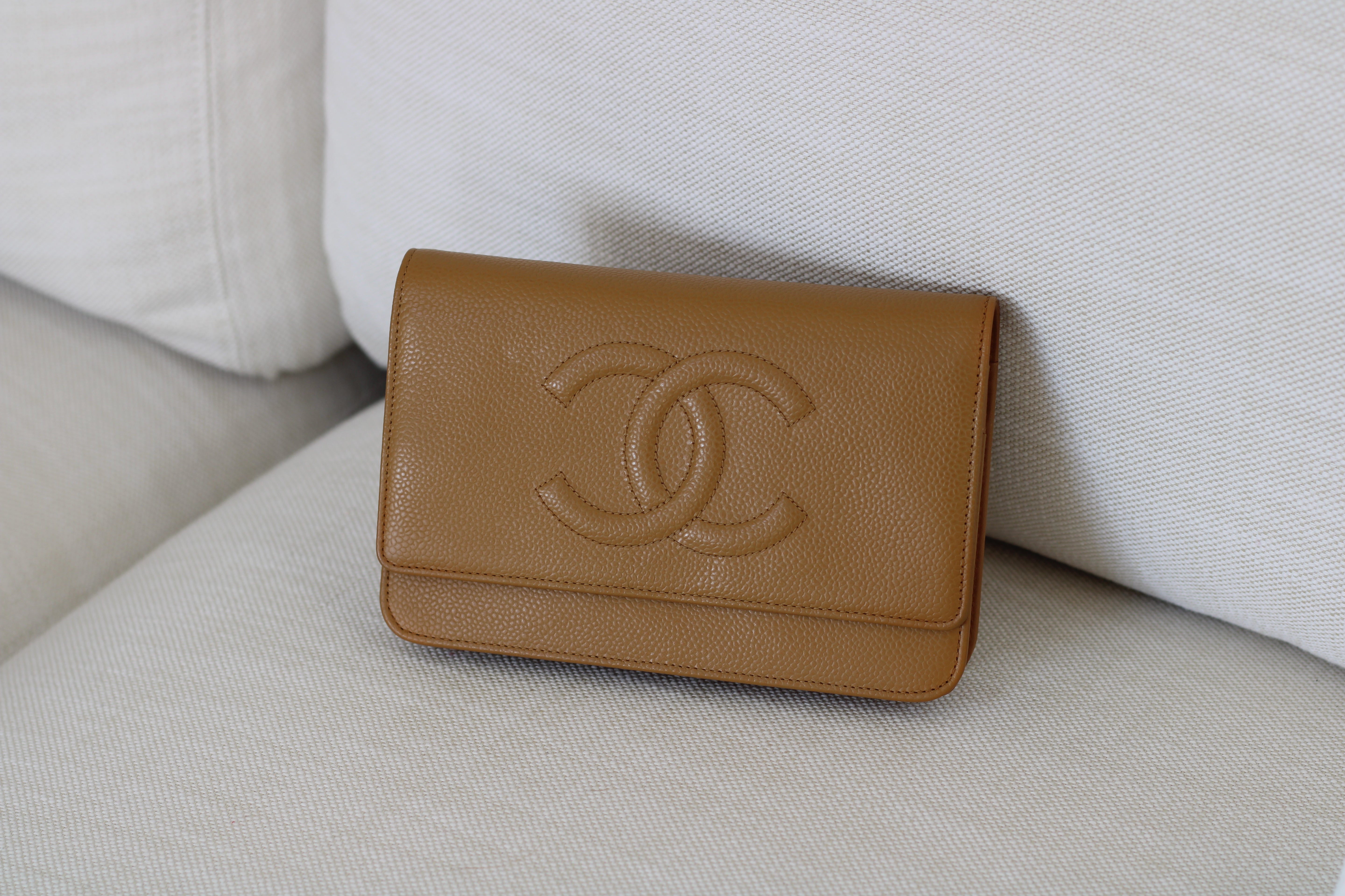 Chanel Dark Beige Caviar Wallet on Chain with Silver Hardware