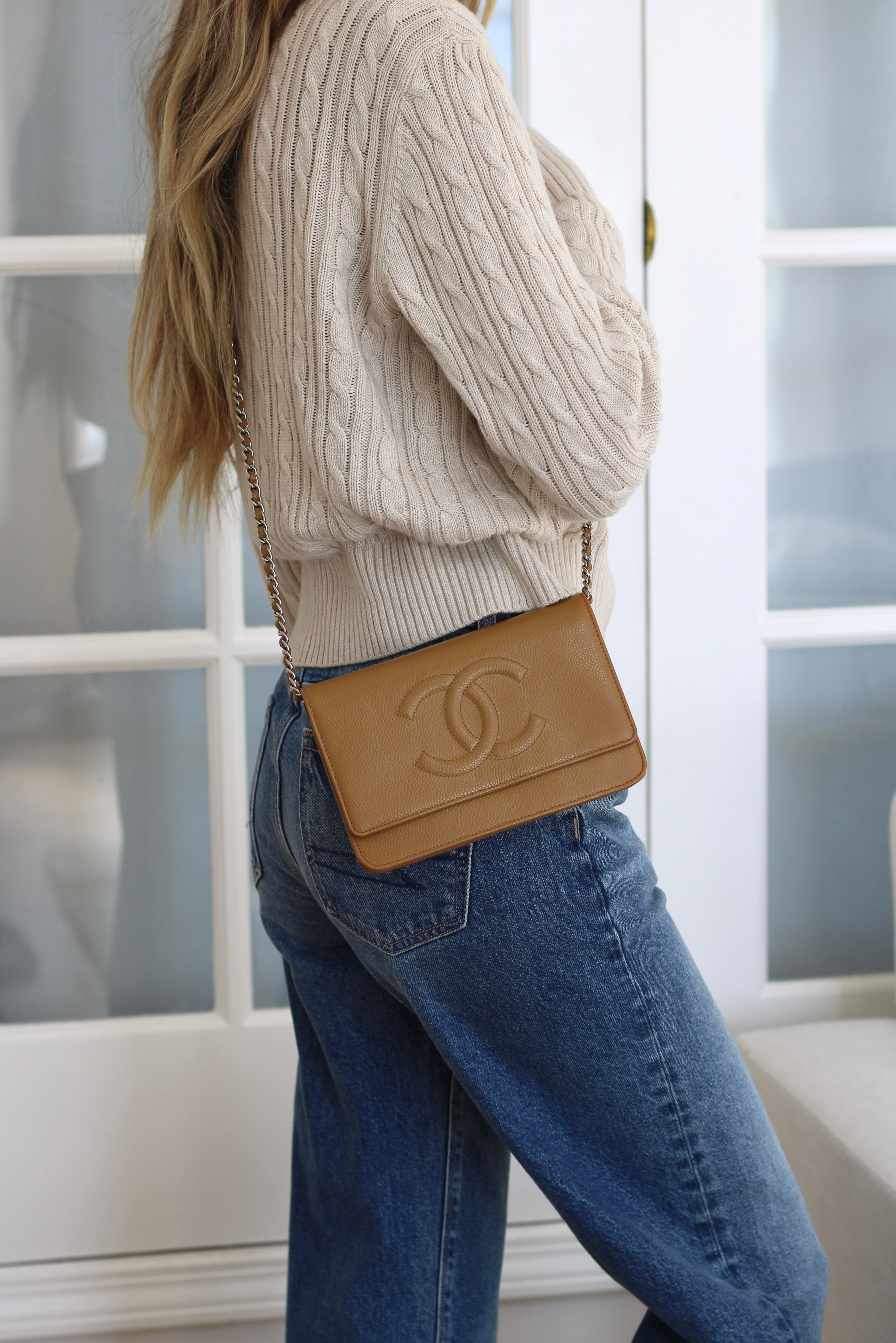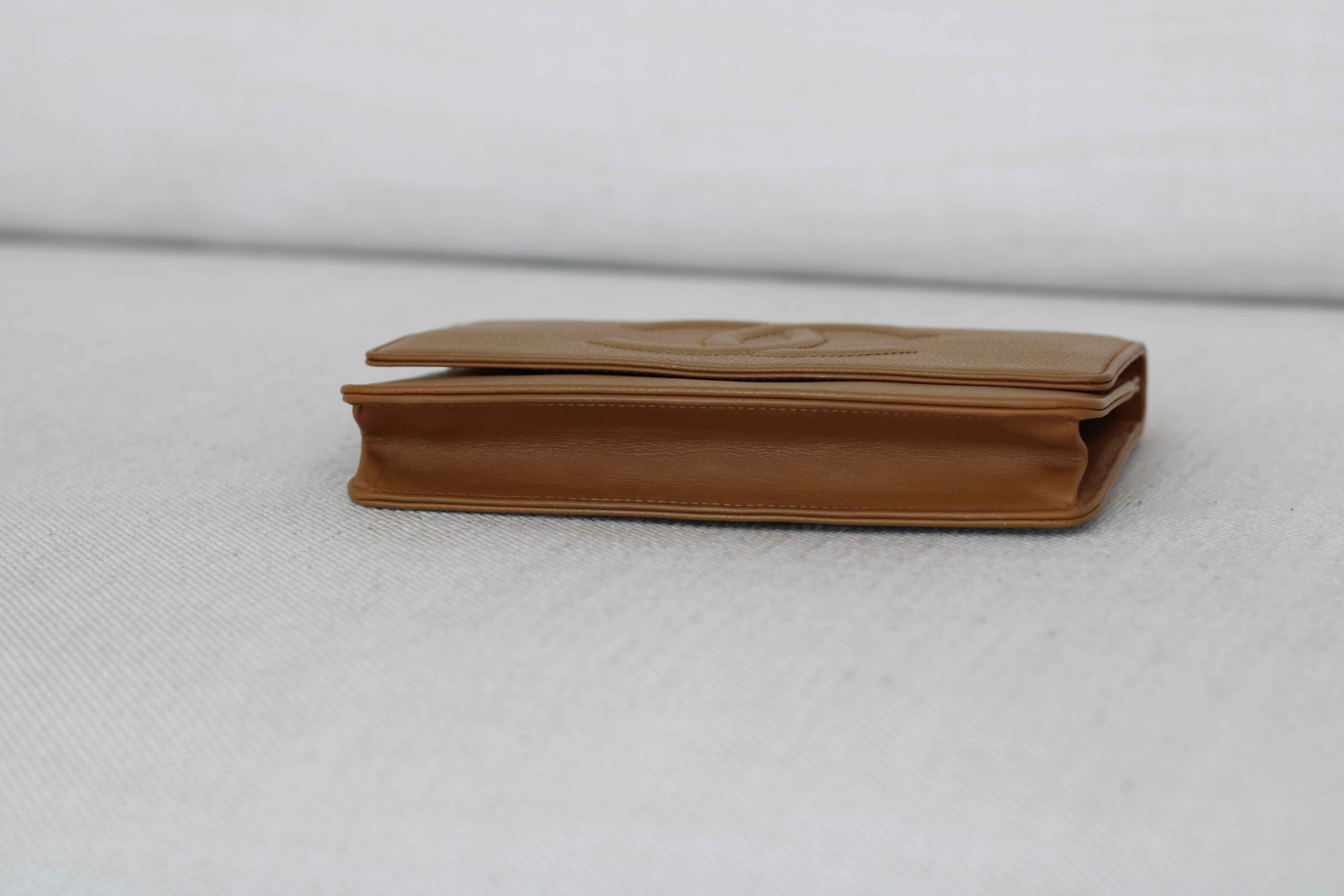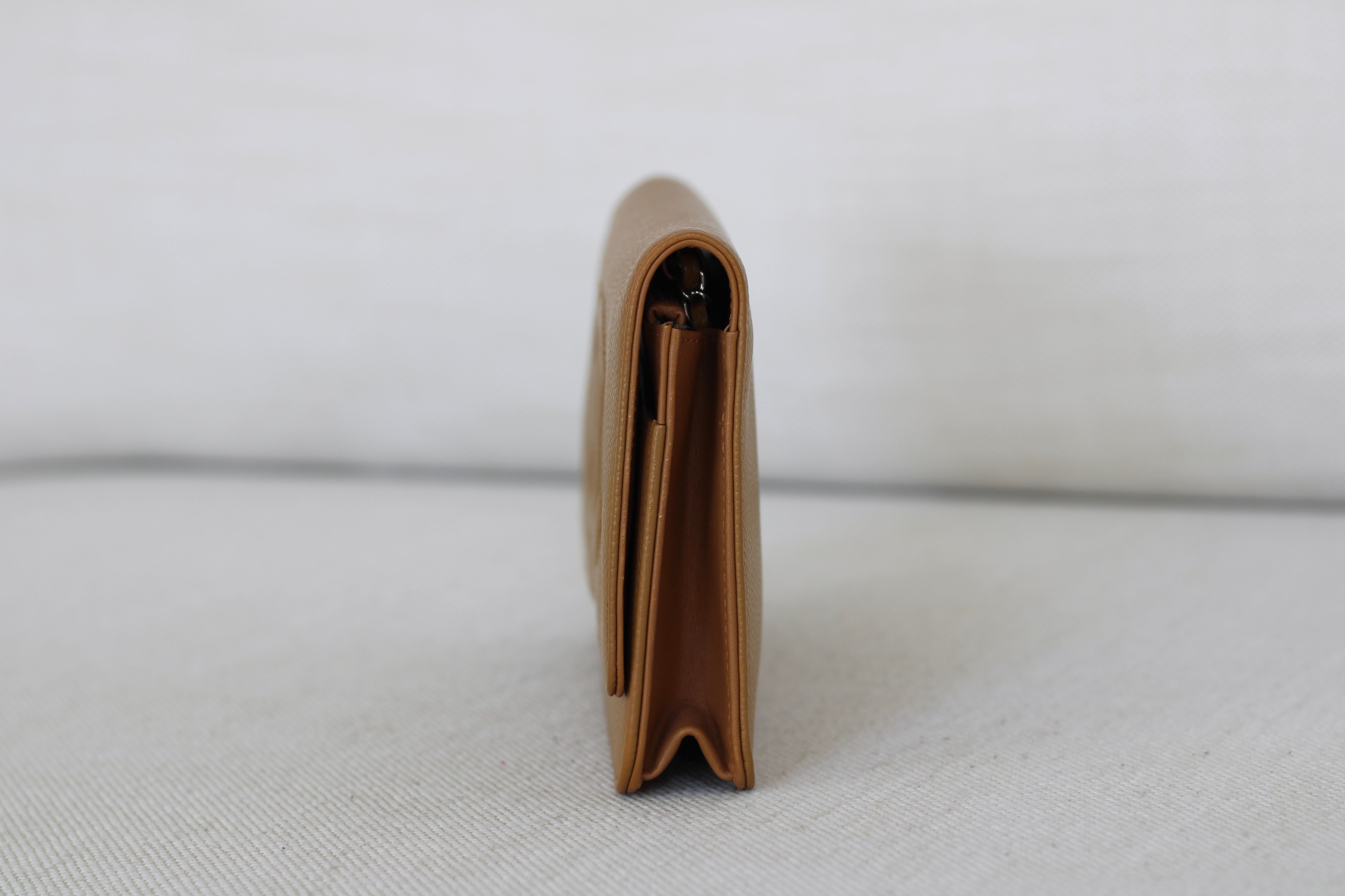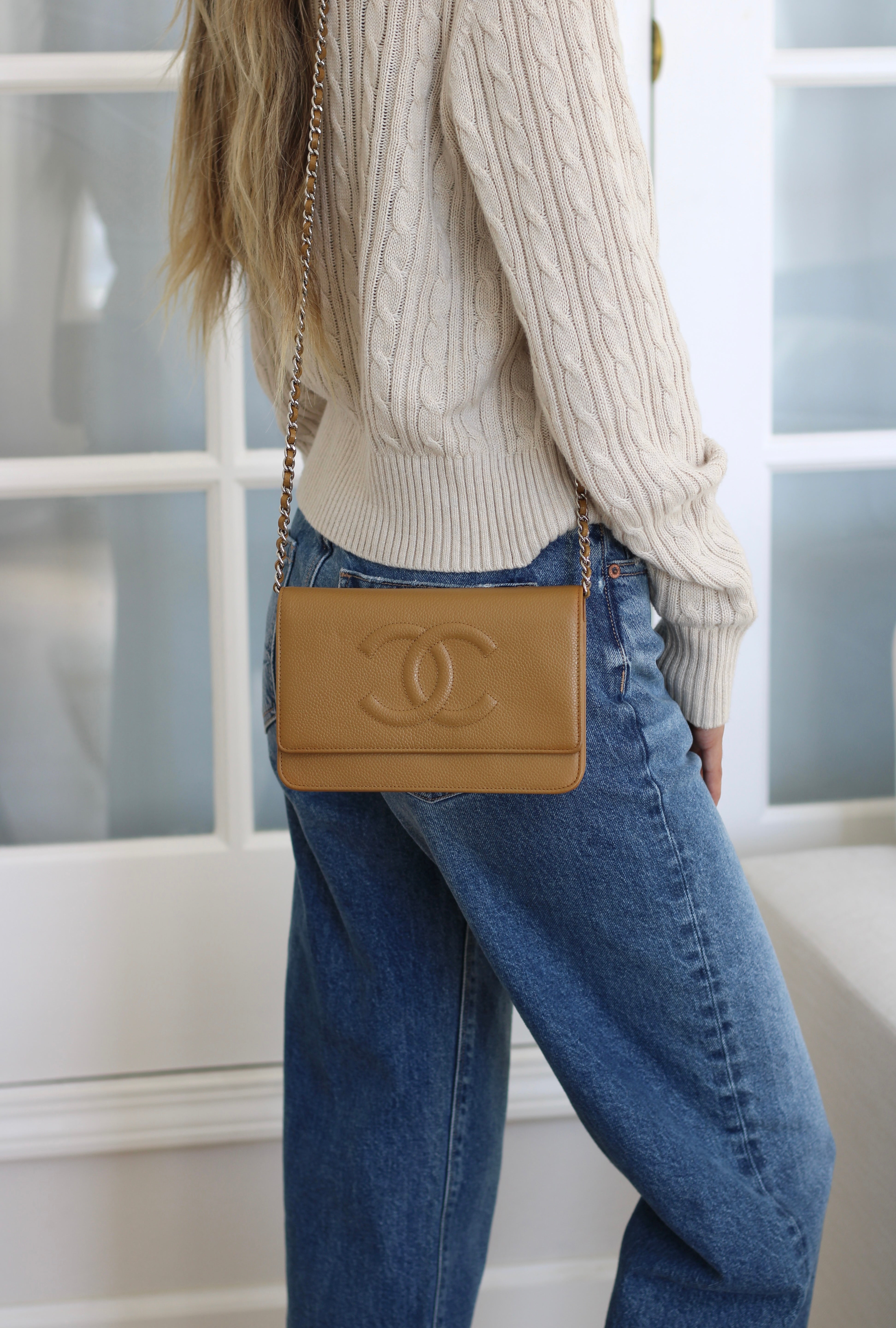 Chanel Dark Beige Caviar Wallet on Chain with Silver Hardware