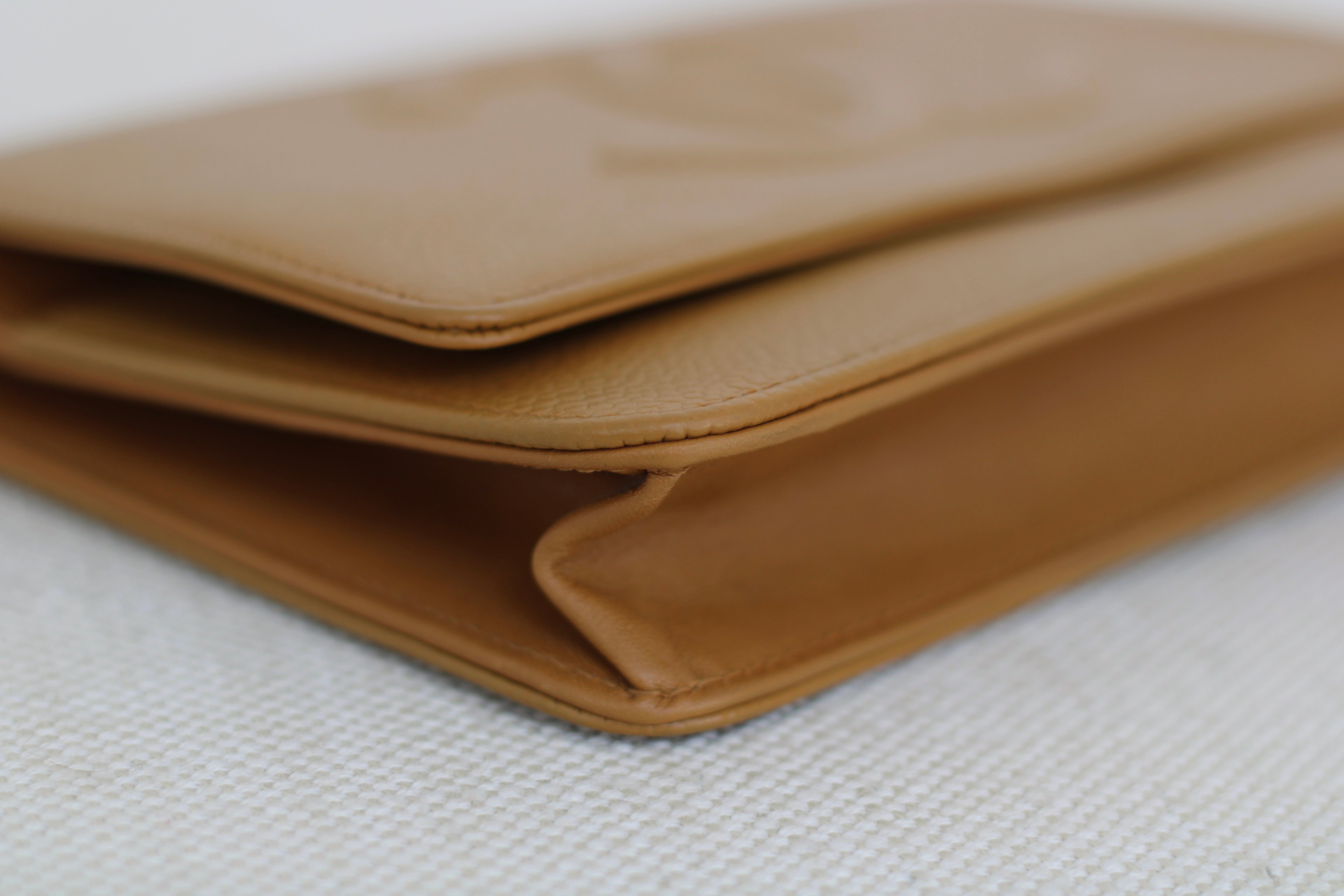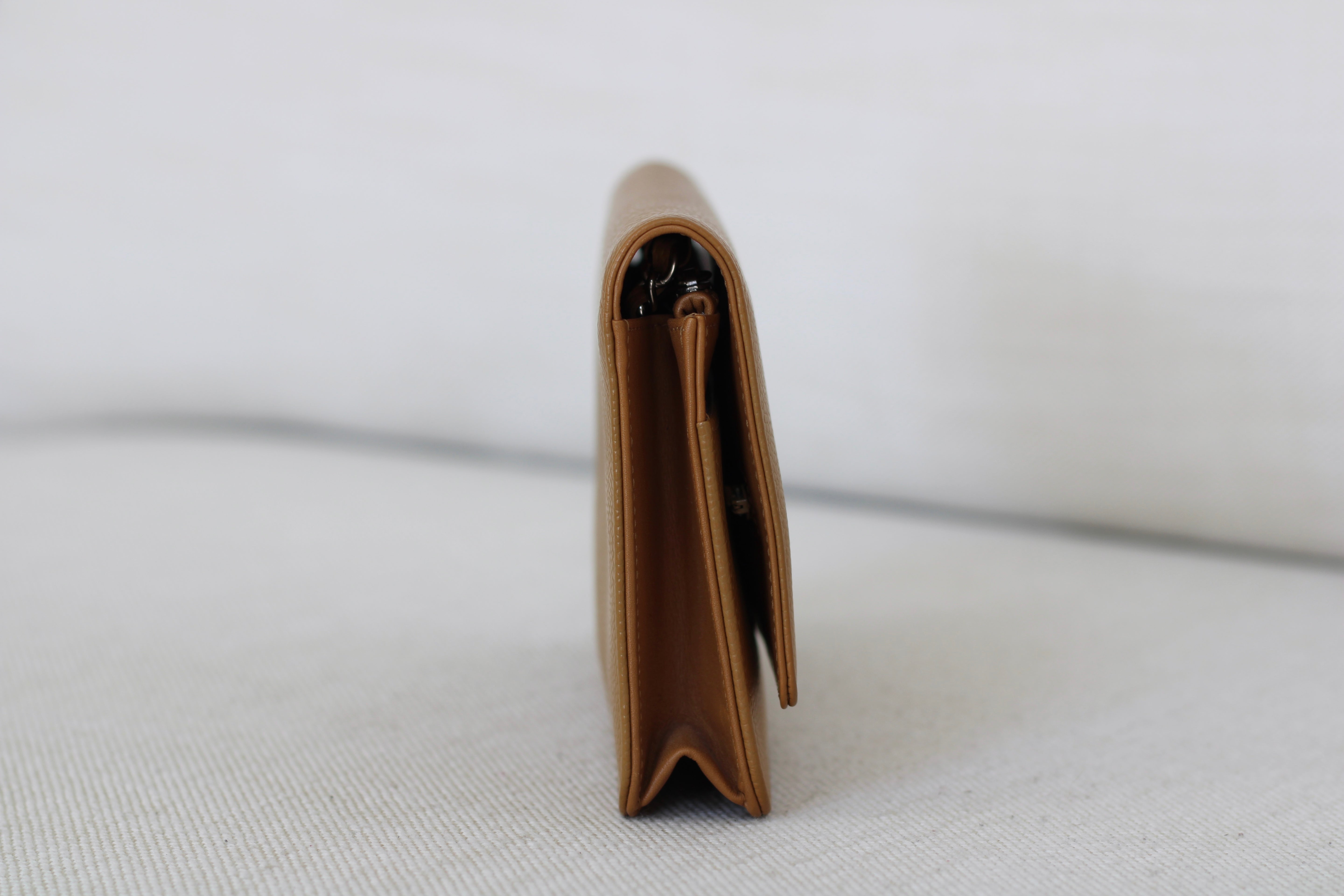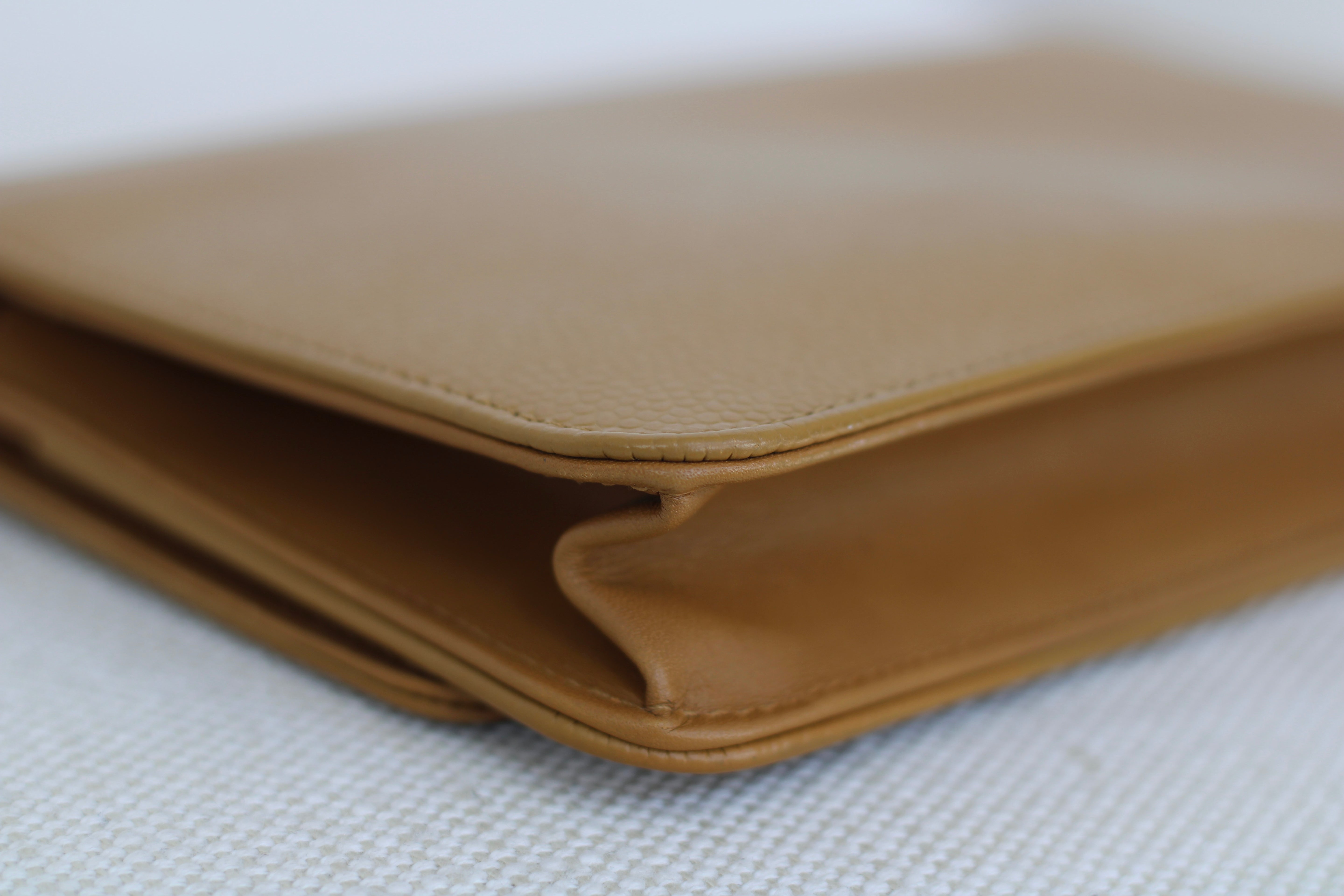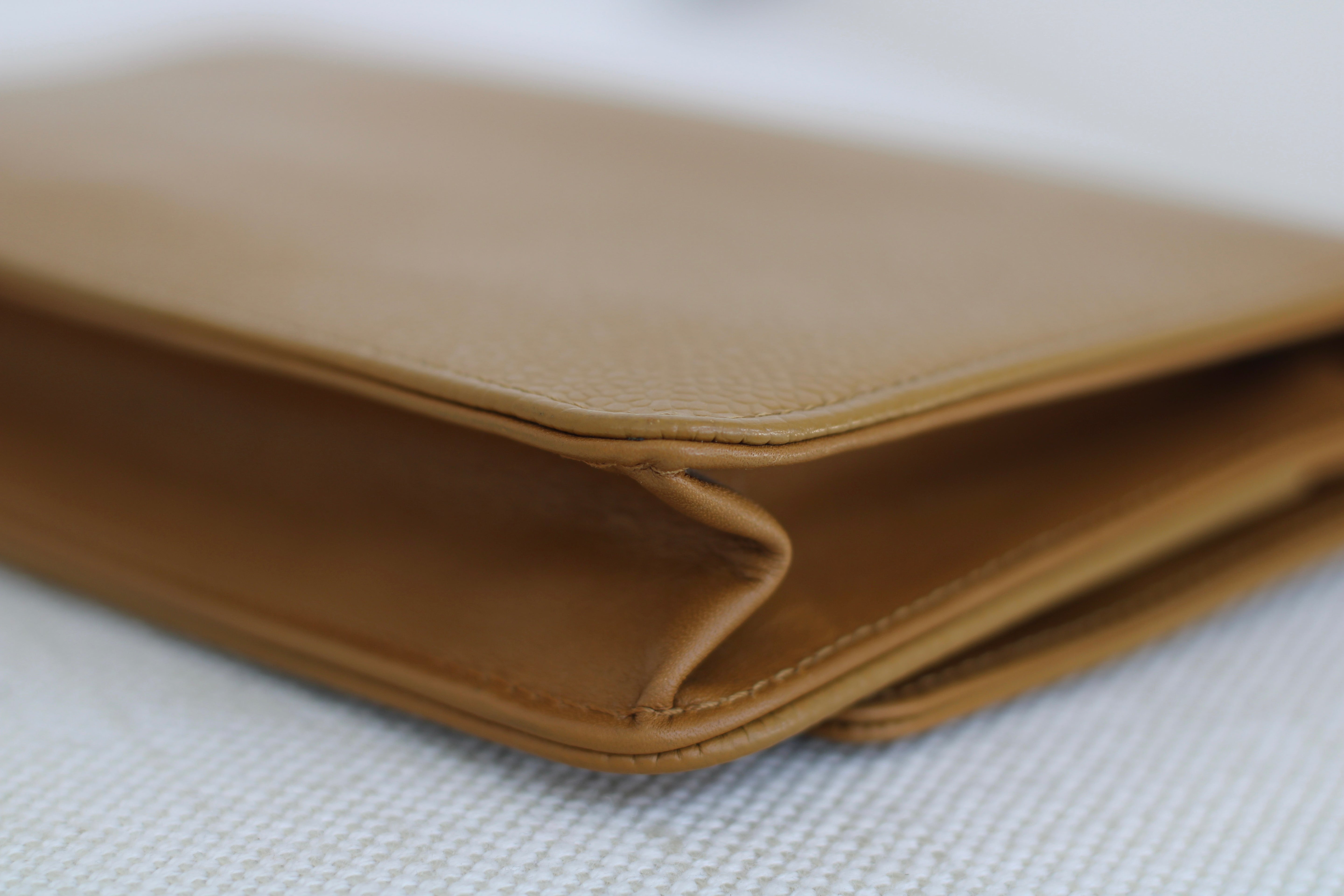 Excellent Condition. Stunning shade of dark beige with golden undertones in beautiful caviar leather. Excellent structure and corners. A small indent on interior as pictured. Brilliant silver hardware with very minimal hairline scratches.