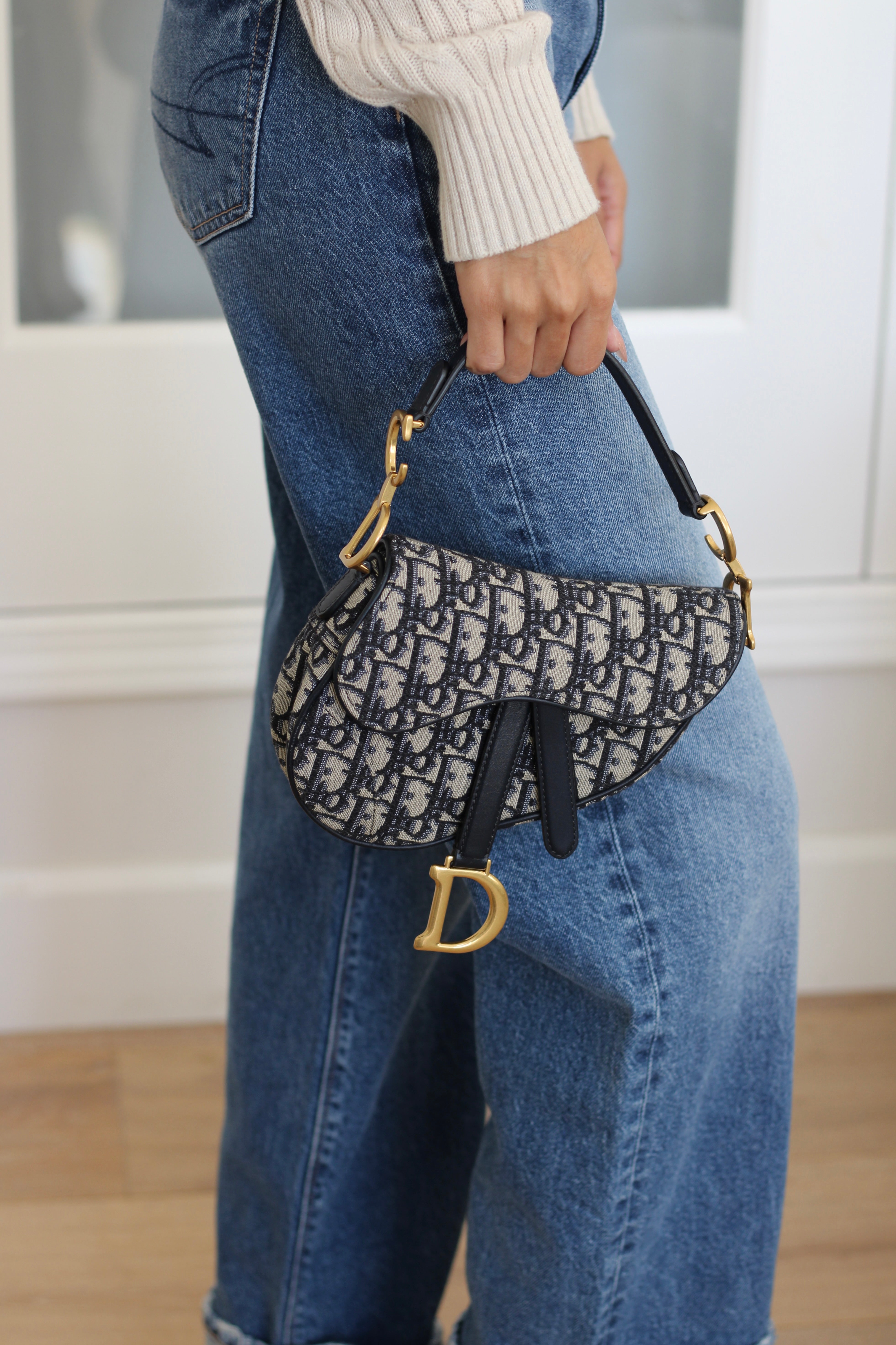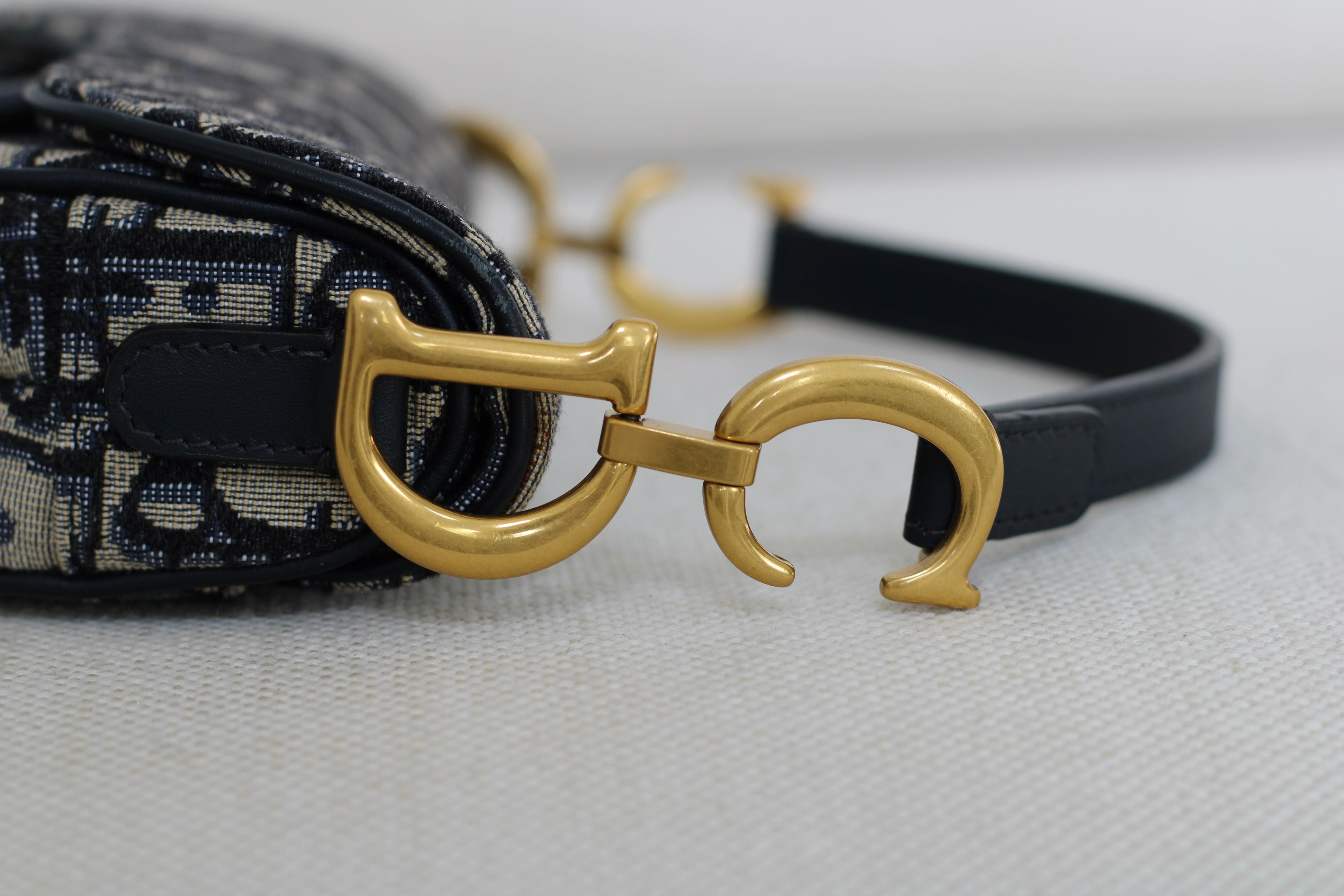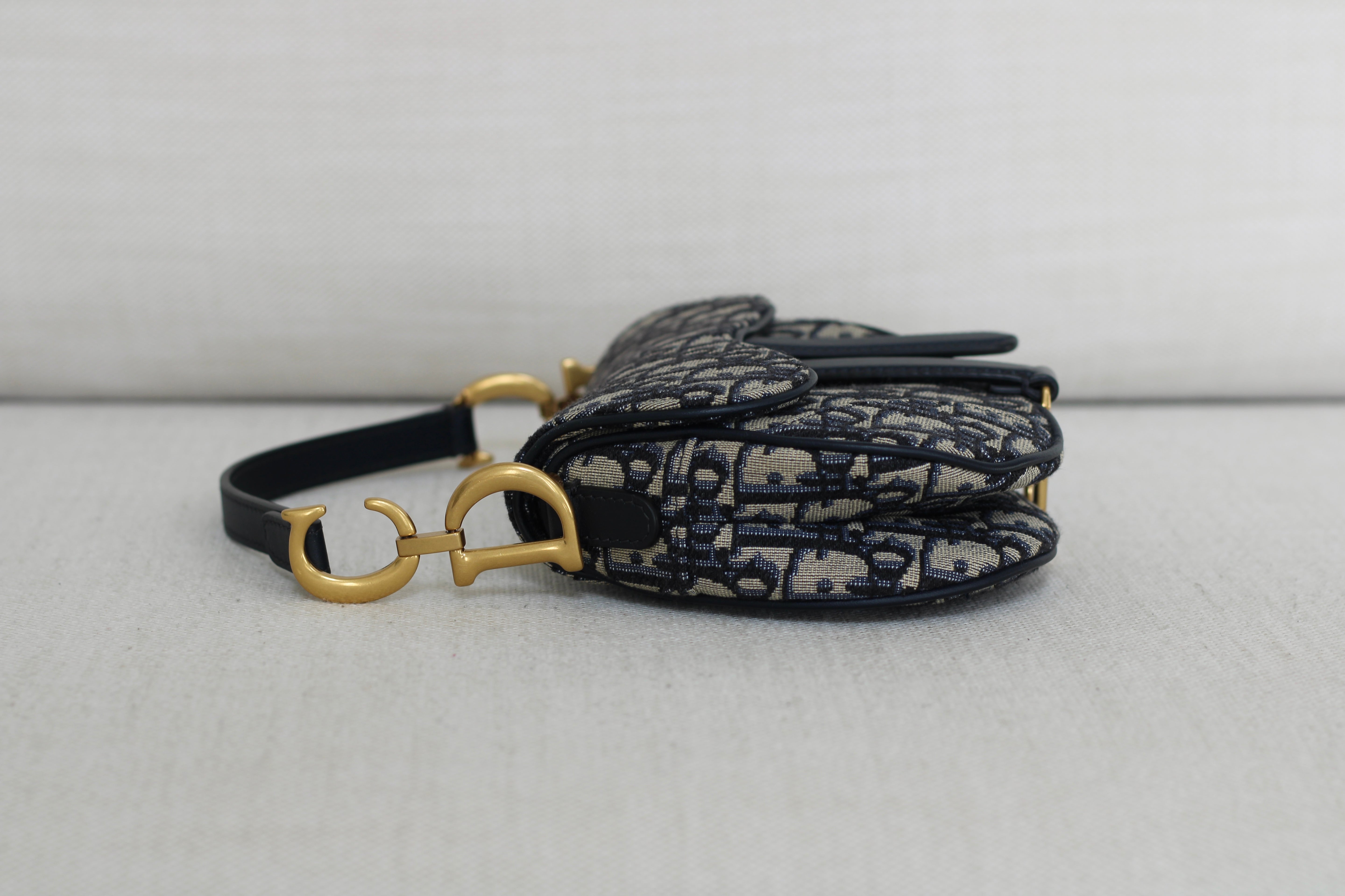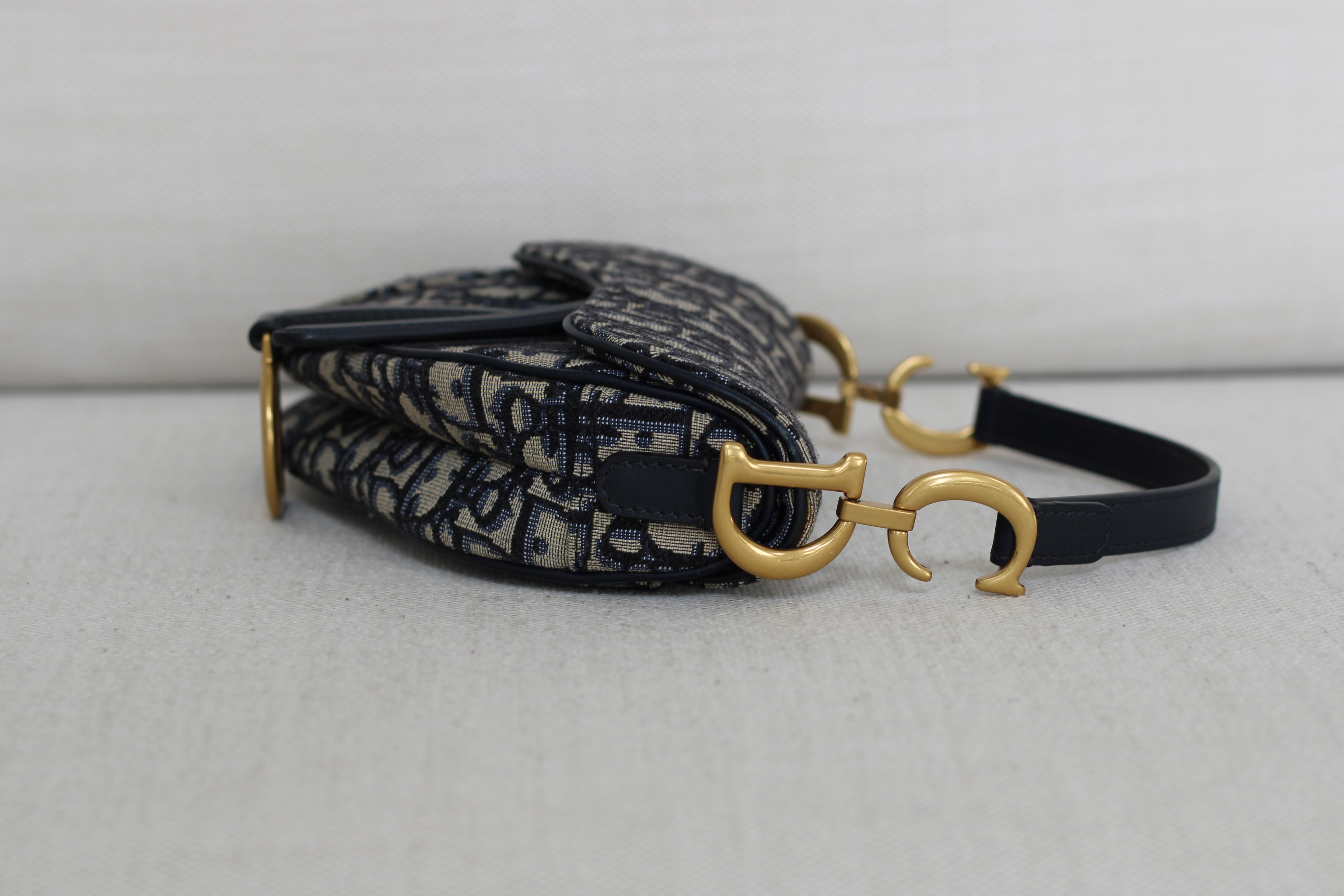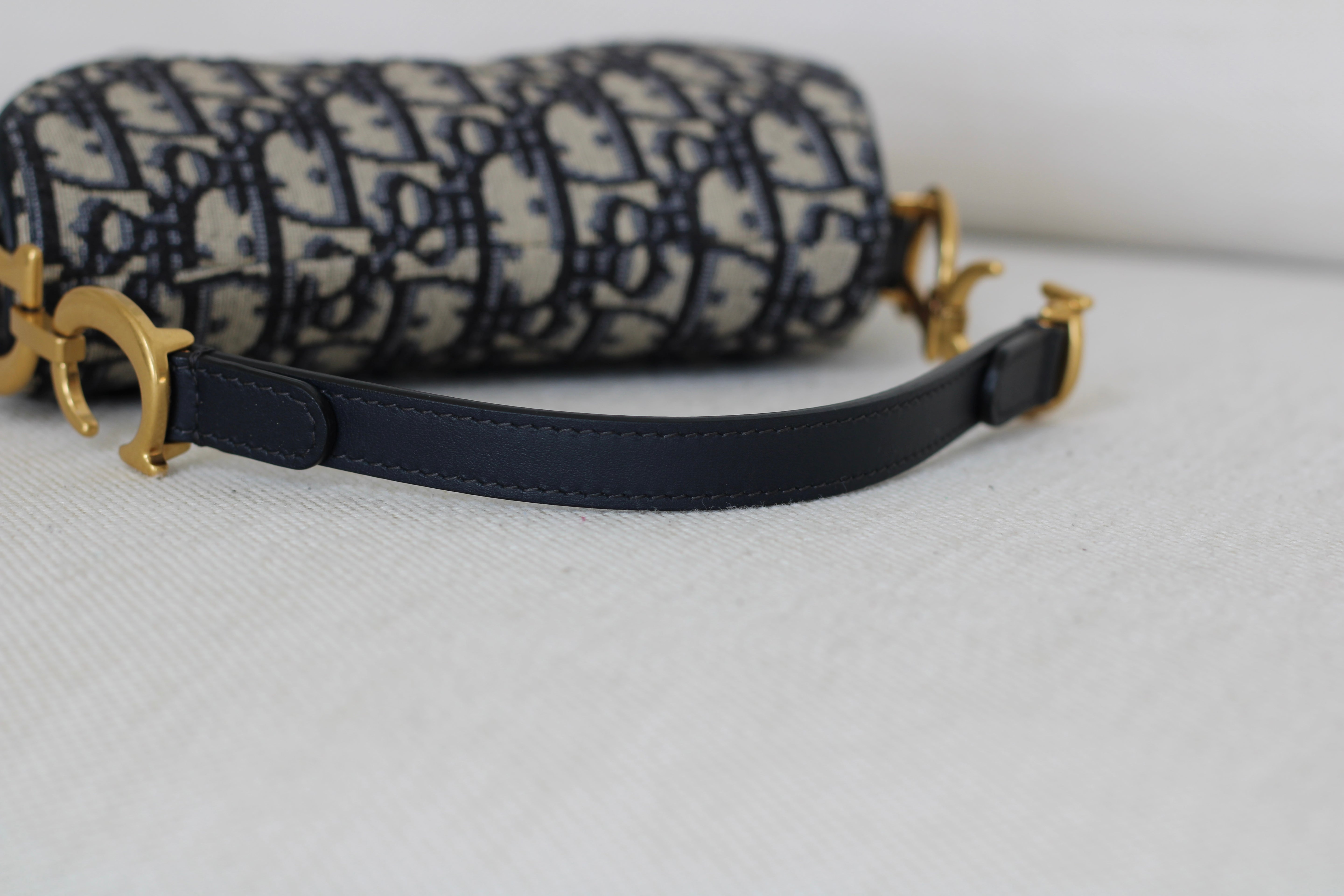 Dior Oblique Blue Canvas Mini Saddle Bag