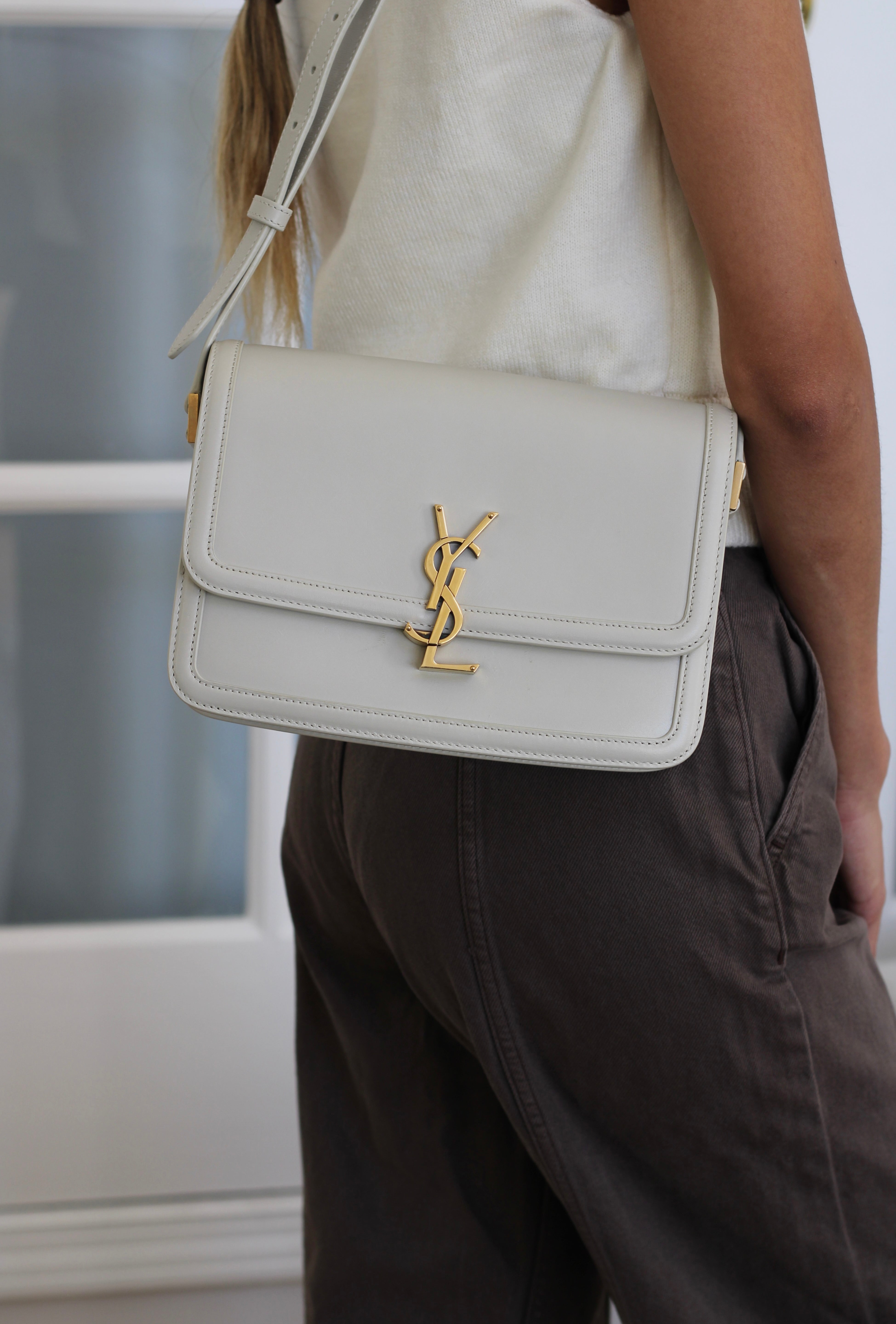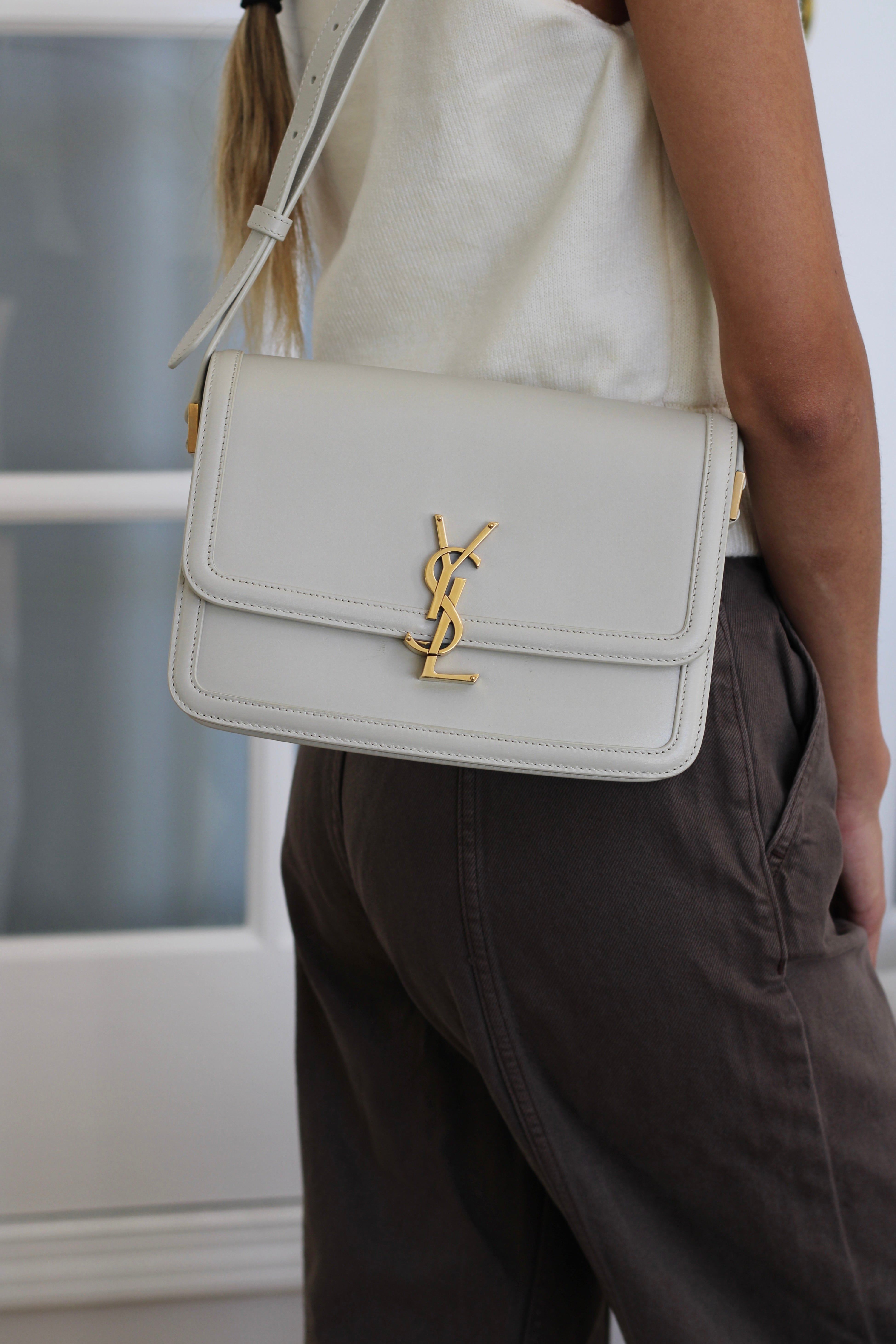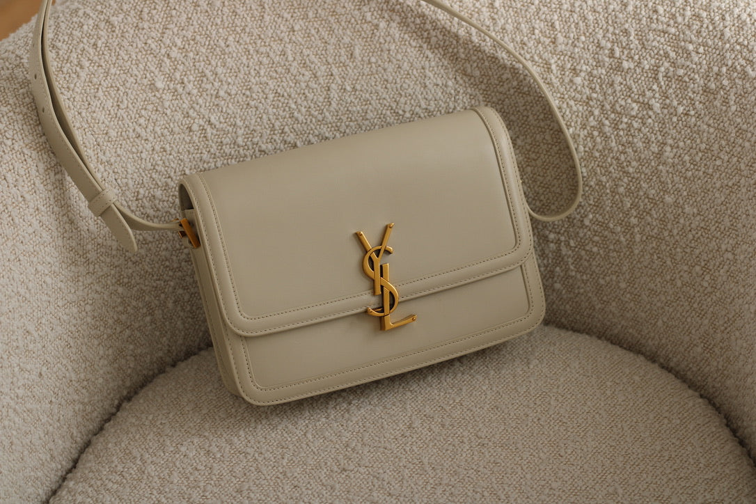 Saint Laurent Cream Calfskin Medium Solferino Bag