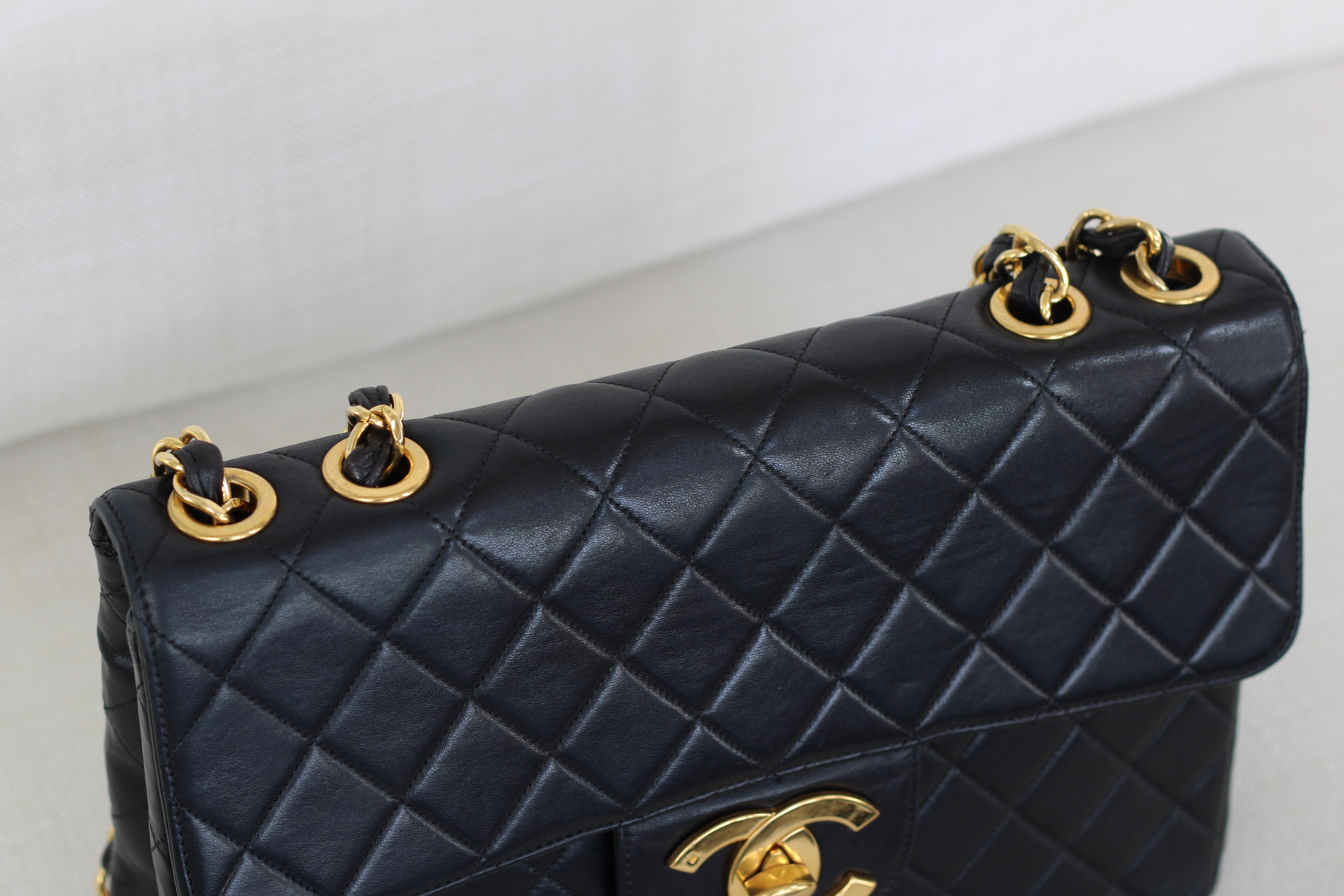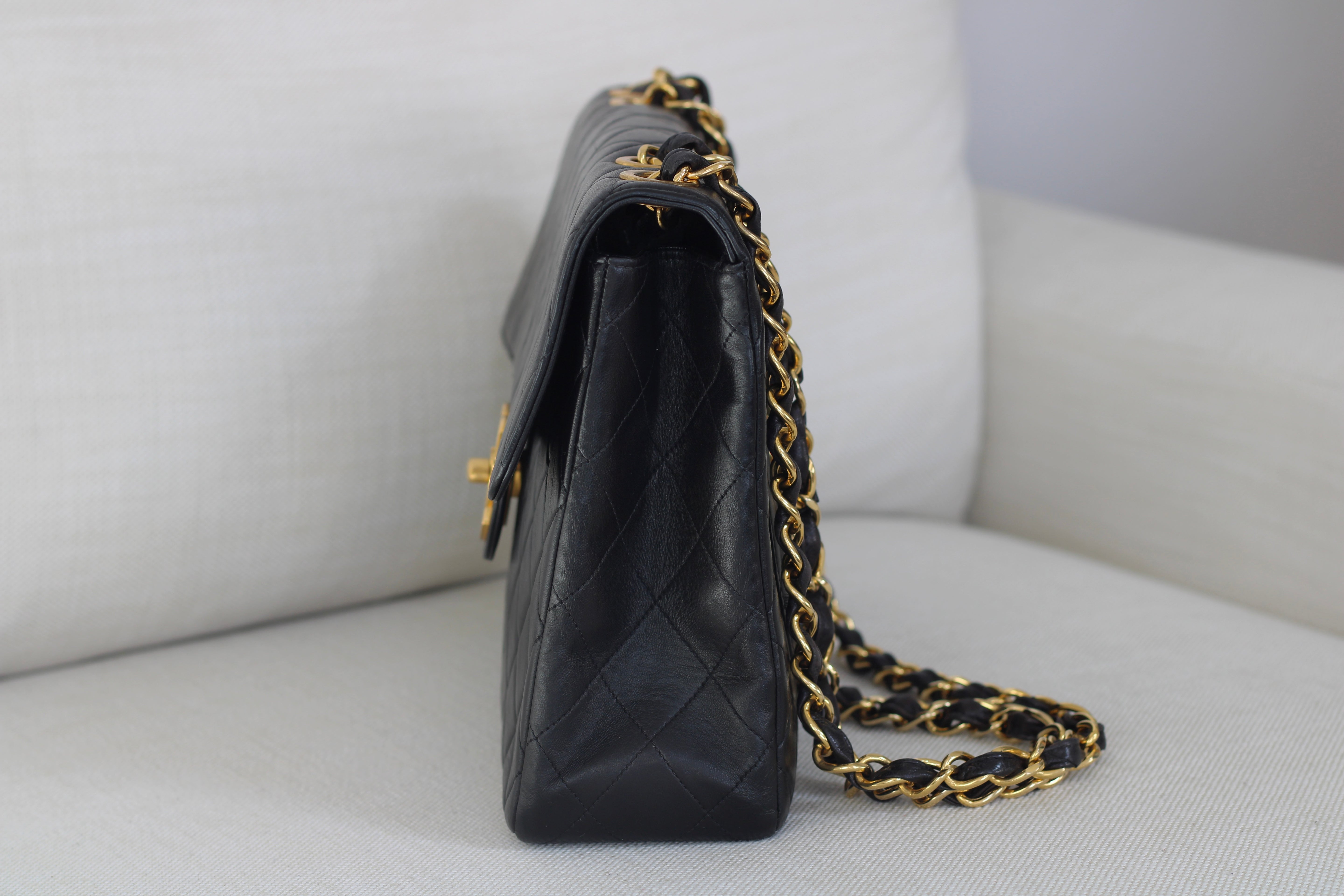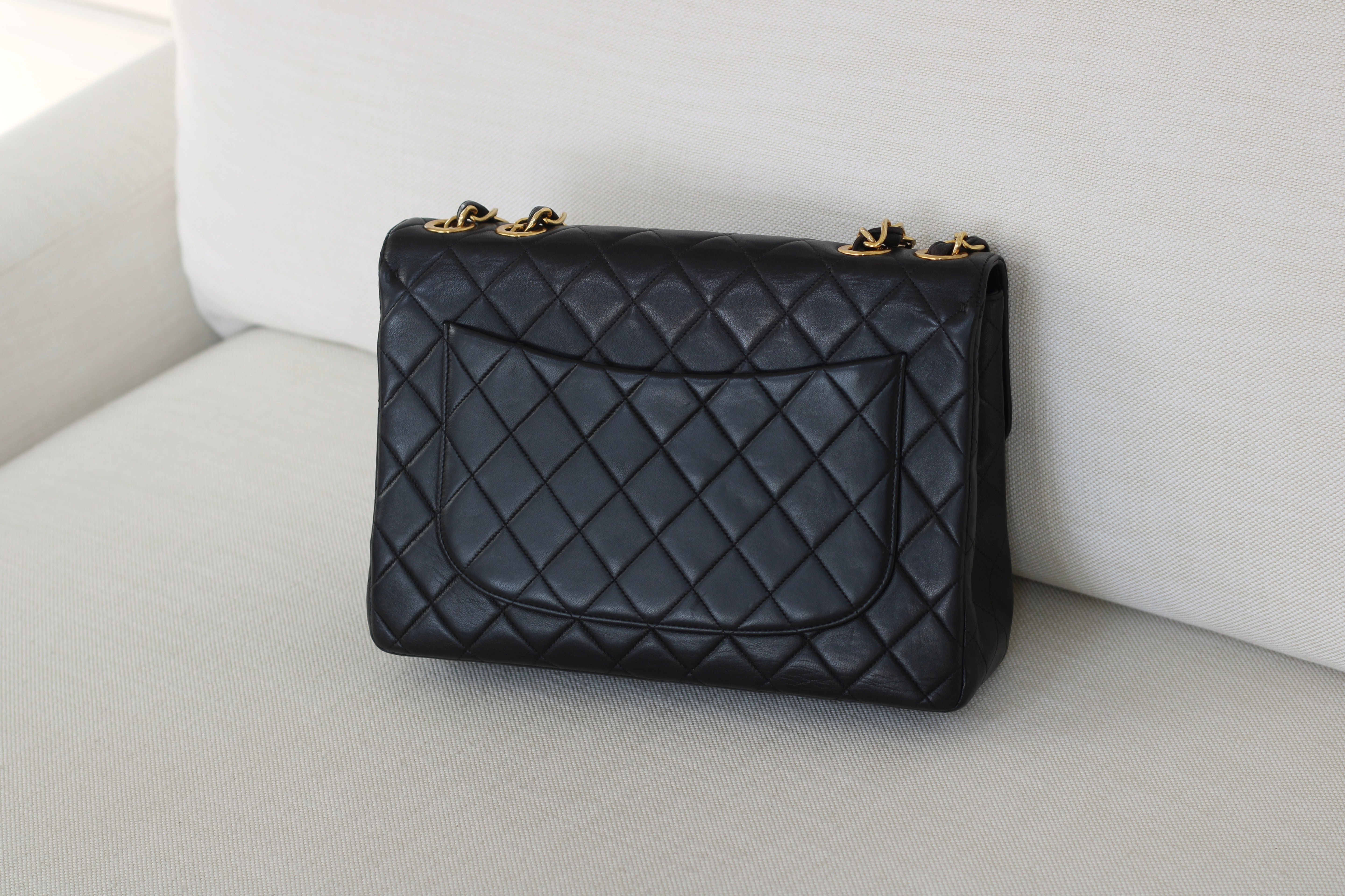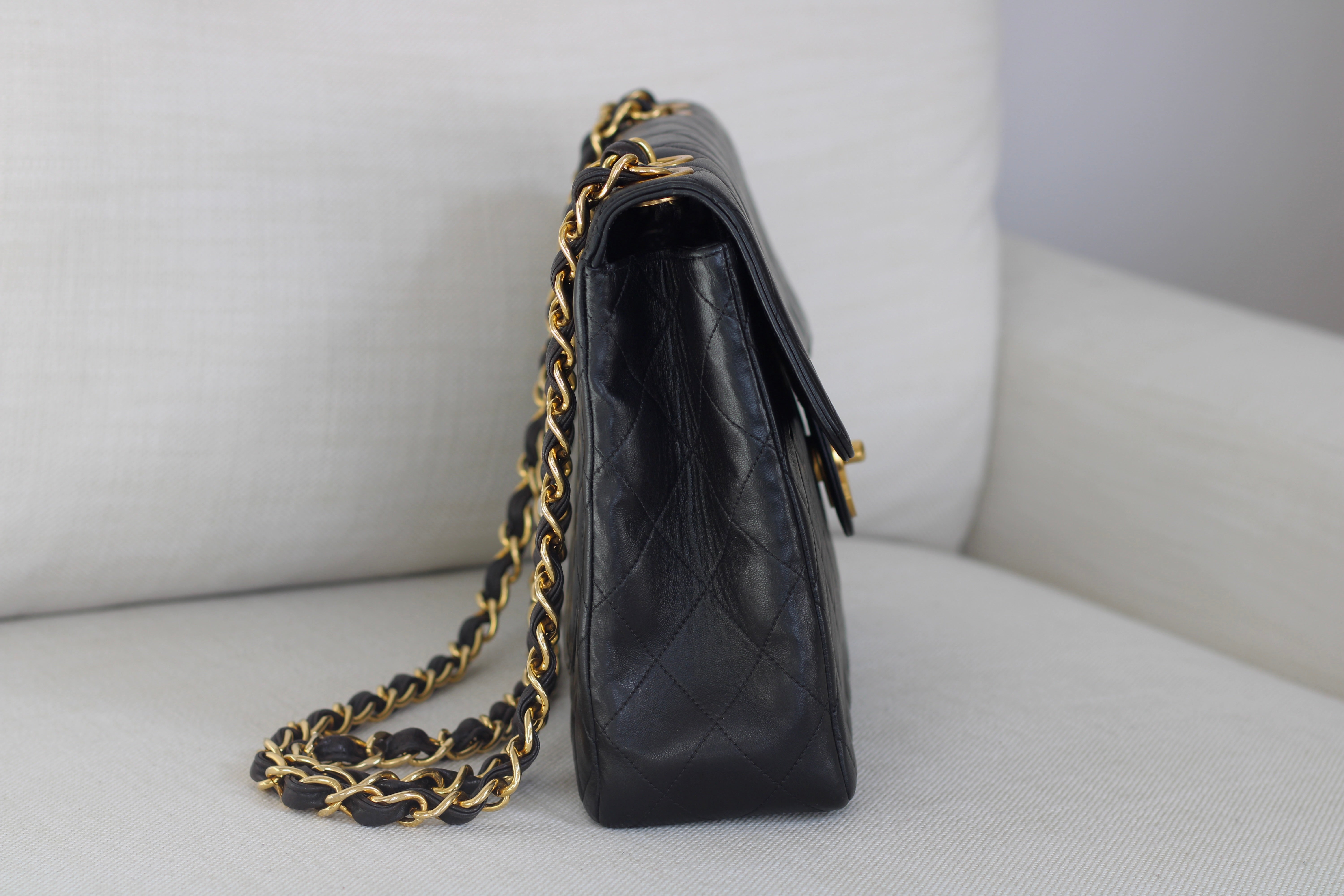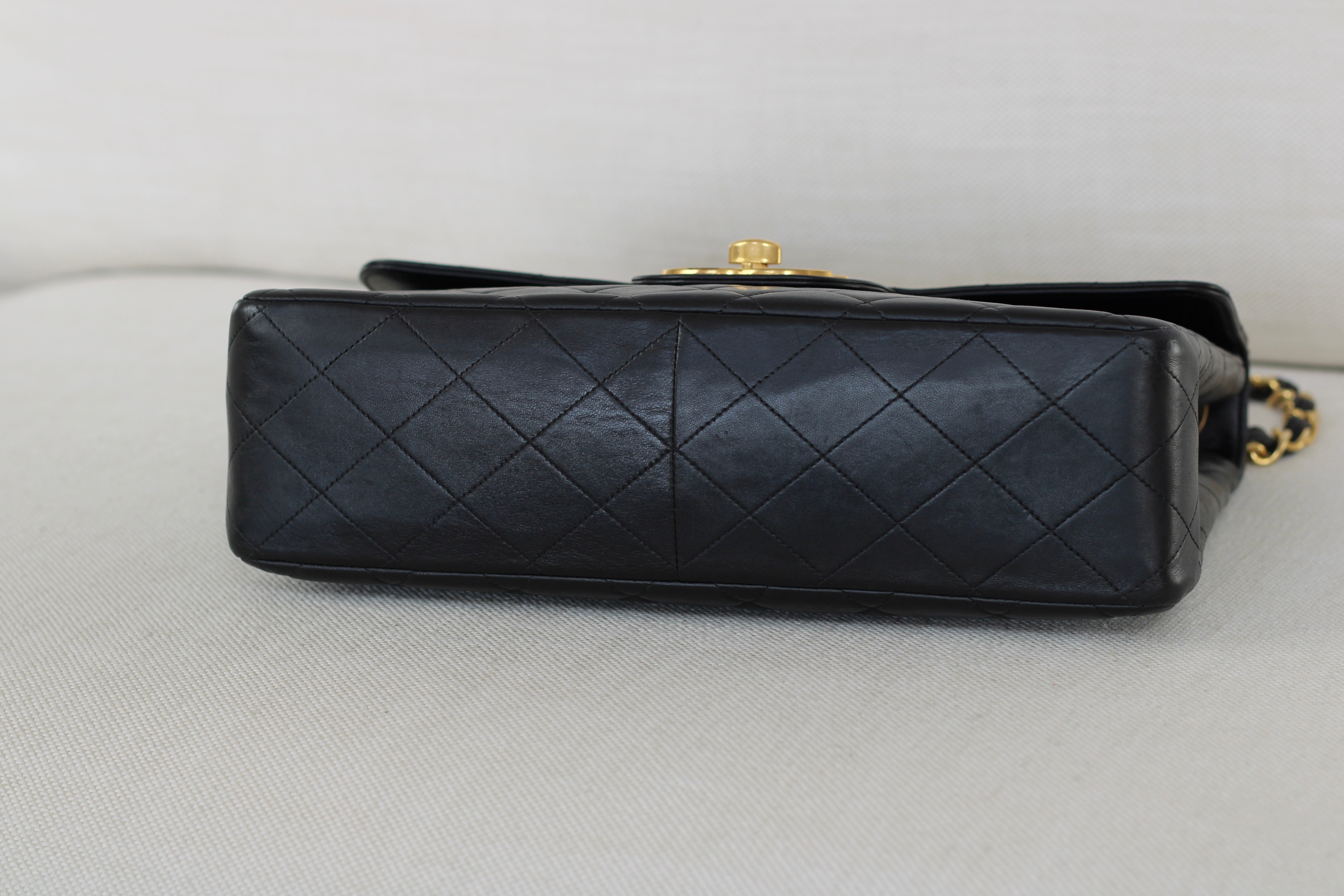 Vintage Black Lambskin Jumbo Single Flap with 24k Gold Hardware