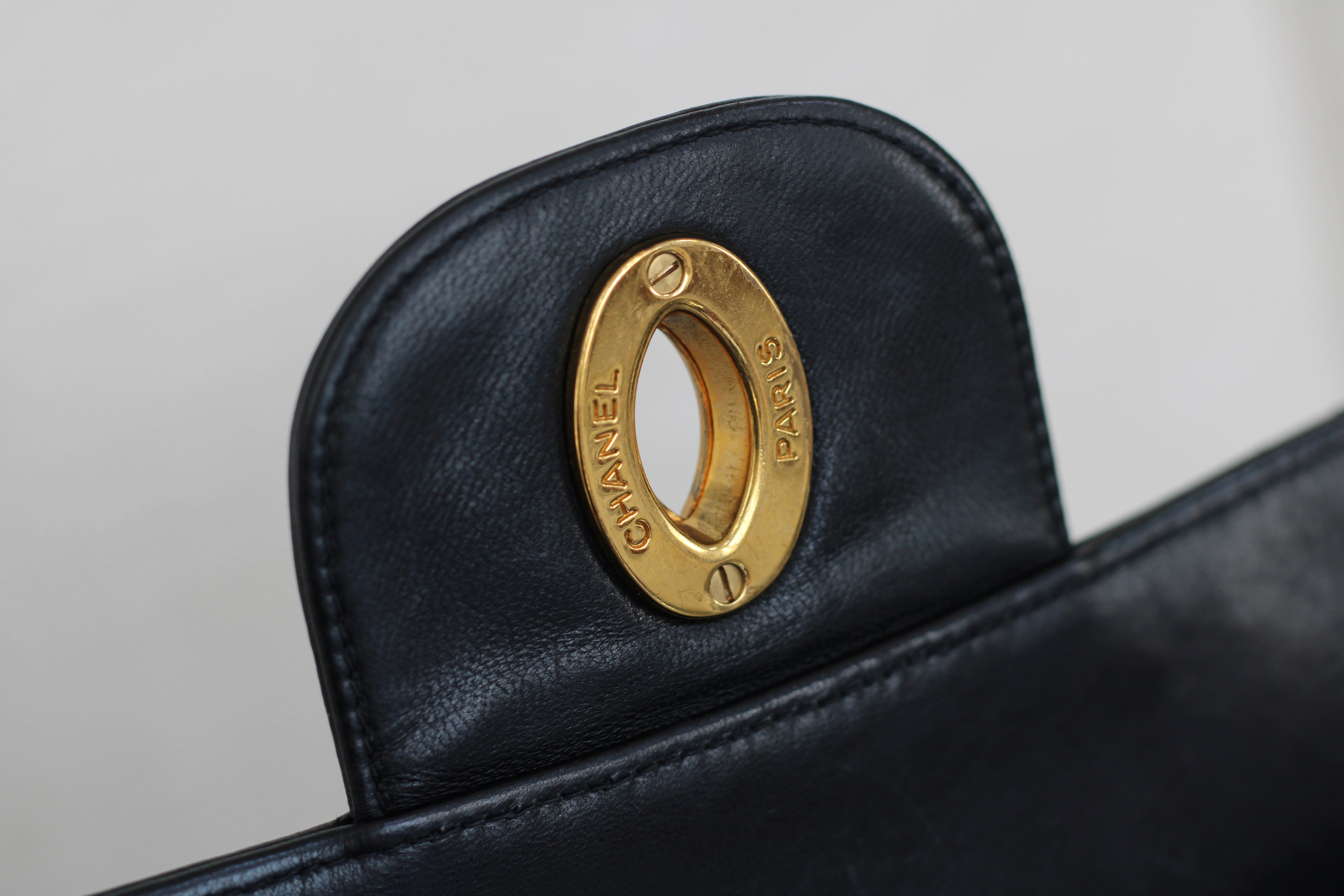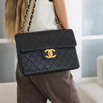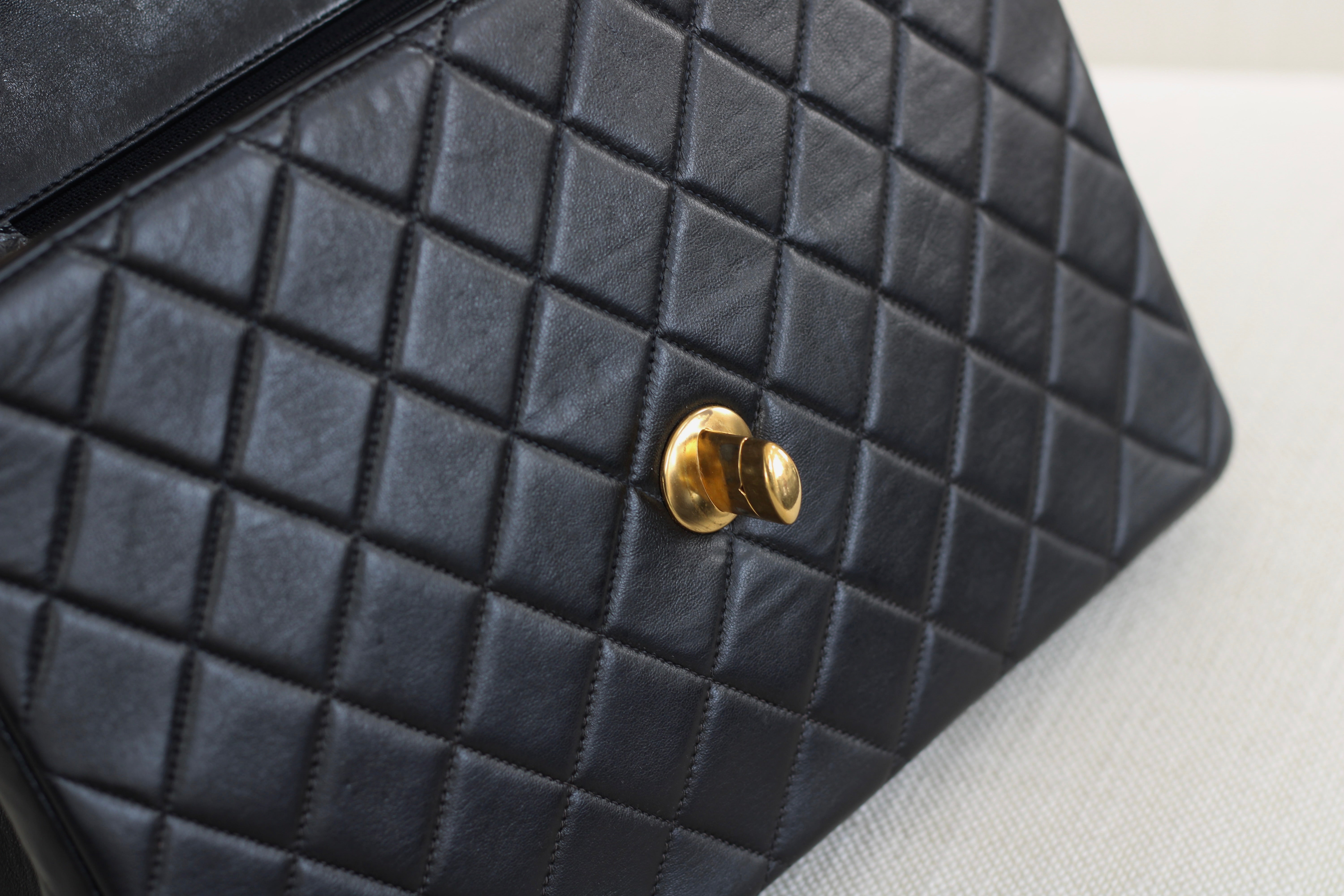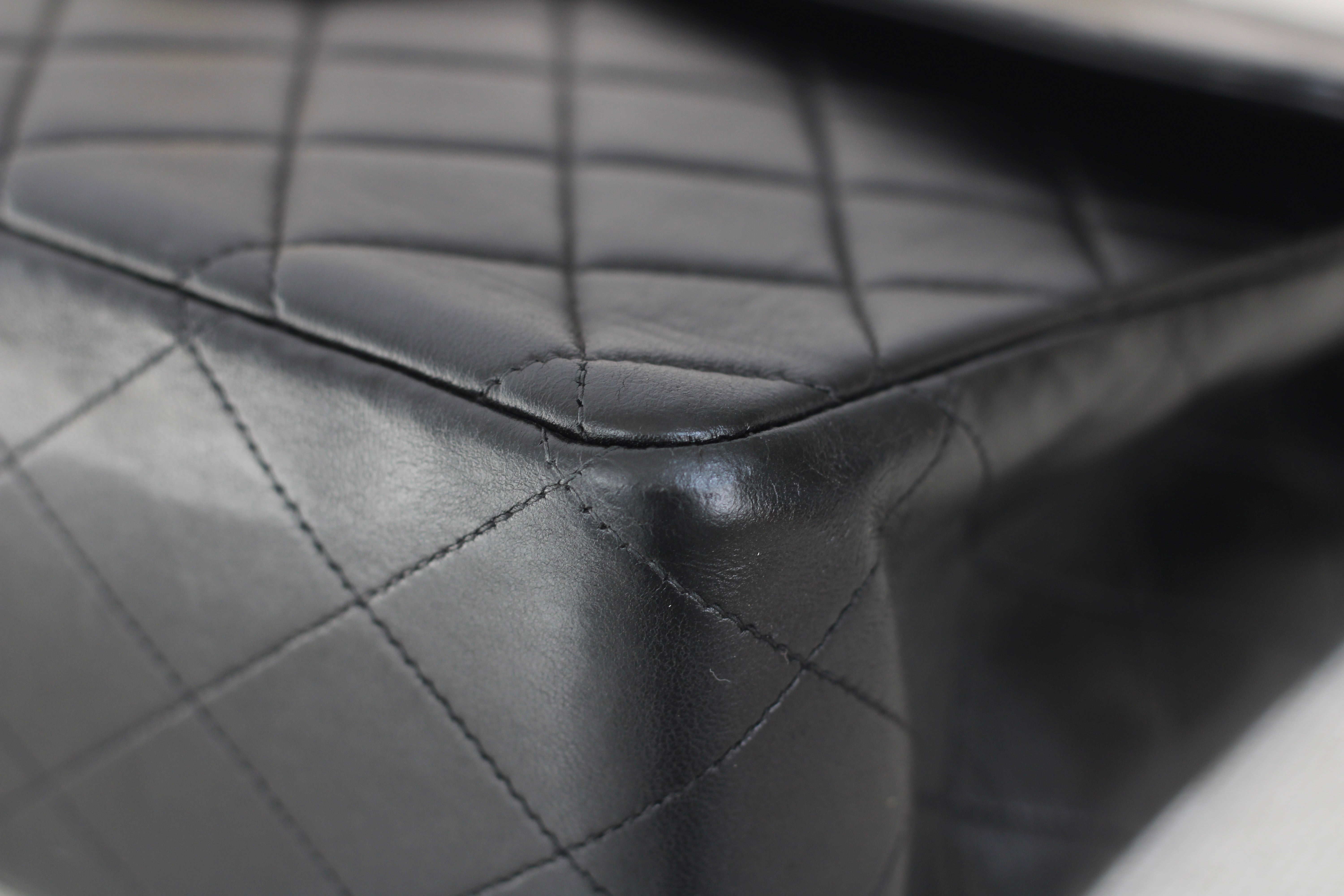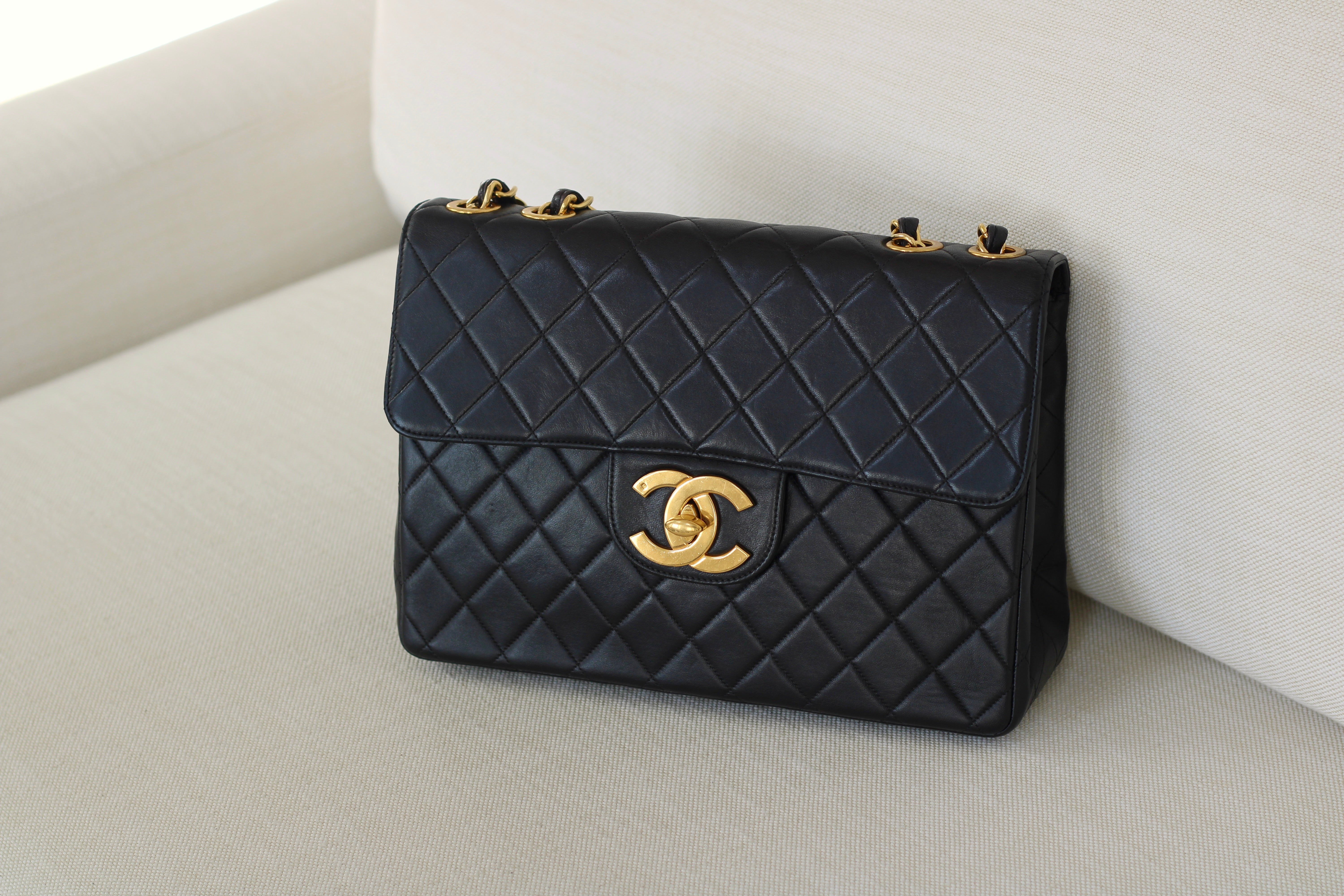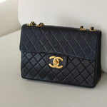 Vintage Black Lambskin Jumbo Single Flap with 24k Gold Hardware