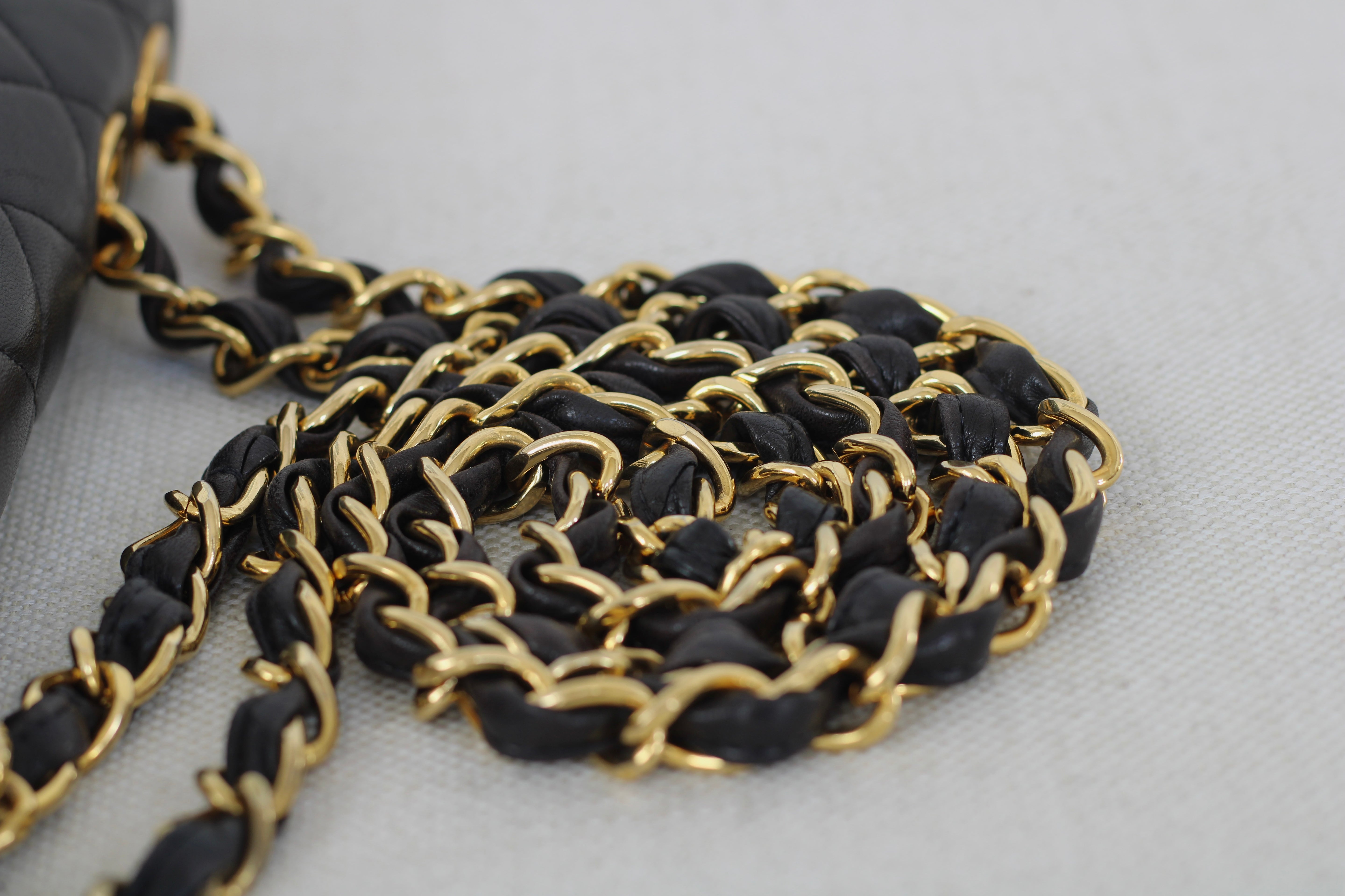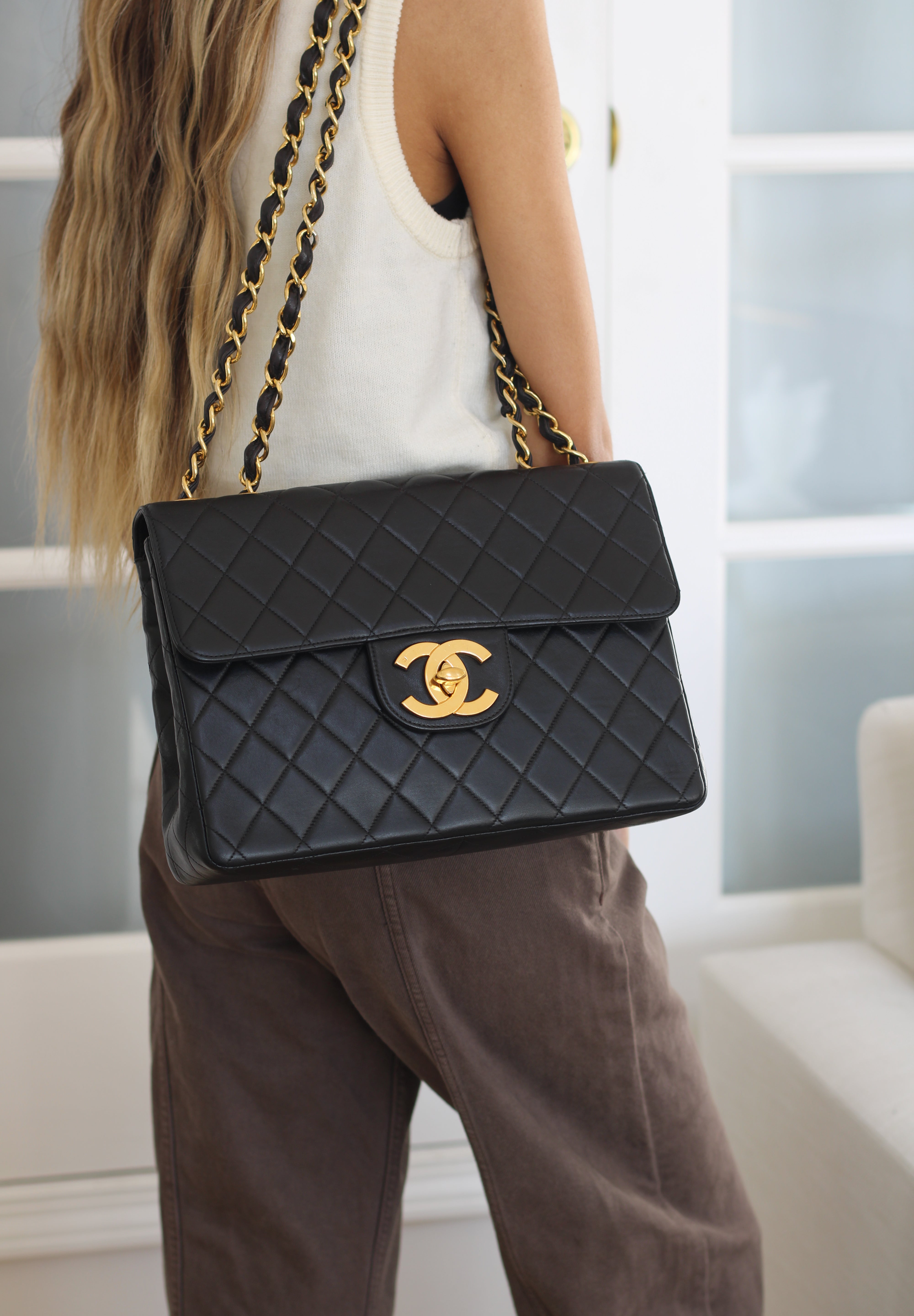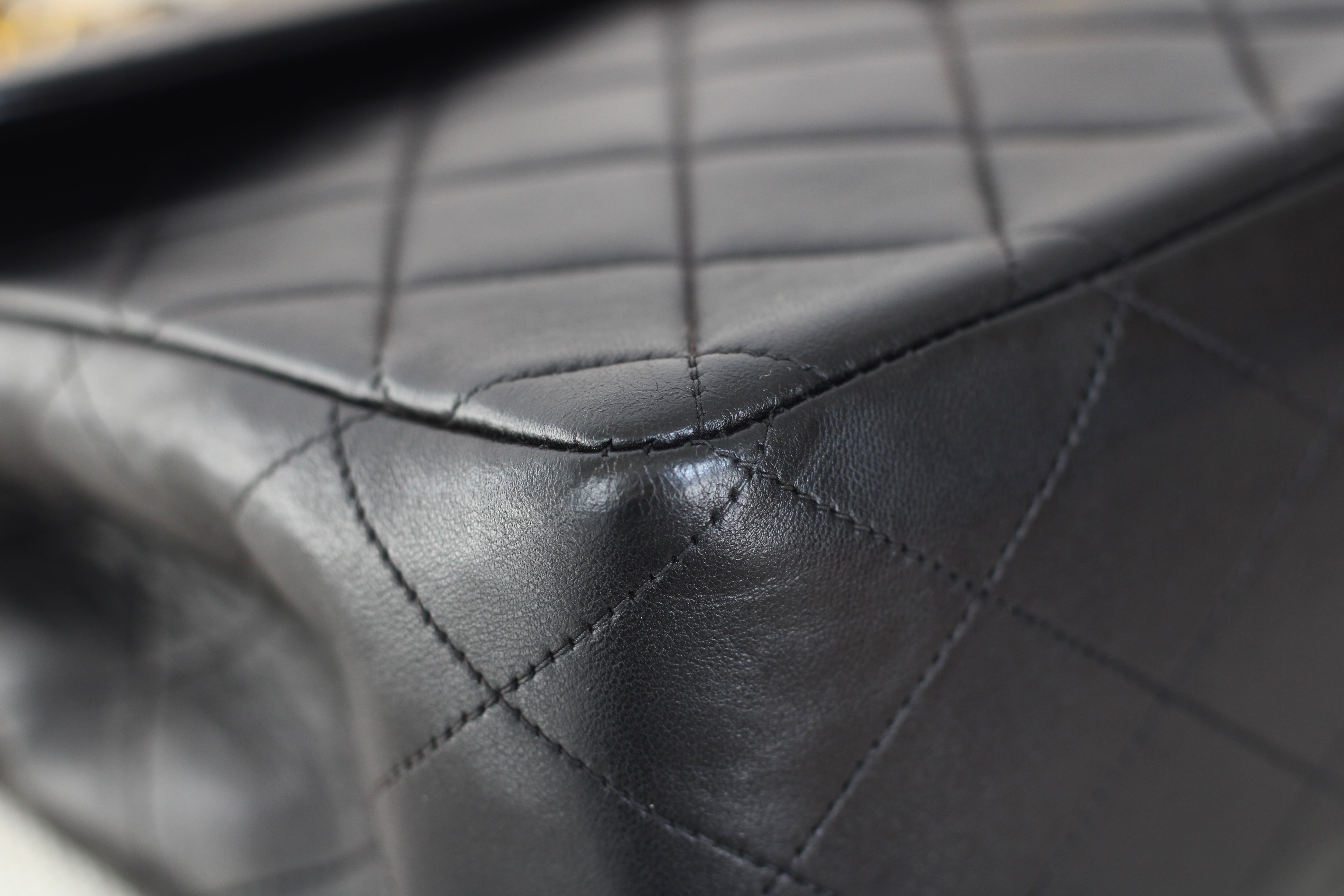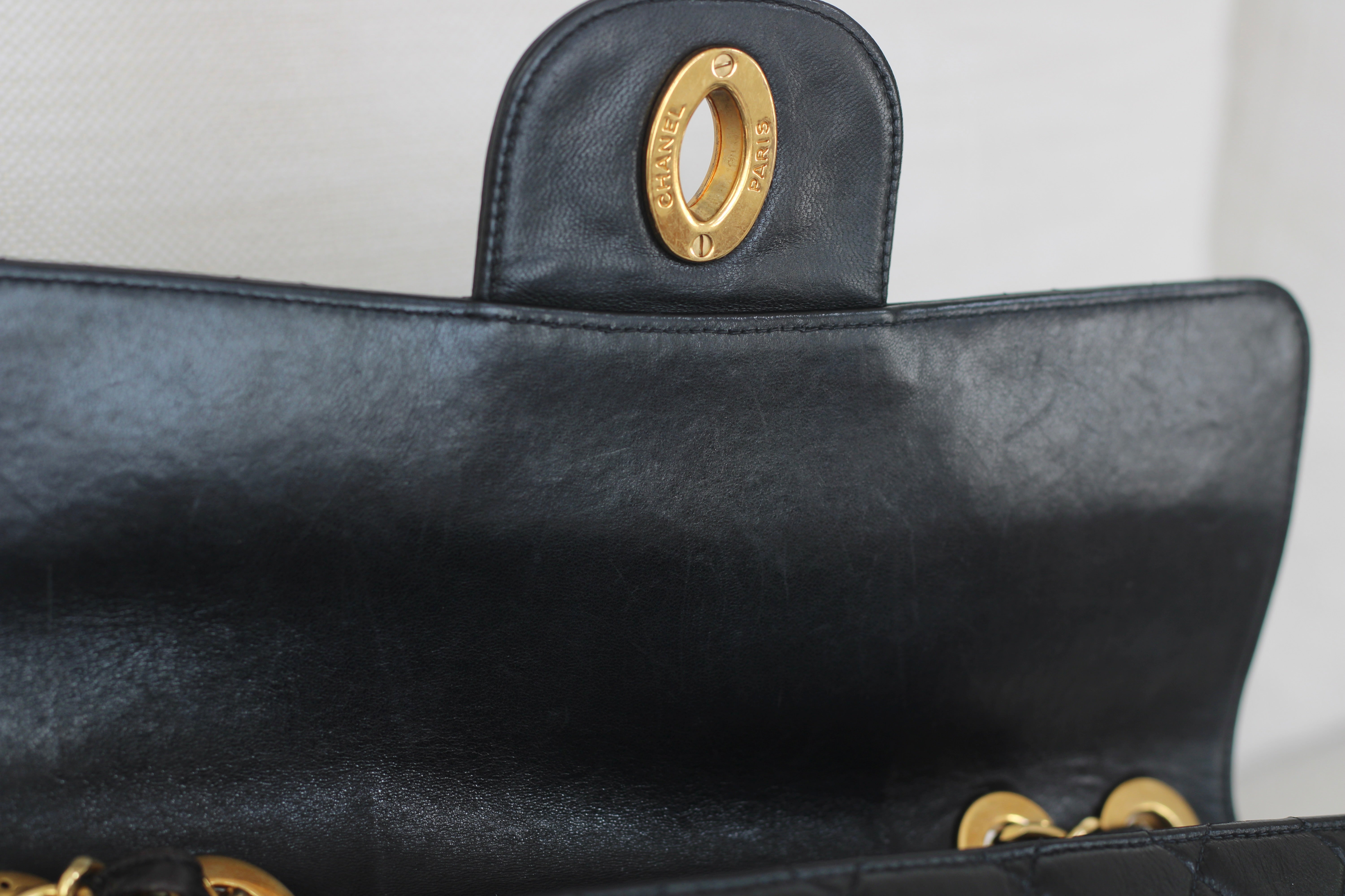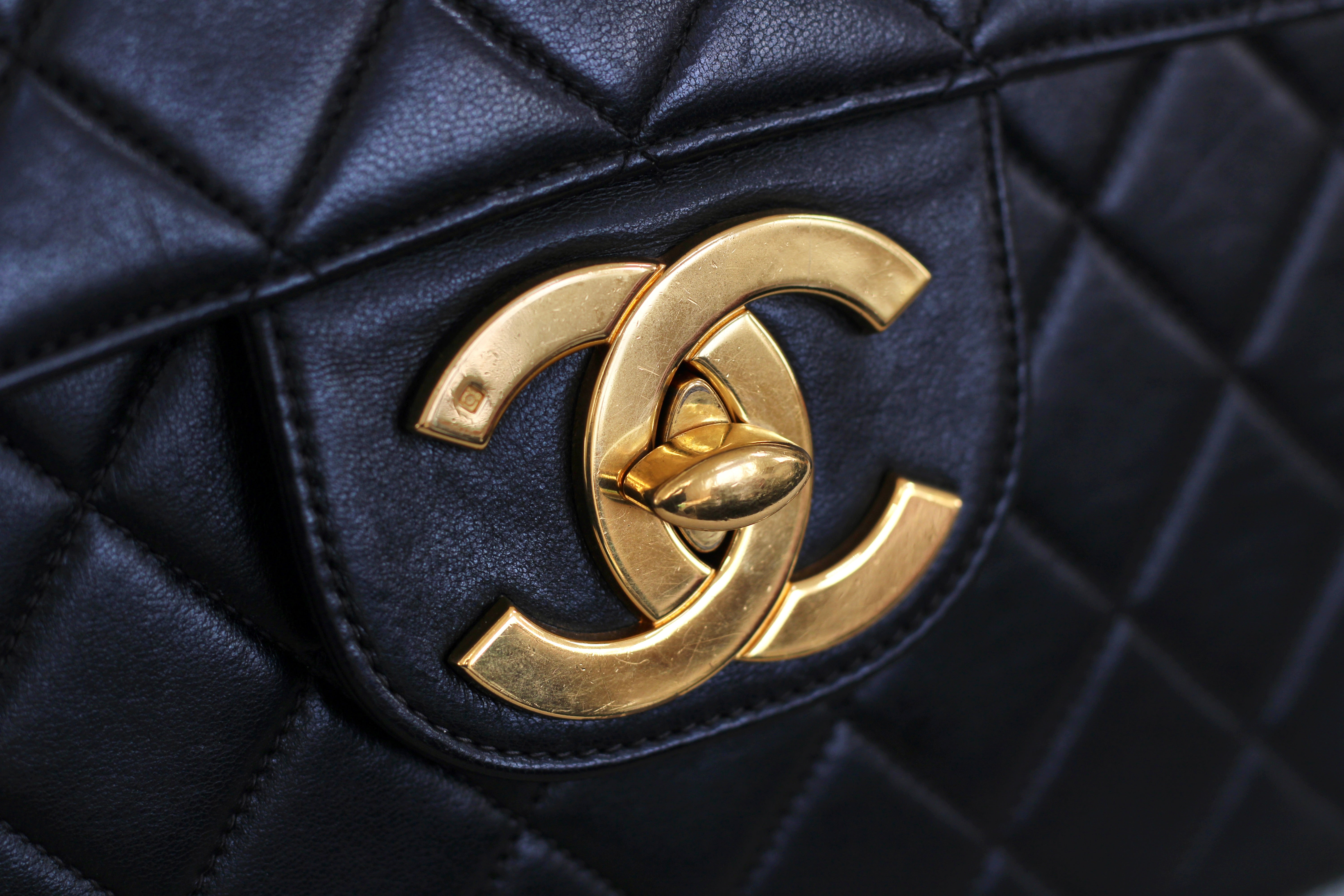 Vintage Black Lambskin Jumbo Single Flap with 24k Gold Hardware