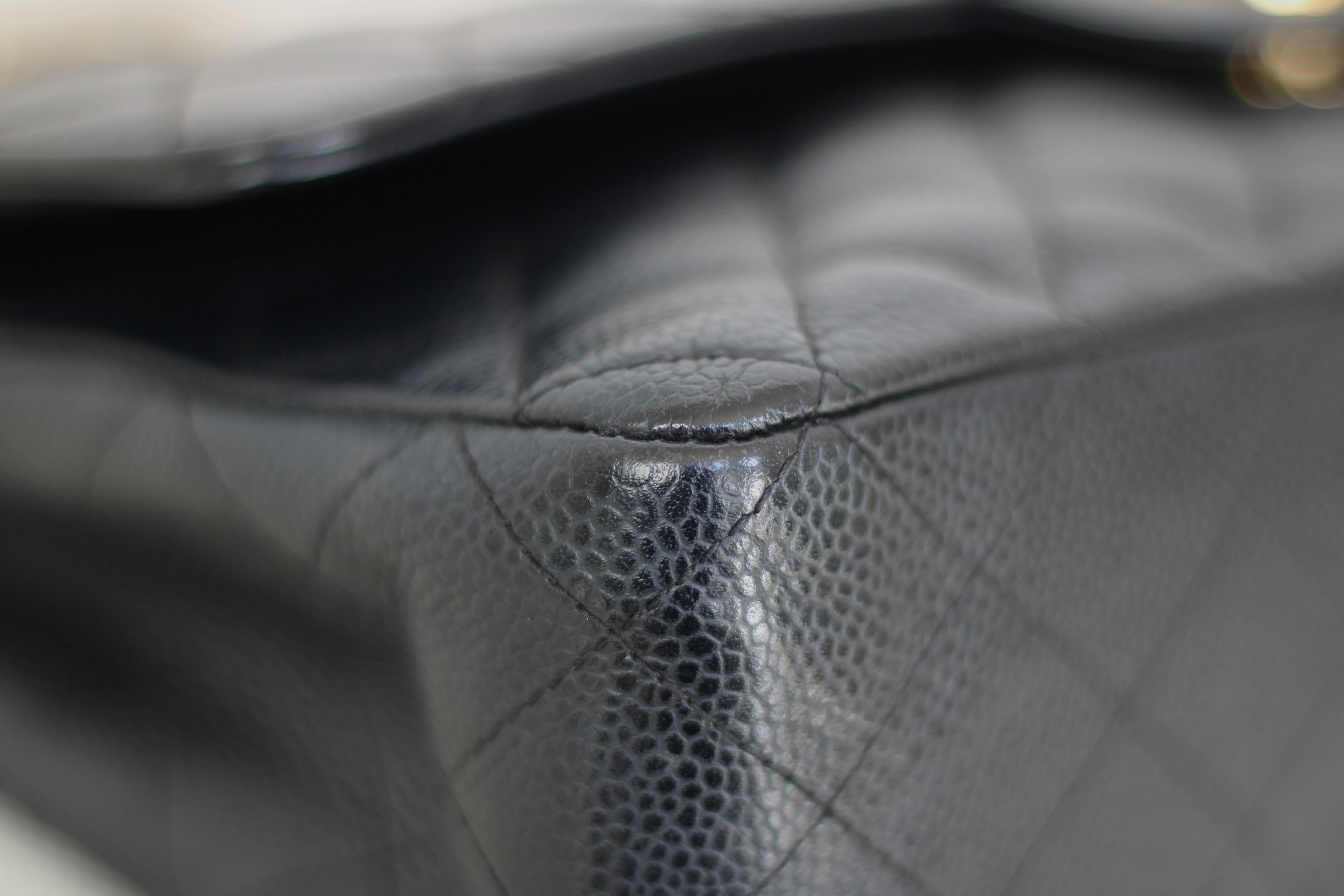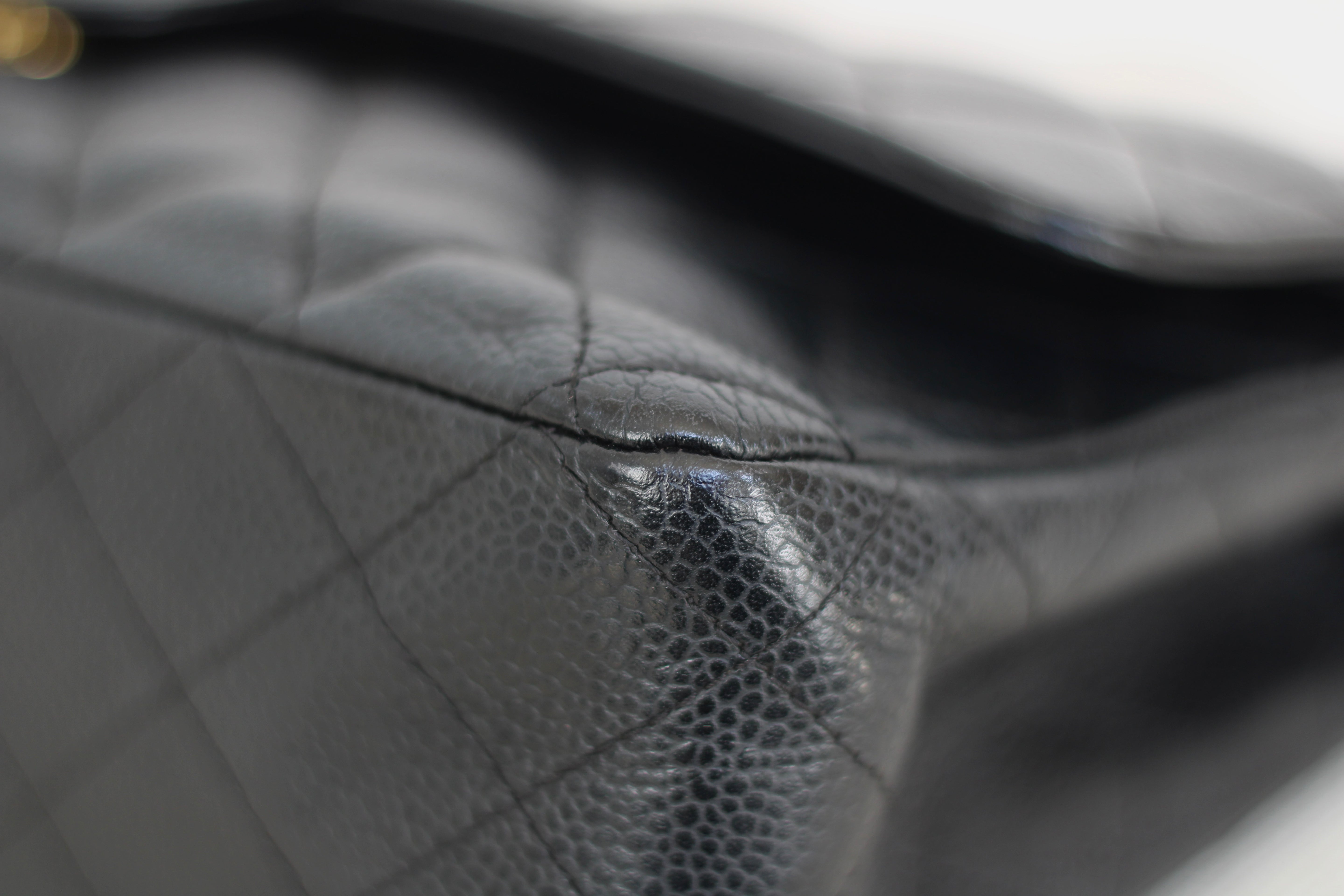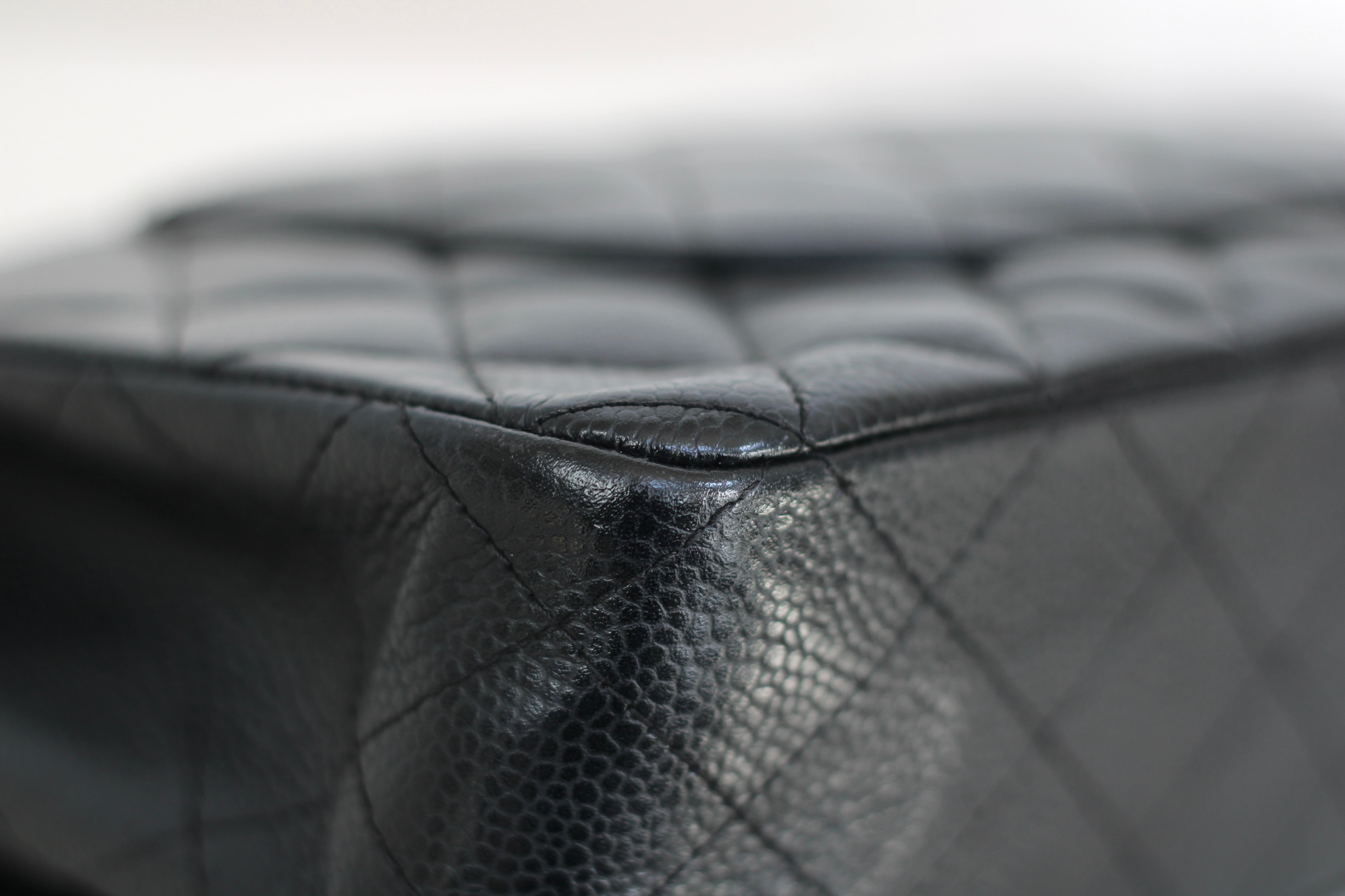 Good/Great Vintage Condition. Beautifully pebbly caviar leather complimented by a stunning sheen. Structure has softened and the bottom has some indents as pictured. Some slight tarnishing/scratches on CC hardware and some minor lightening on chain. Some corner wear.