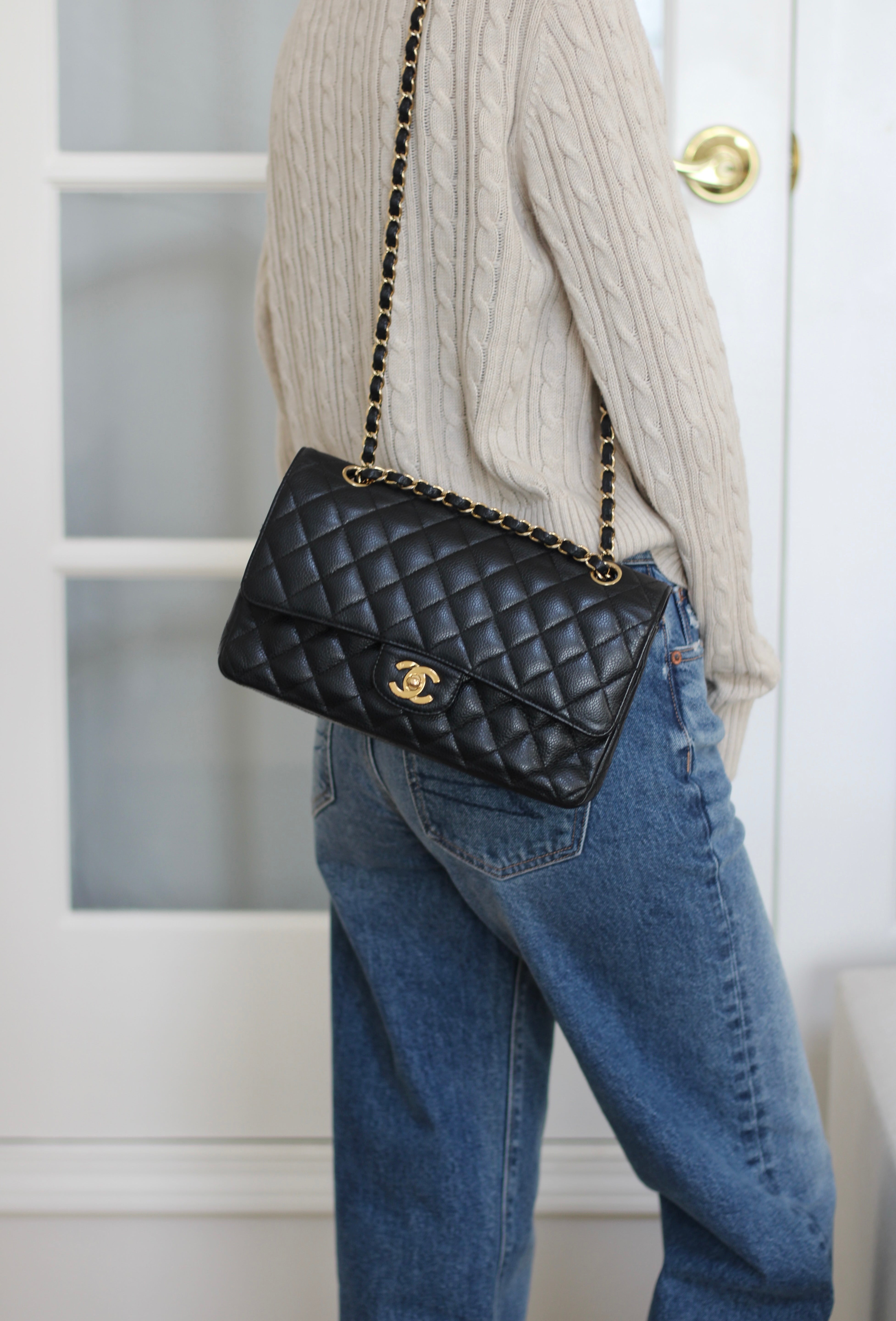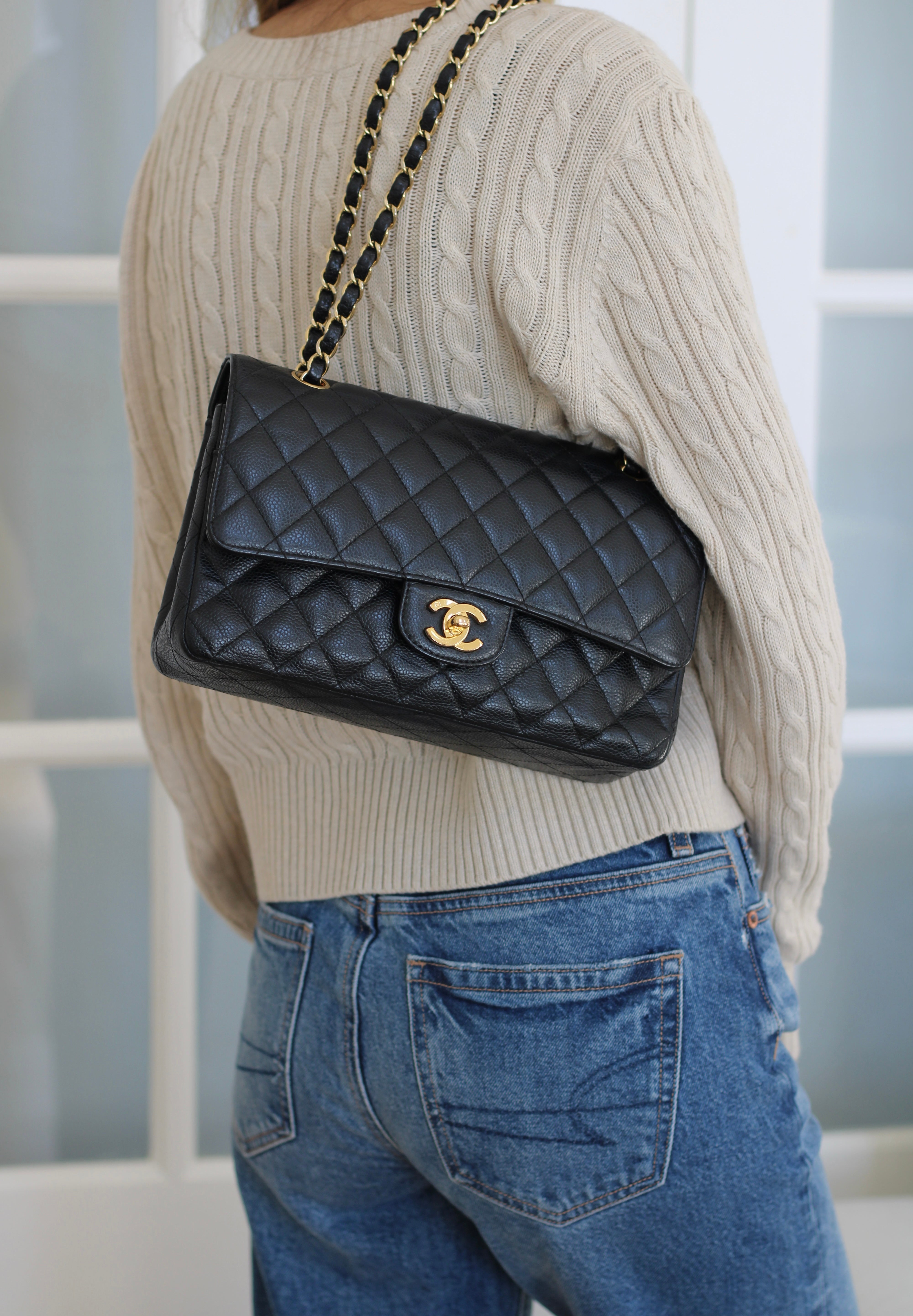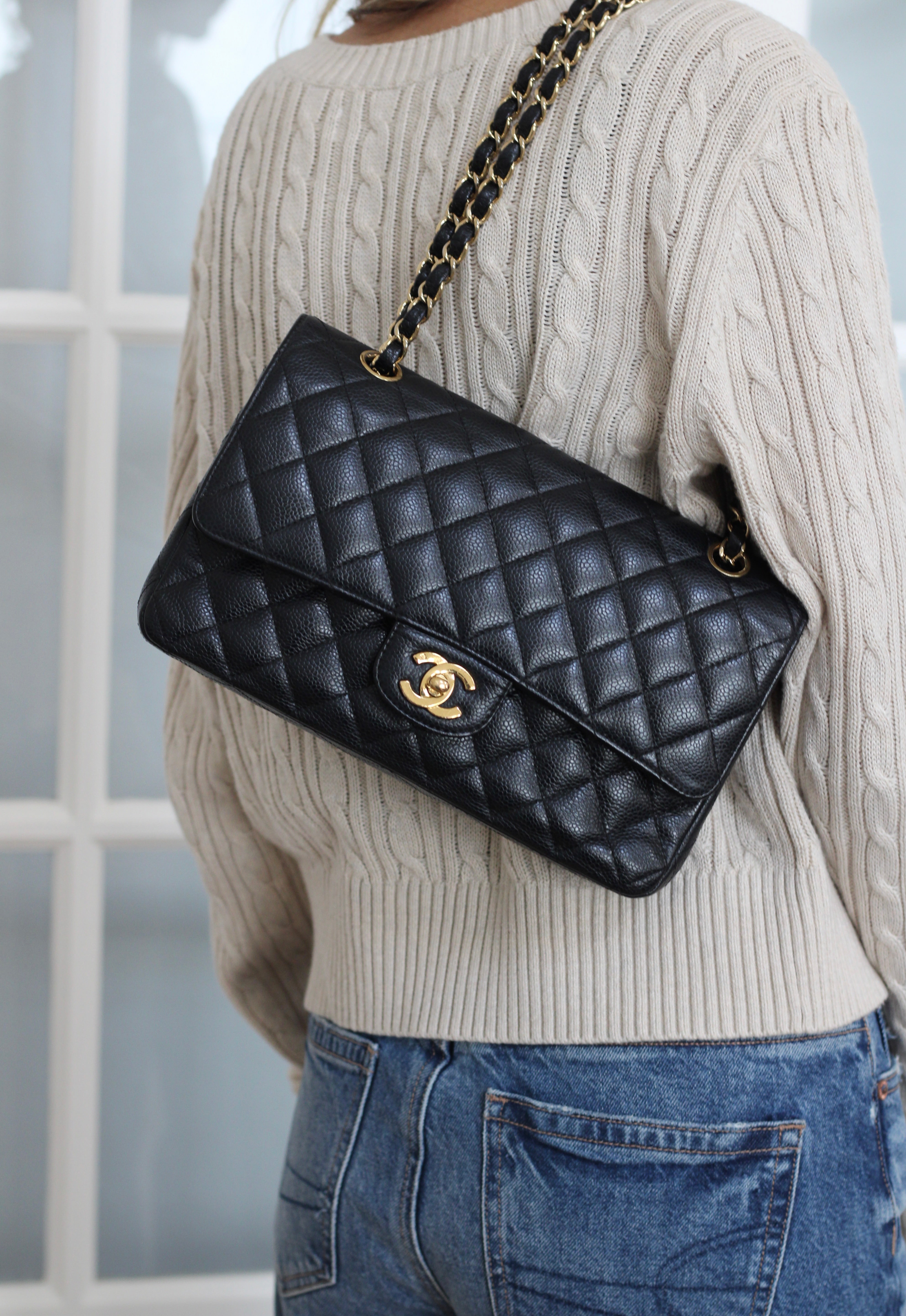 Vintage Chanel Black Caviar Medium Classic Flap with 24k Gold Hardware