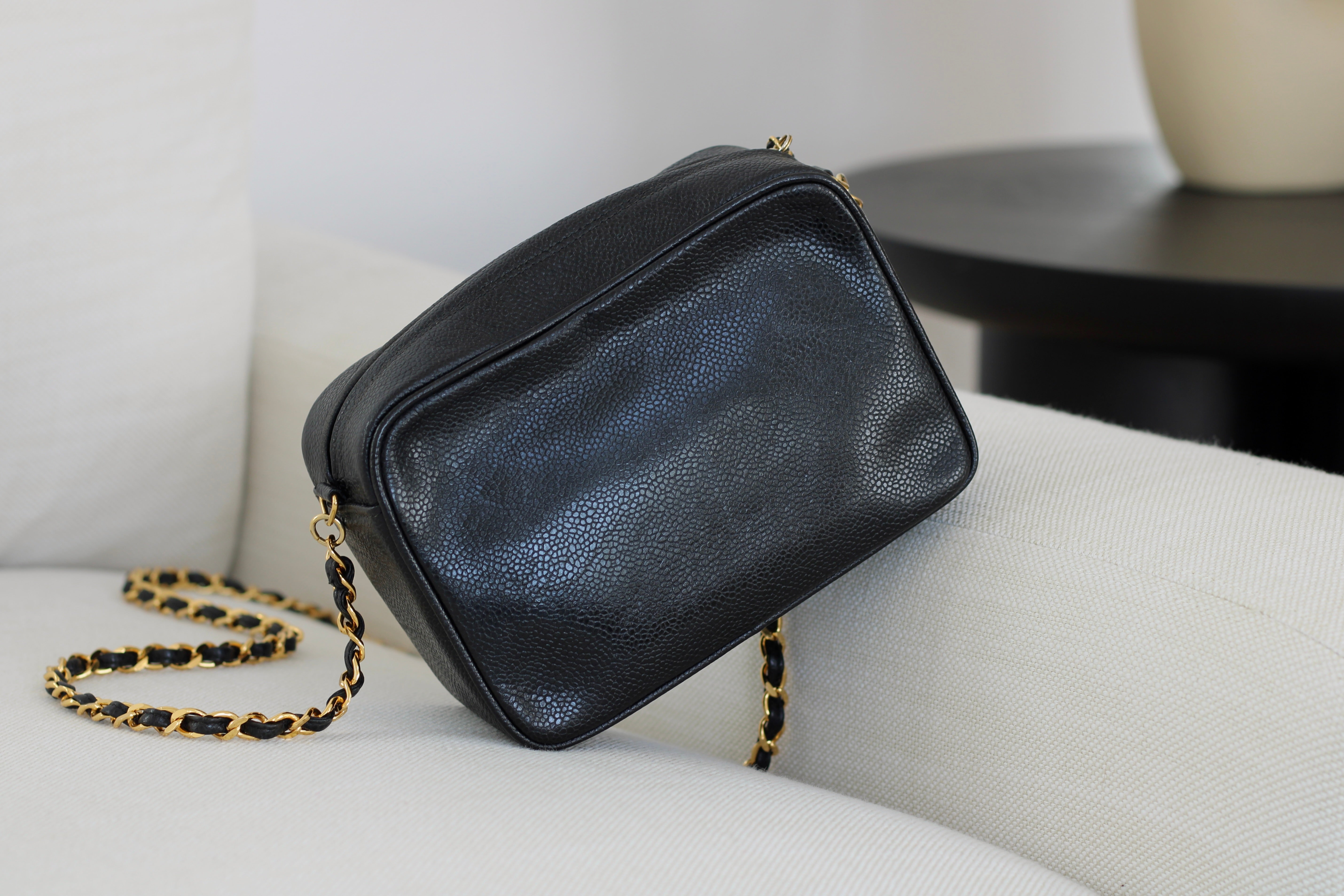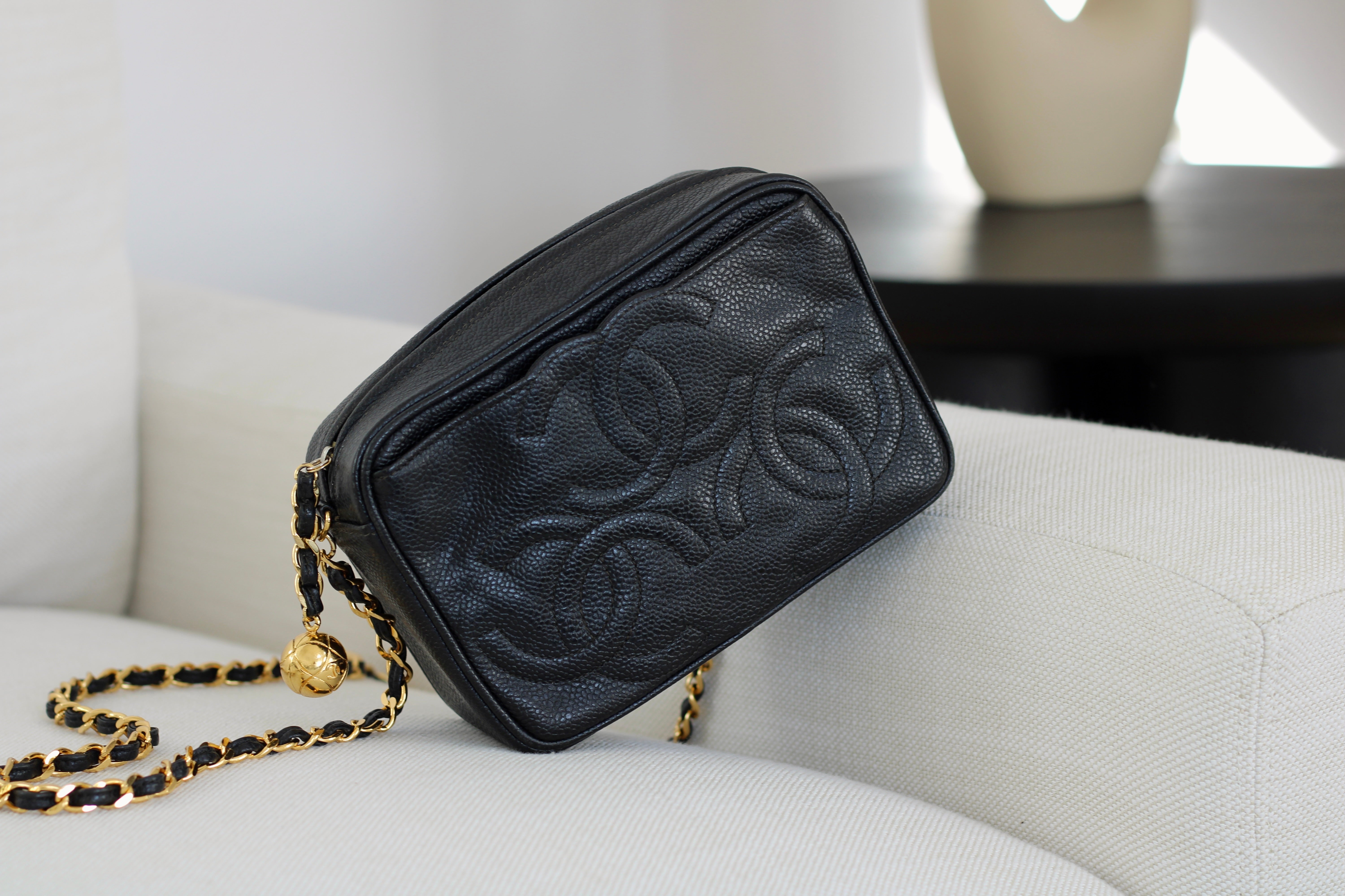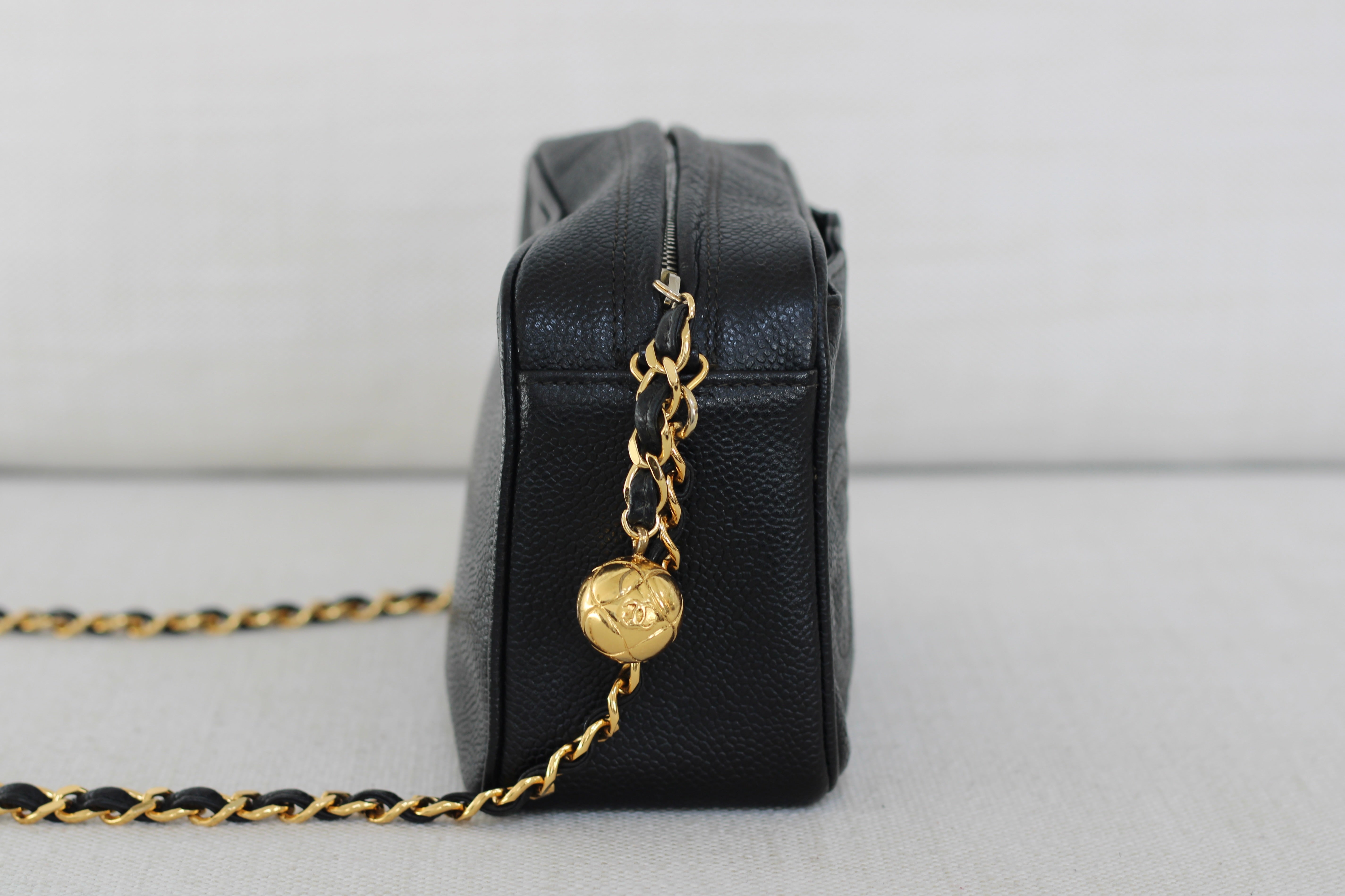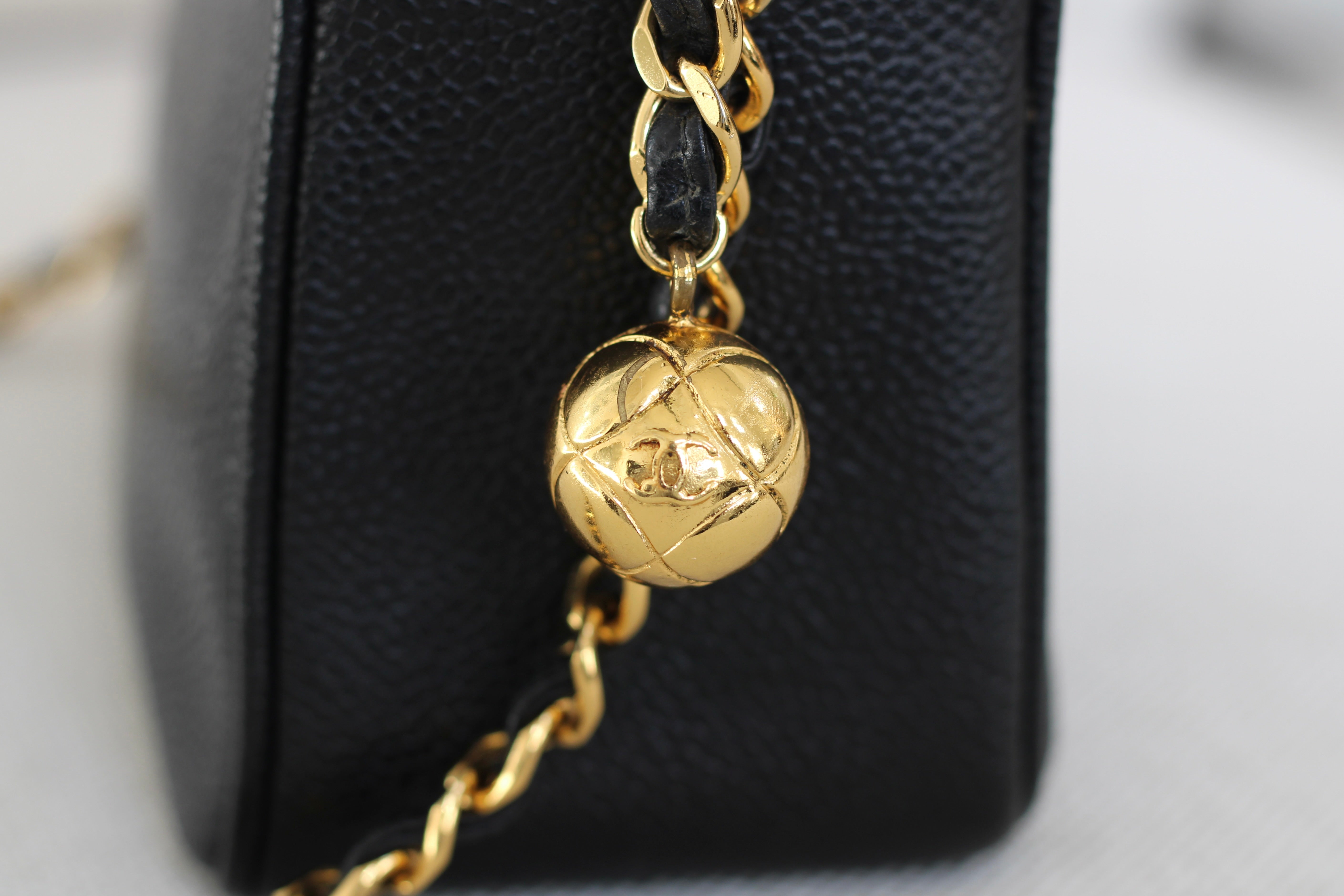 Vintage Chanel Black Caviar Mini Camera Bag with 24k Gold Hardware