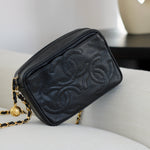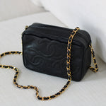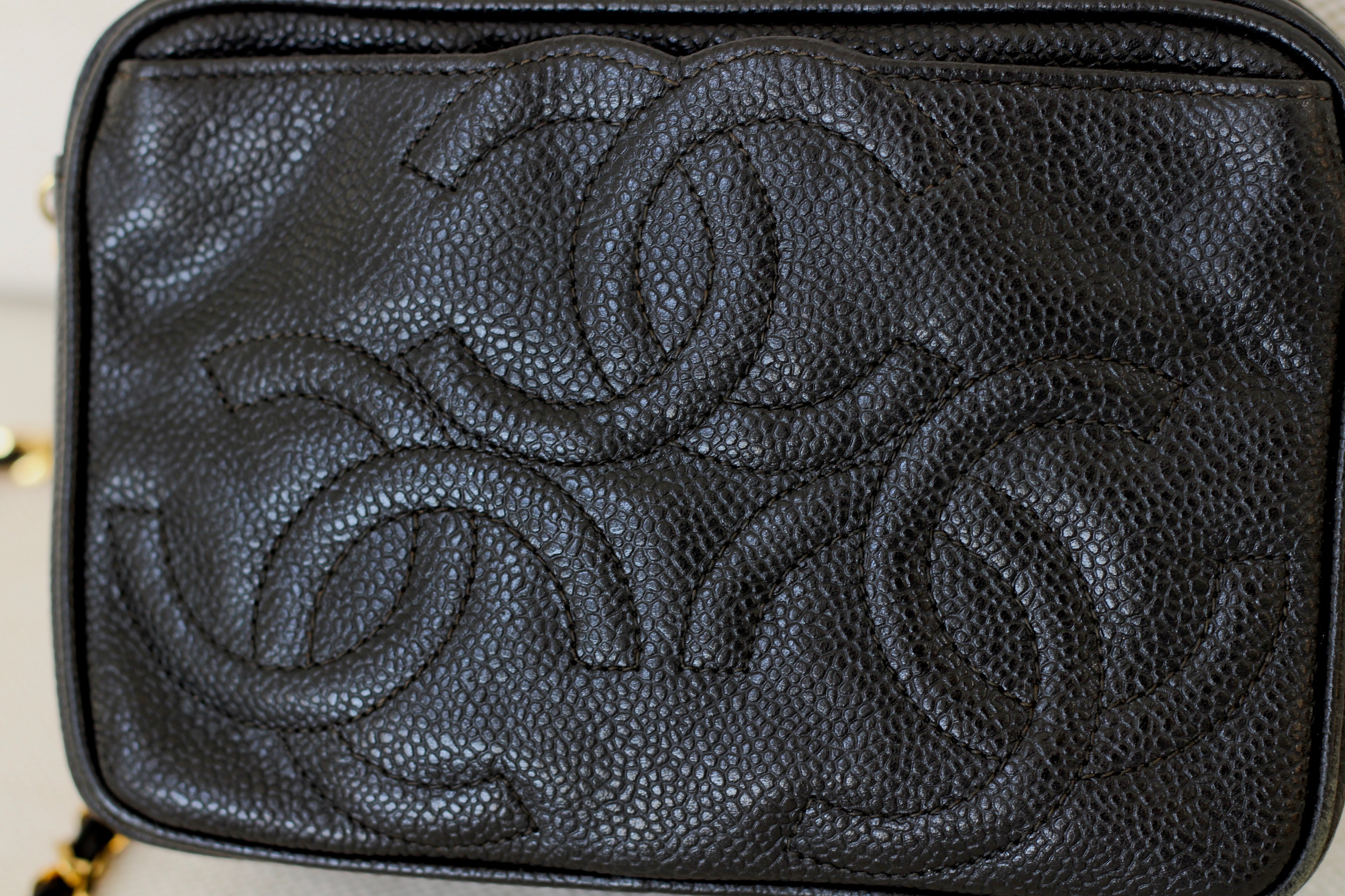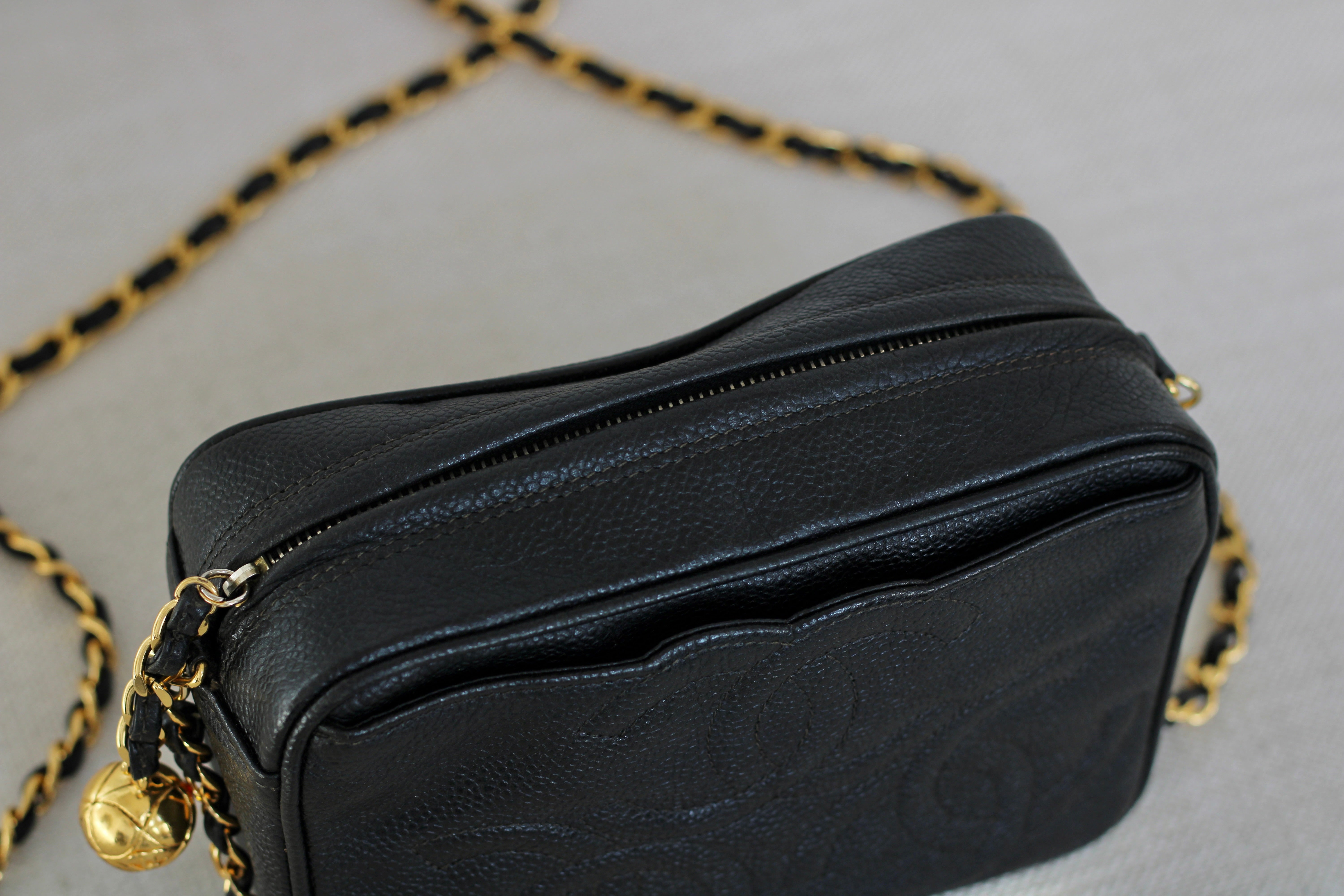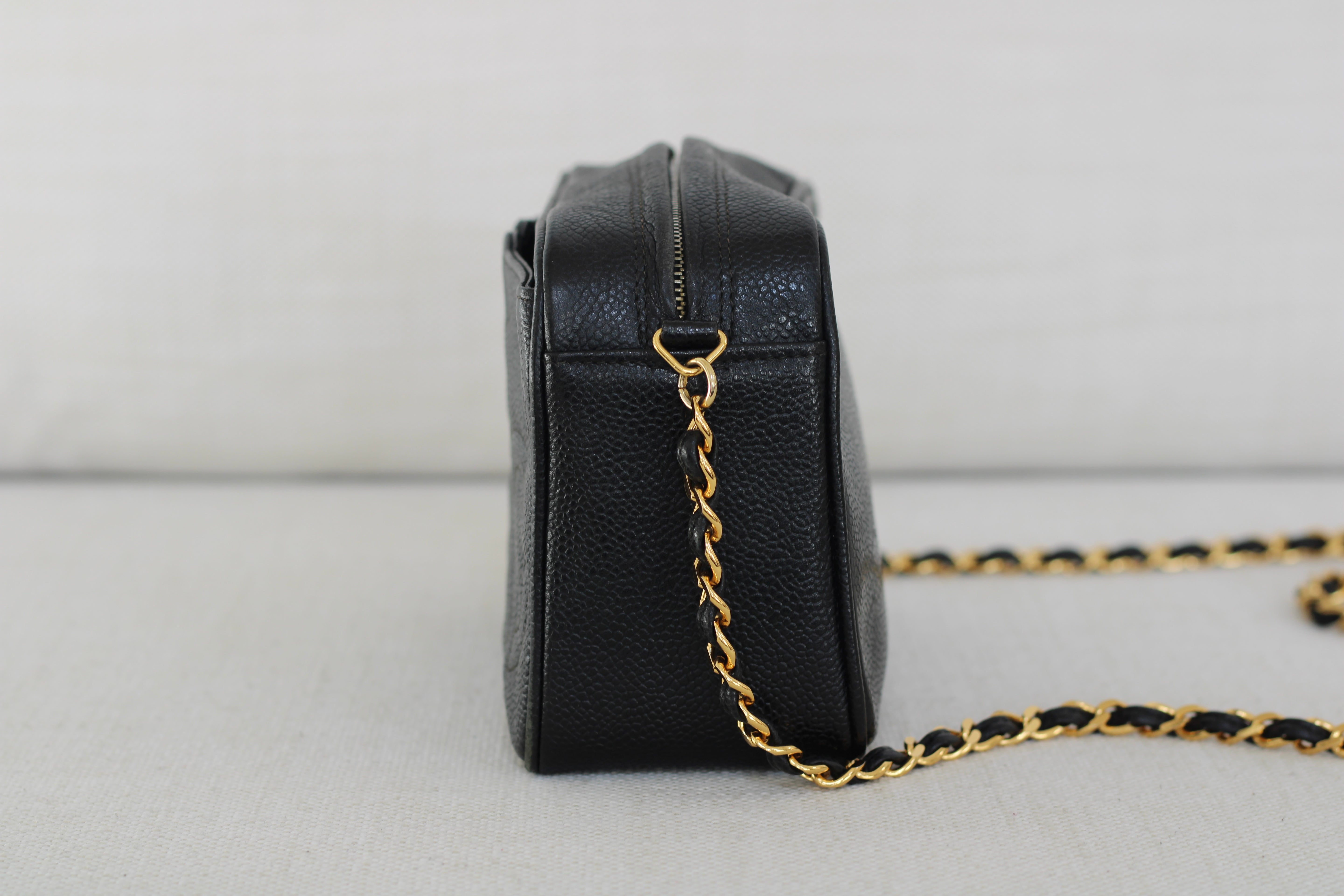 Vintage Chanel Black Caviar Mini Camera Bag with 24k Gold Hardware