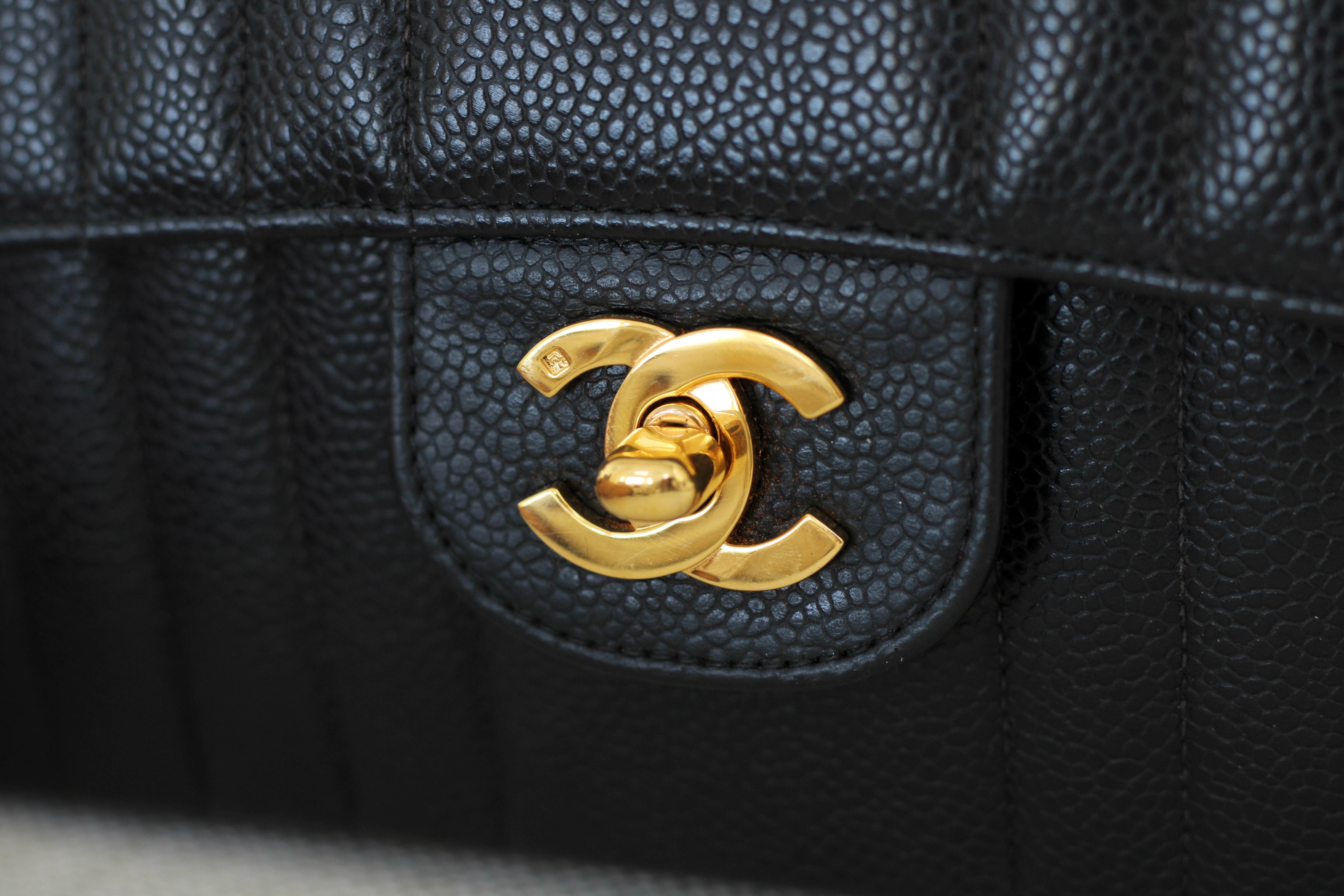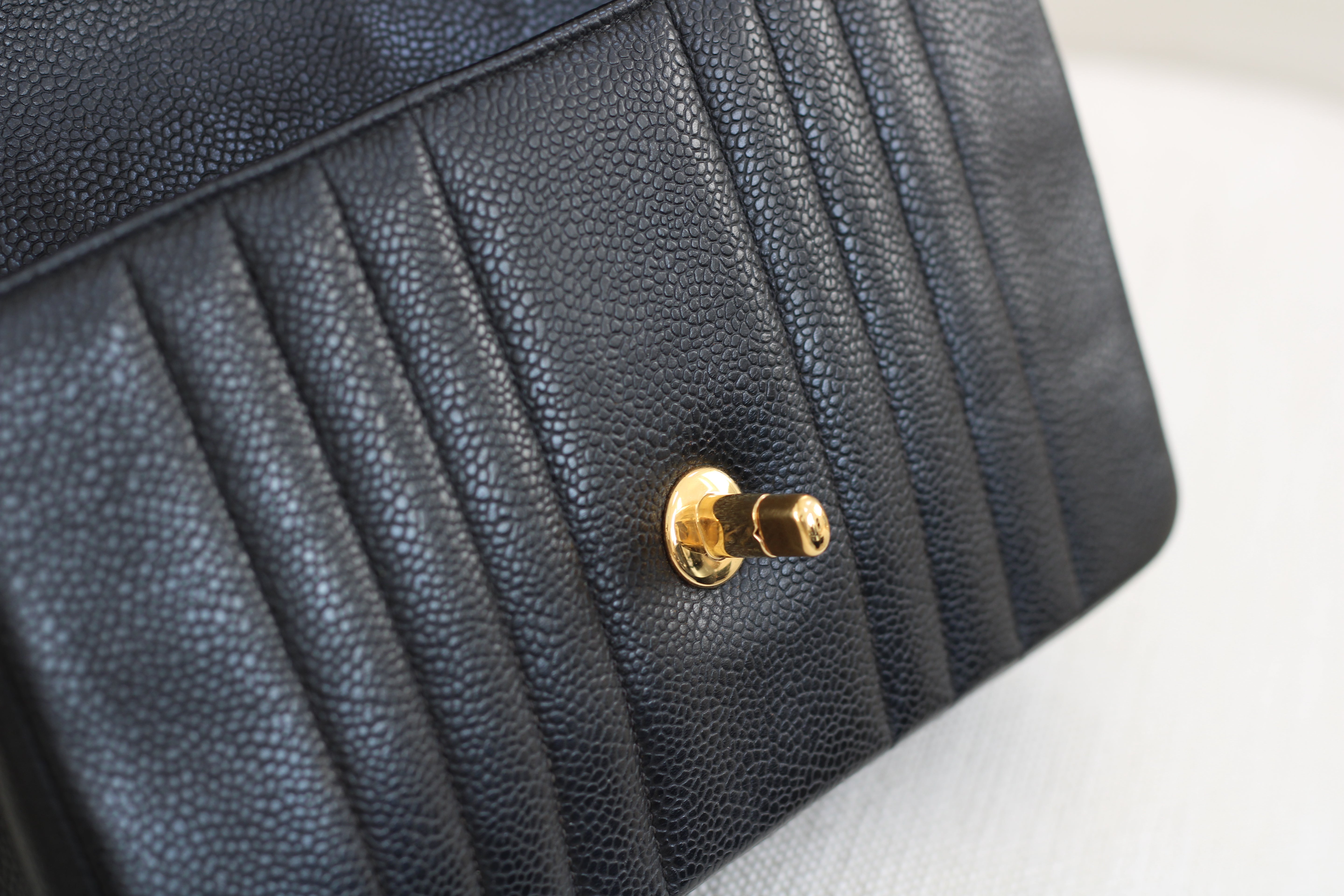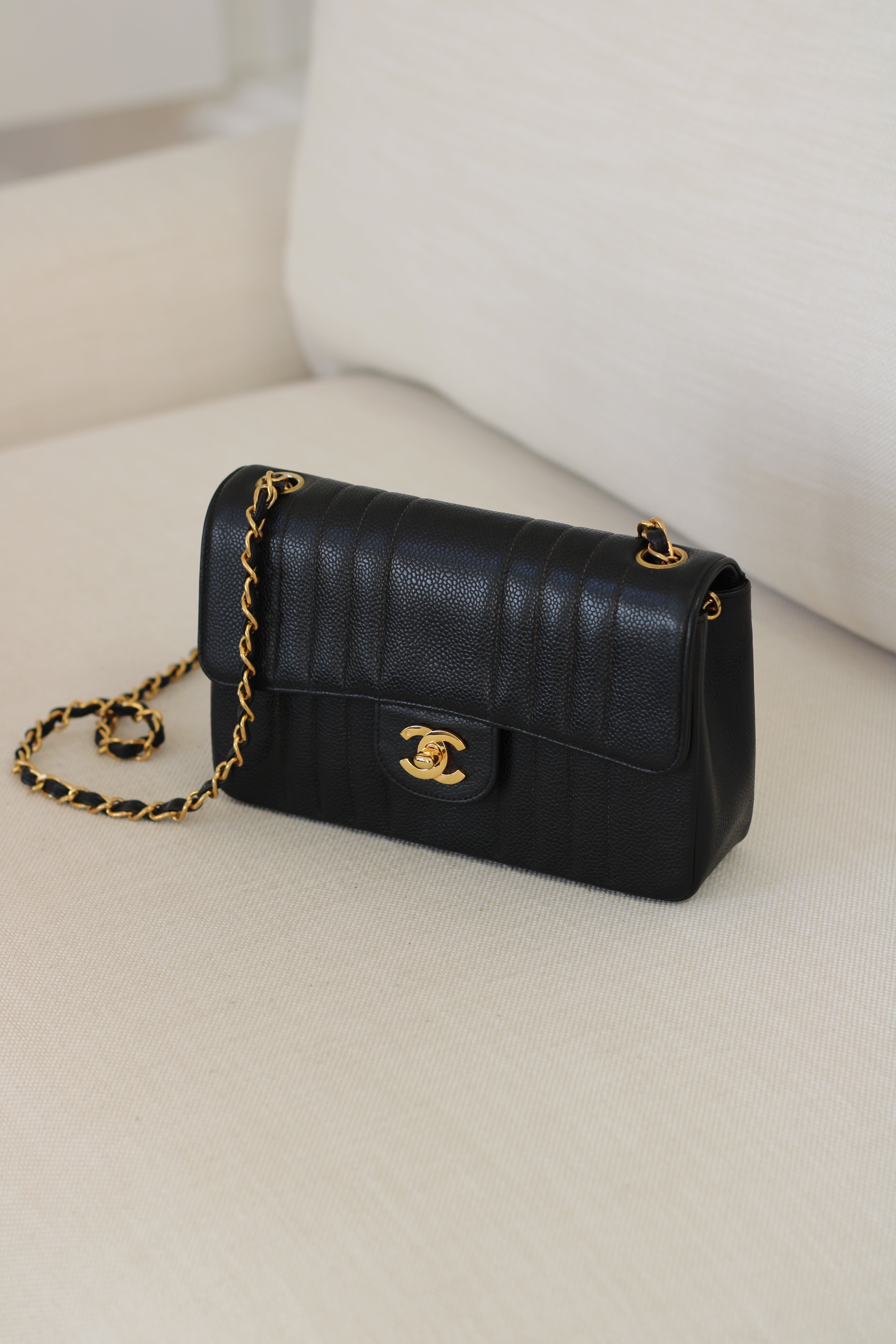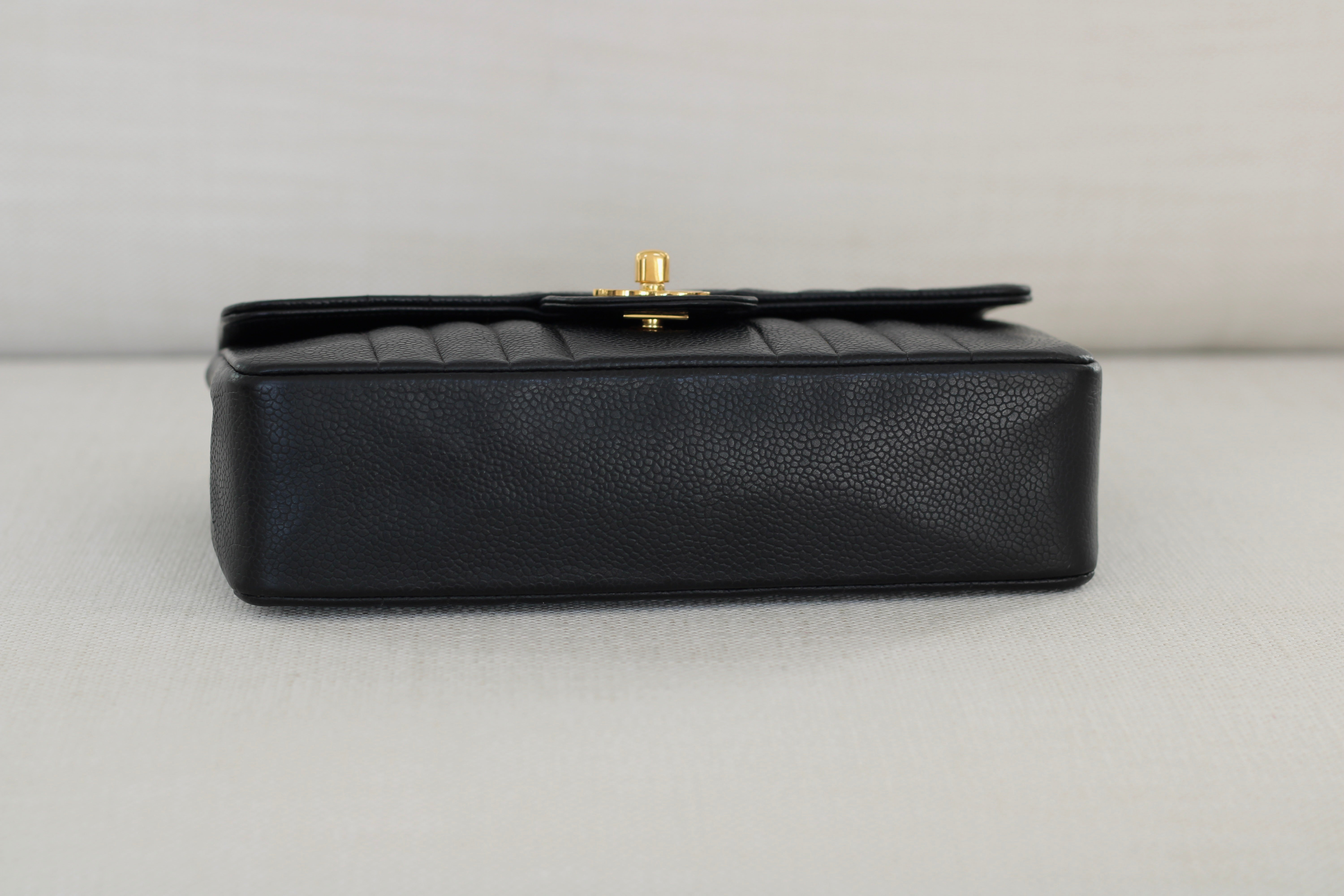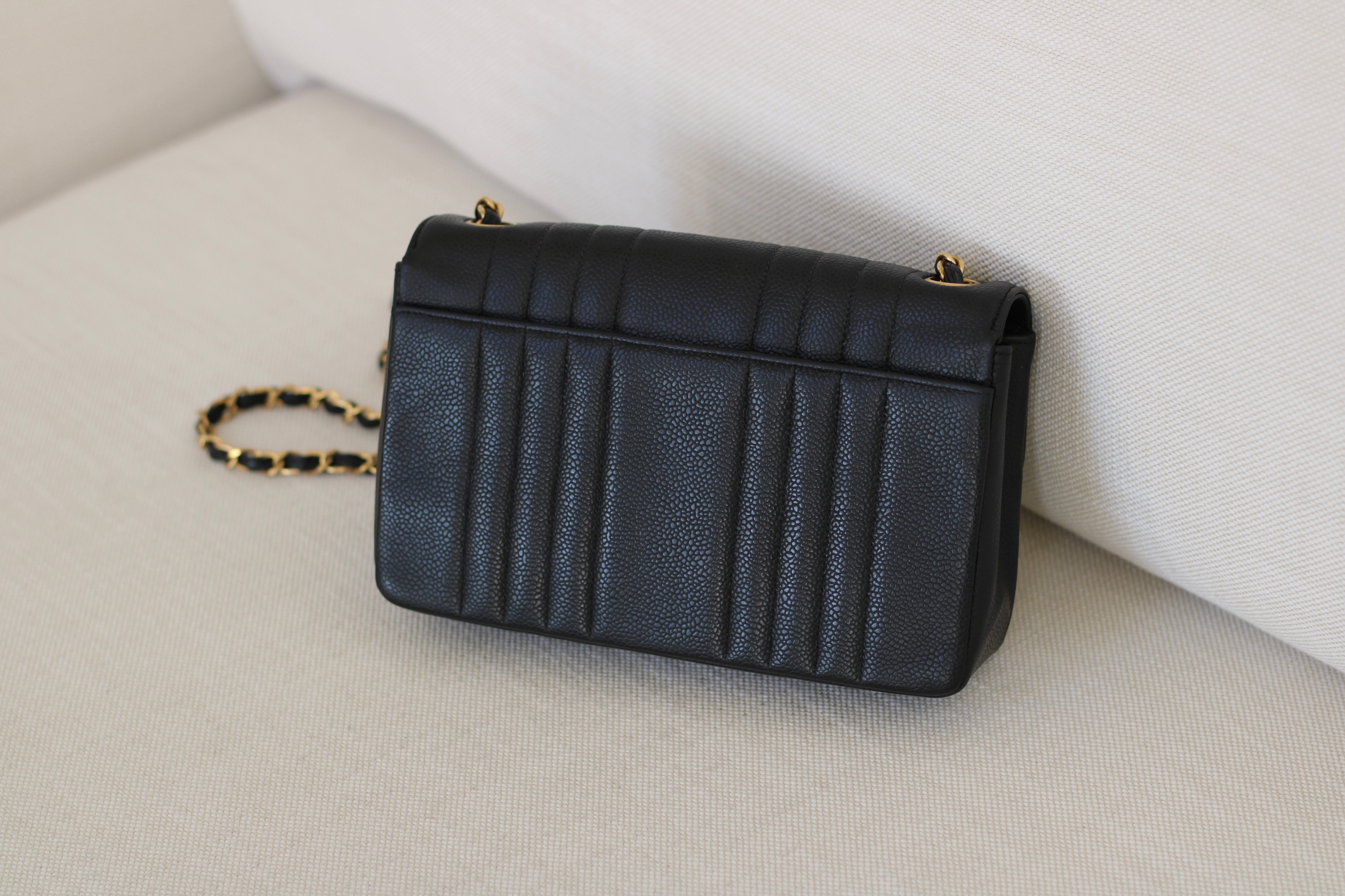 Vintage Chanel Black Caviar Vertical Flap with 24k Gold Hardware