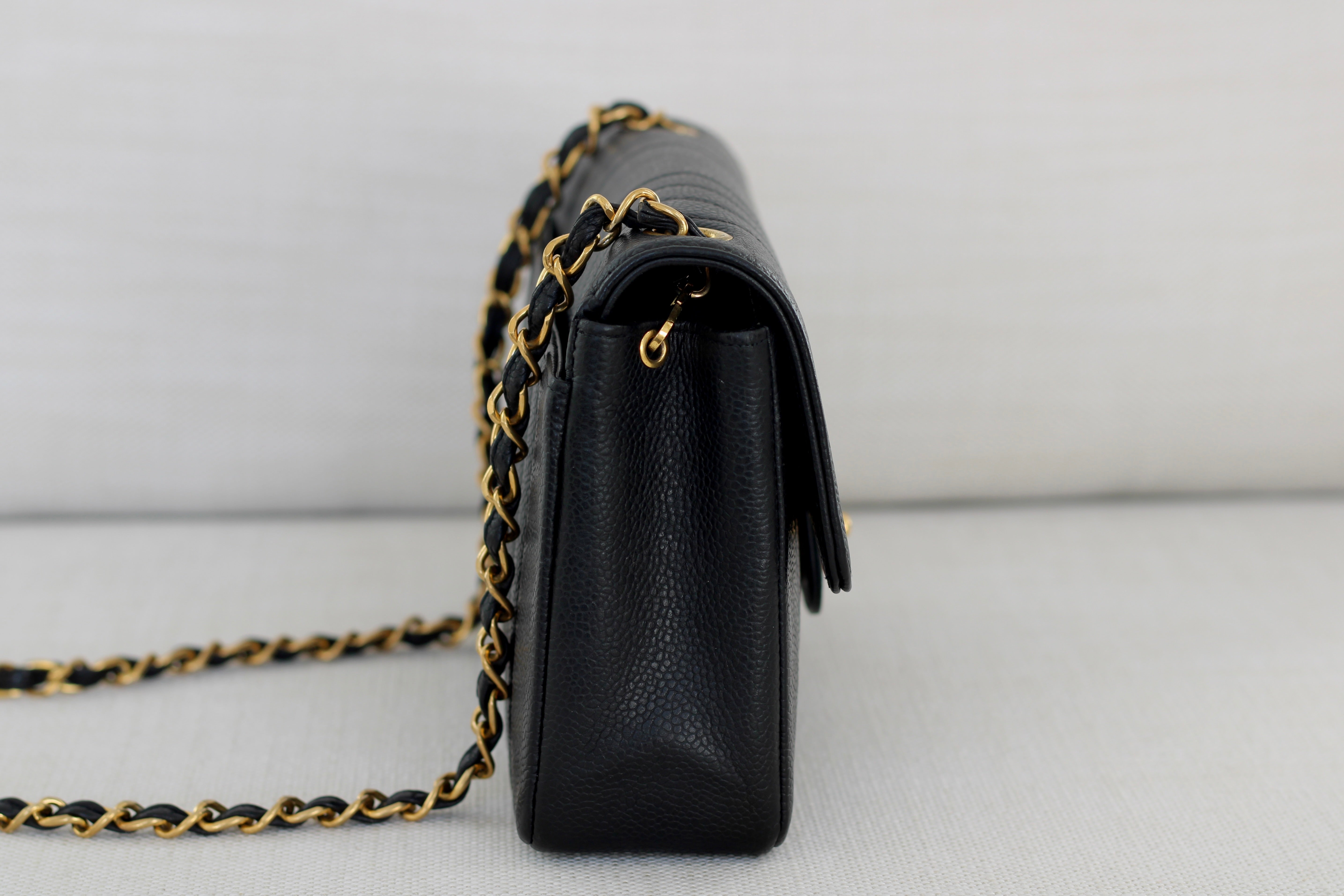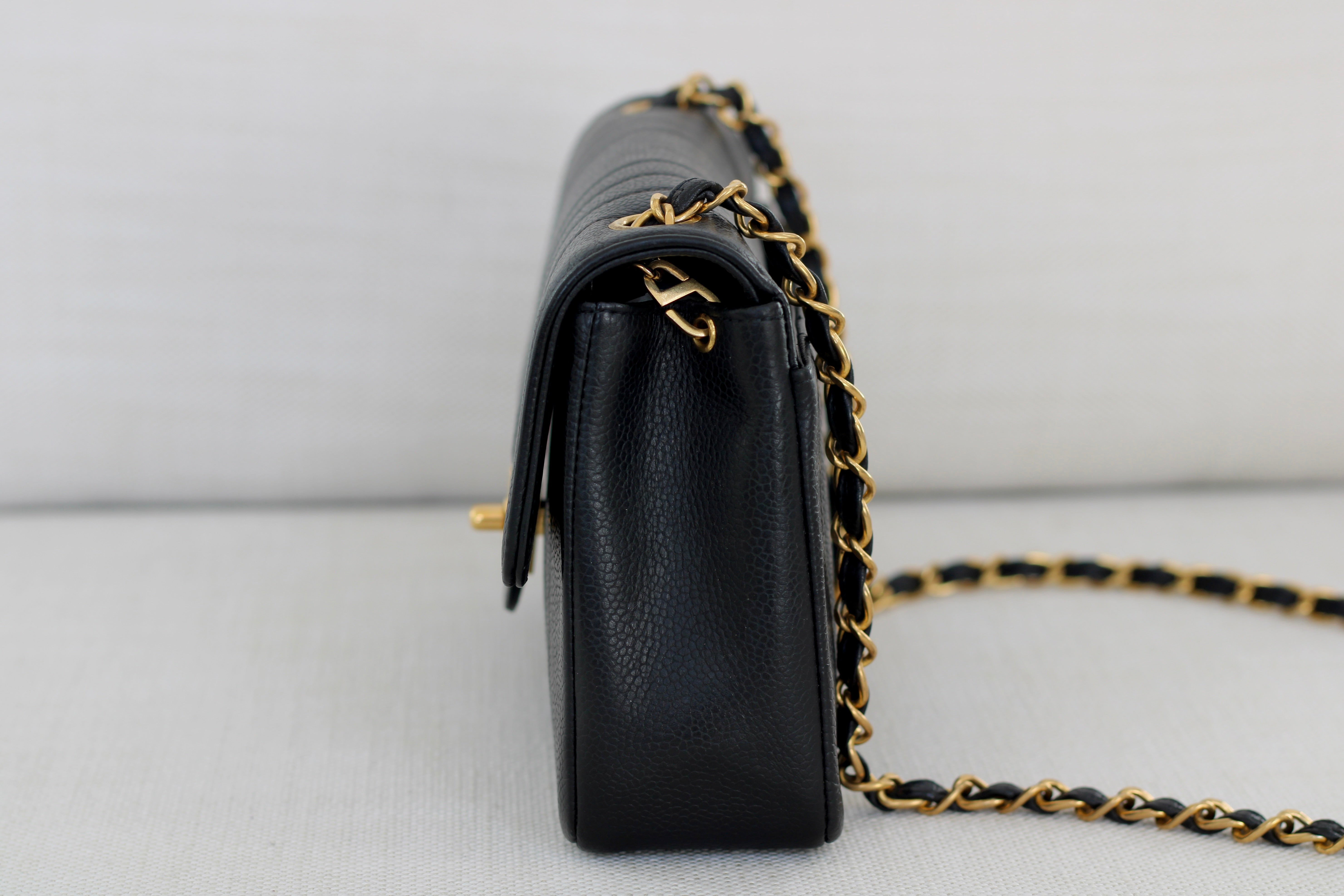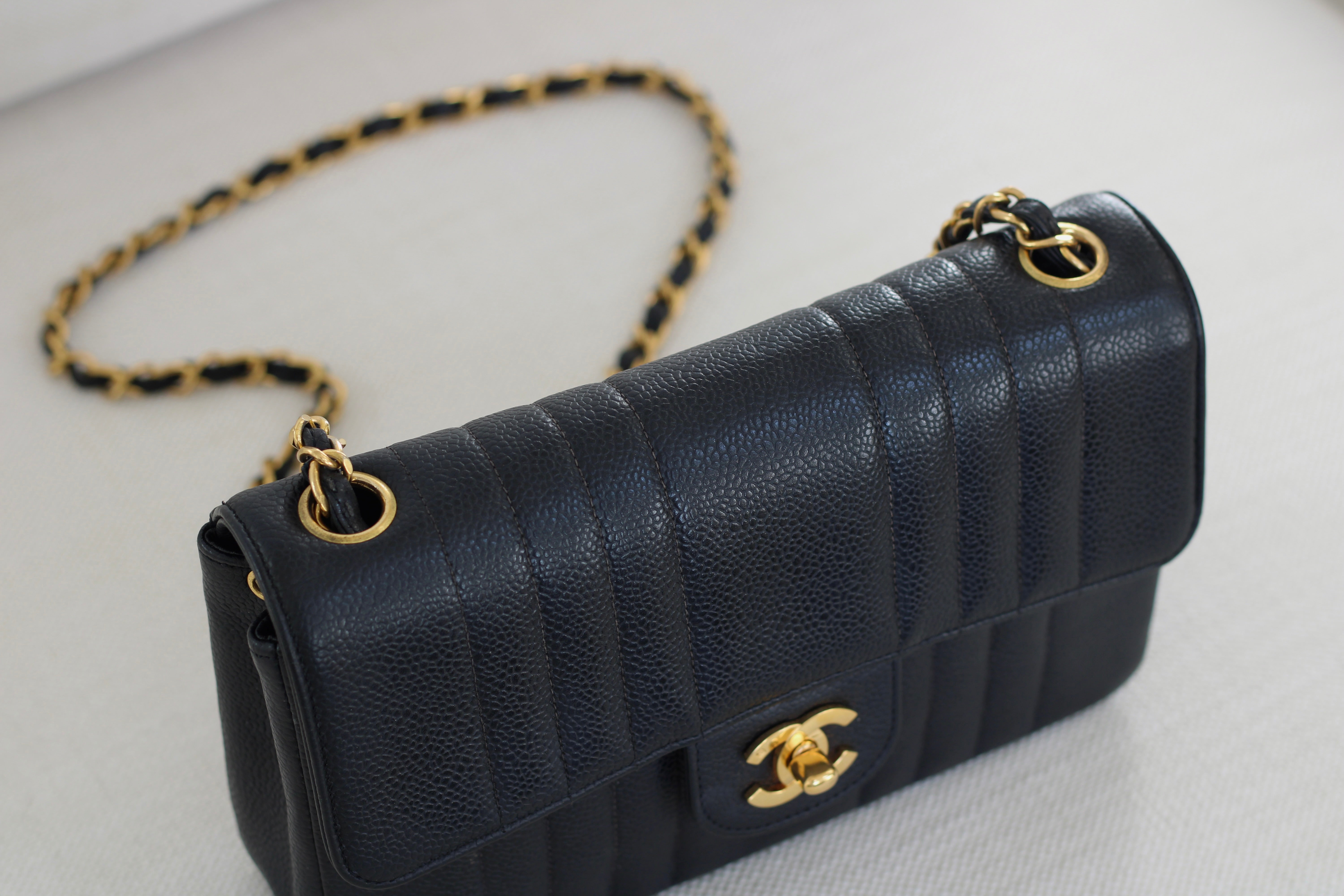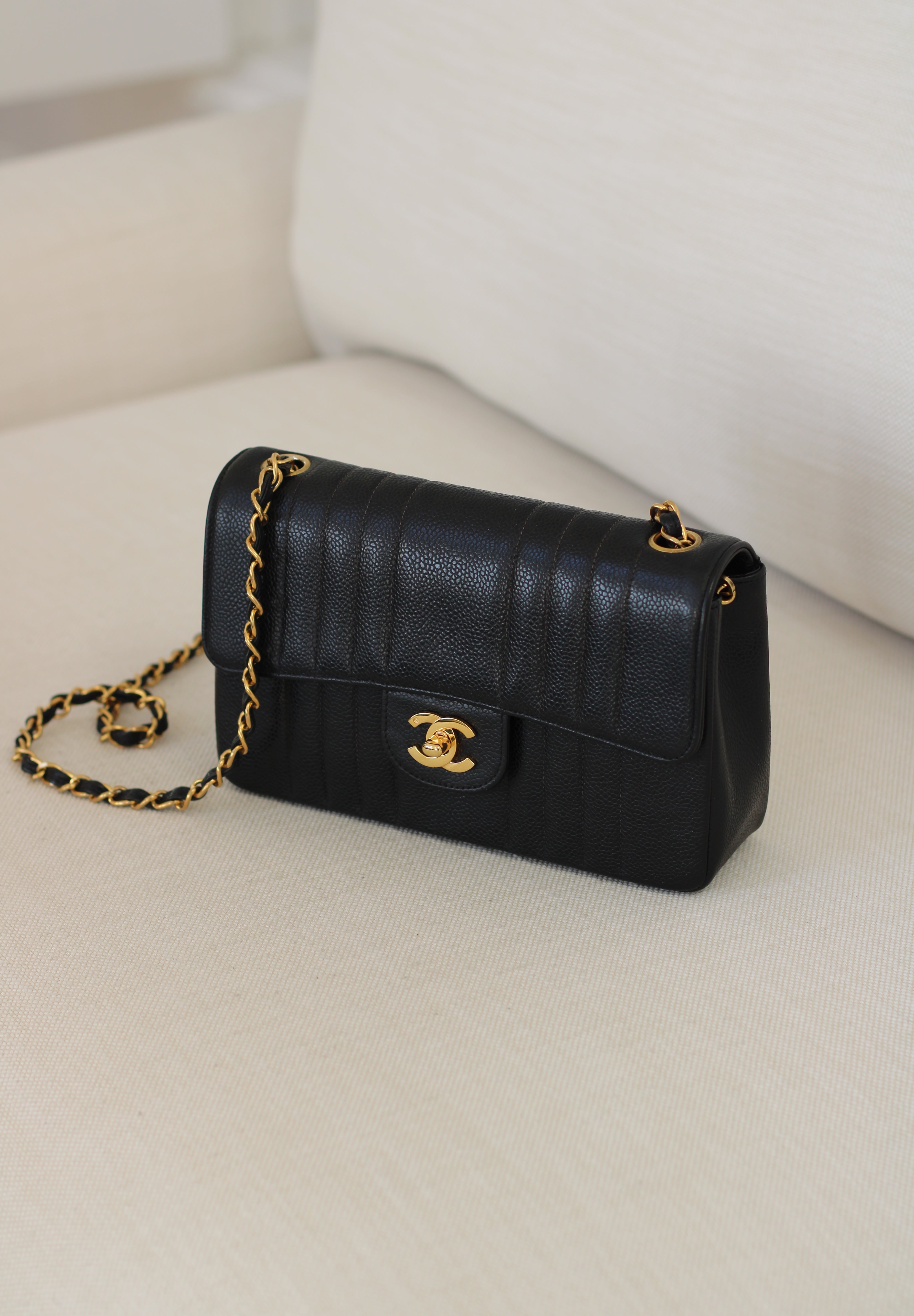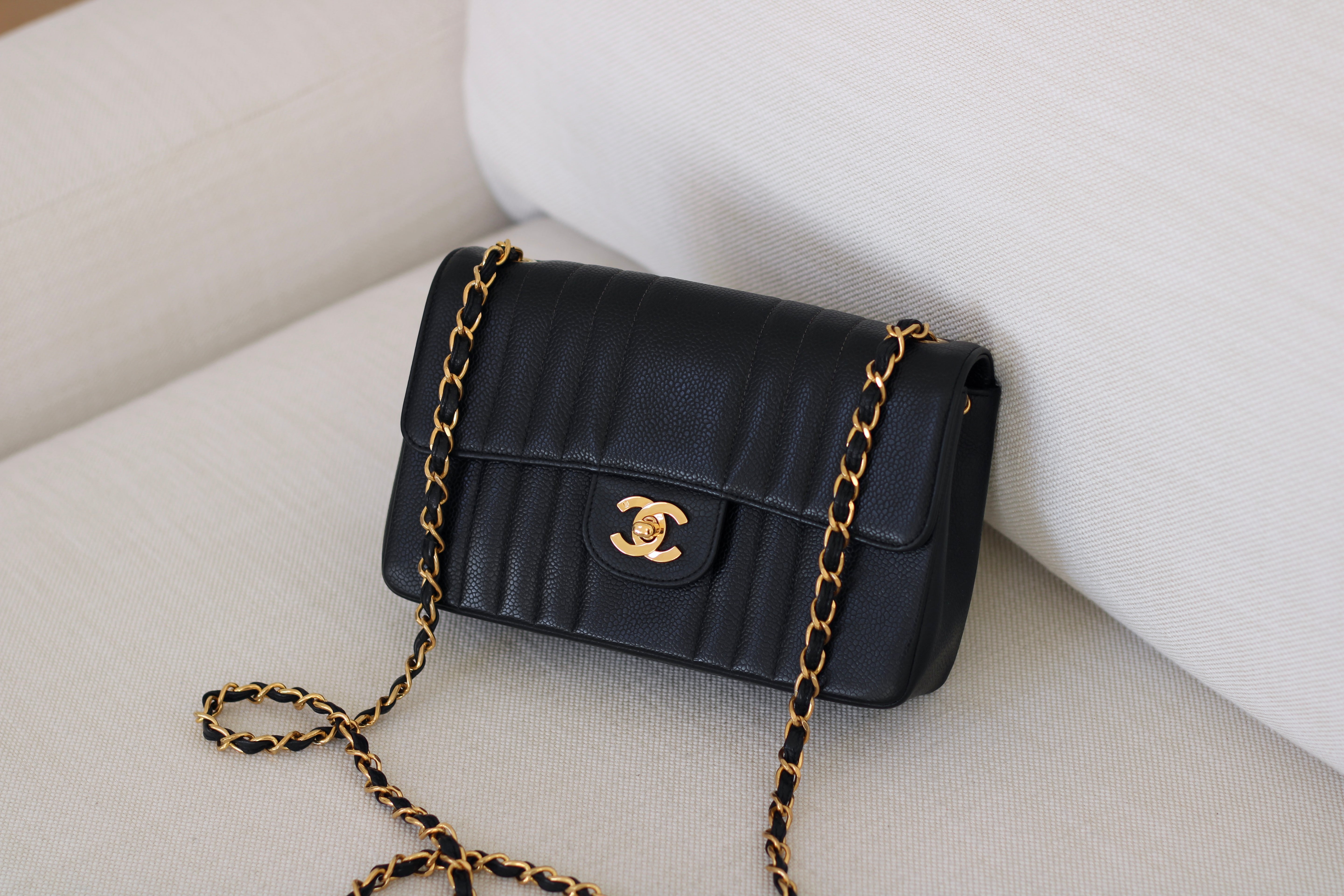 Vintage Chanel Black Caviar Vertical Flap with 24k Gold Hardware