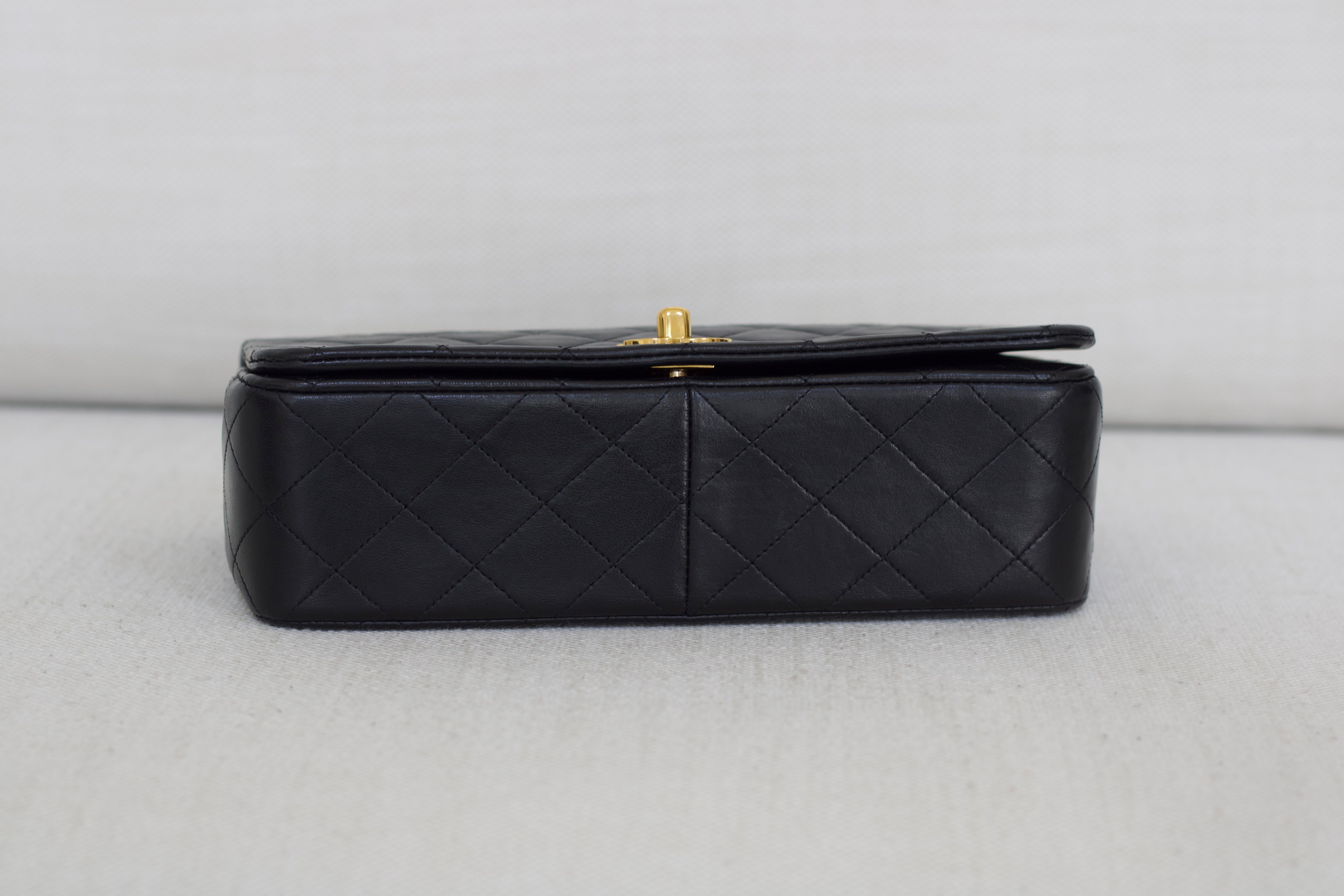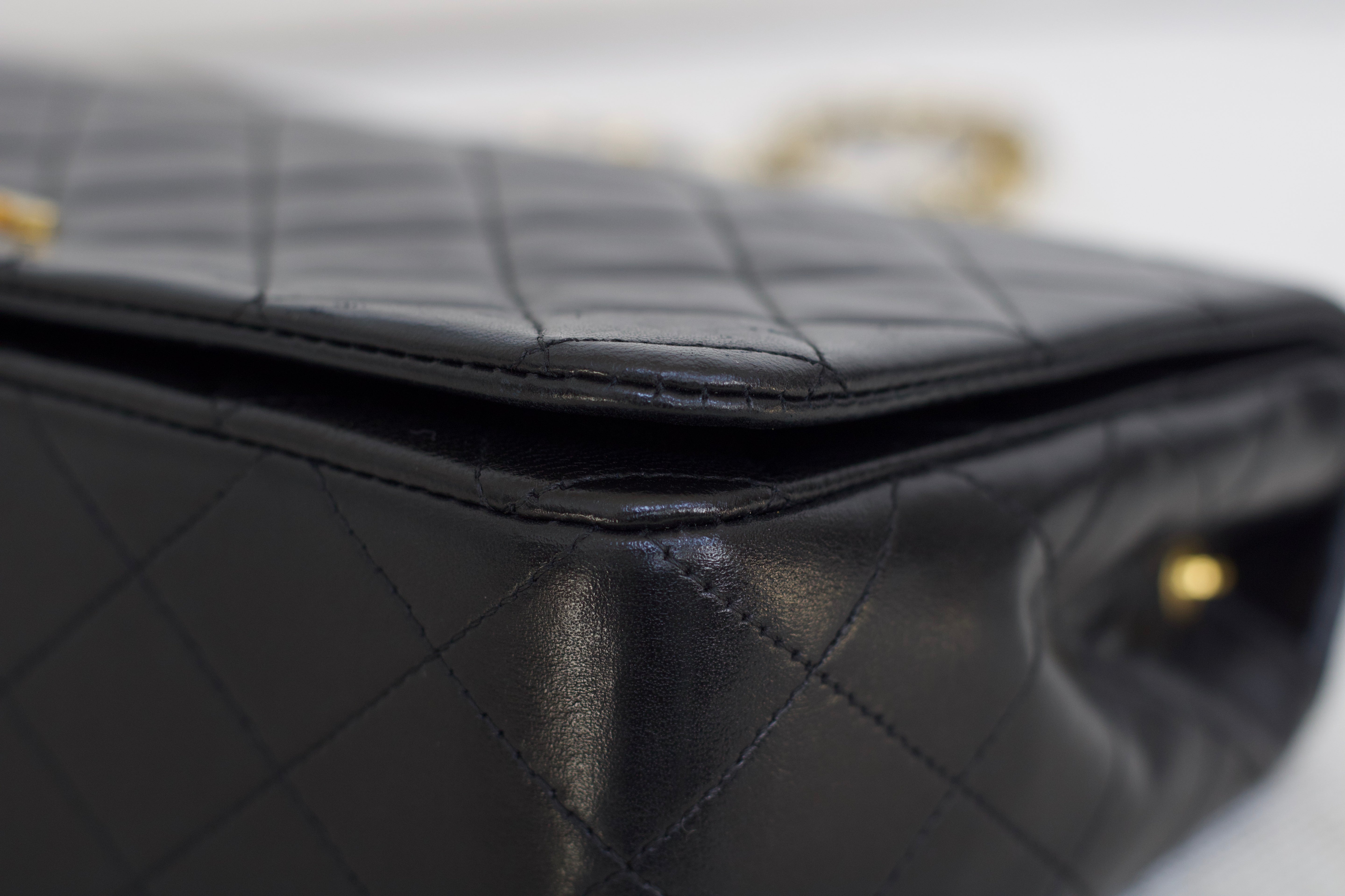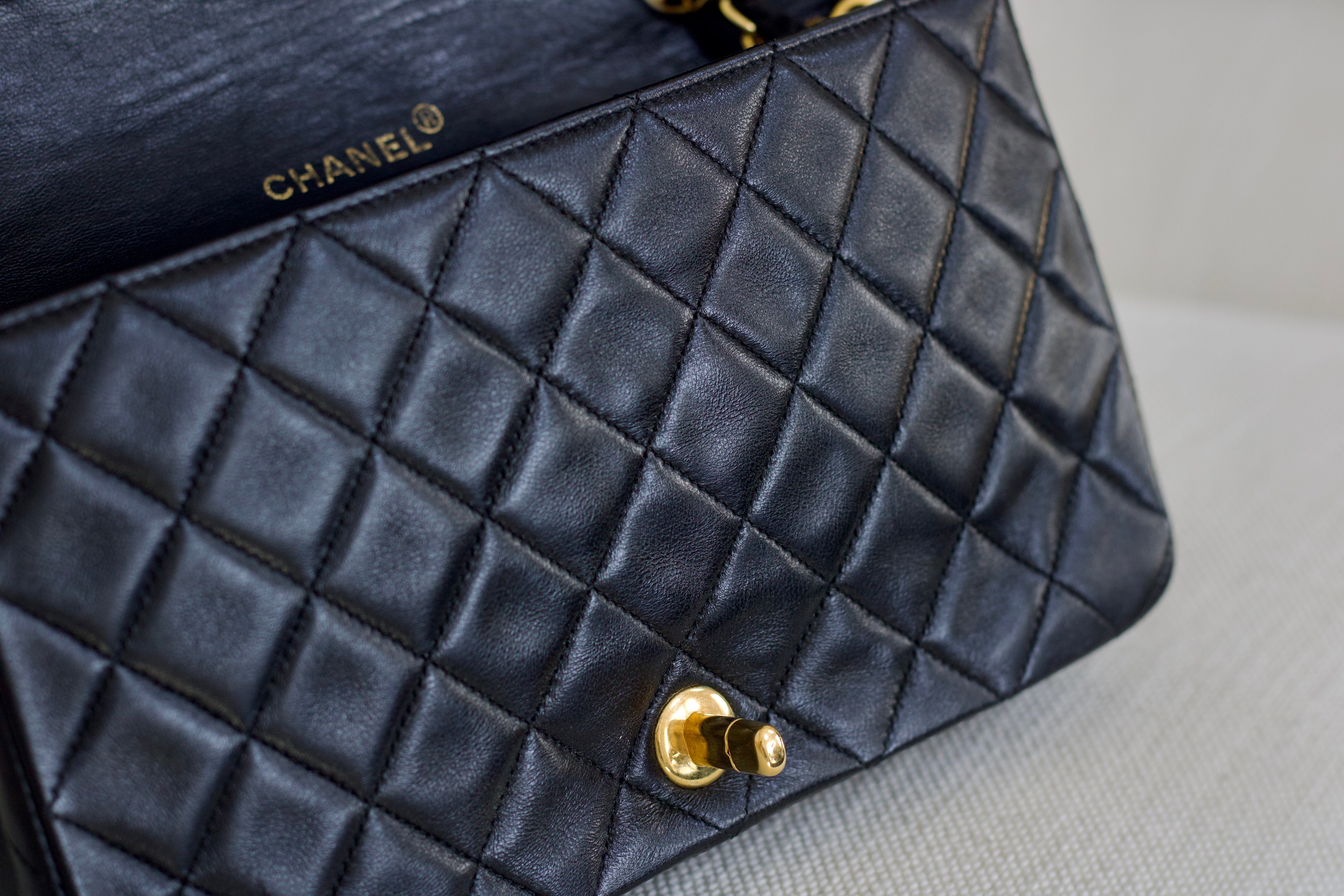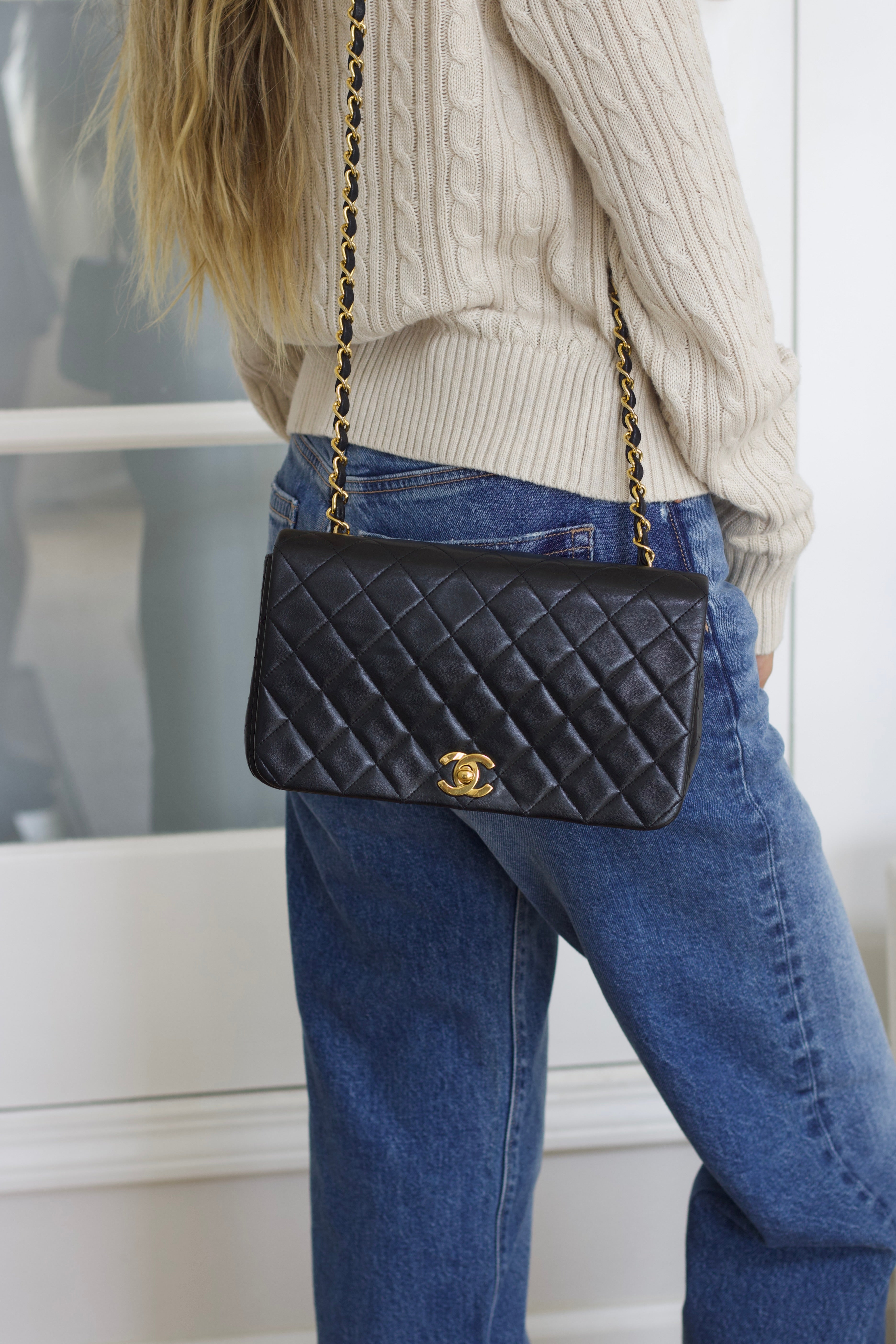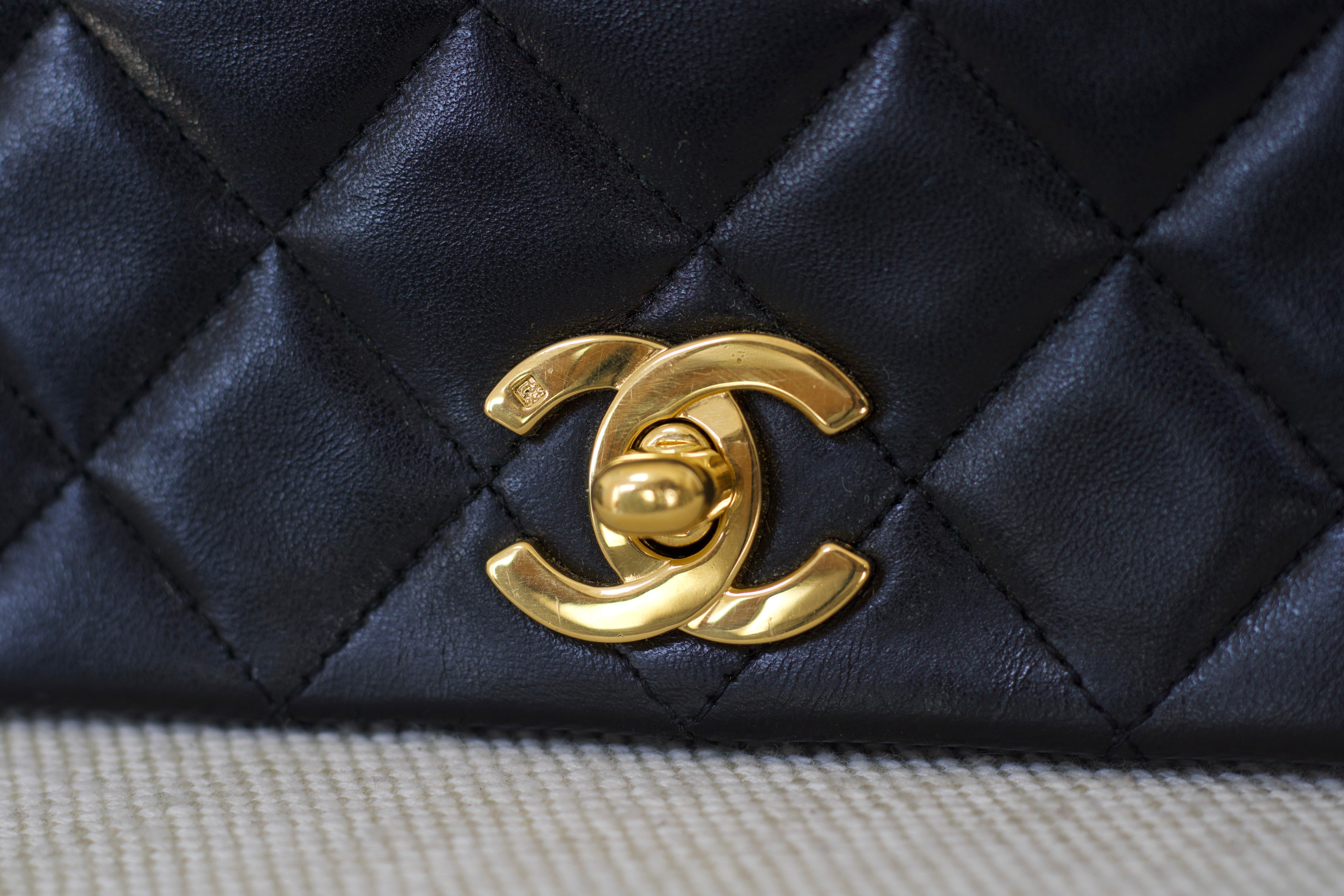 Vintage Chanel Black Lambskin Full Flap with 24k Gold Hardware