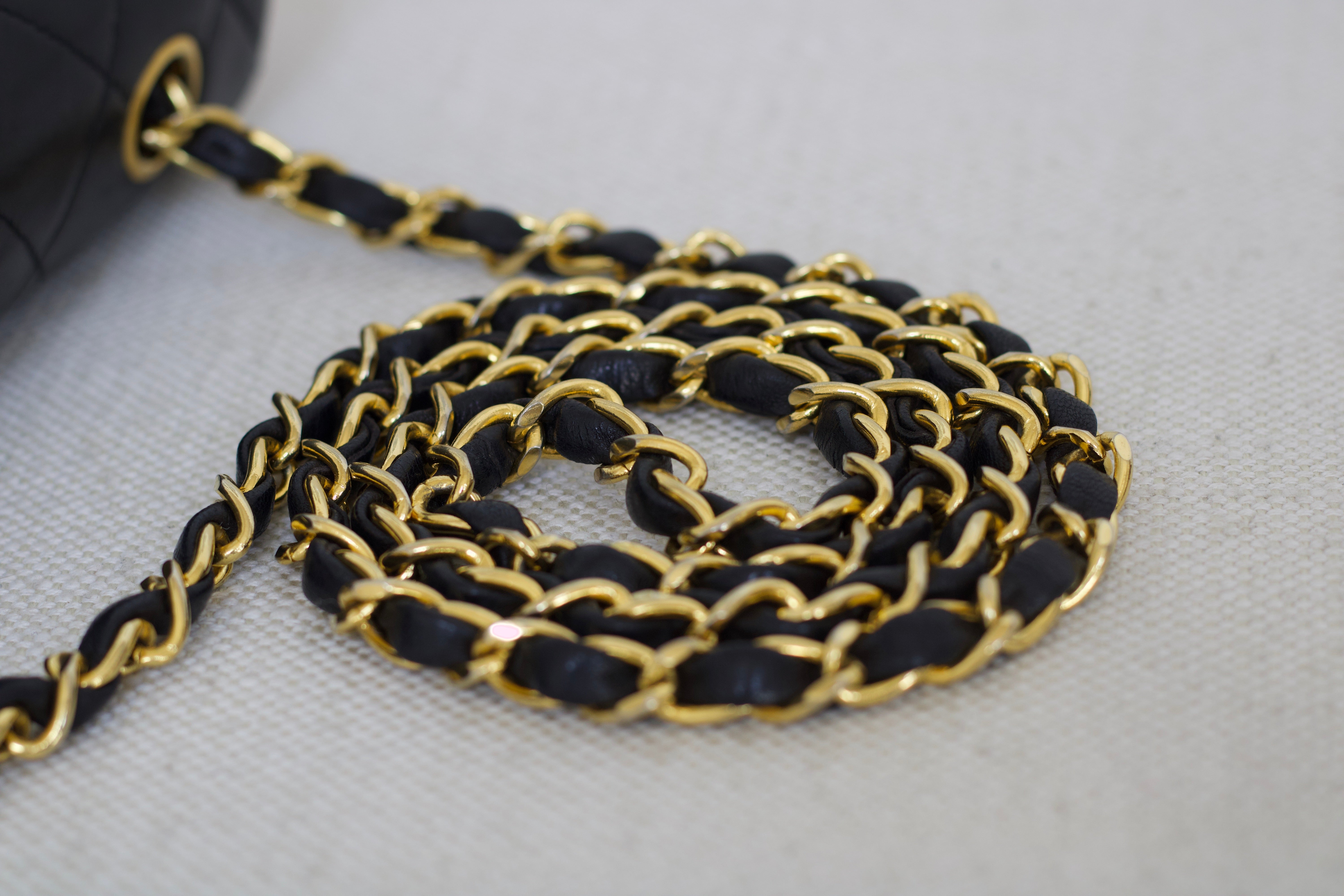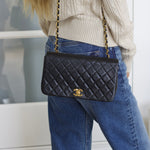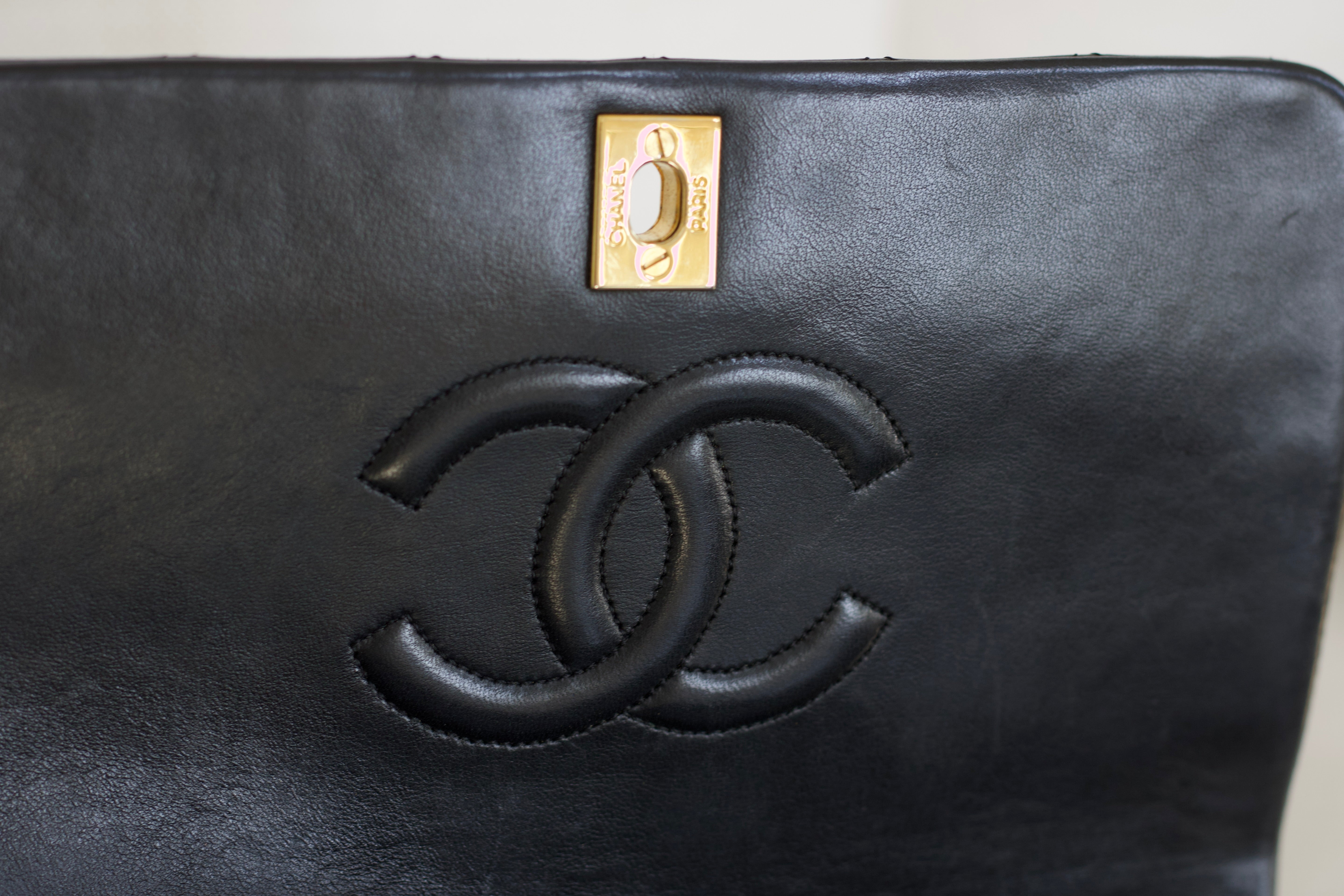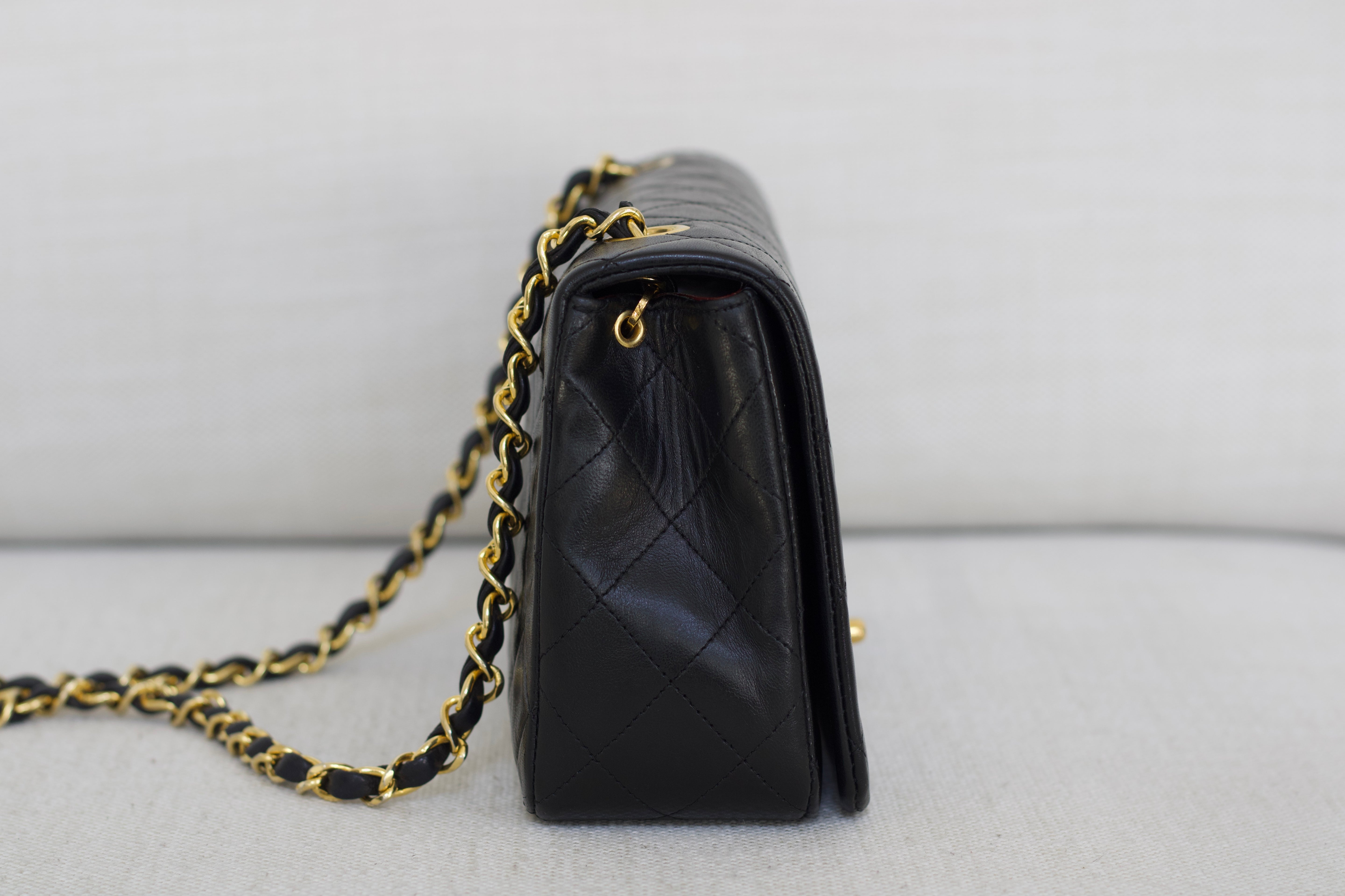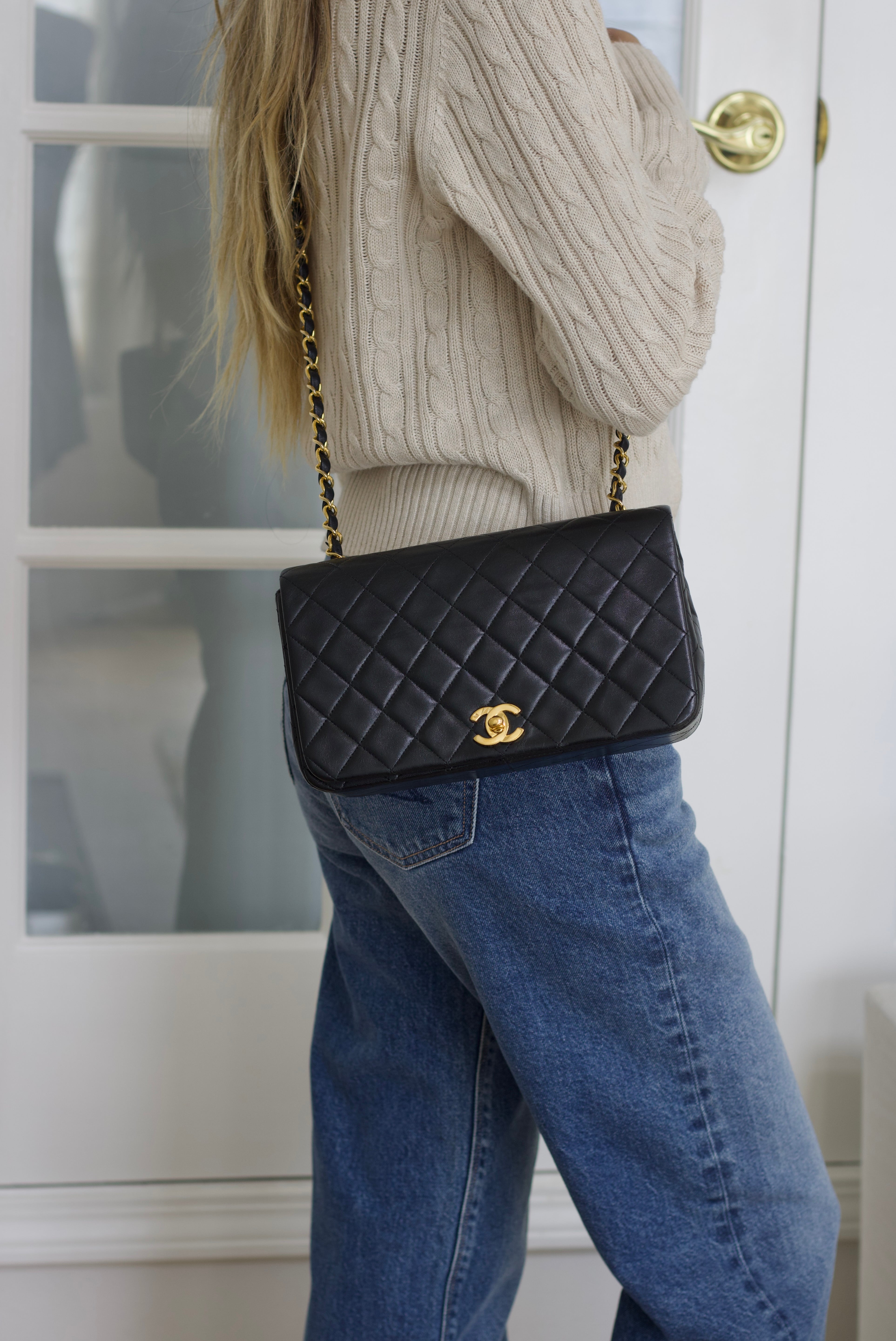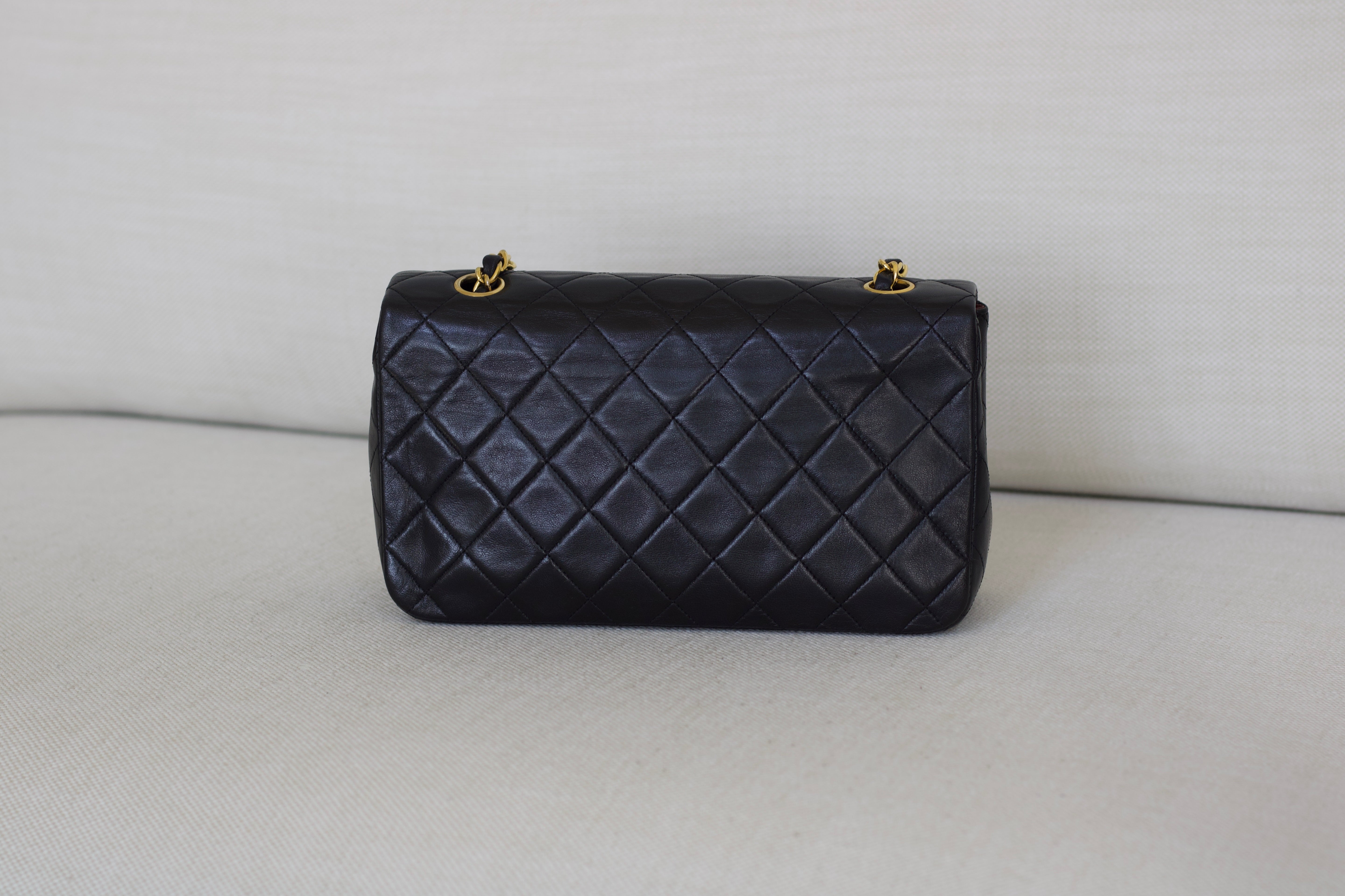 Vintage Chanel Black Lambskin Full Flap with 24k Gold Hardware
