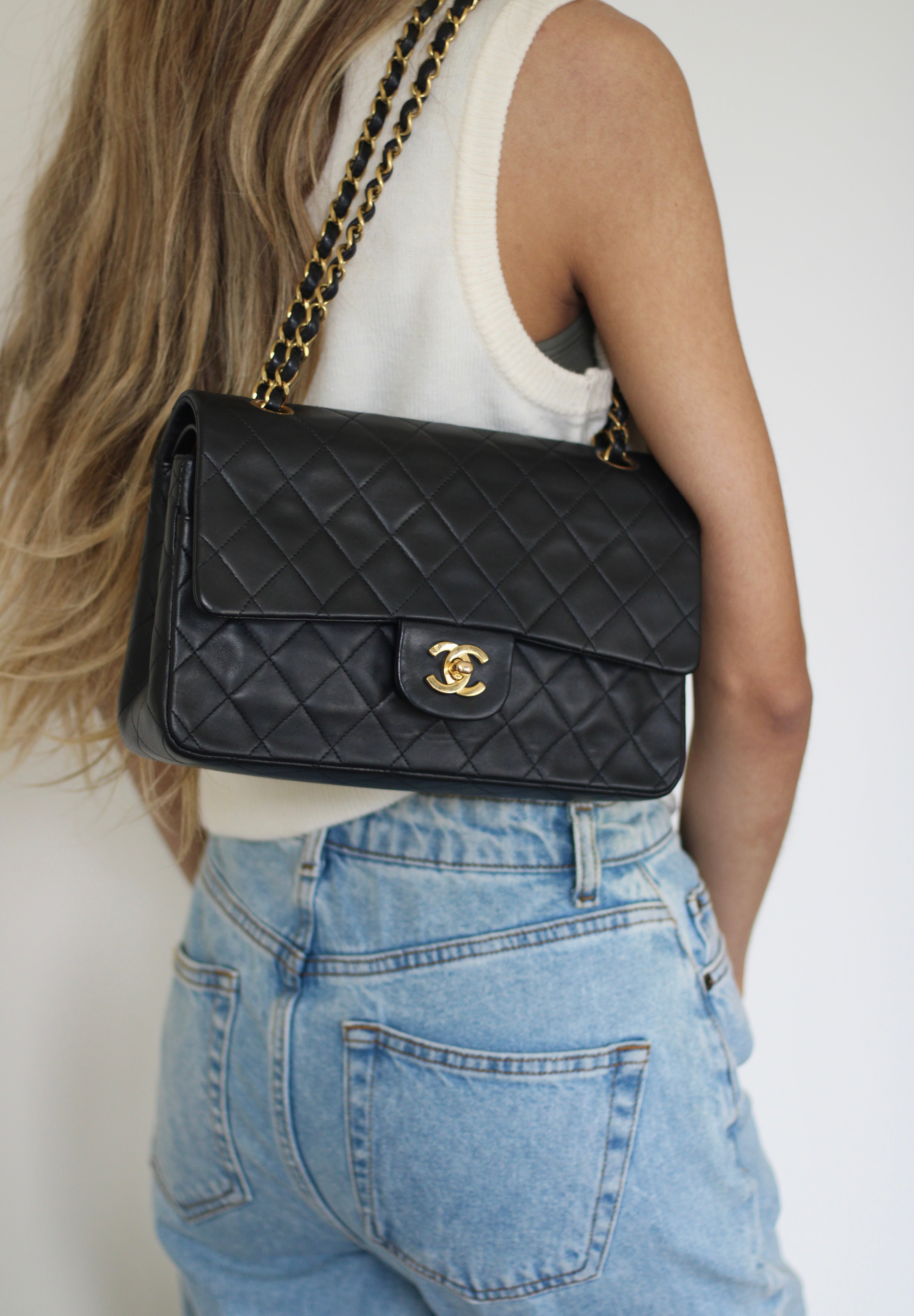 Vintage Chanel Navy Blue Lambskin Medium Classic Flap with 24k Gold Hardware (Pending)
