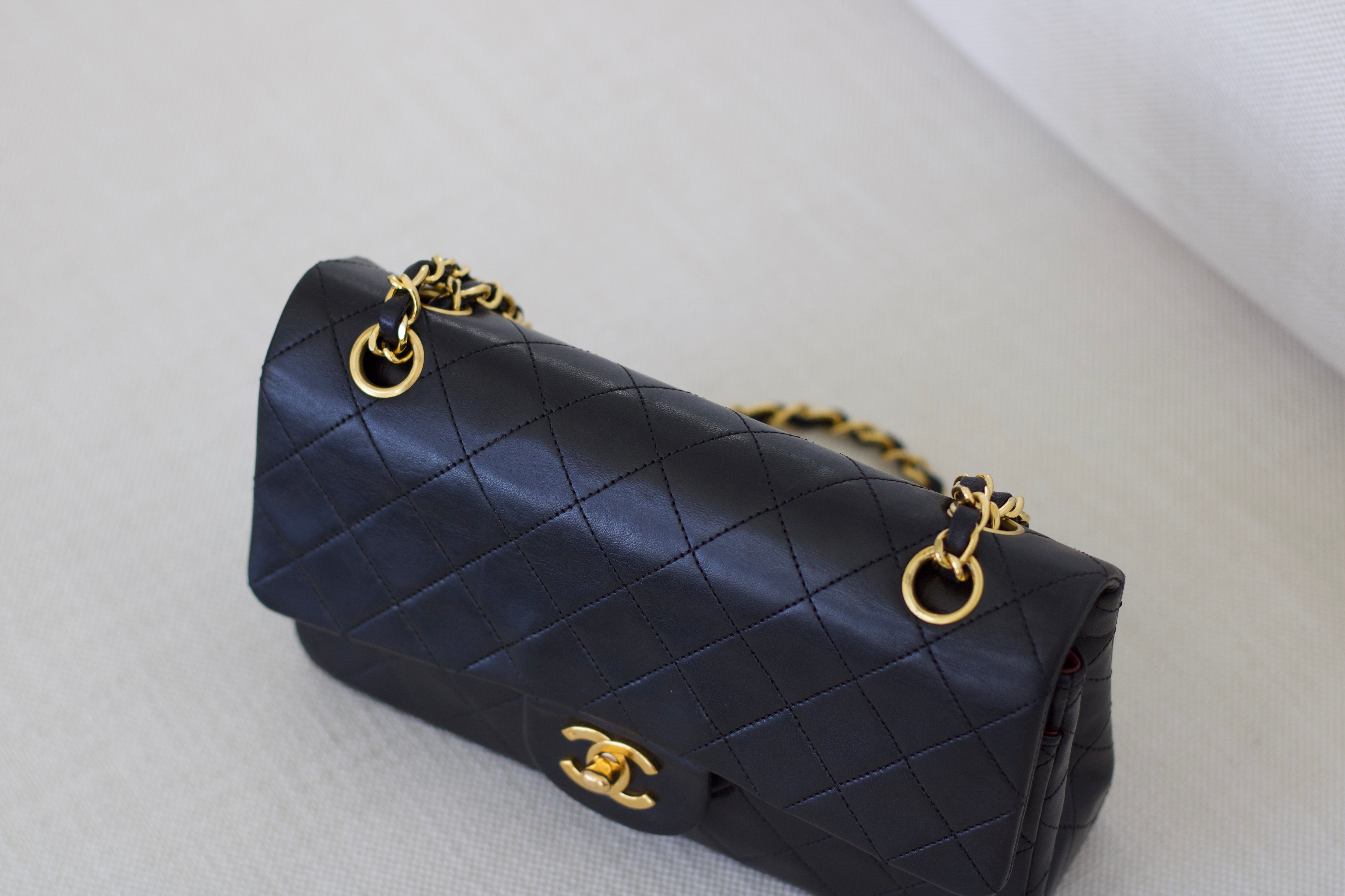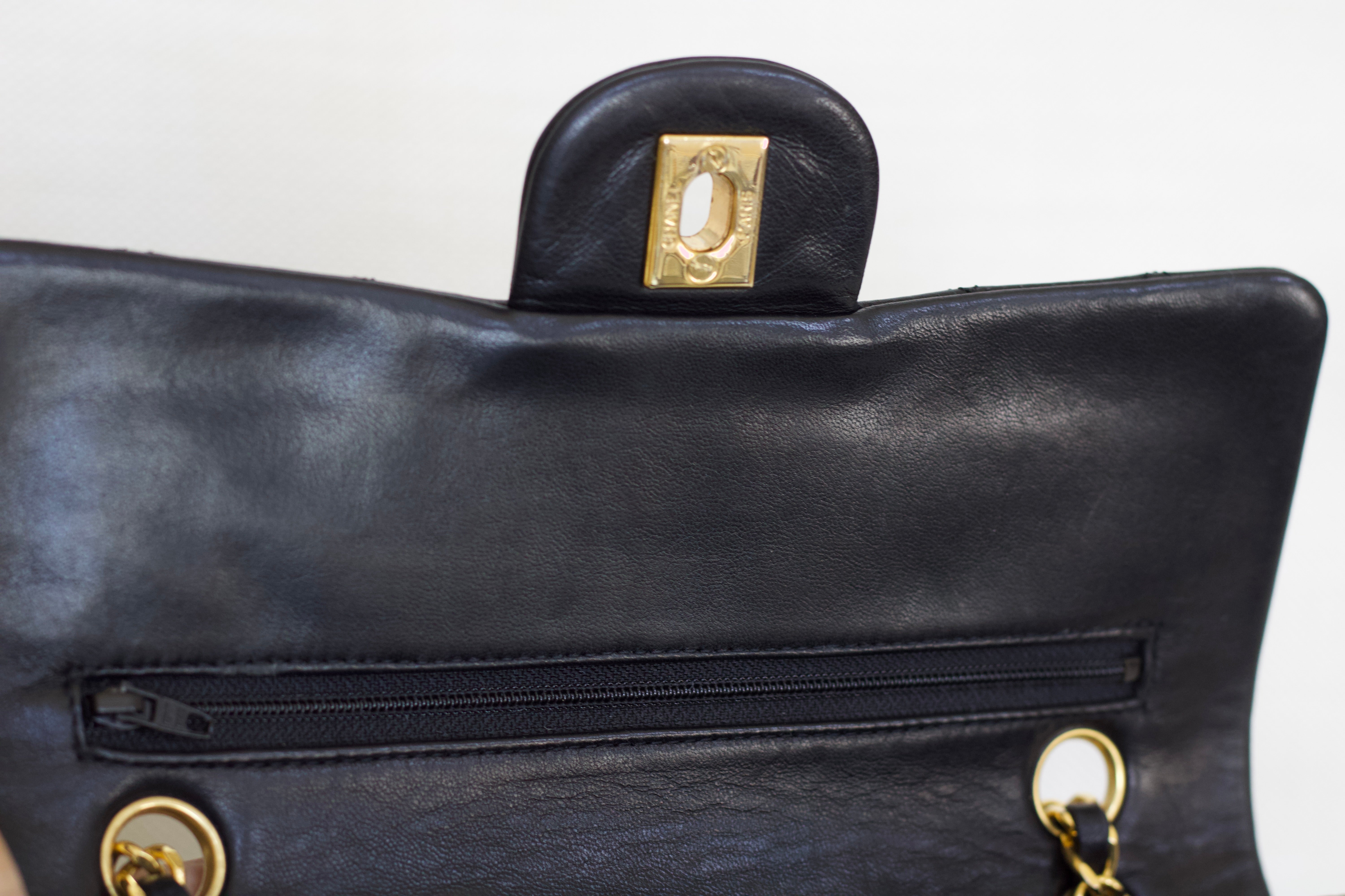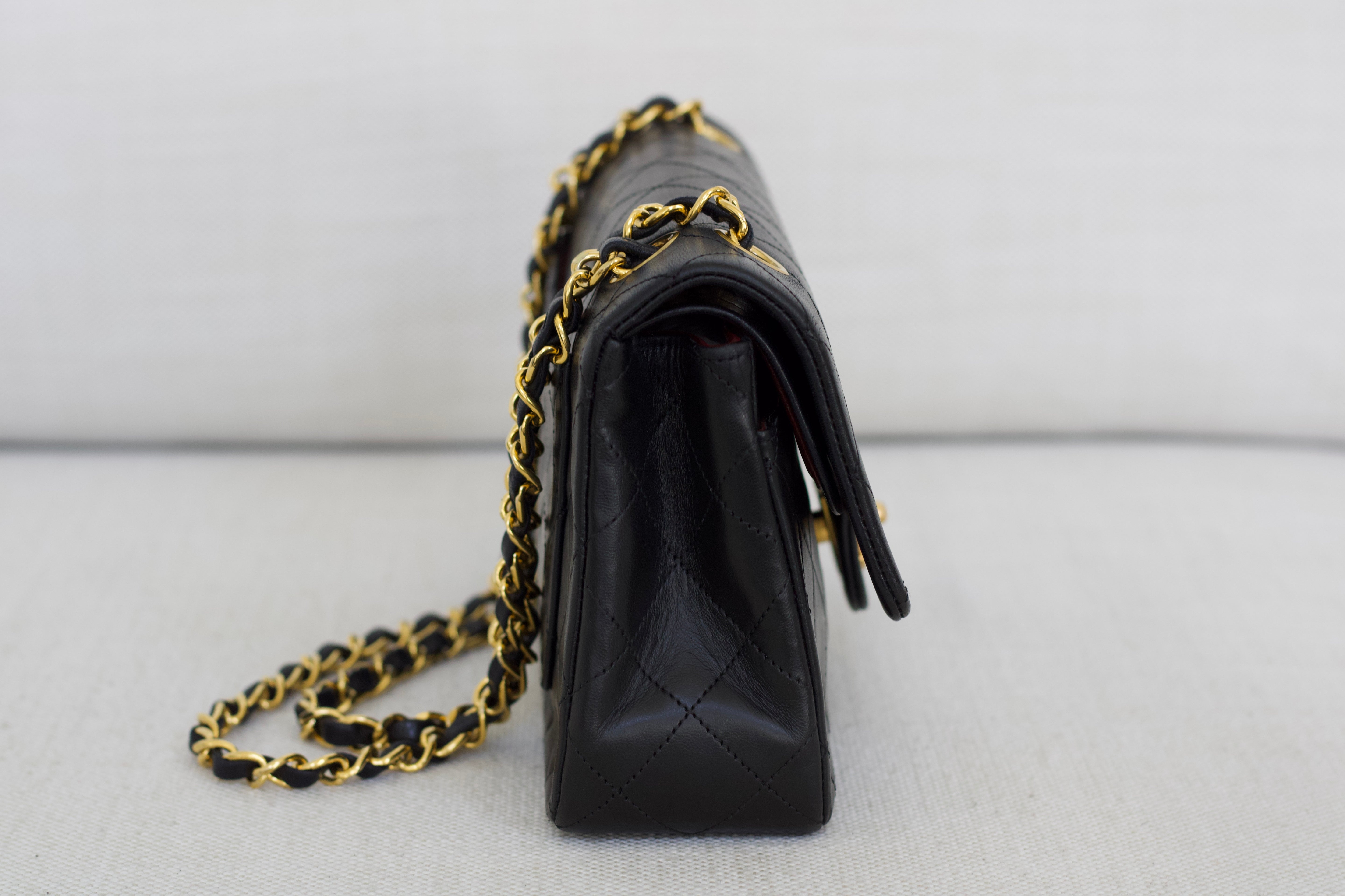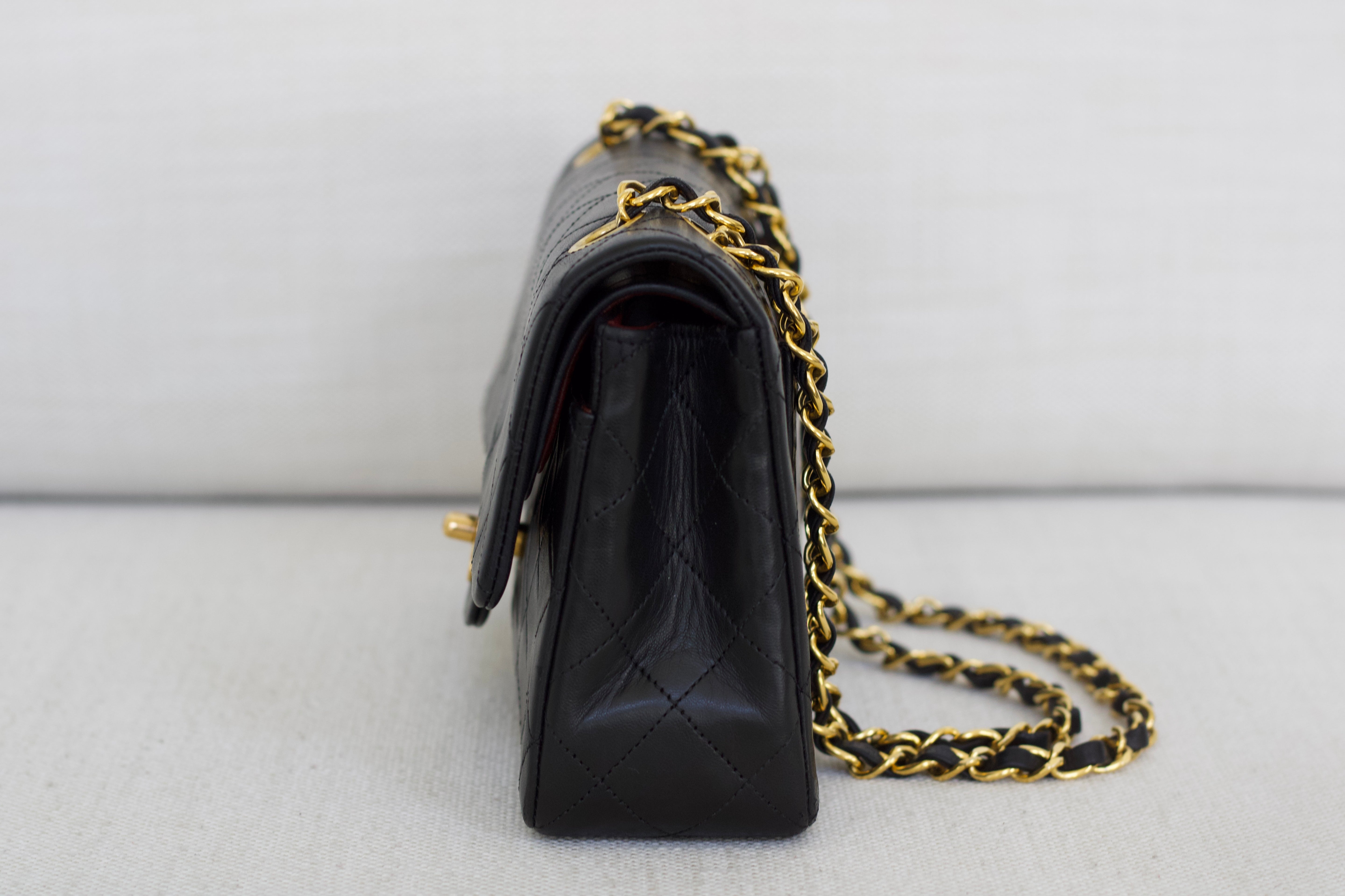 Vintage Chanel Black Lambskin Small Classic Flap with 24k Gold Hardware