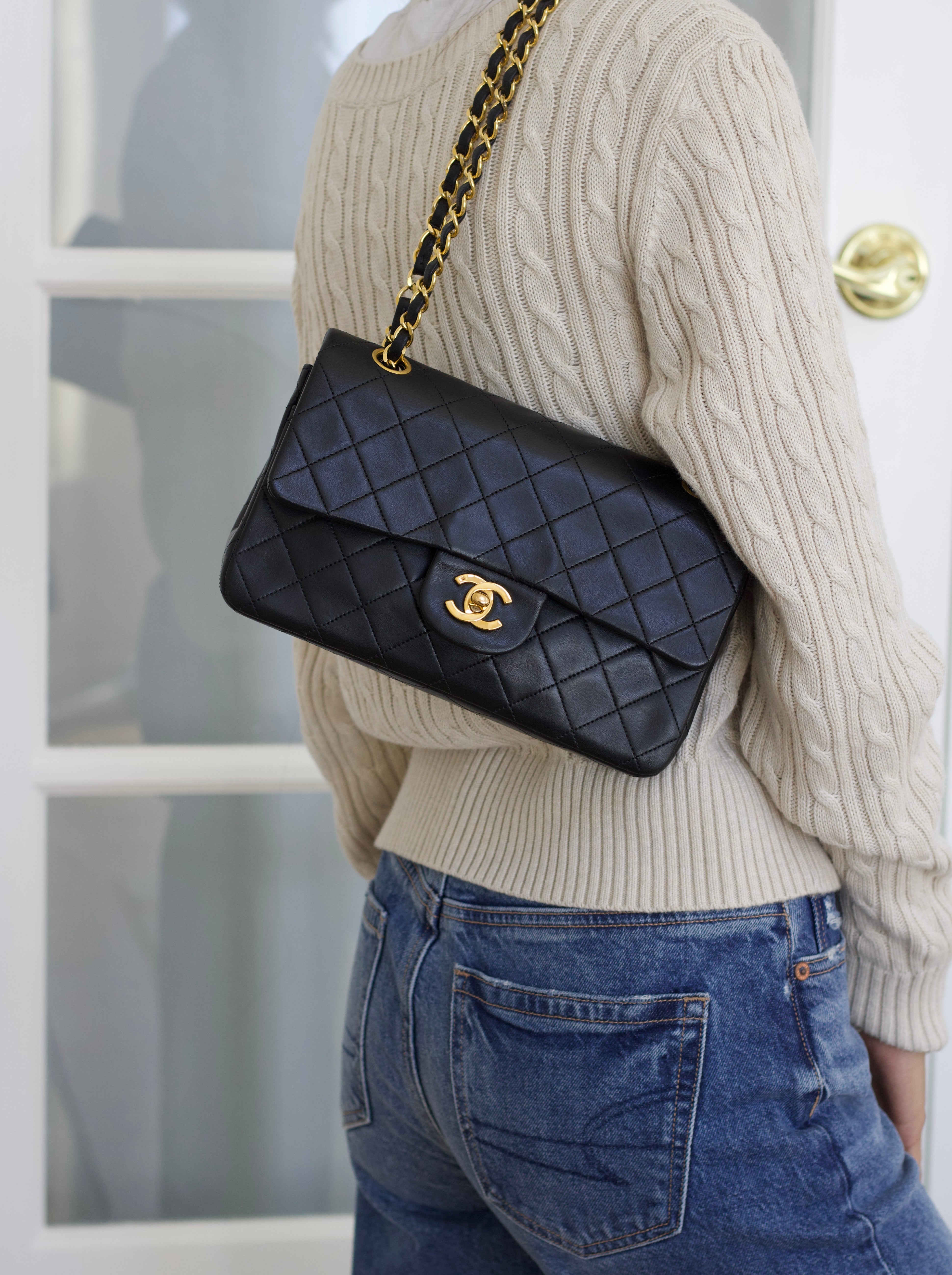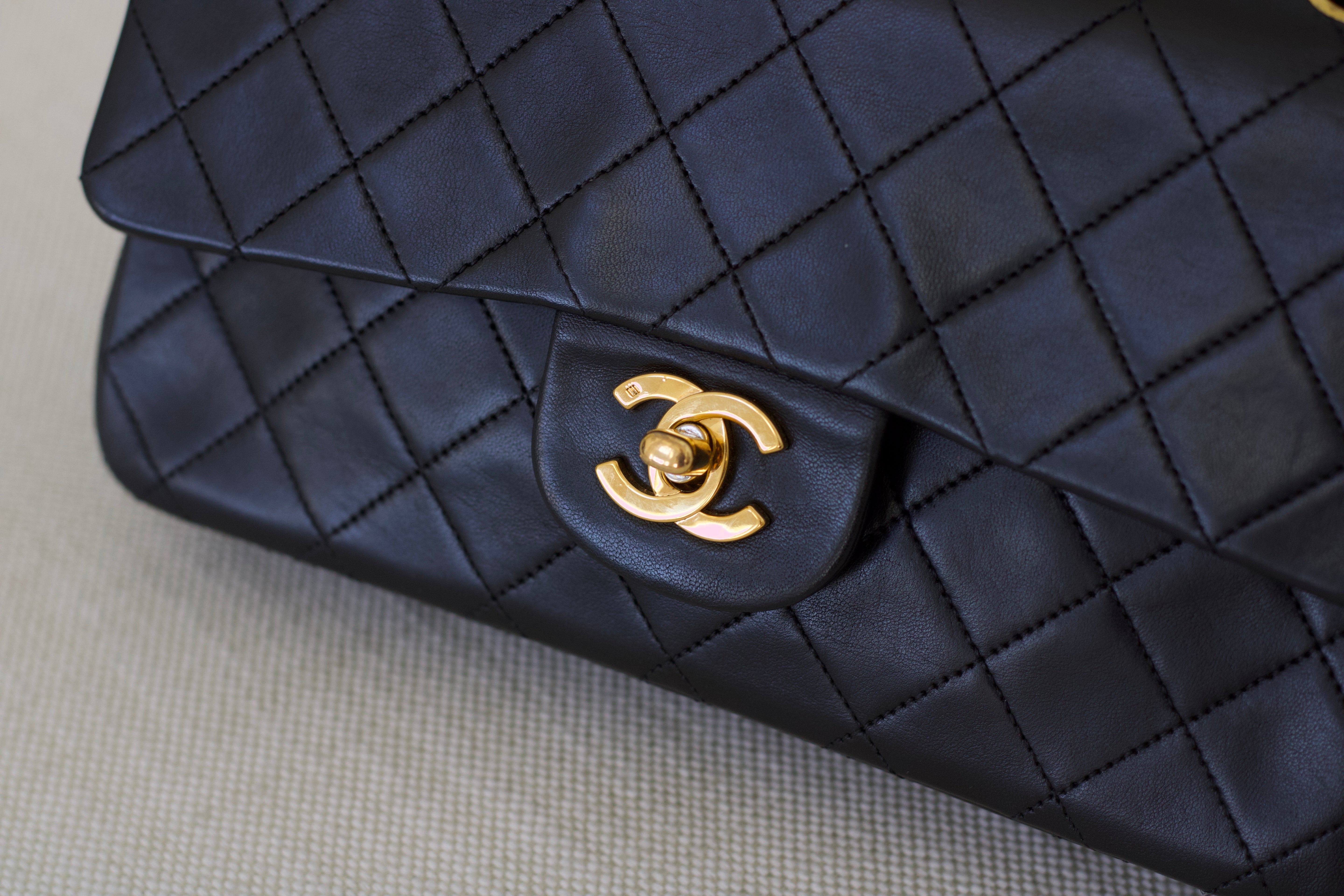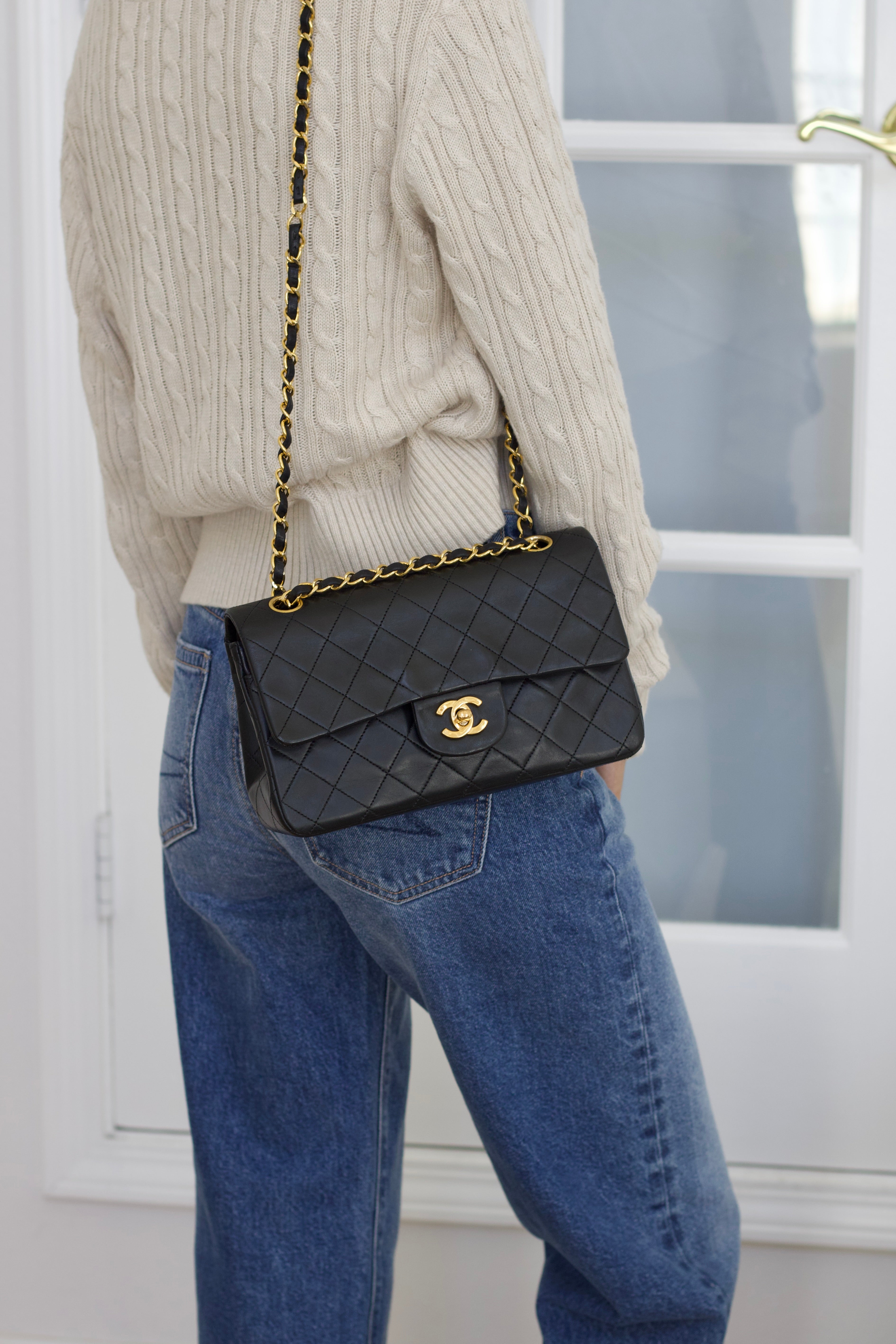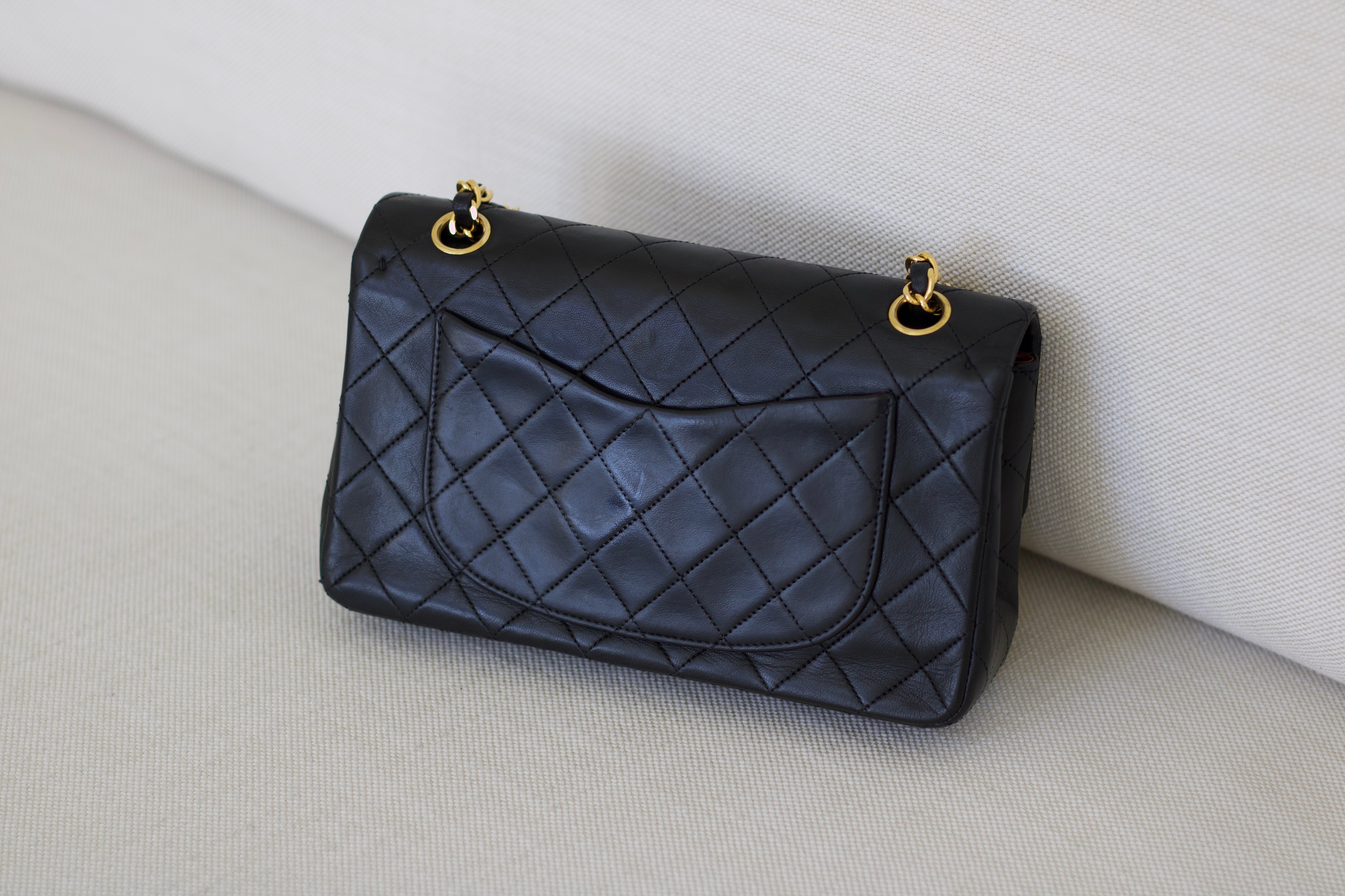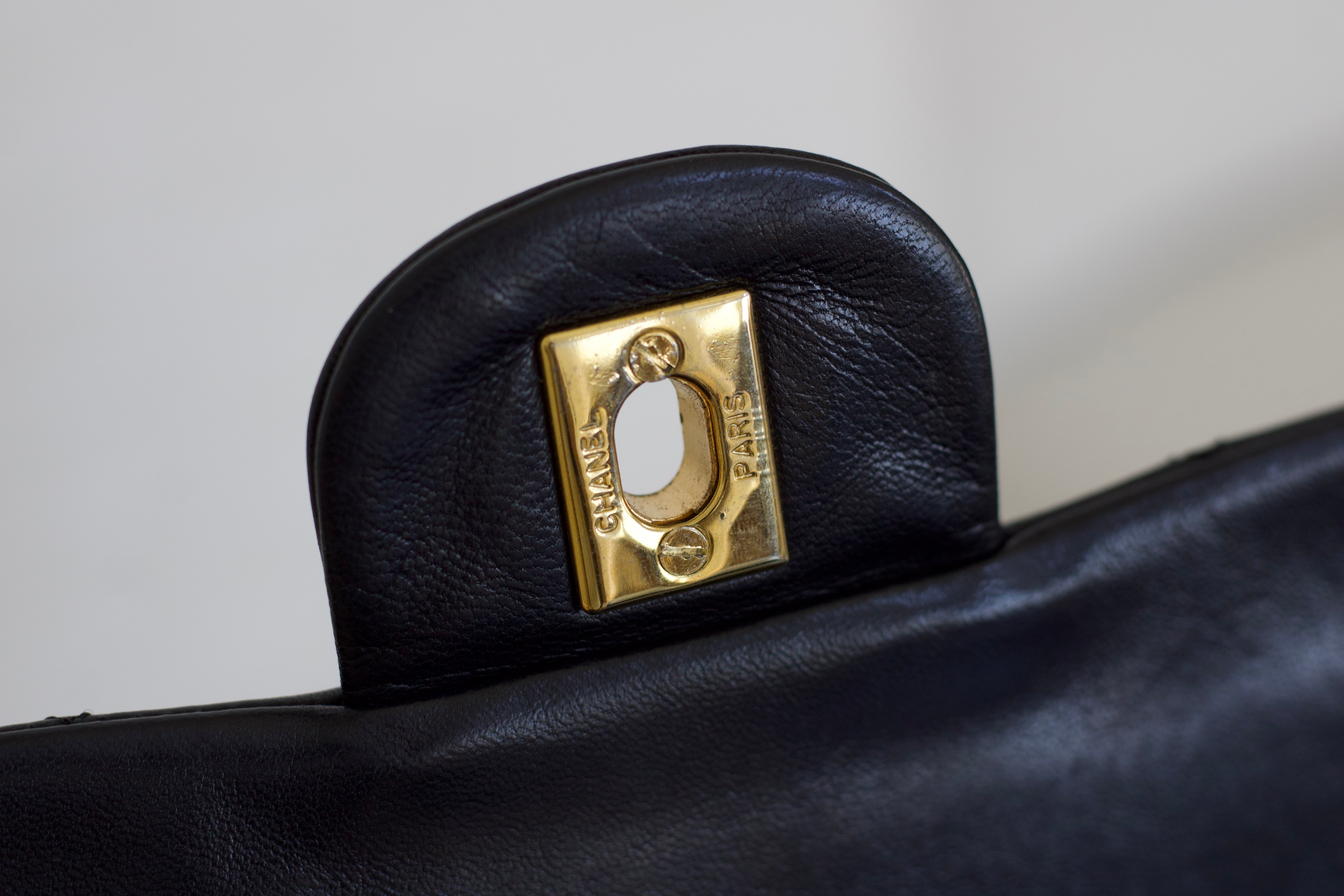 Vintage Chanel Black Lambskin Small Classic Flap with 24k Gold Hardware