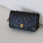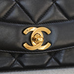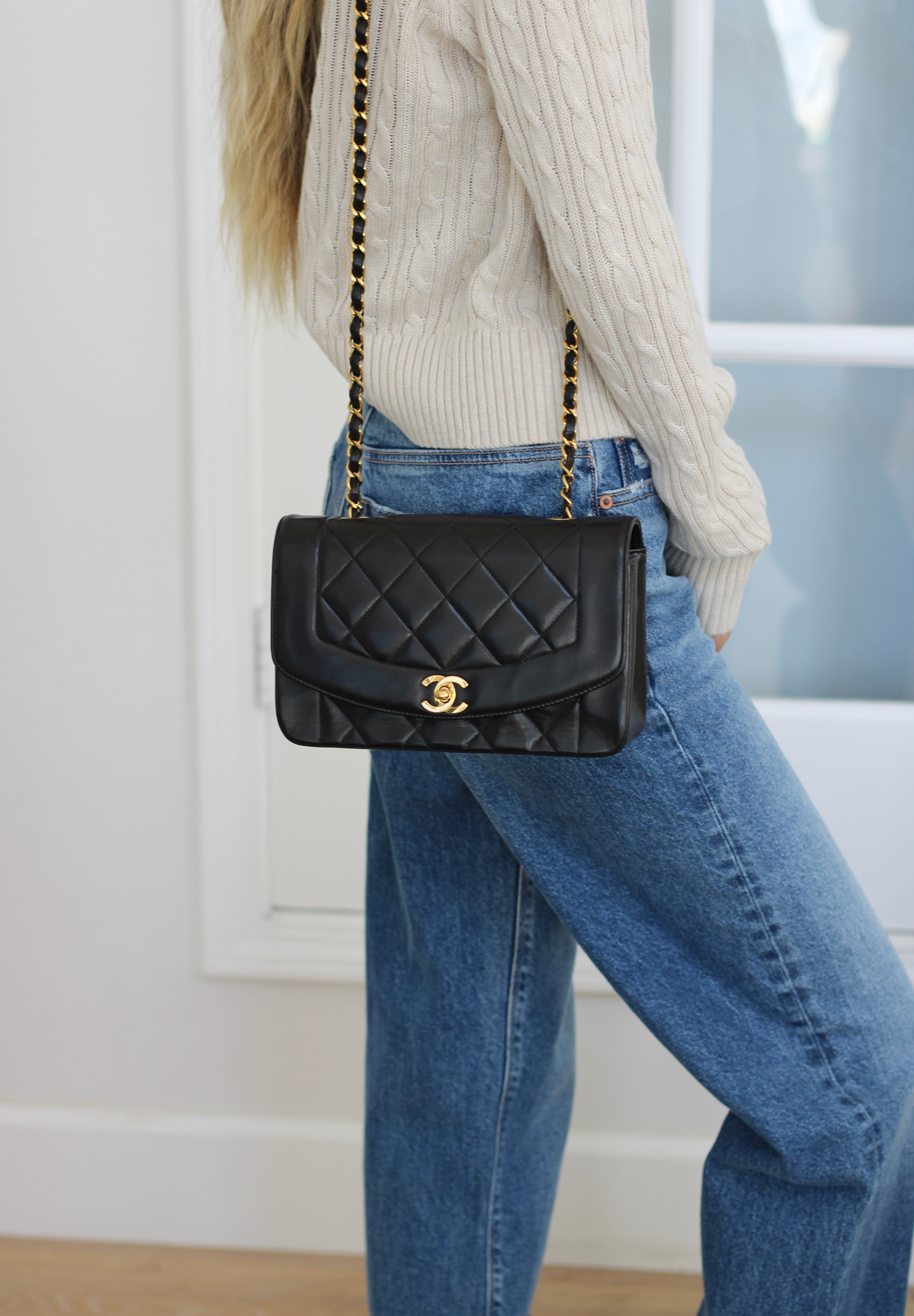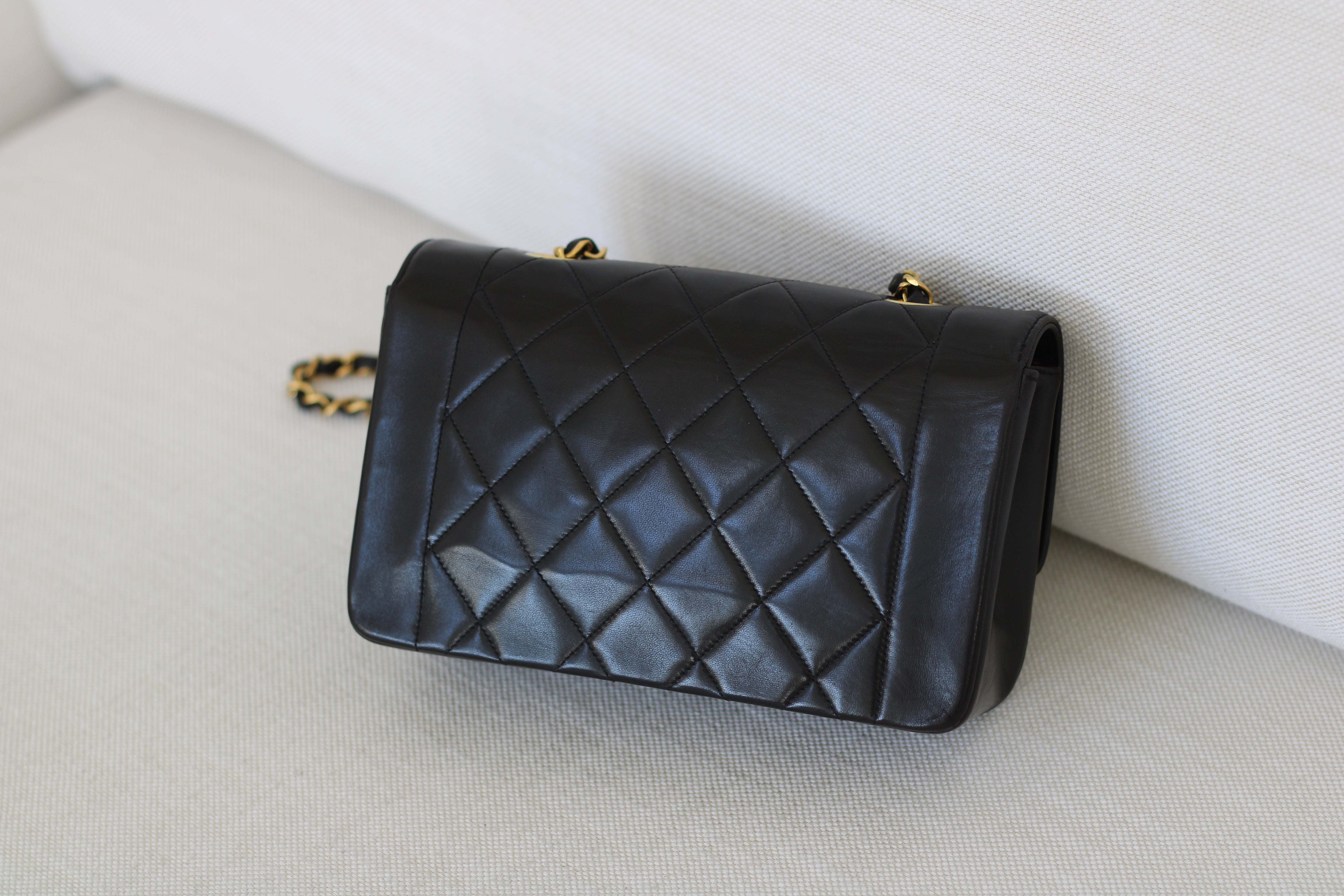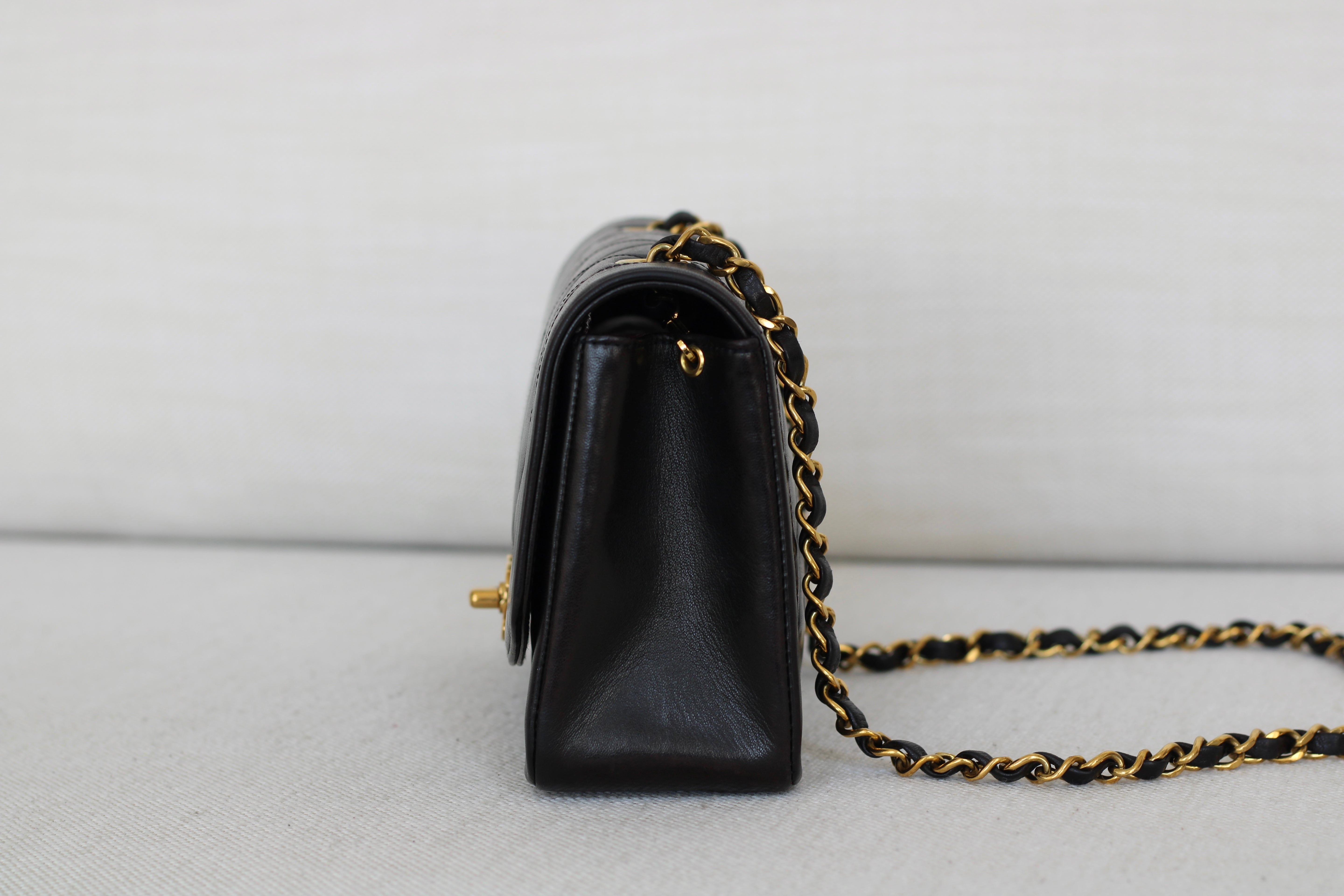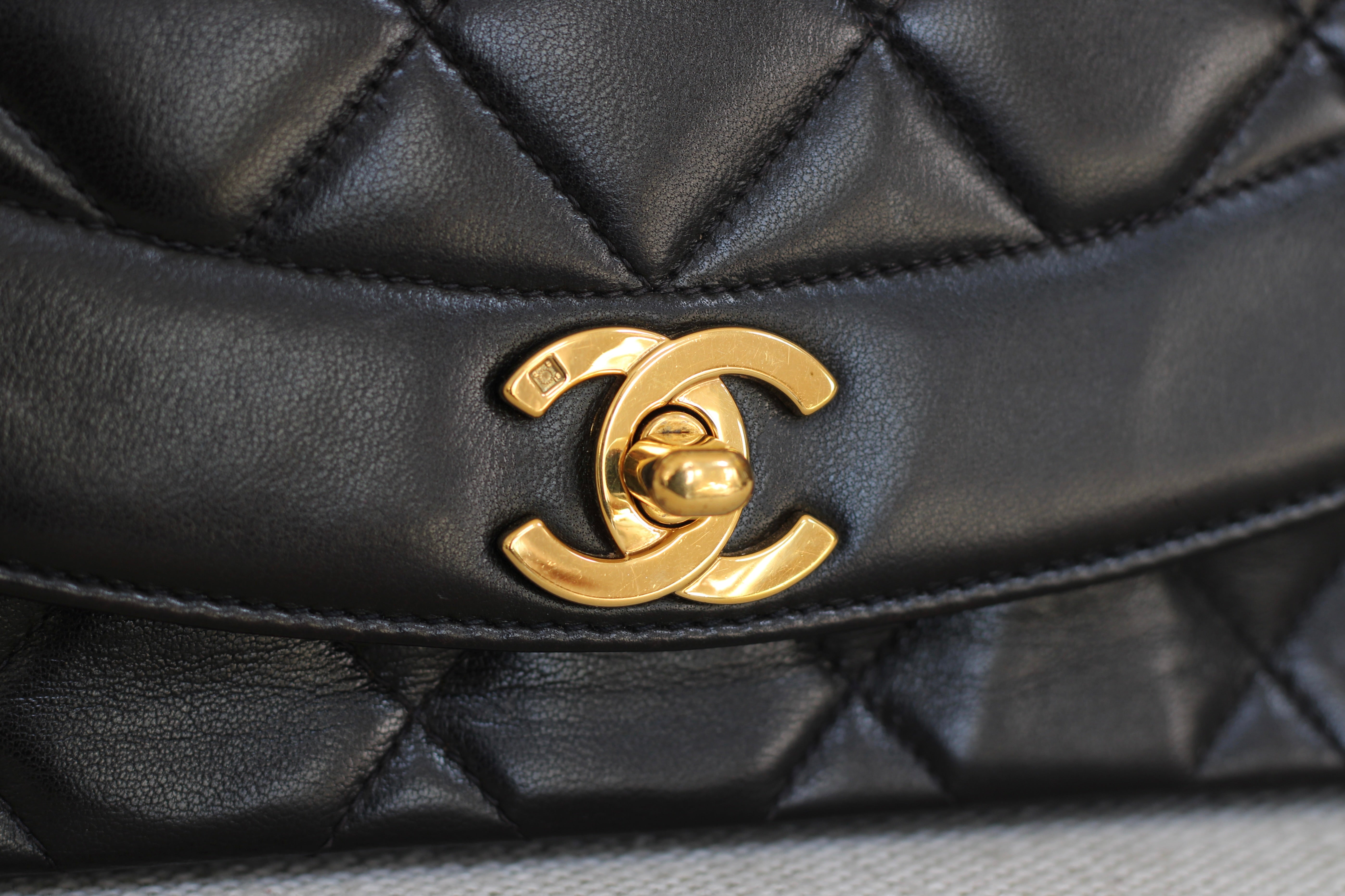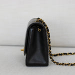 Vintage Chanel Black Lambskin Small Diana with 24k Gold Hardware