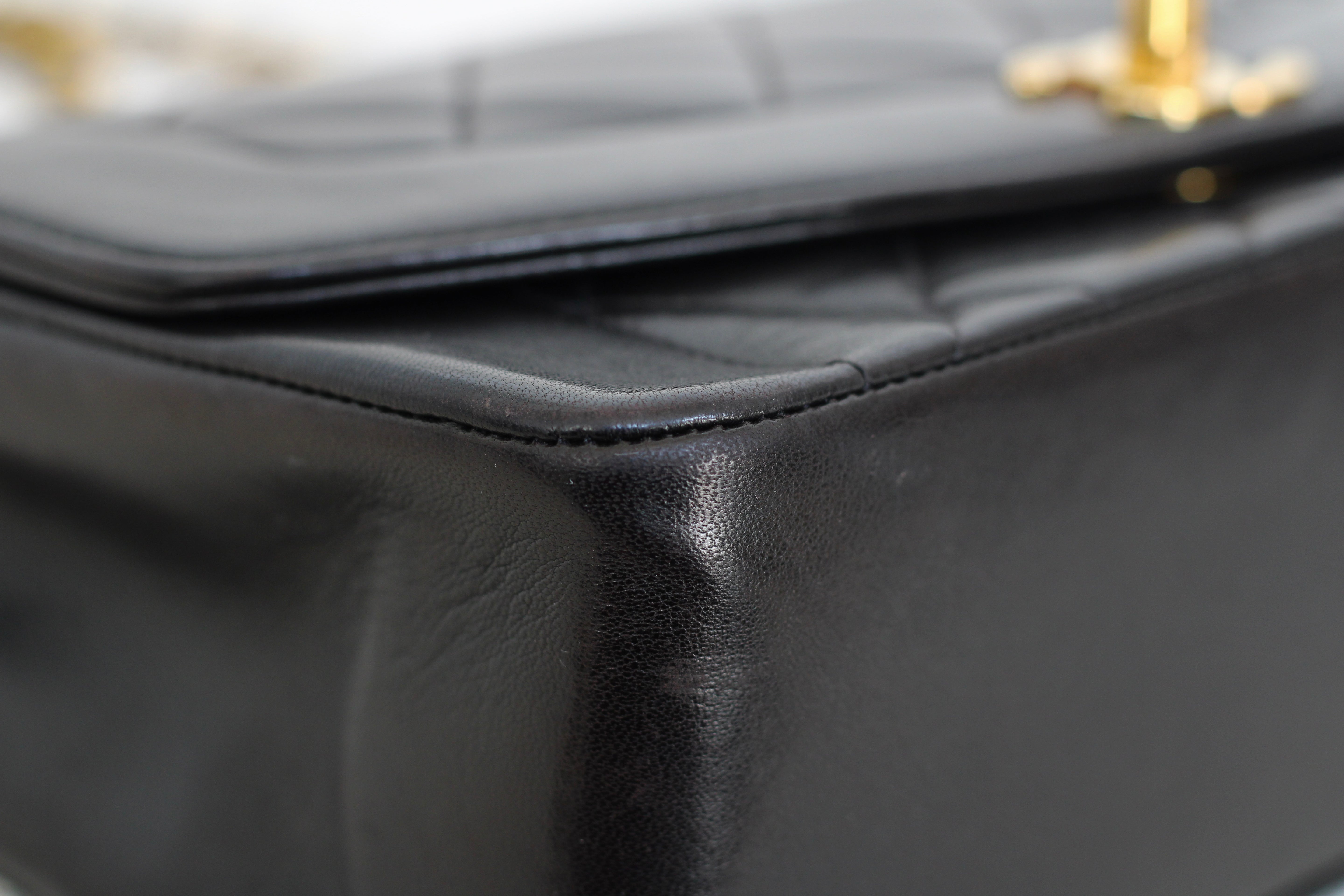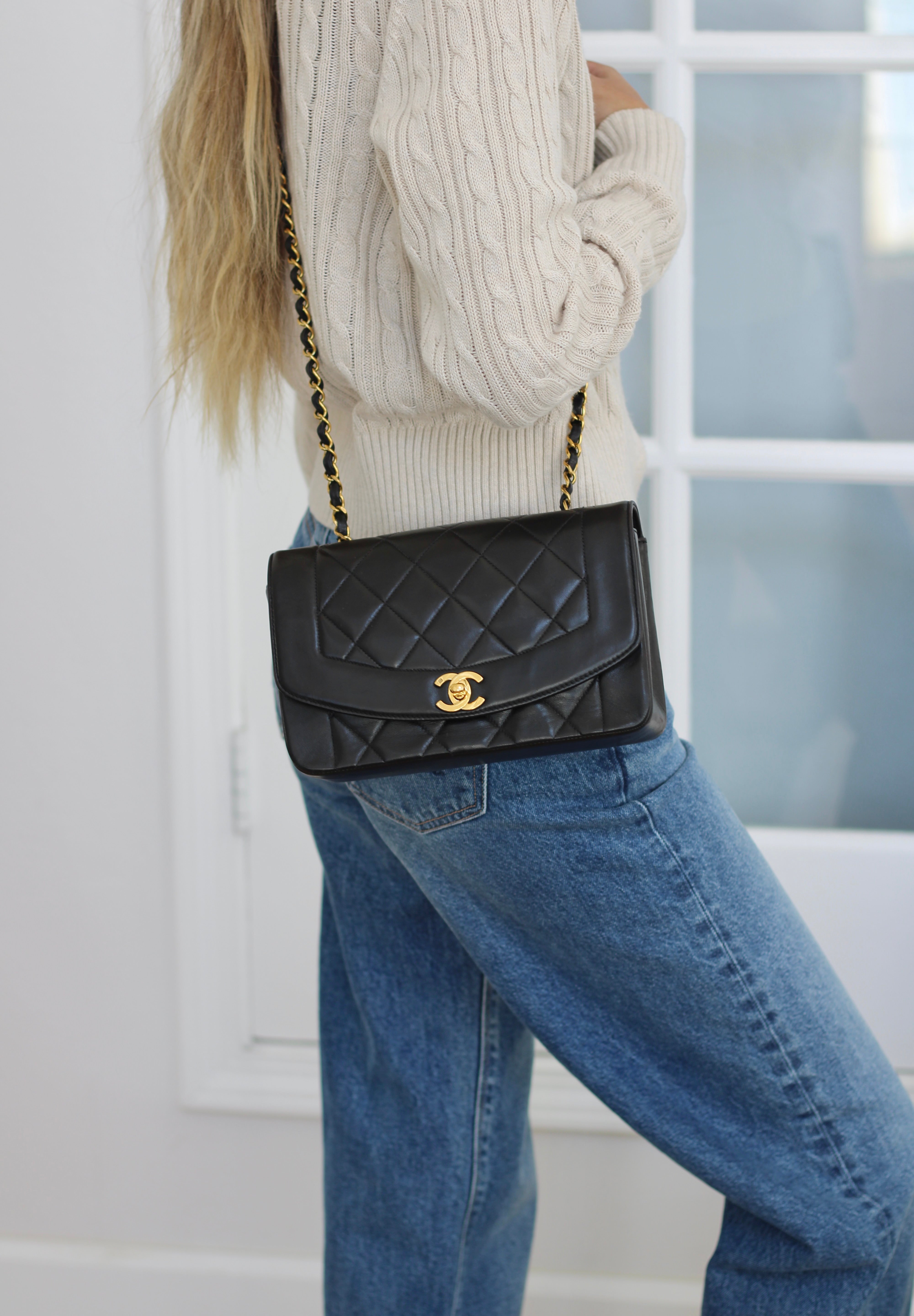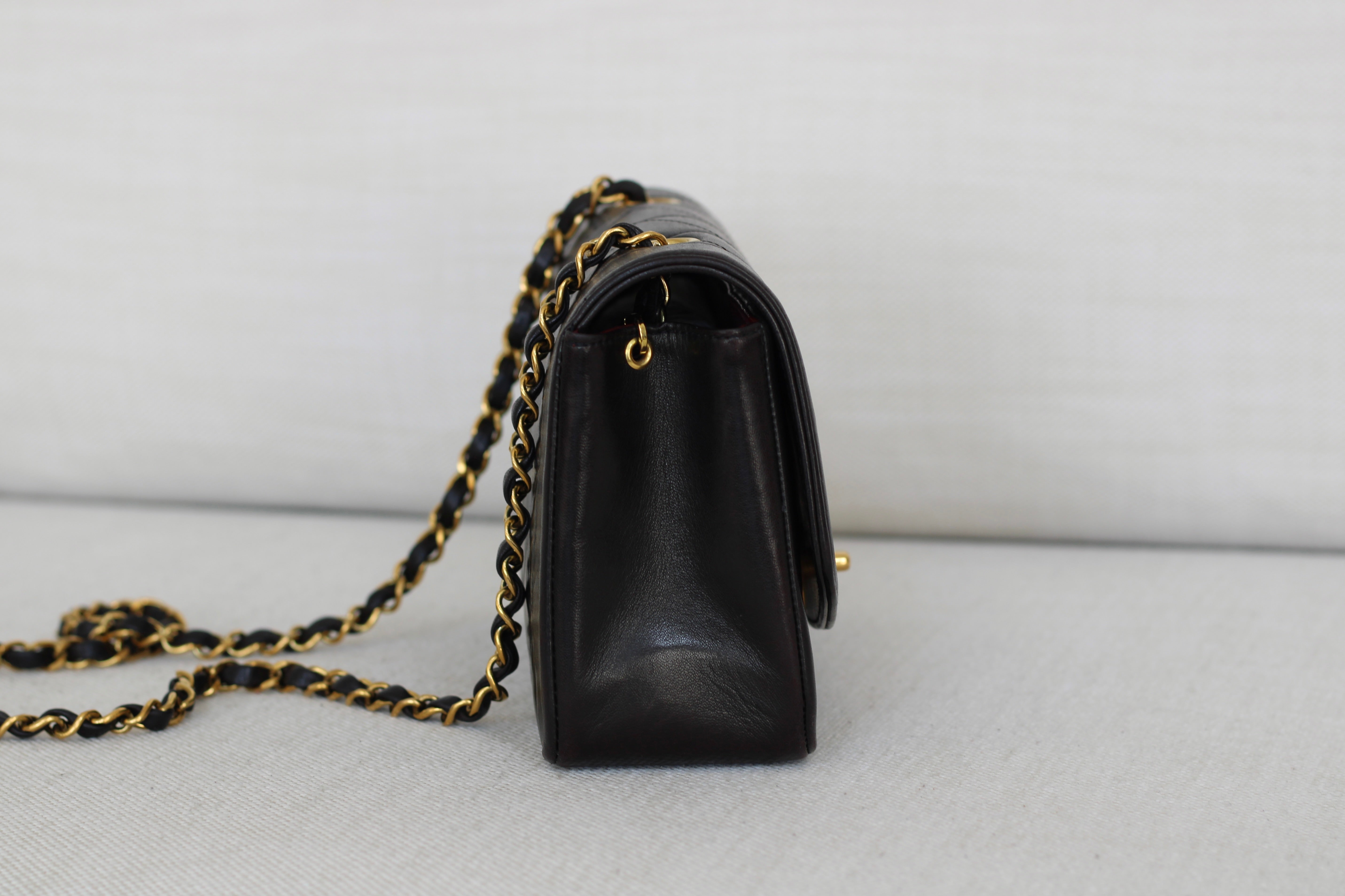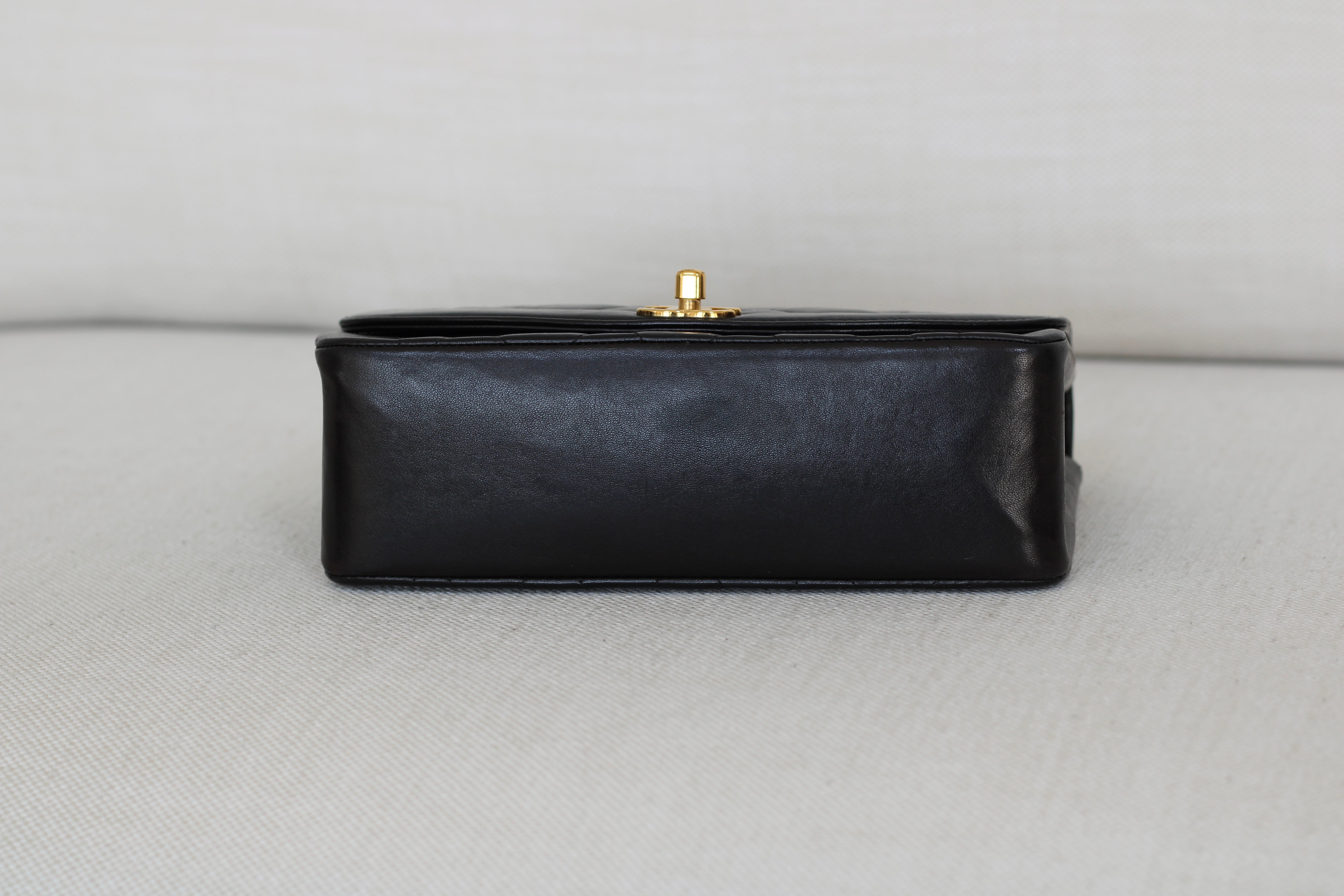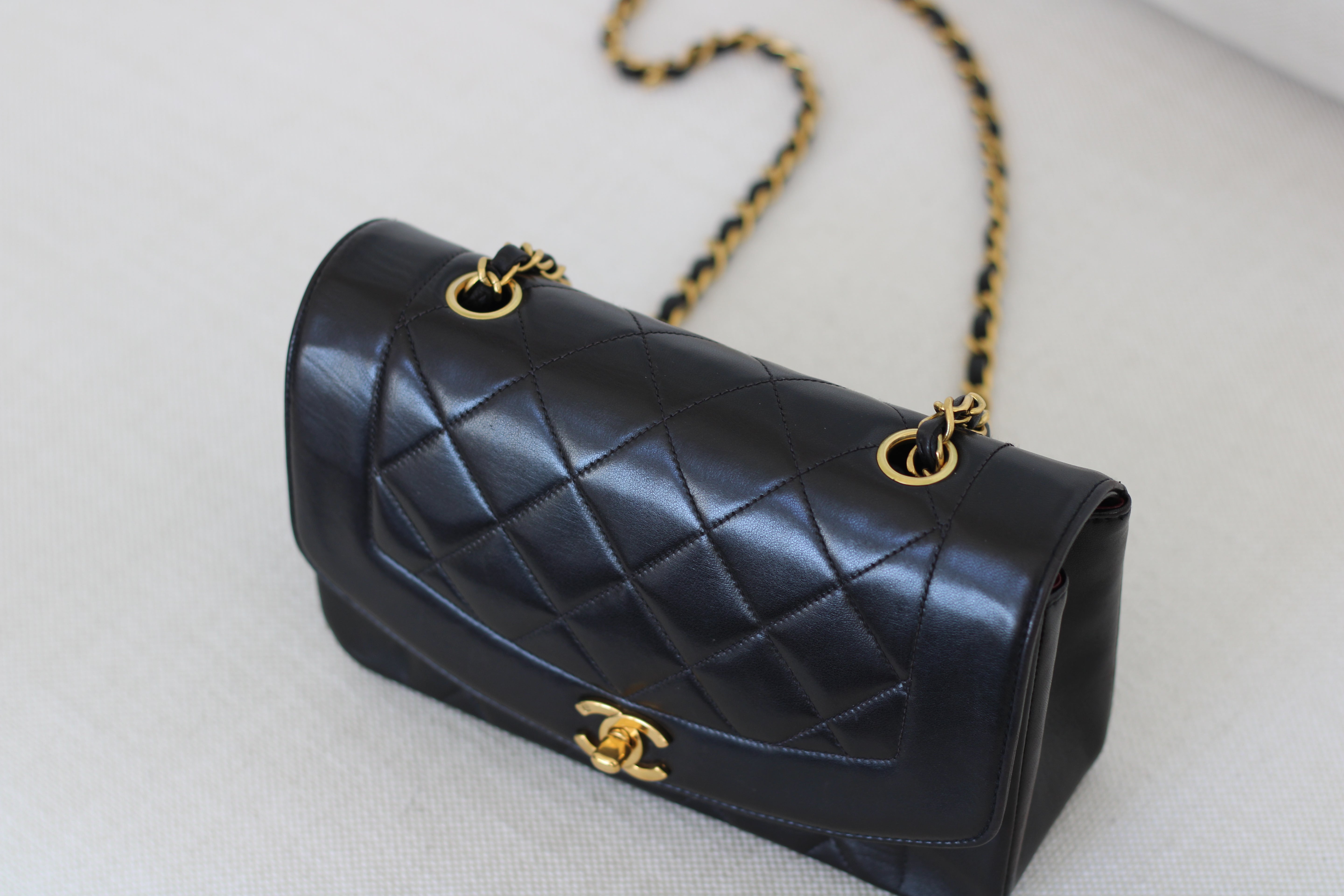 Vintage Chanel Black Lambskin Small Diana with 24k Gold Hardware