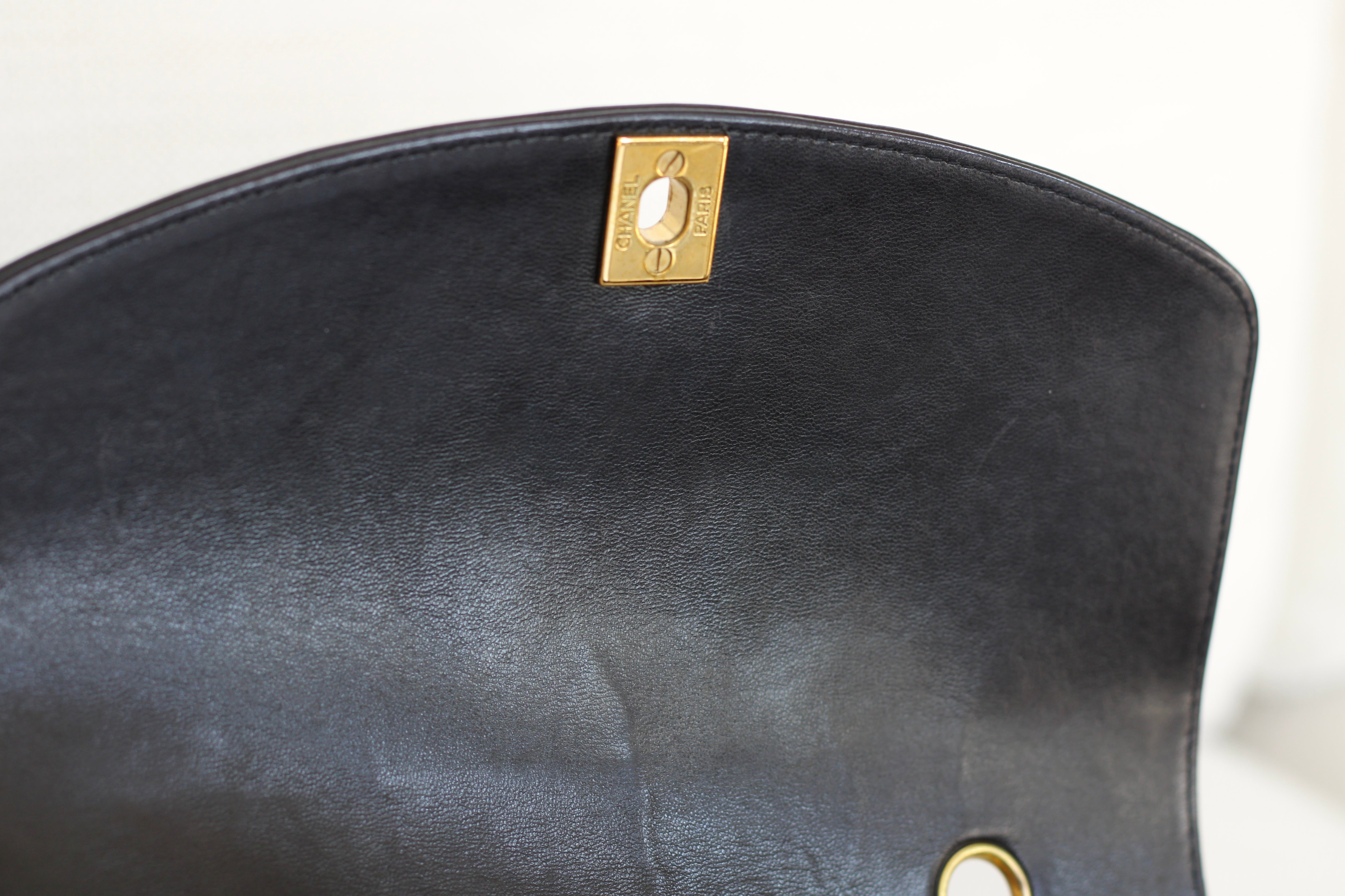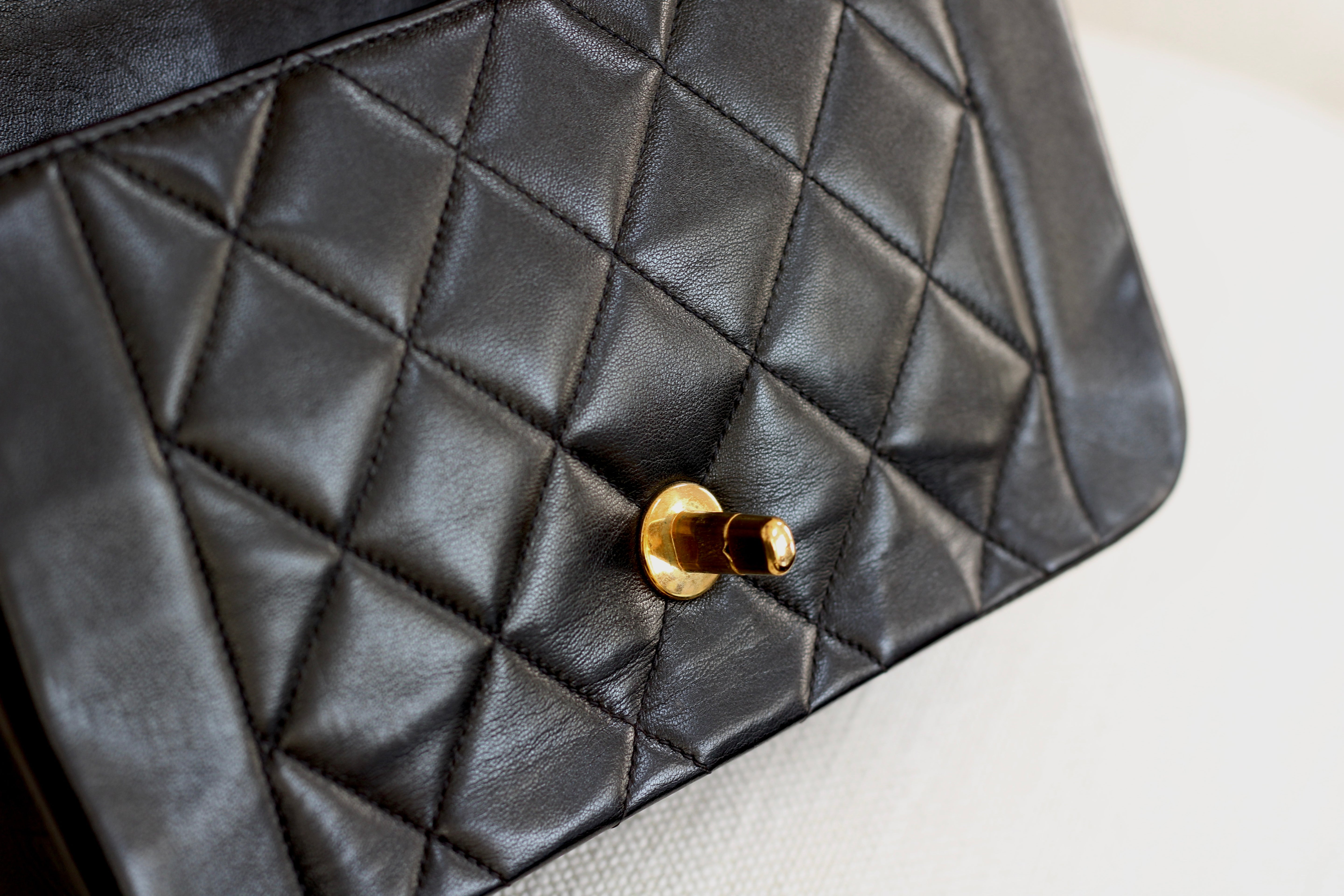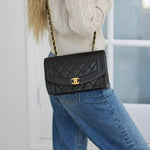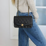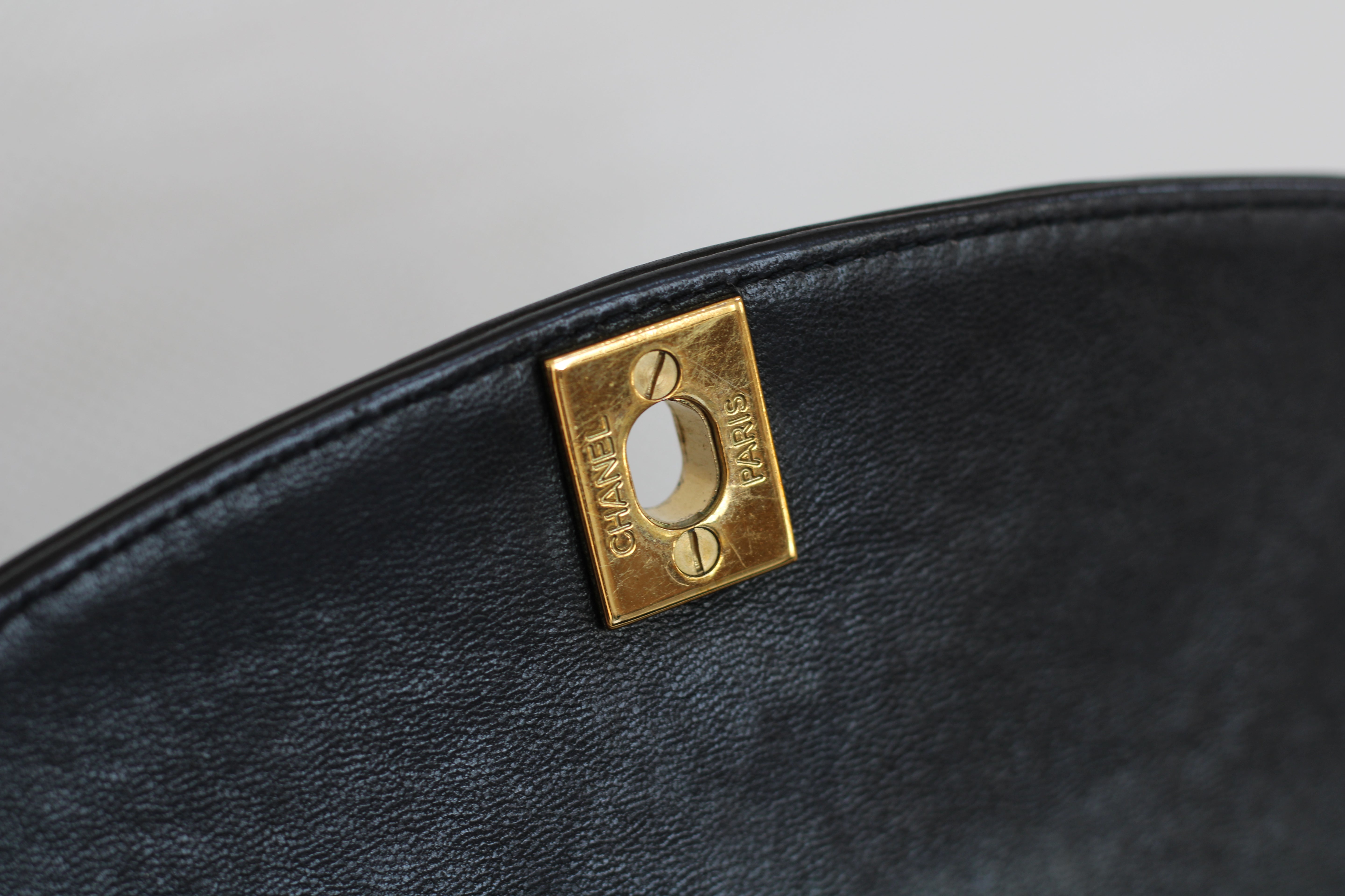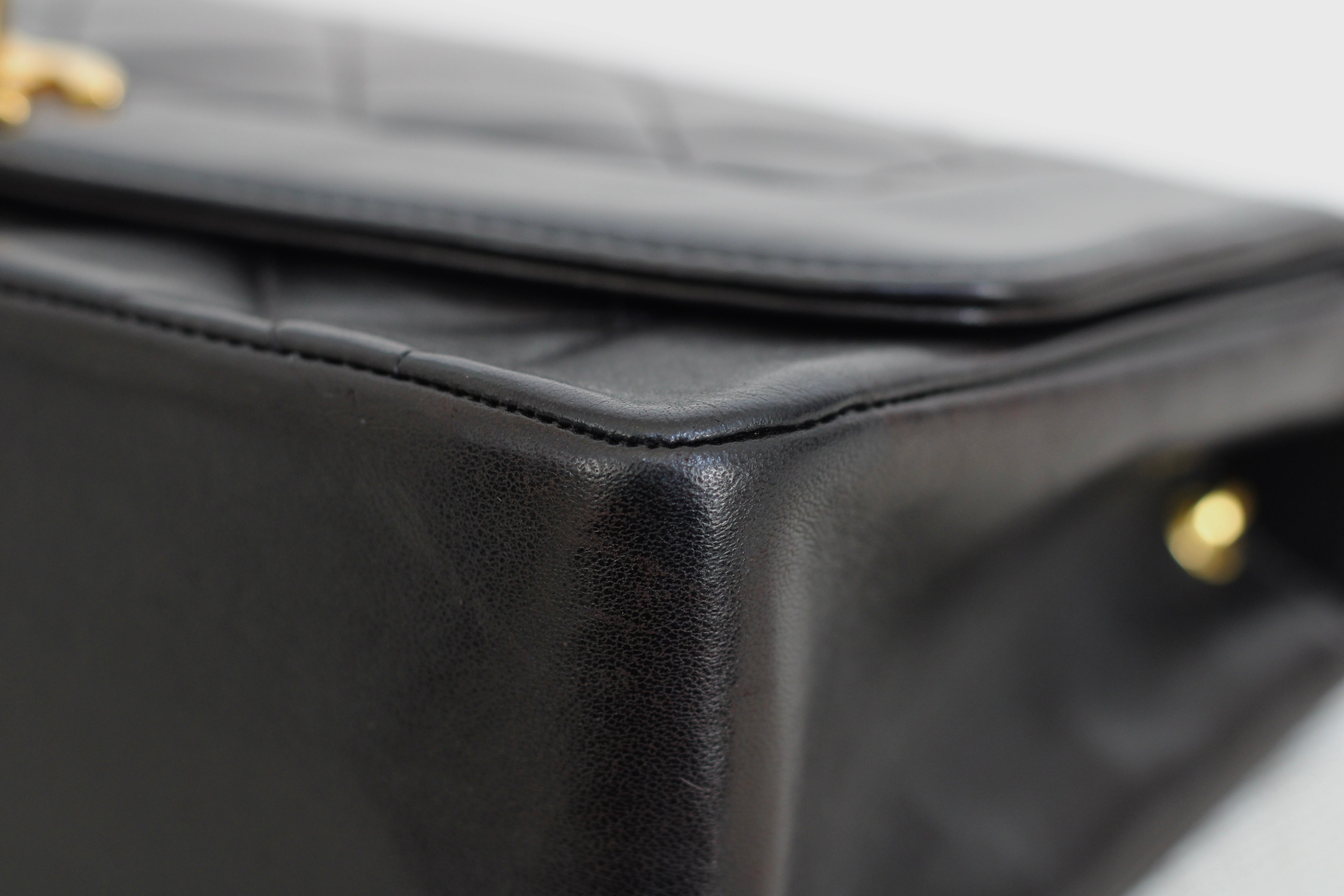 Vintage Chanel Black Lambskin Small Diana with 24k Gold Hardware