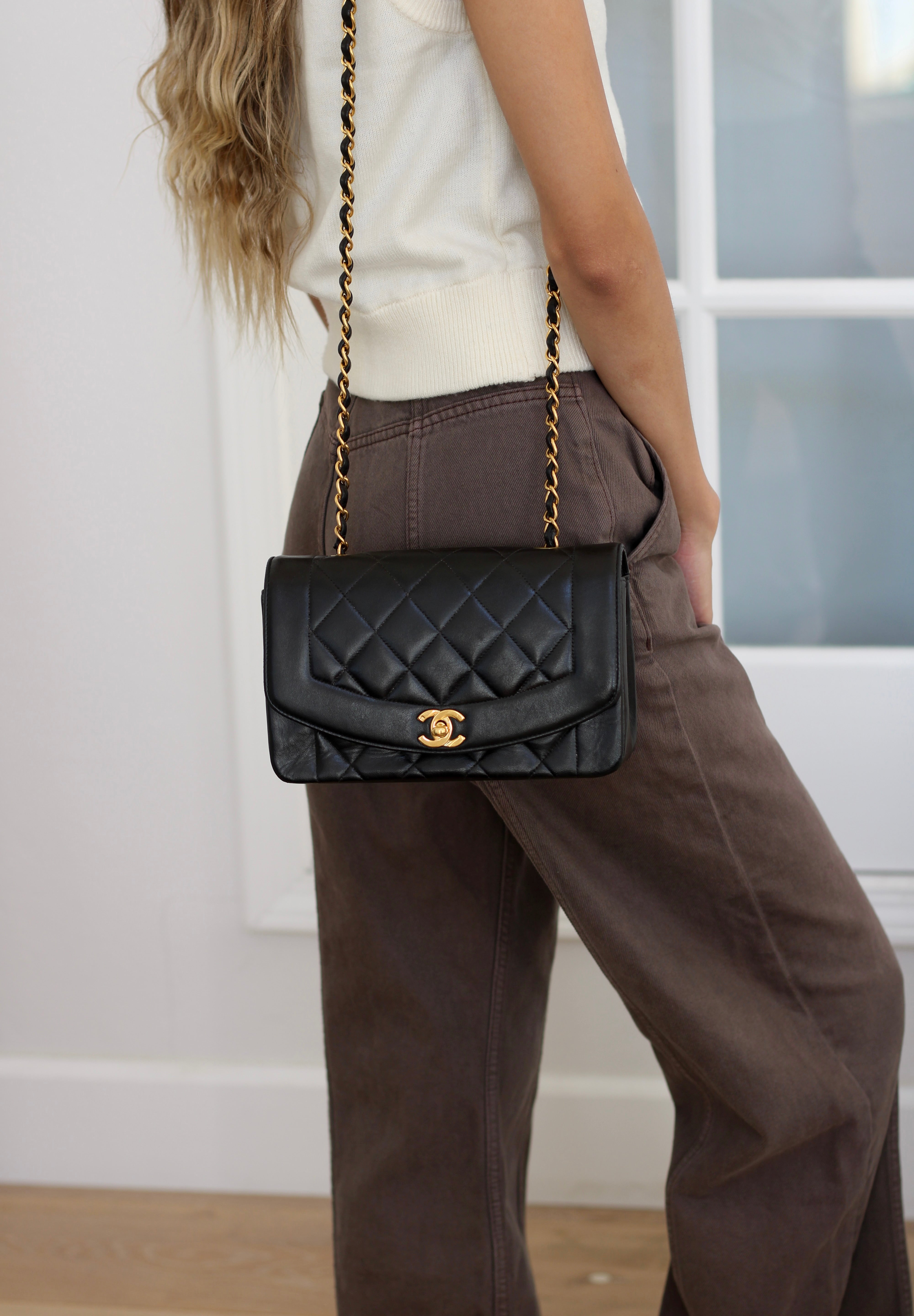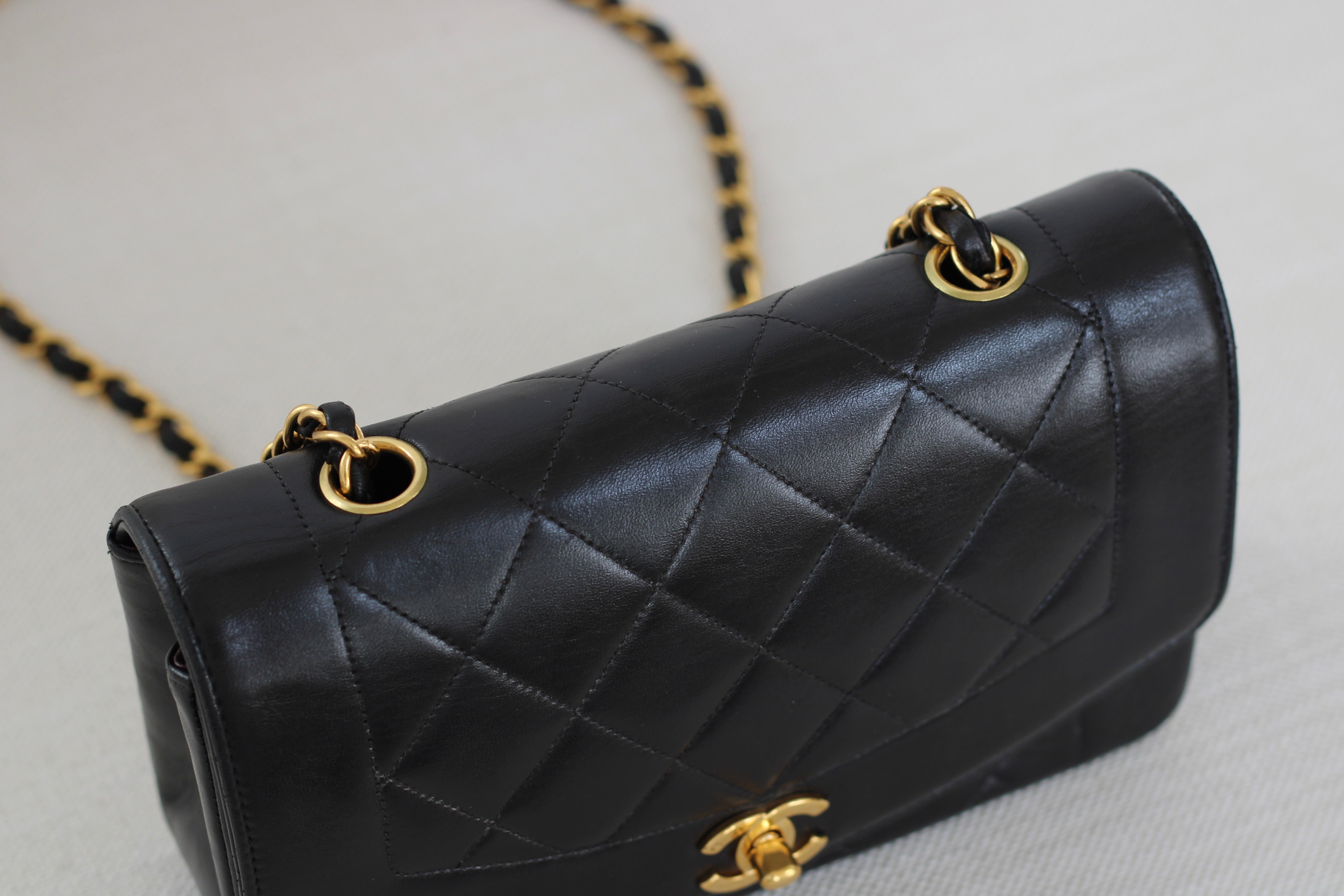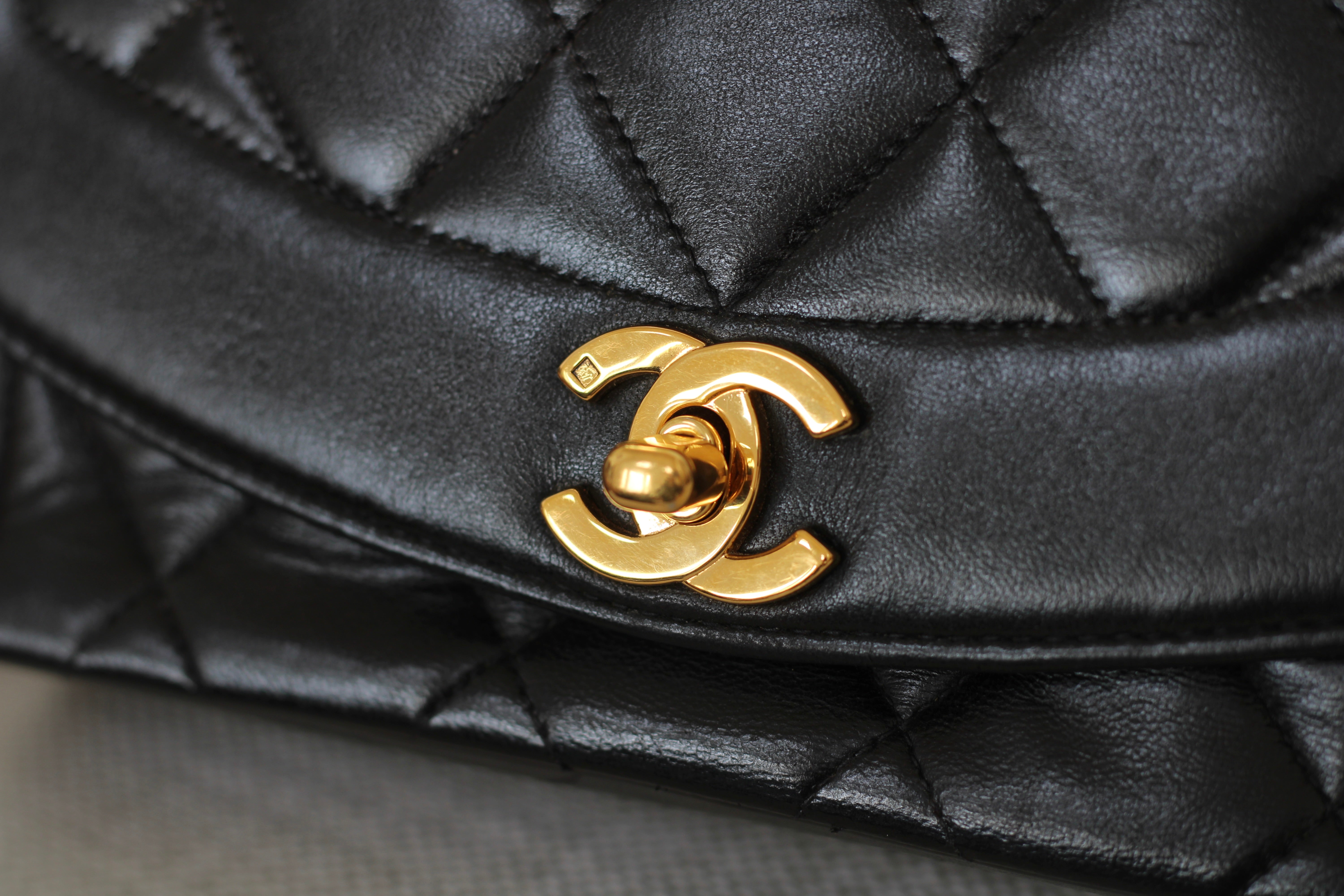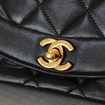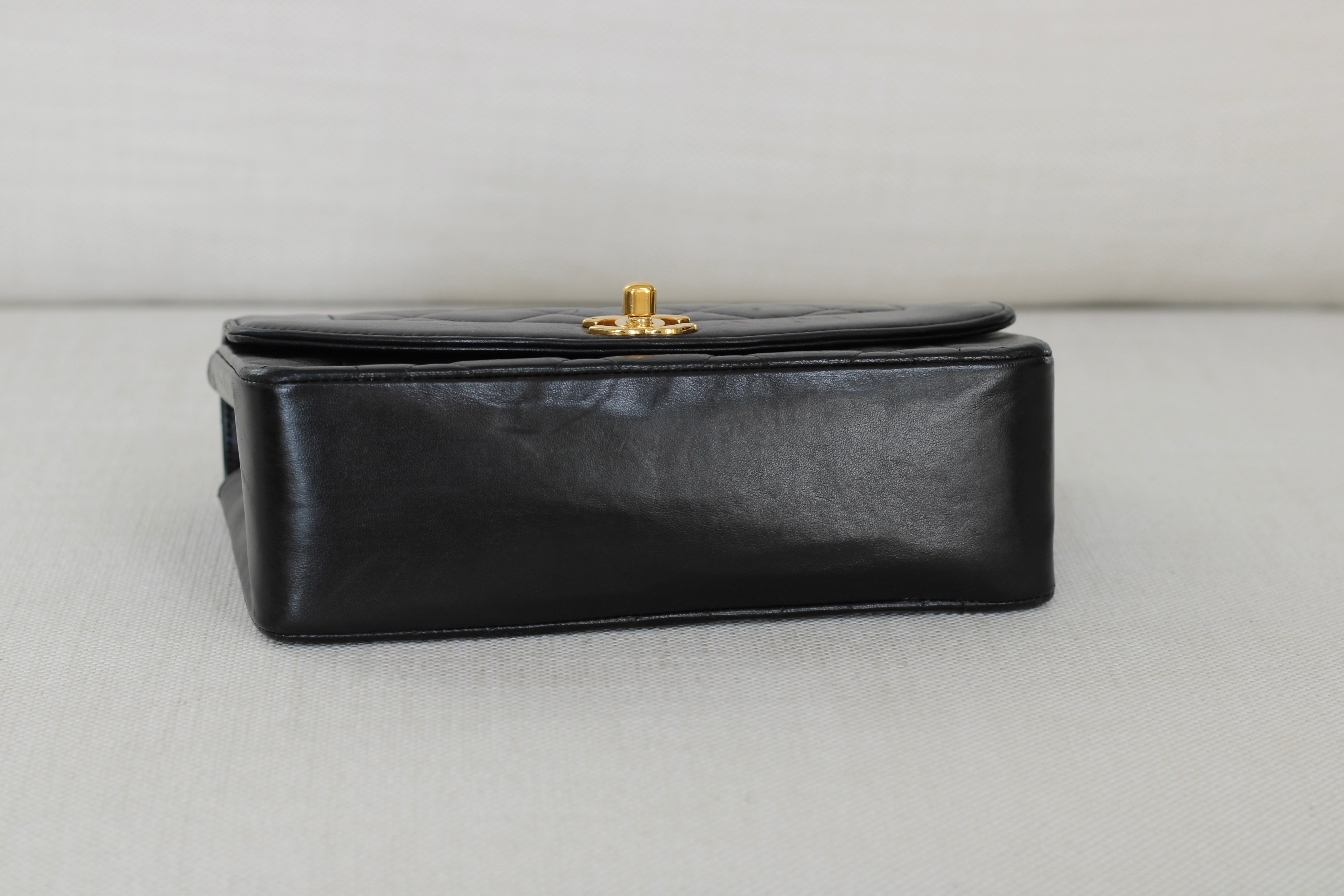 Vintage Chanel Black Lambskin Small Diana with 24k Gold Hardware