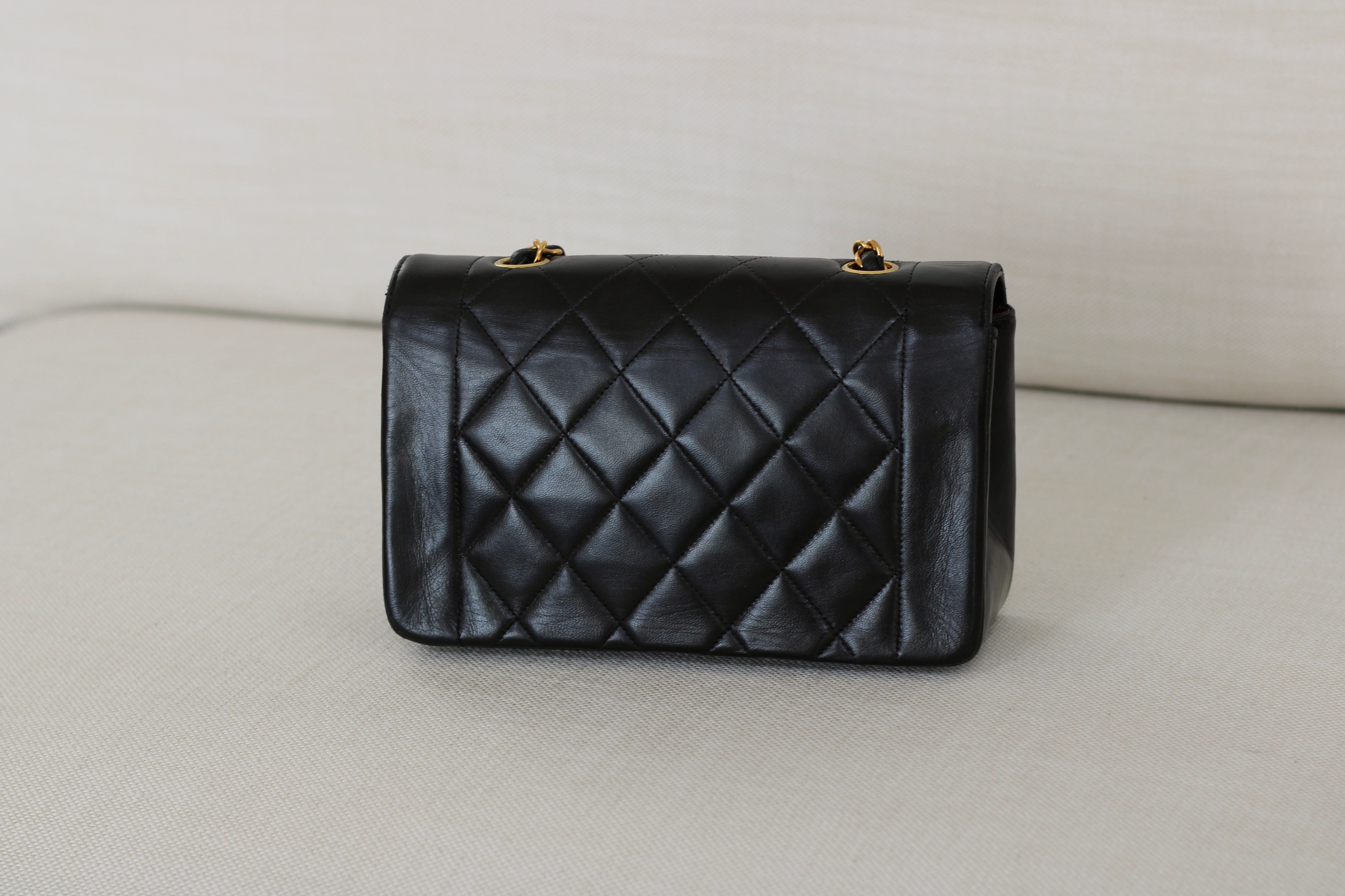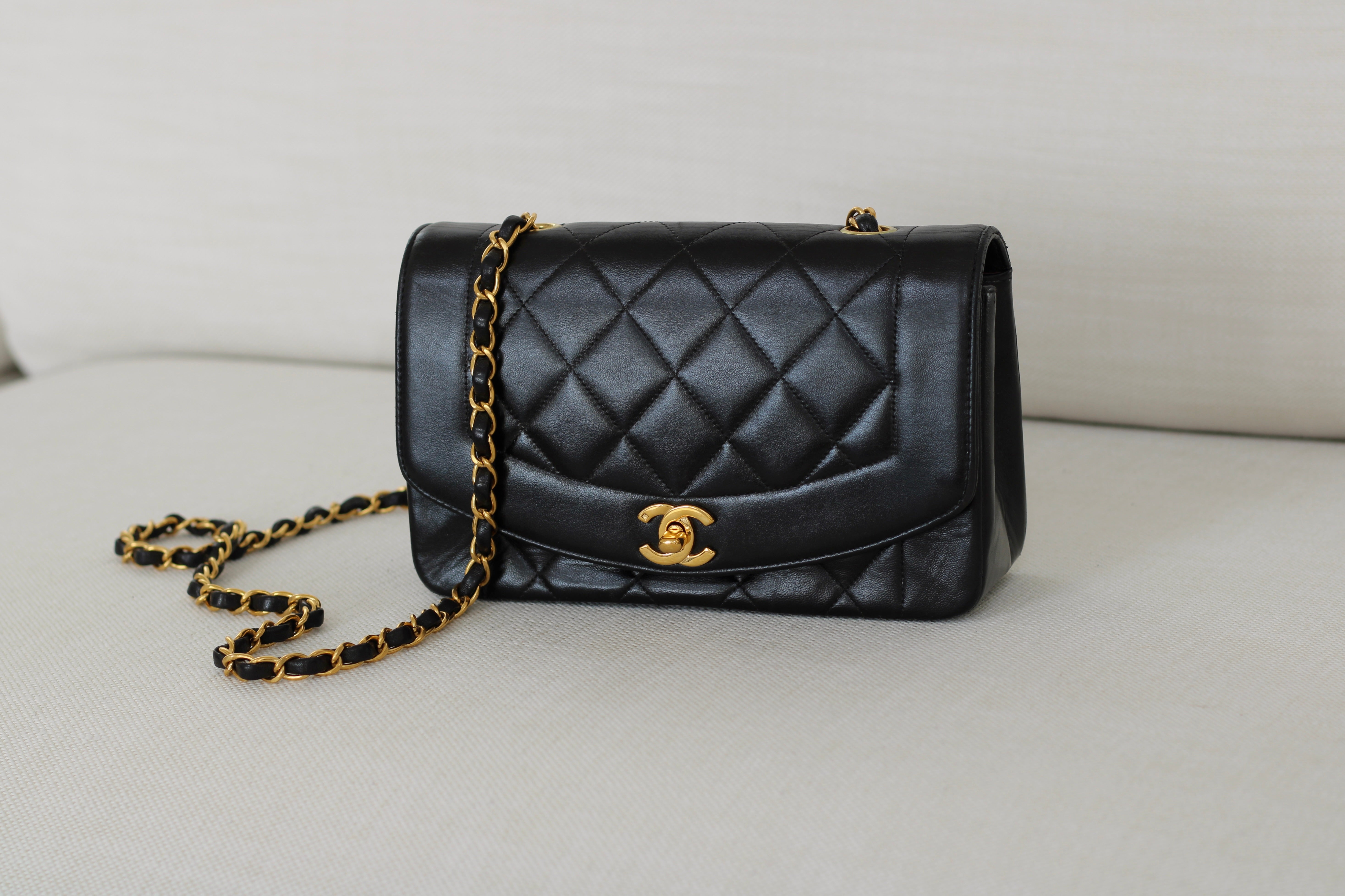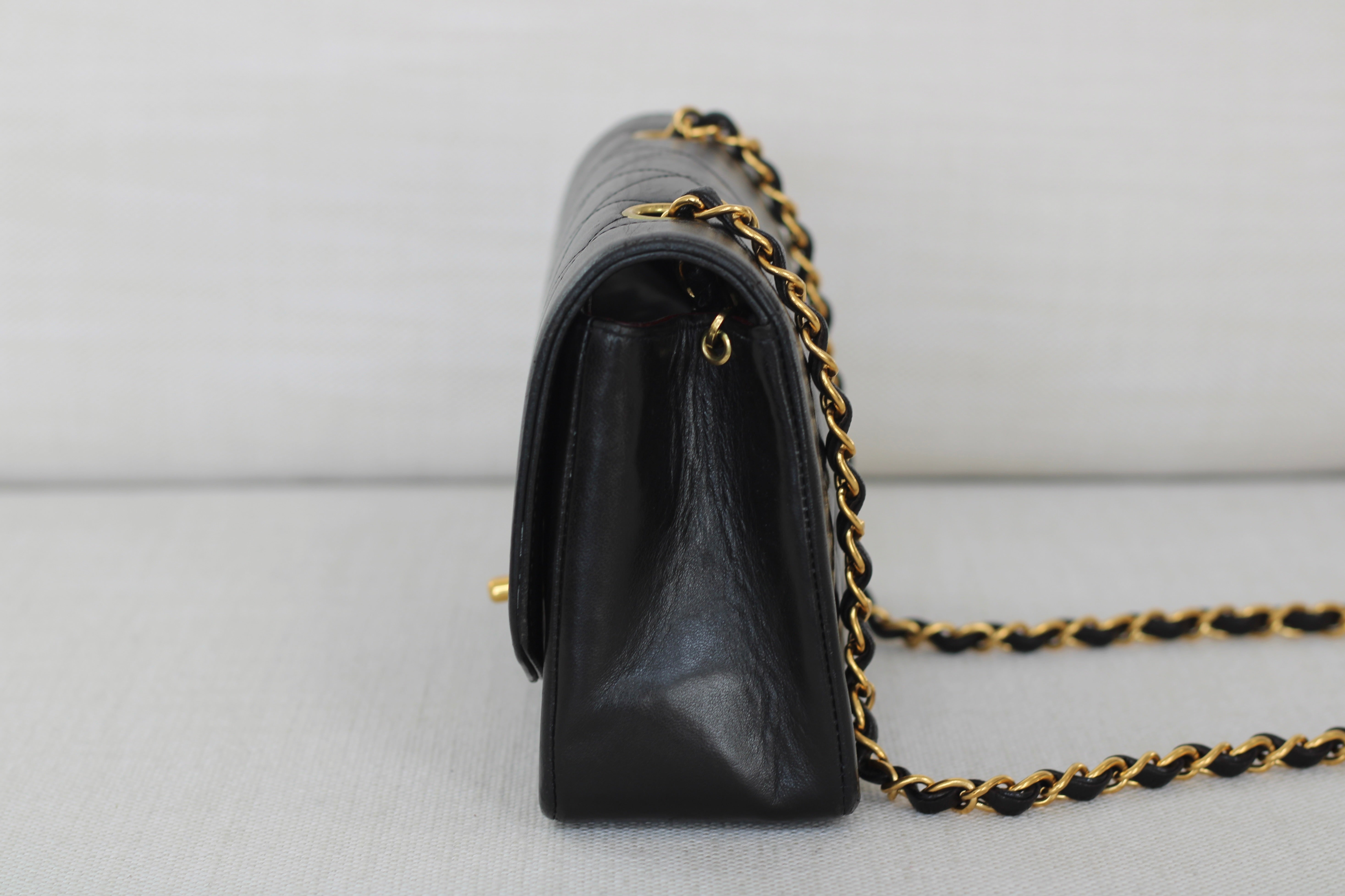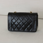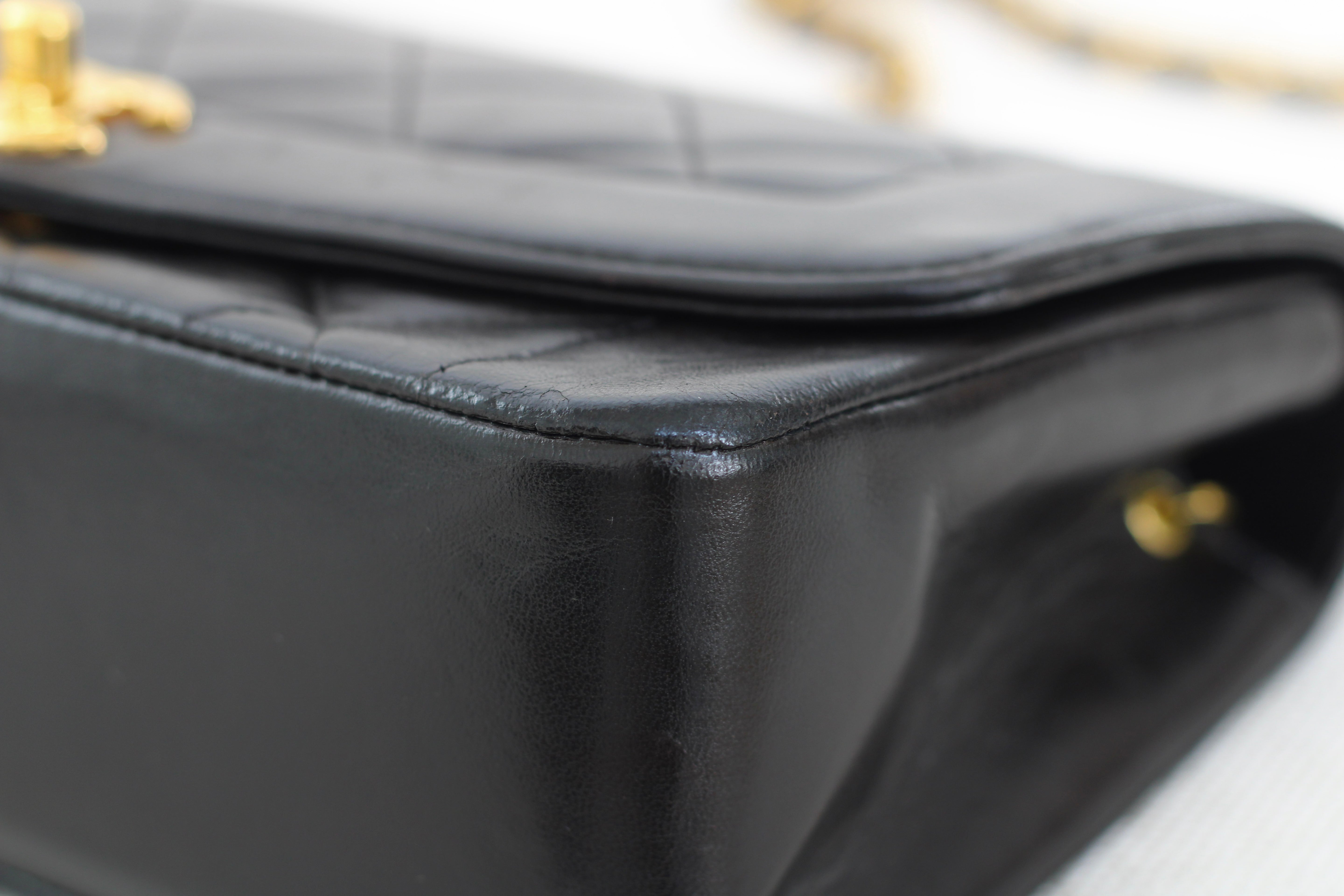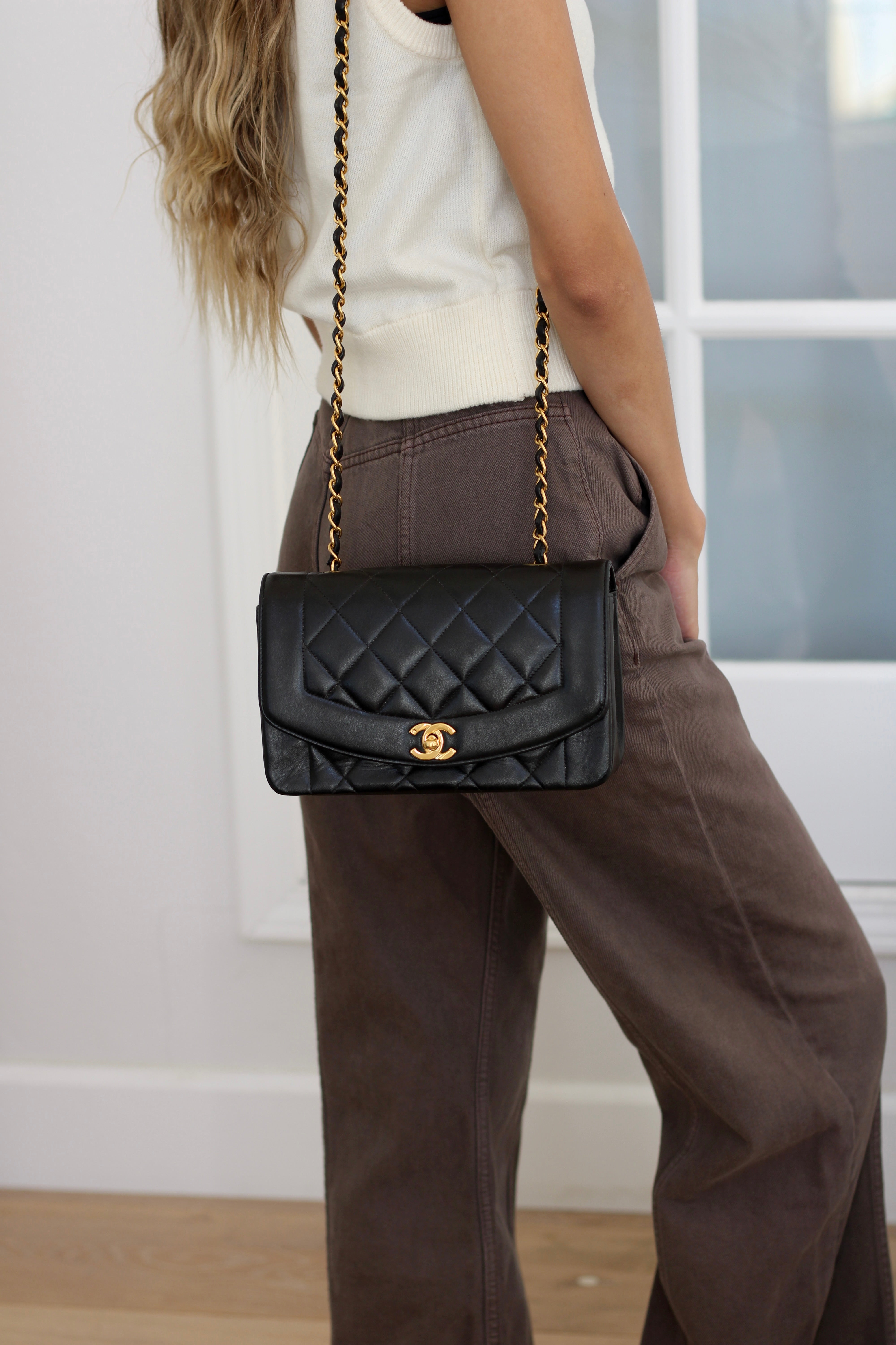 Vintage Chanel Black Lambskin Small Diana with 24k Gold Hardware