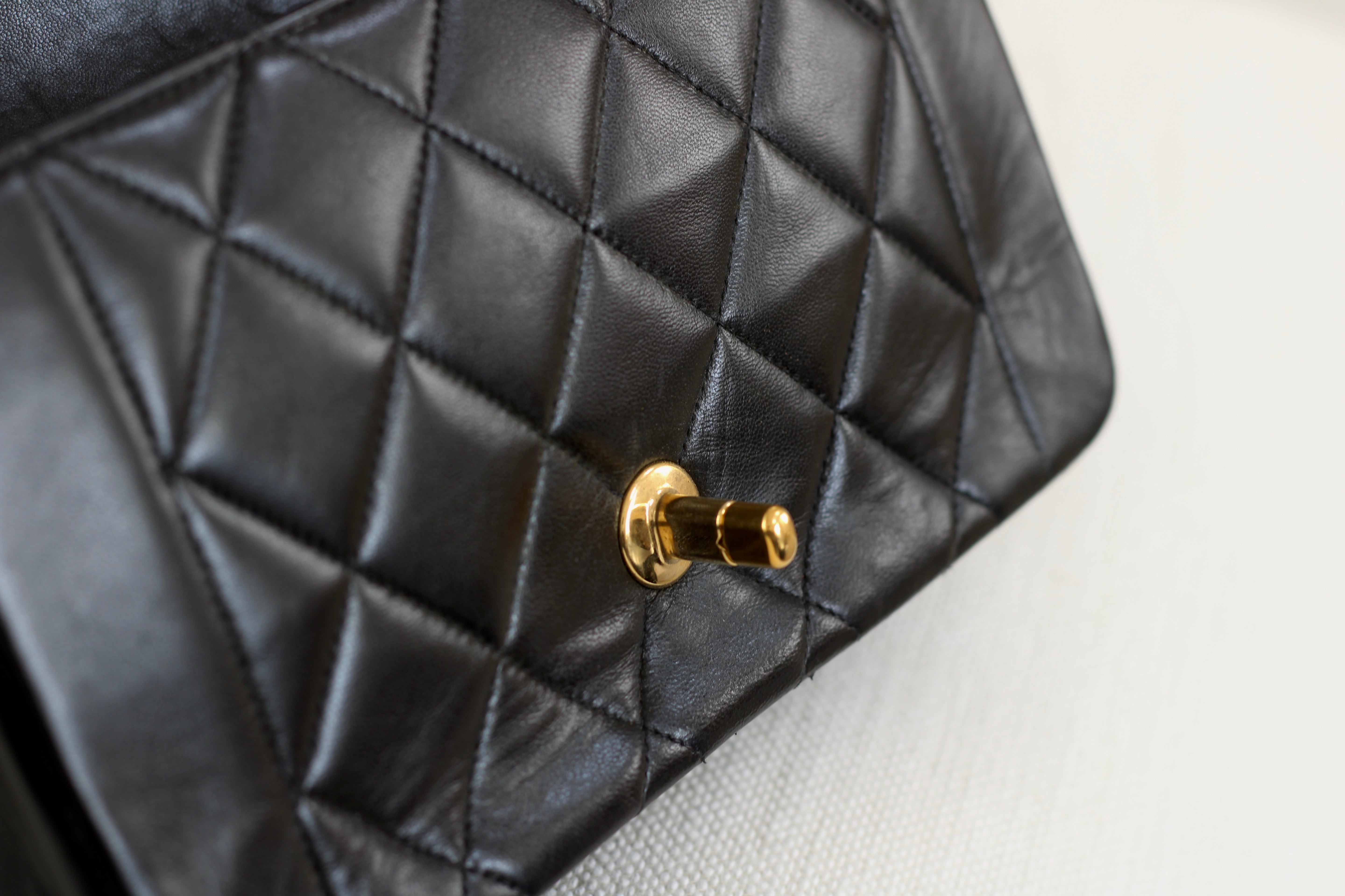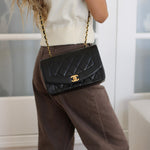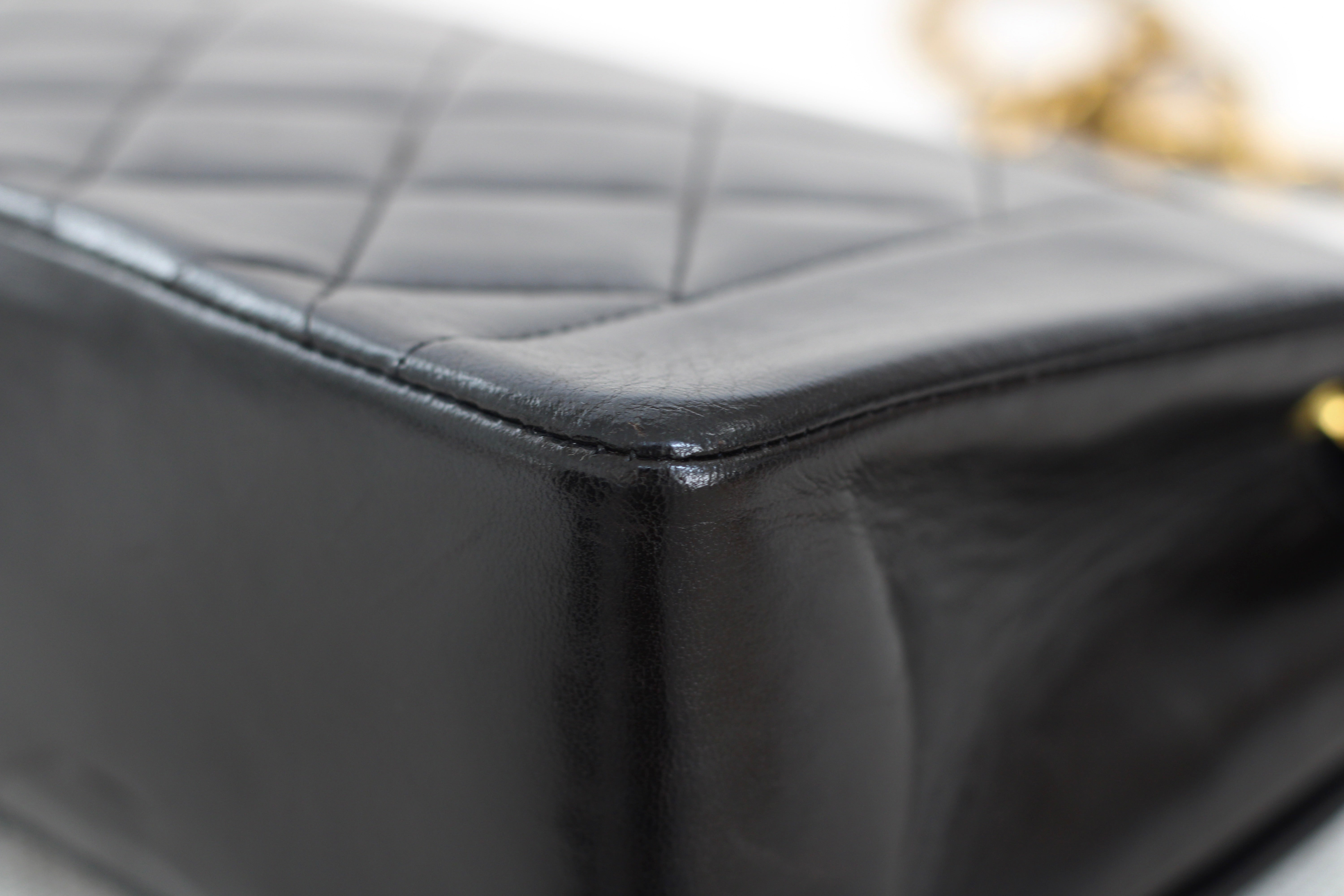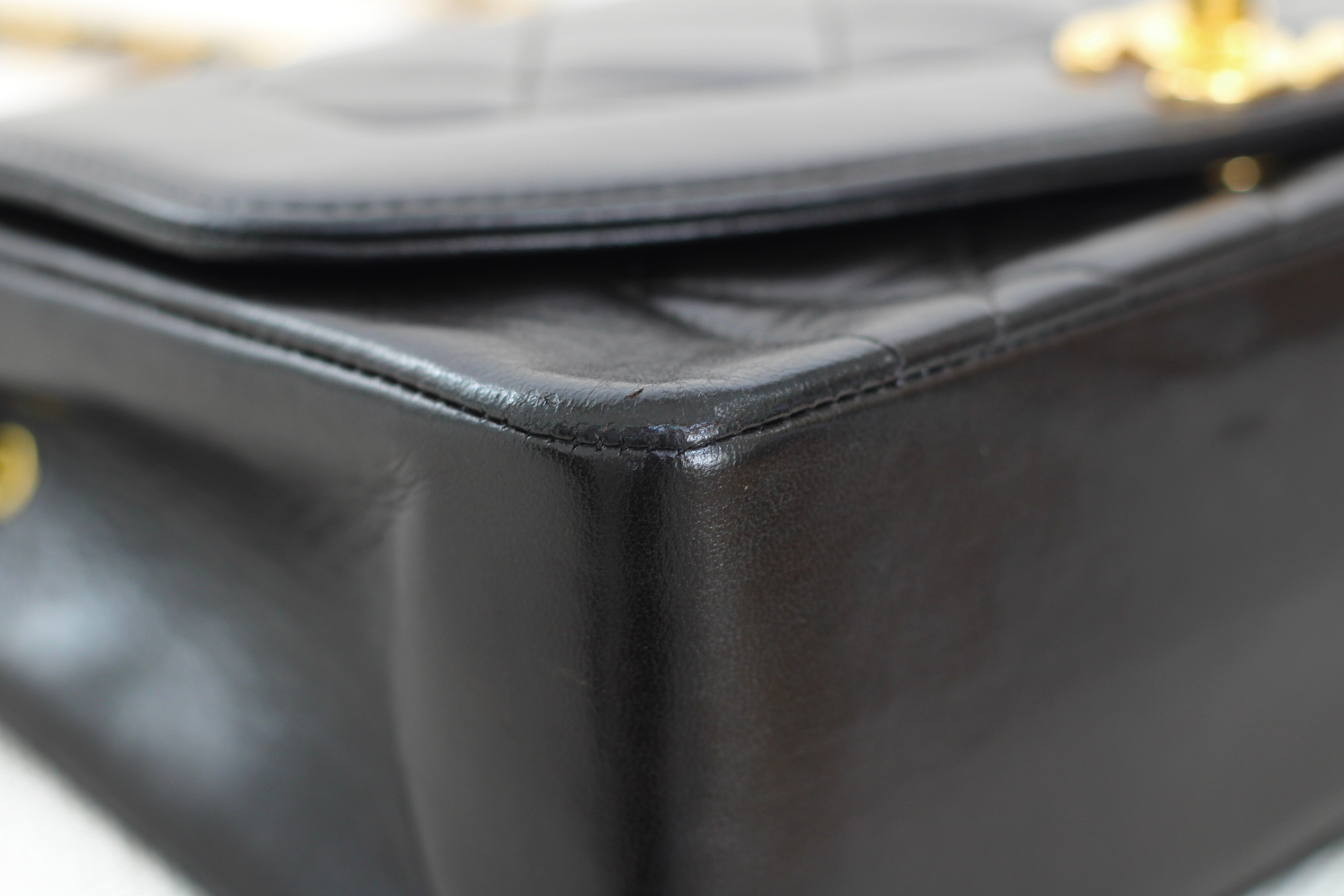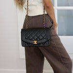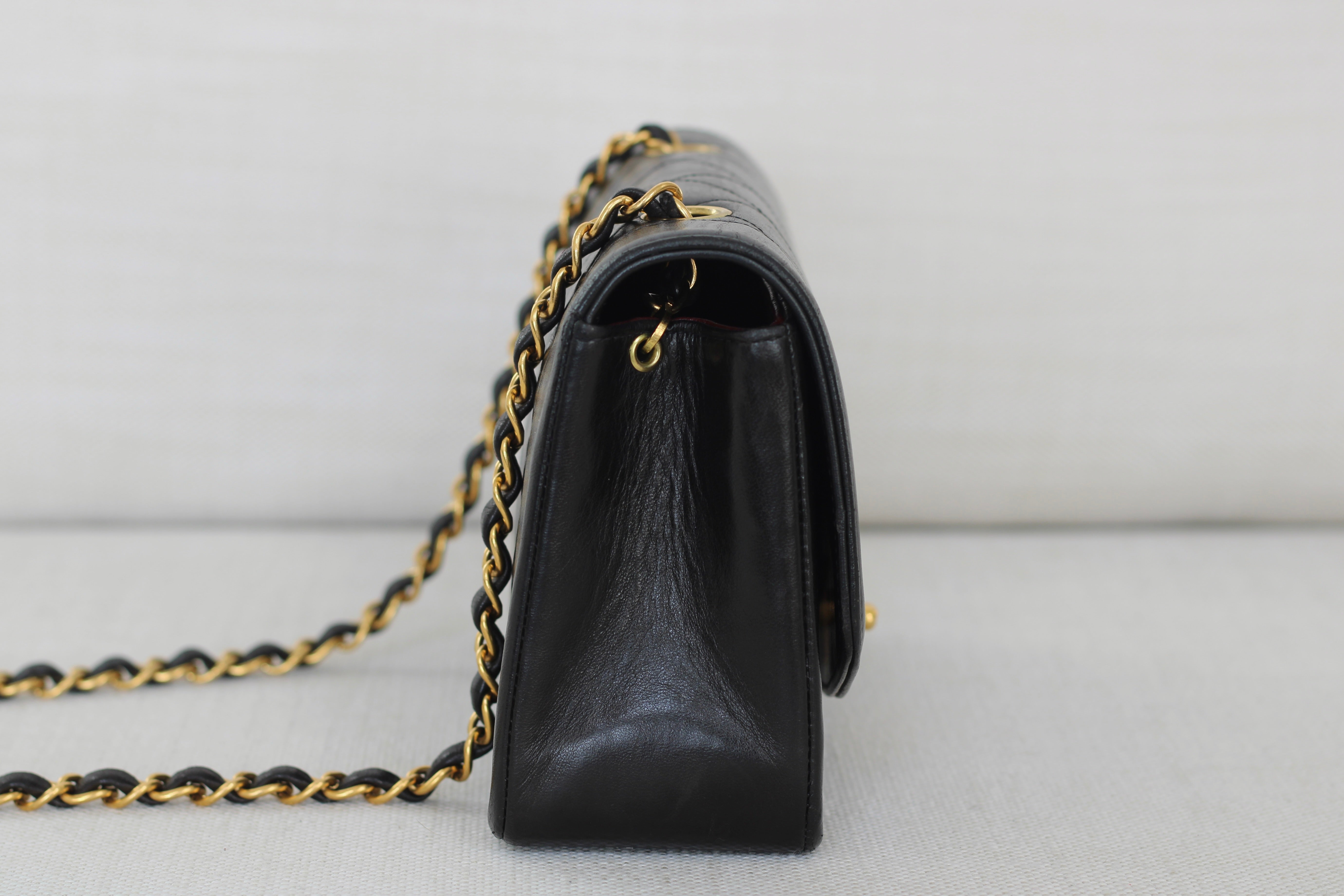 Vintage Chanel Black Lambskin Small Diana with 24k Gold Hardware