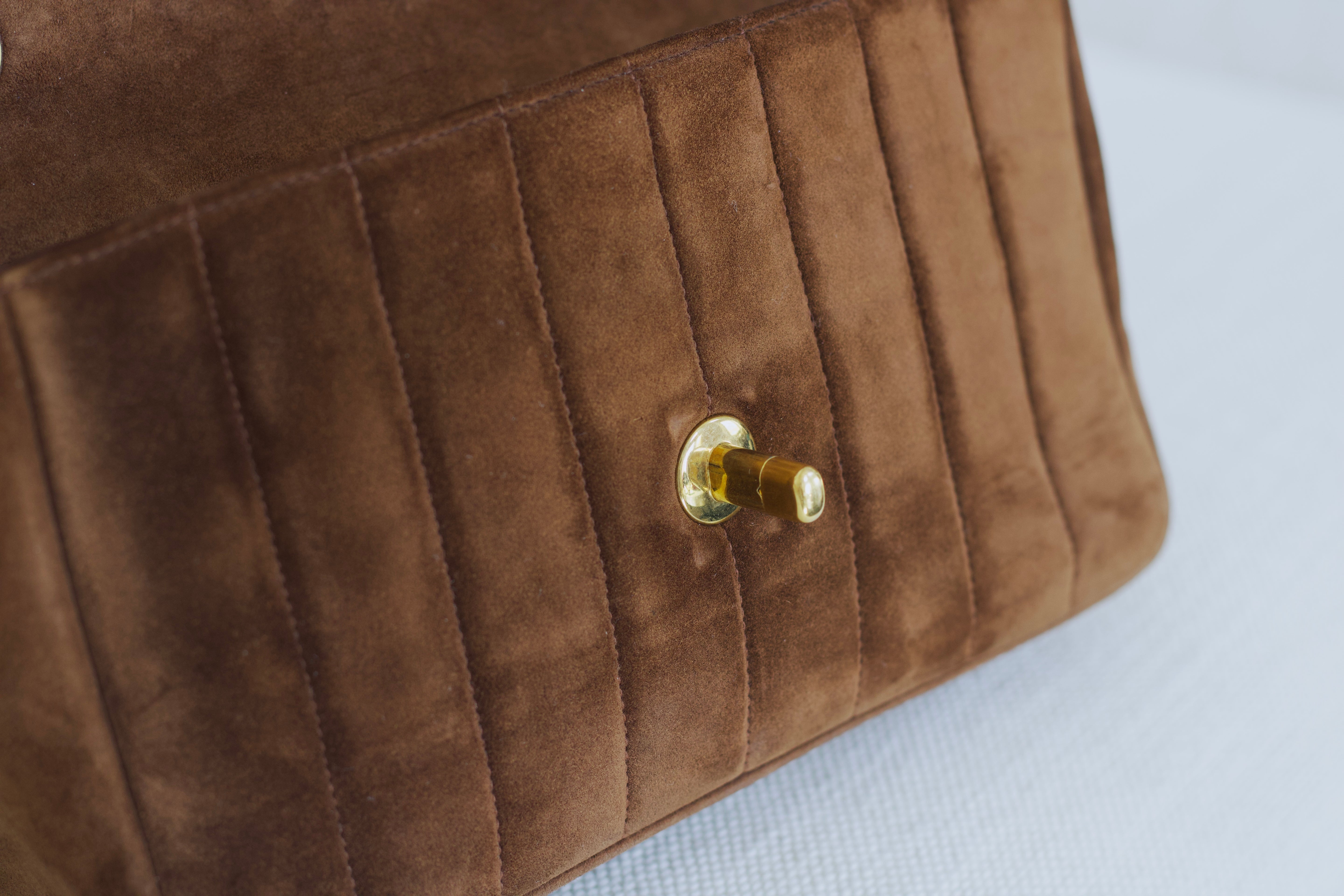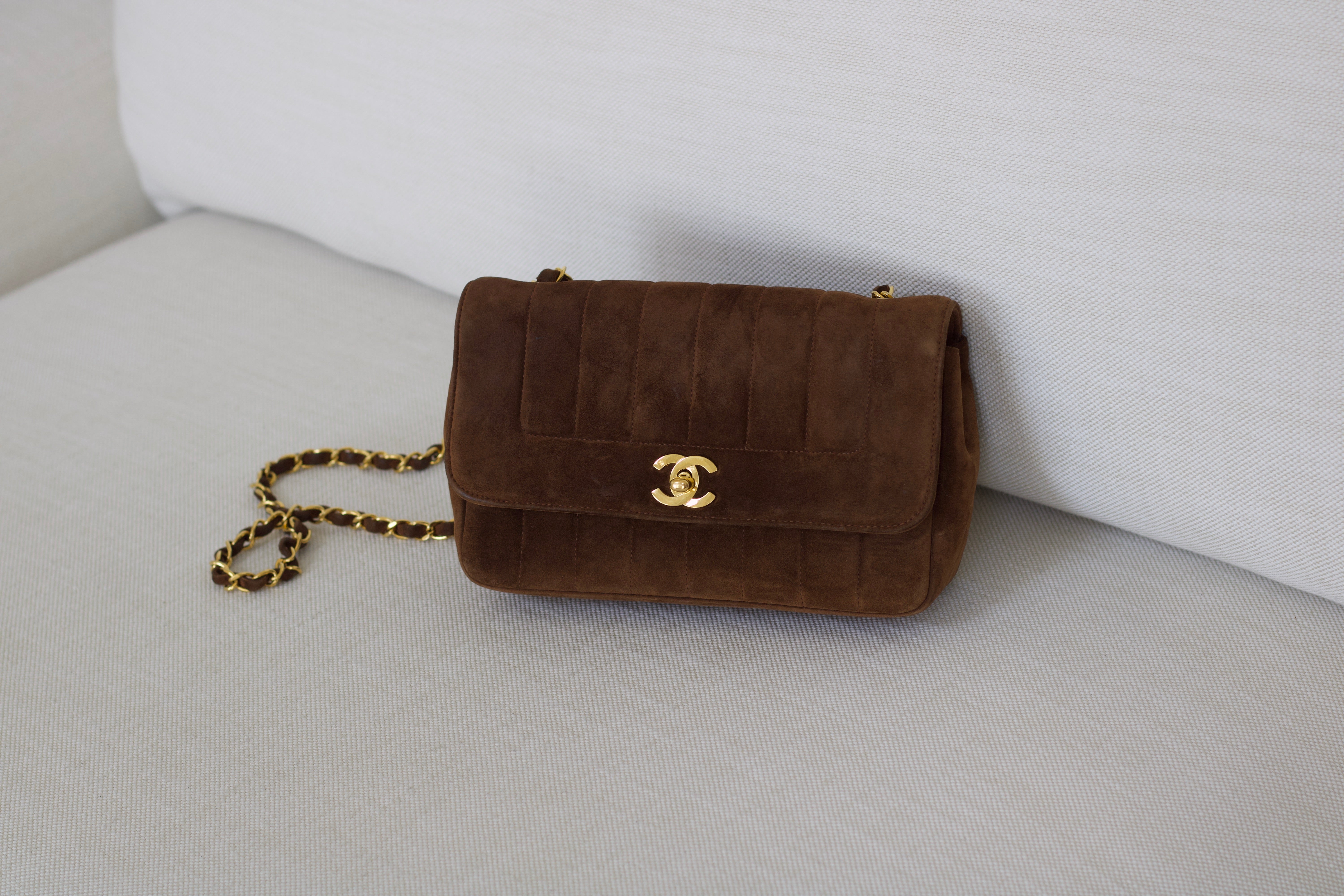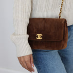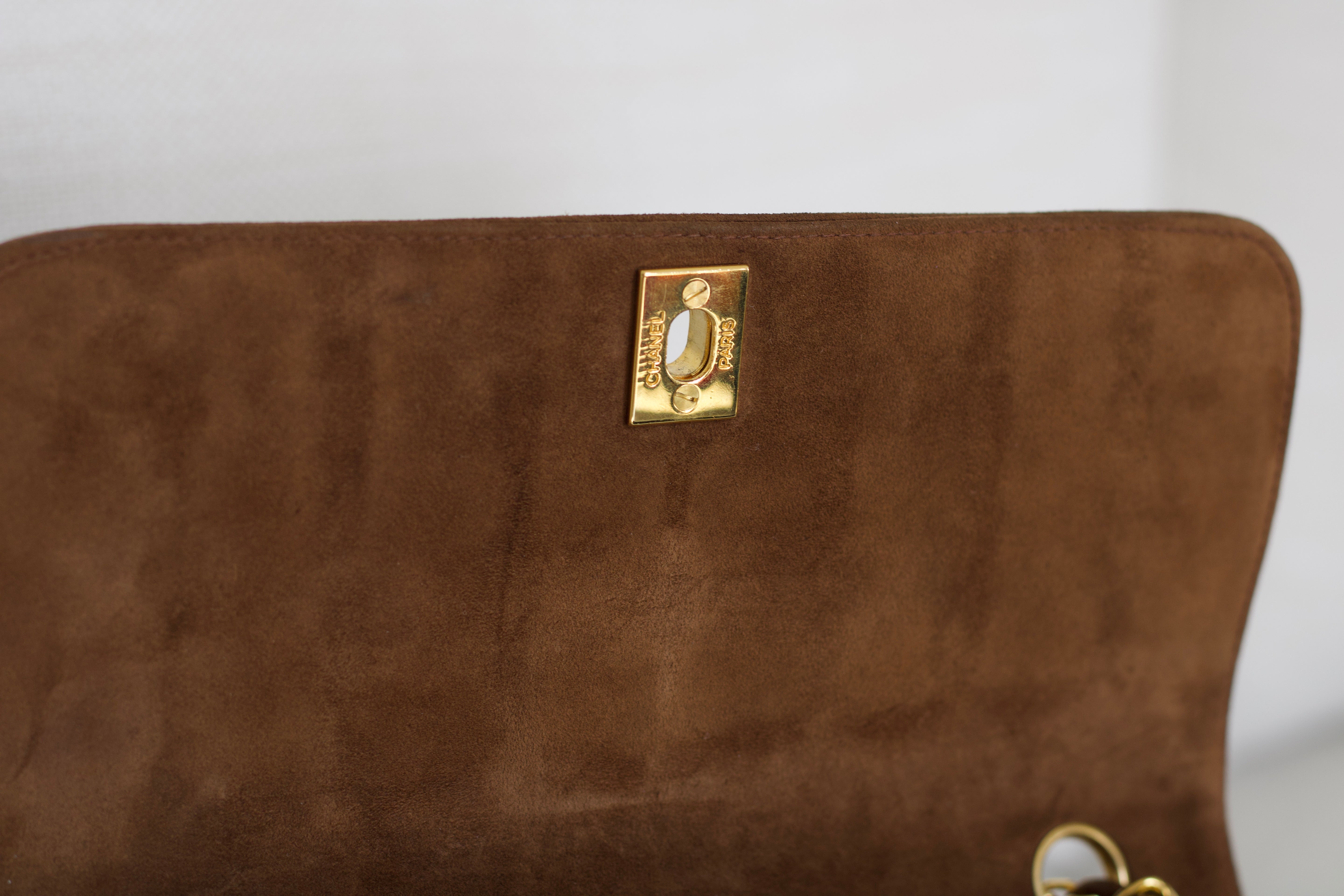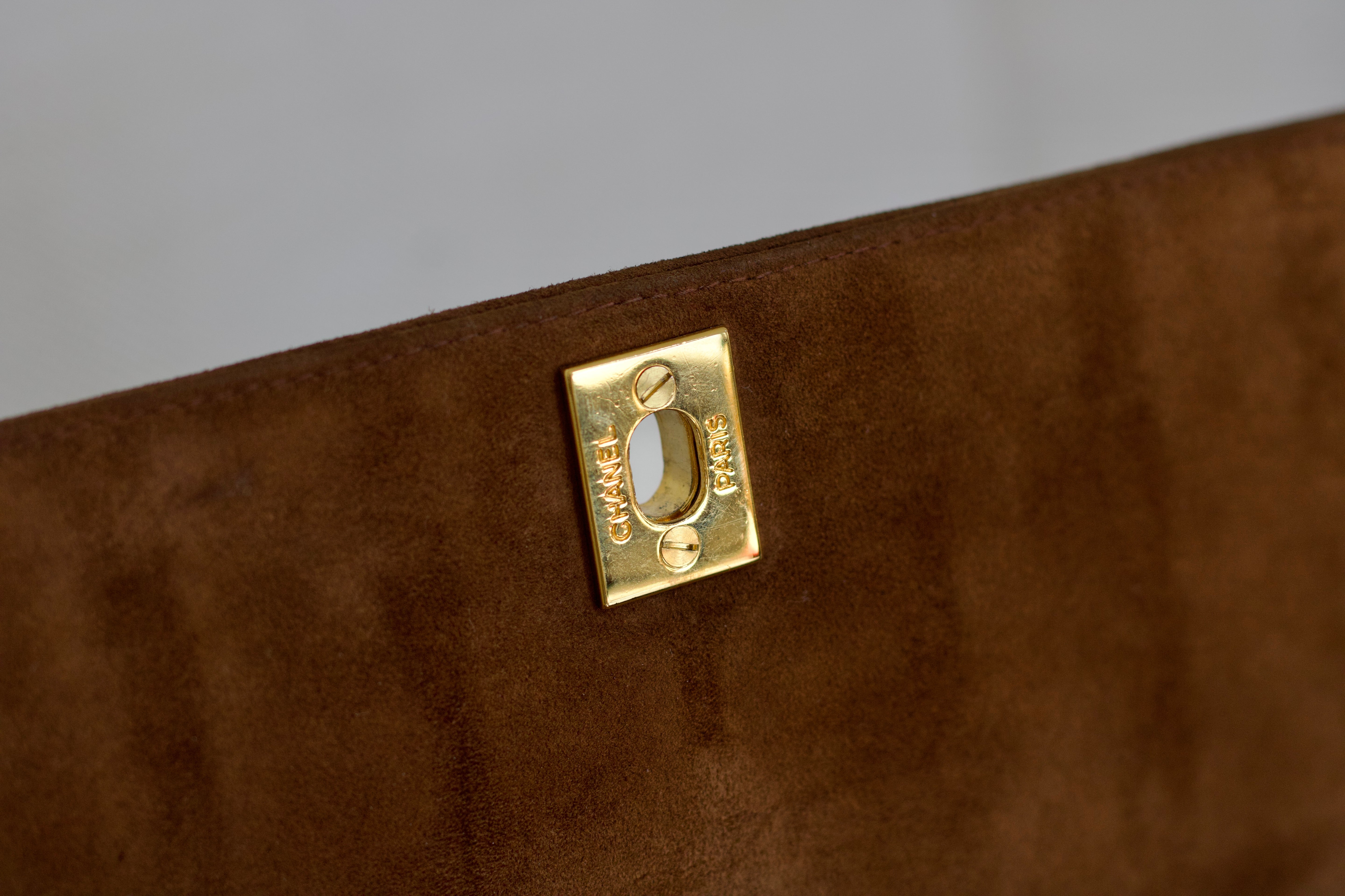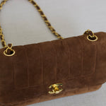 Vintage Chanel Brown Suede Sheepskin Vertical Flap with 24k Gold Hardware