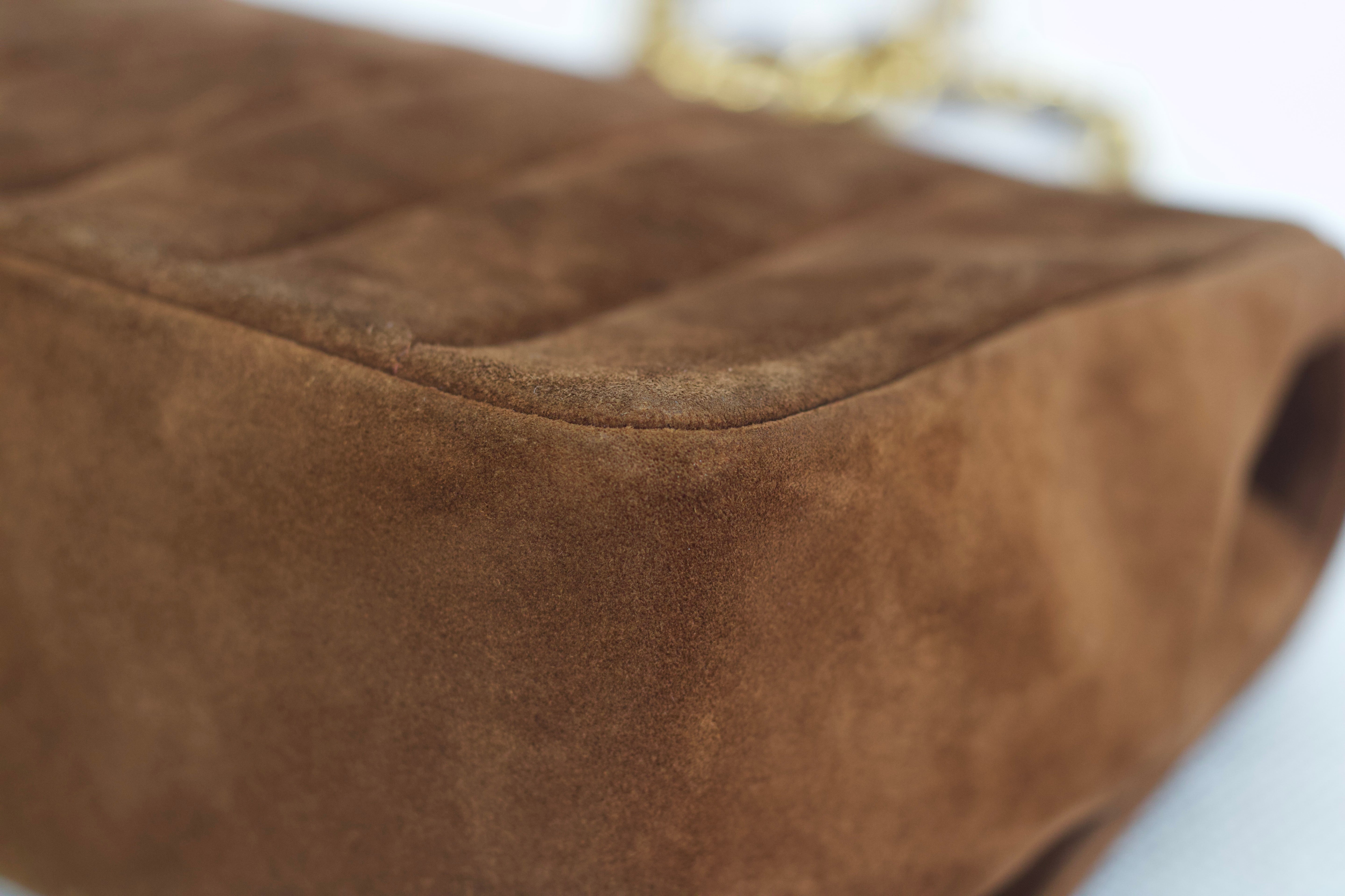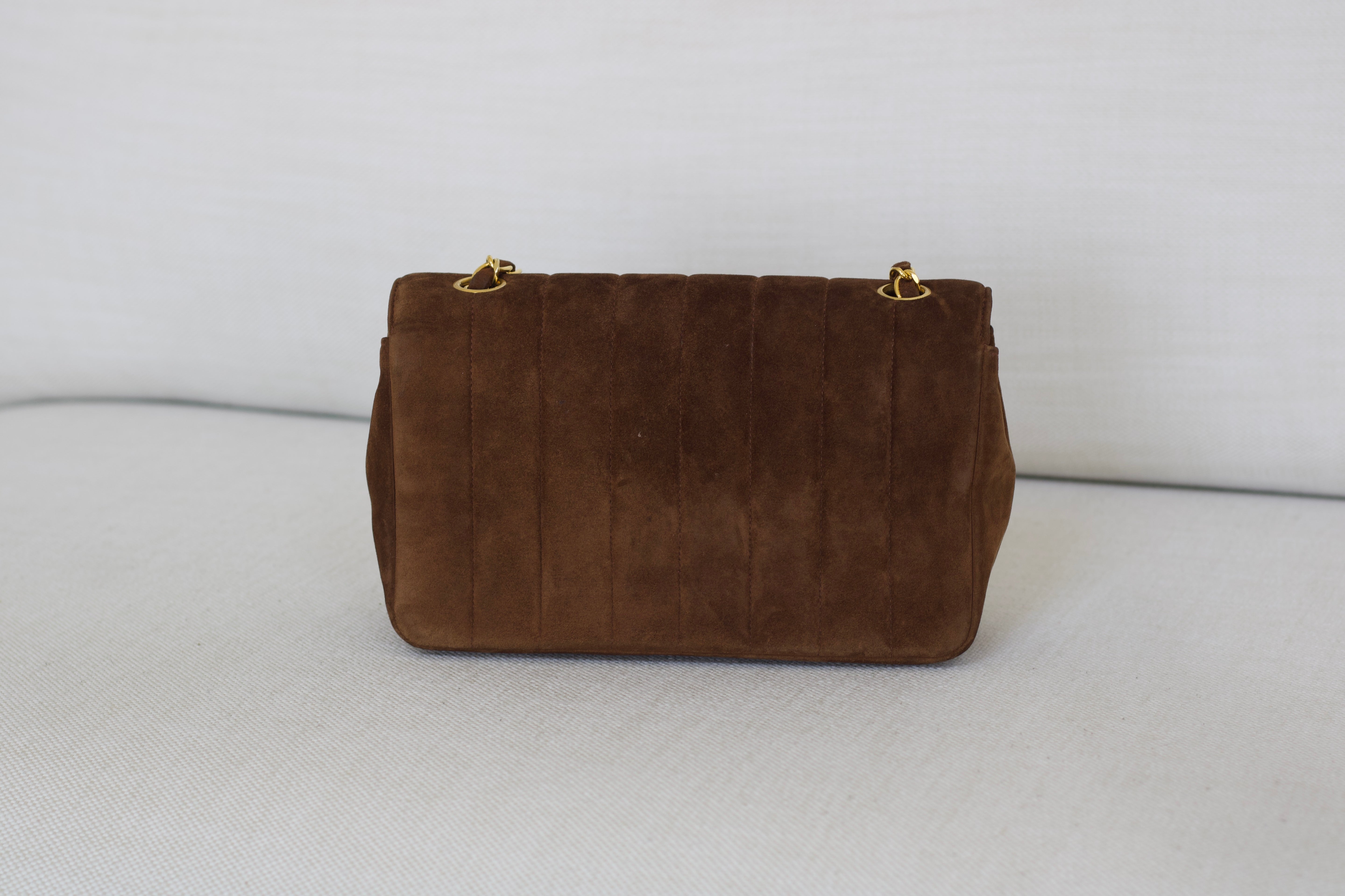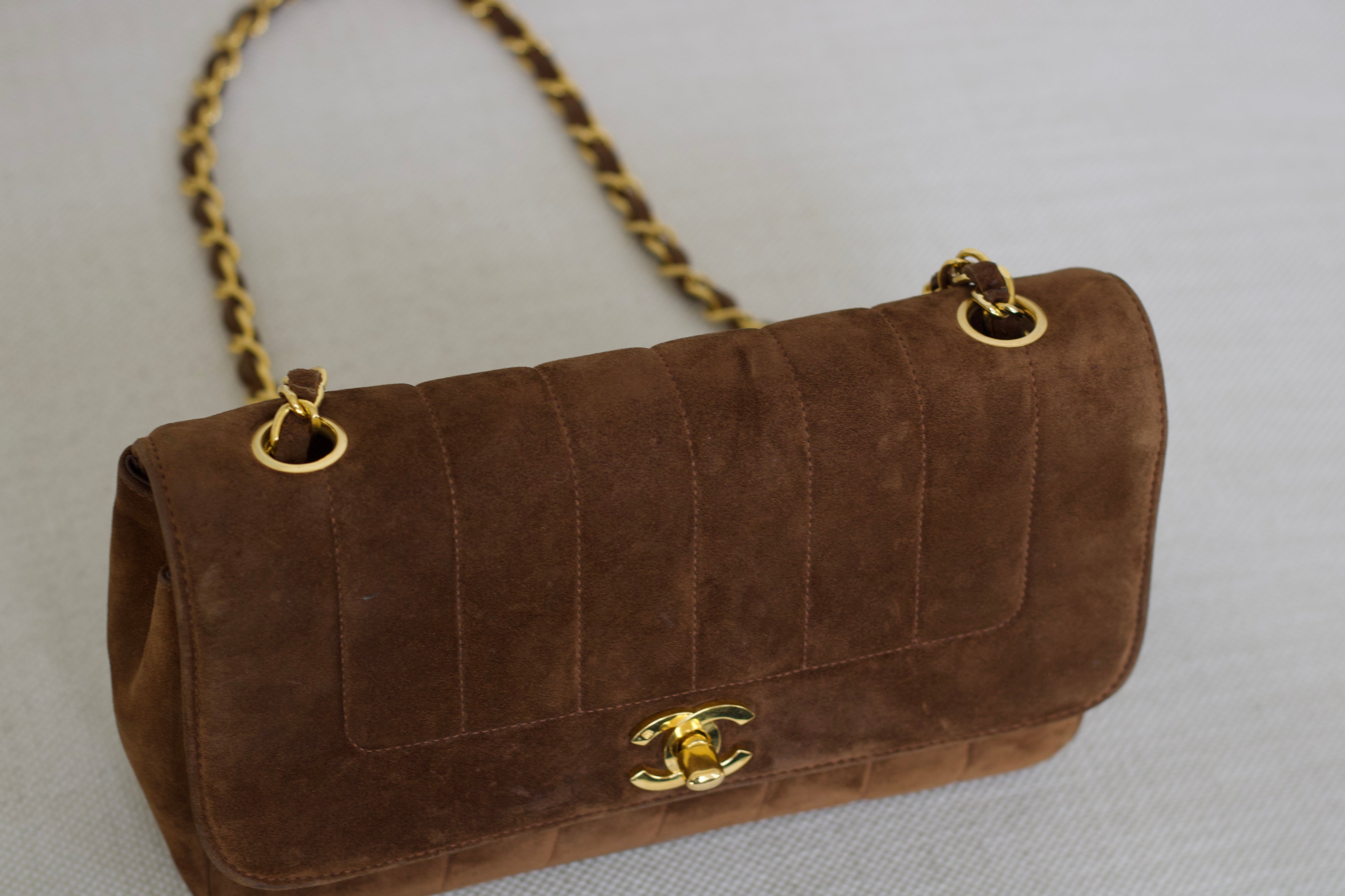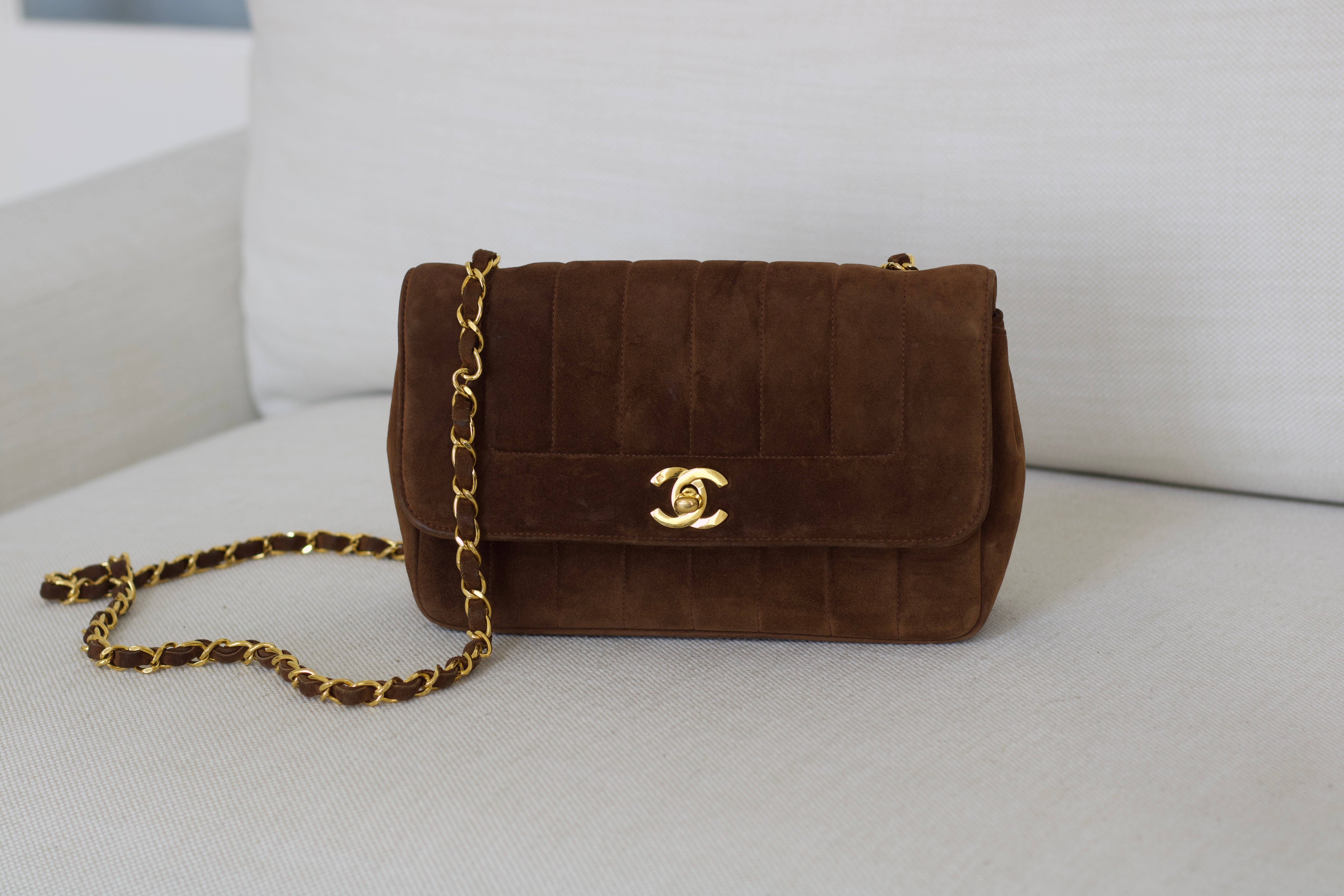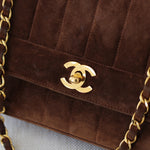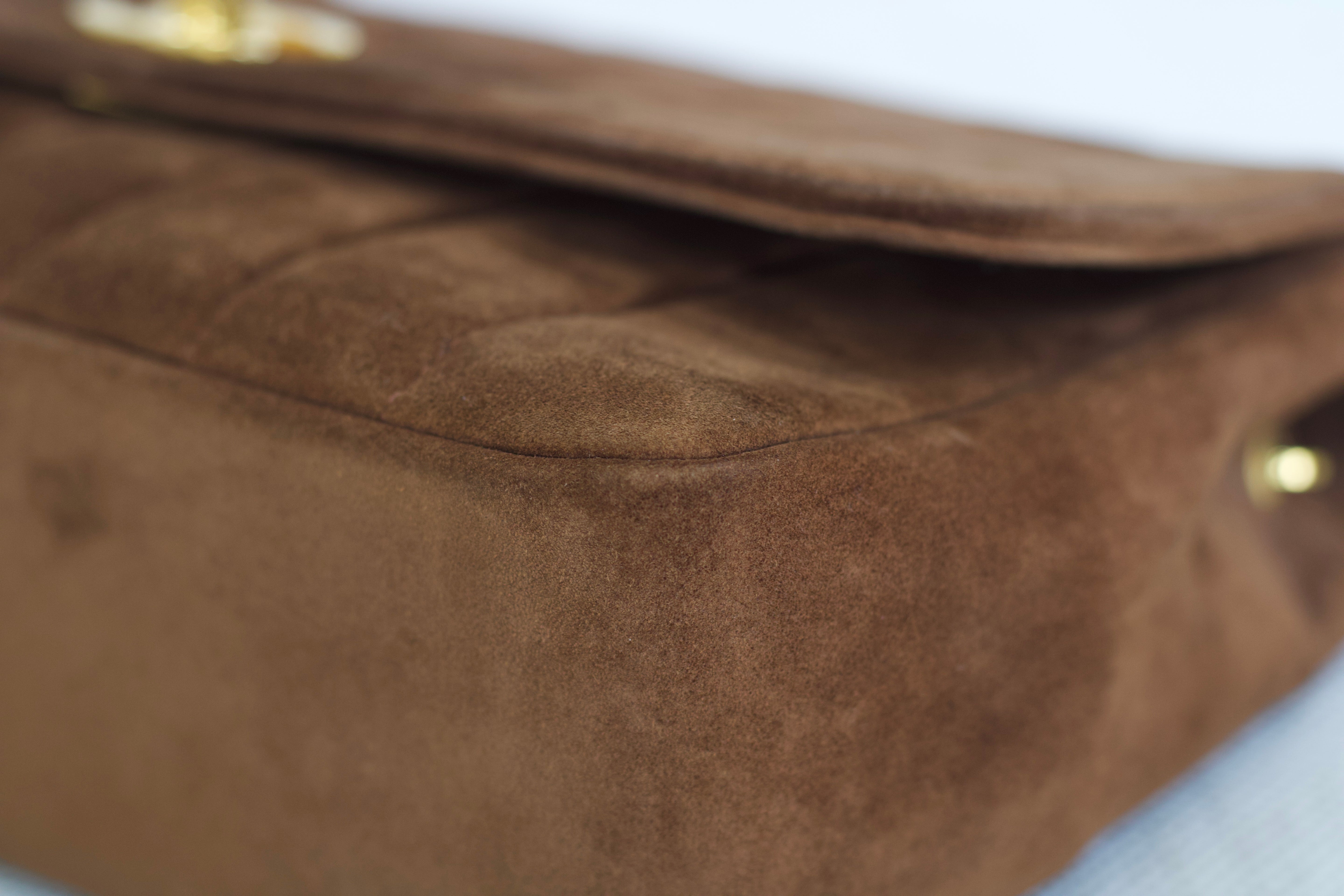 Vintage Chanel Brown Suede Sheepskin Vertical Flap with 24k Gold Hardware