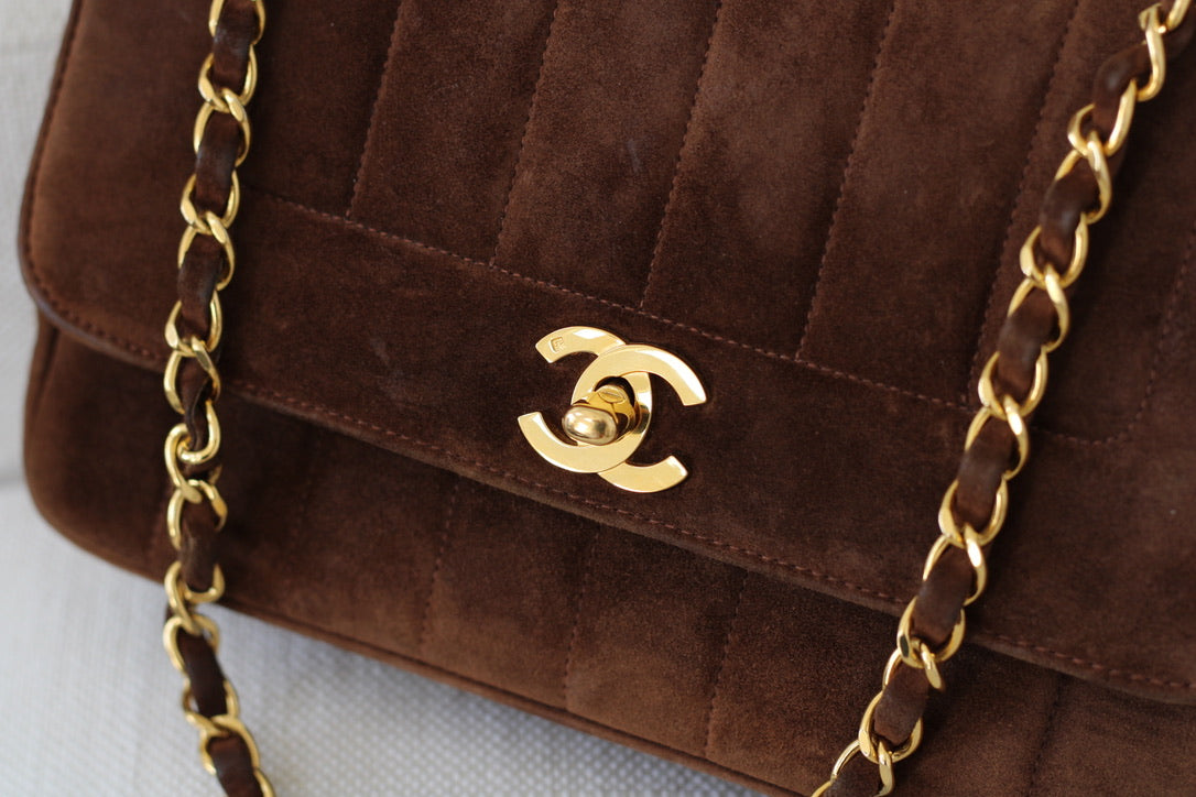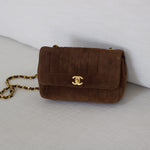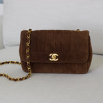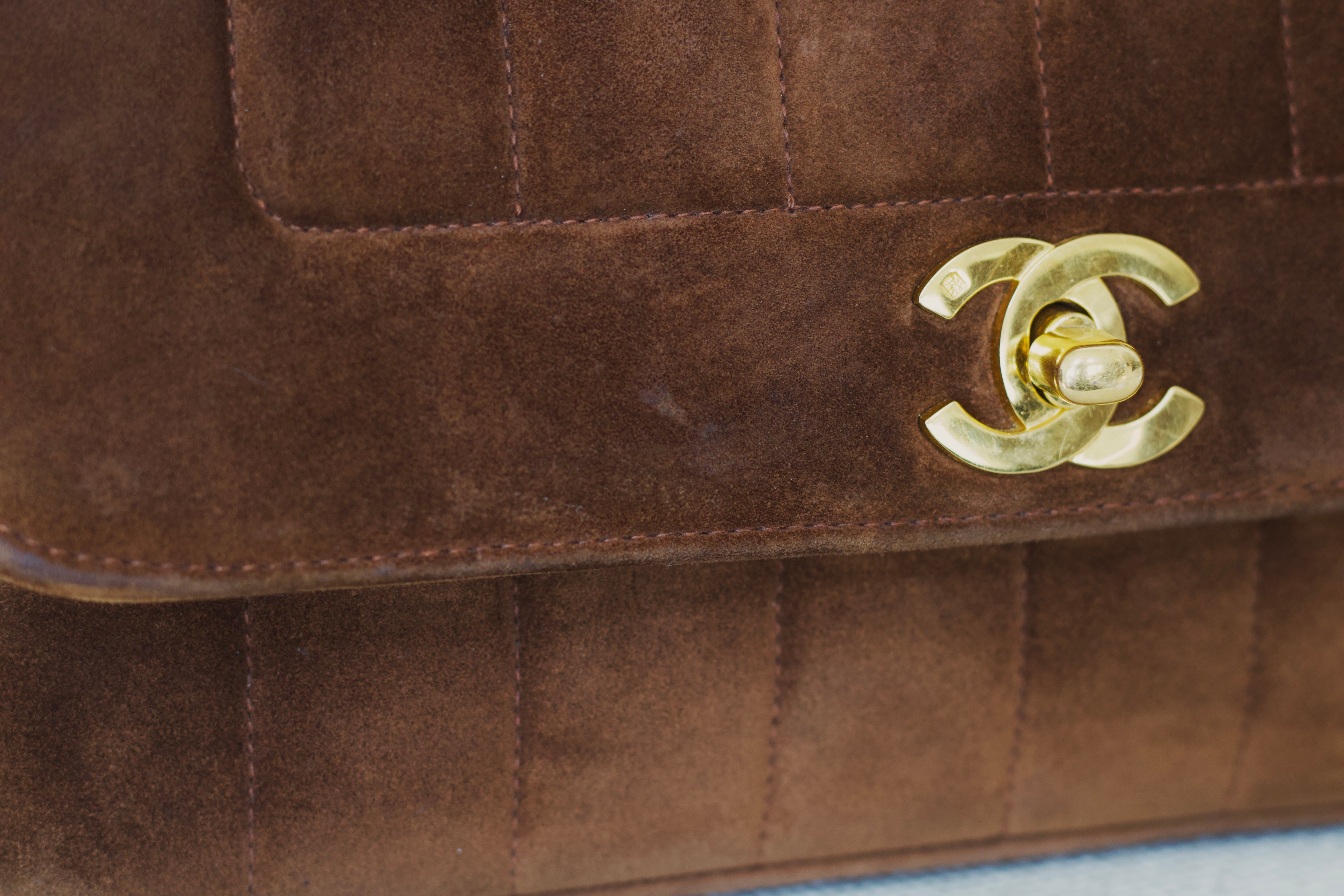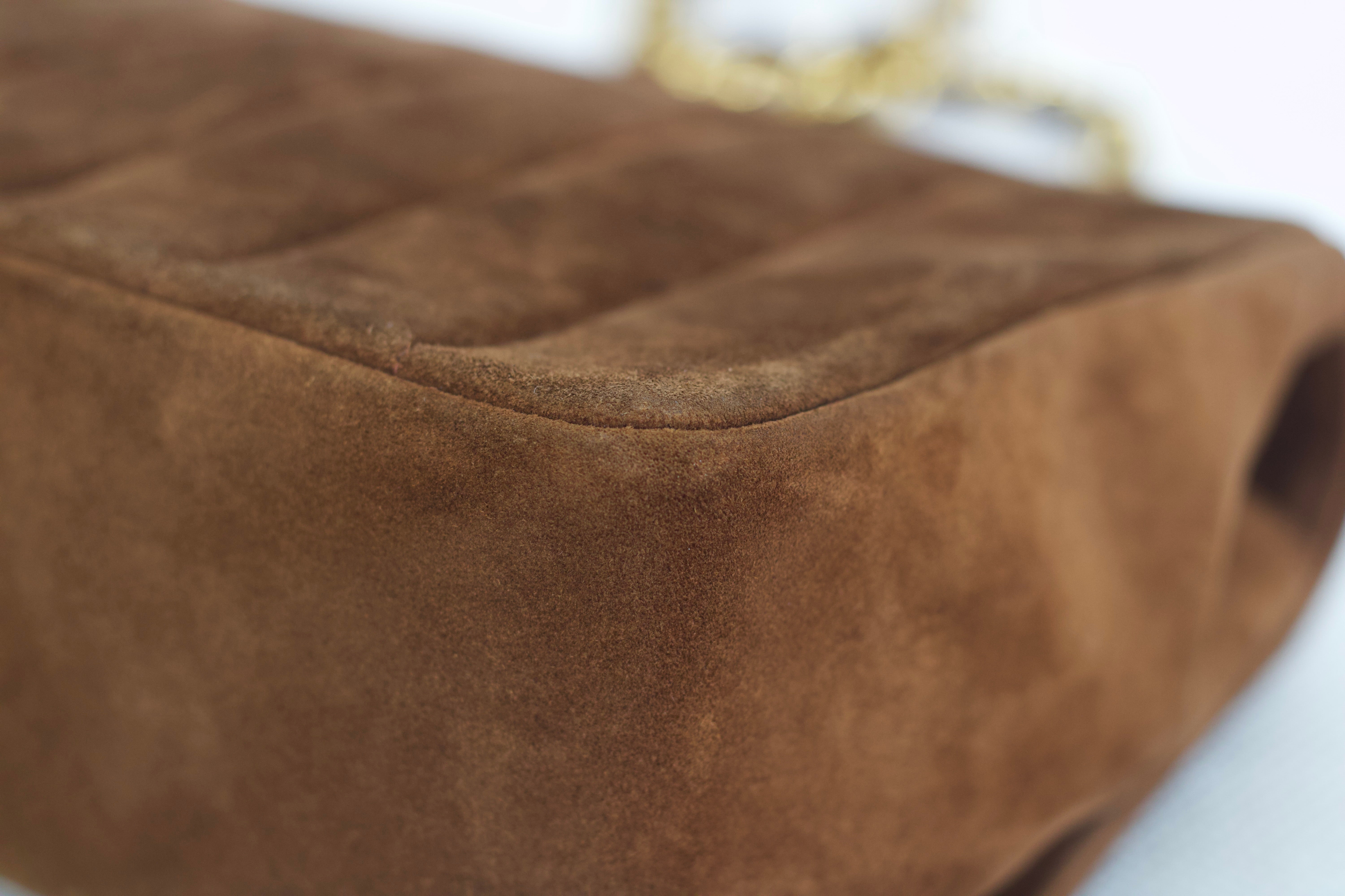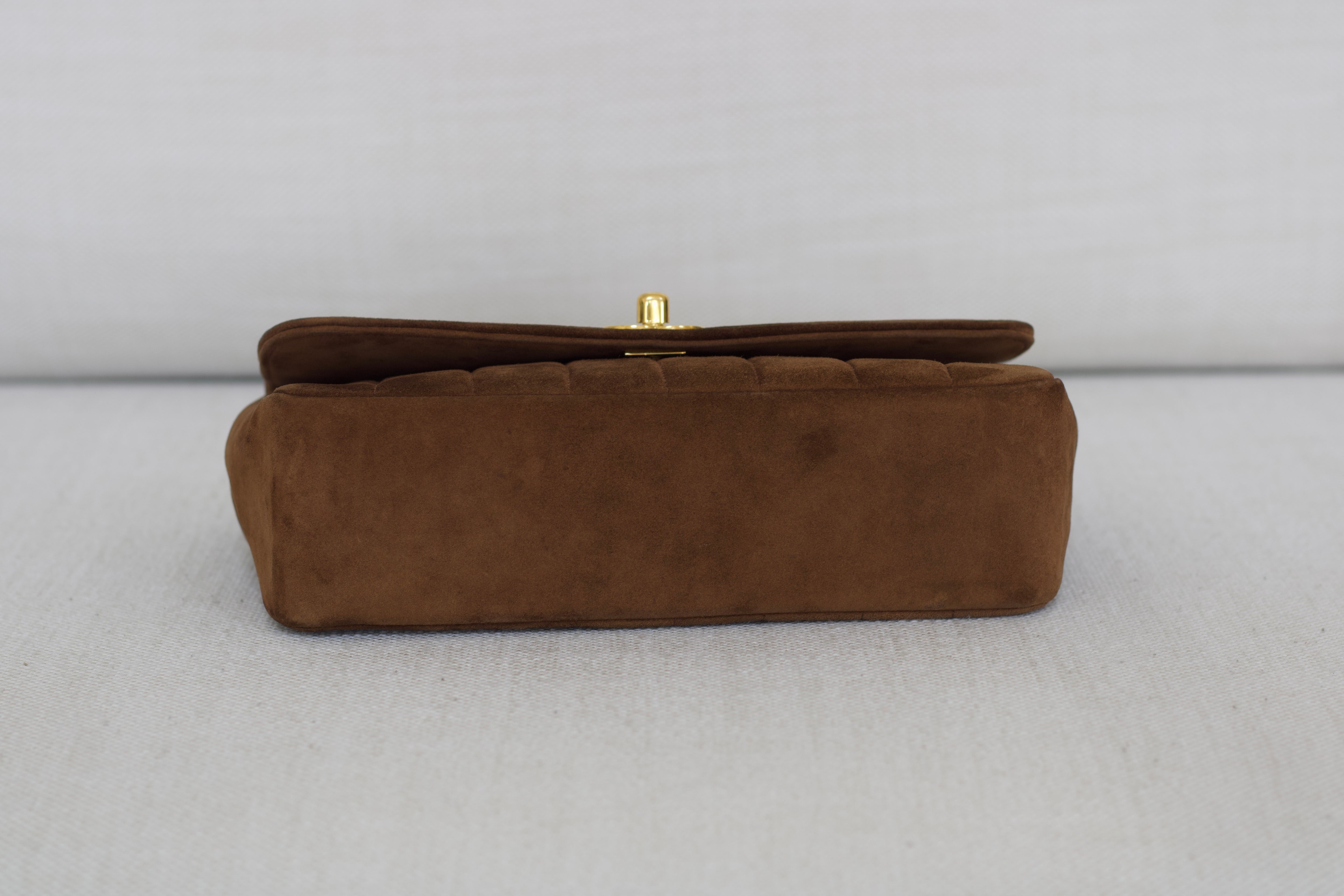 Vintage Chanel Brown Suede Sheepskin Vertical Flap with 24k Gold Hardware