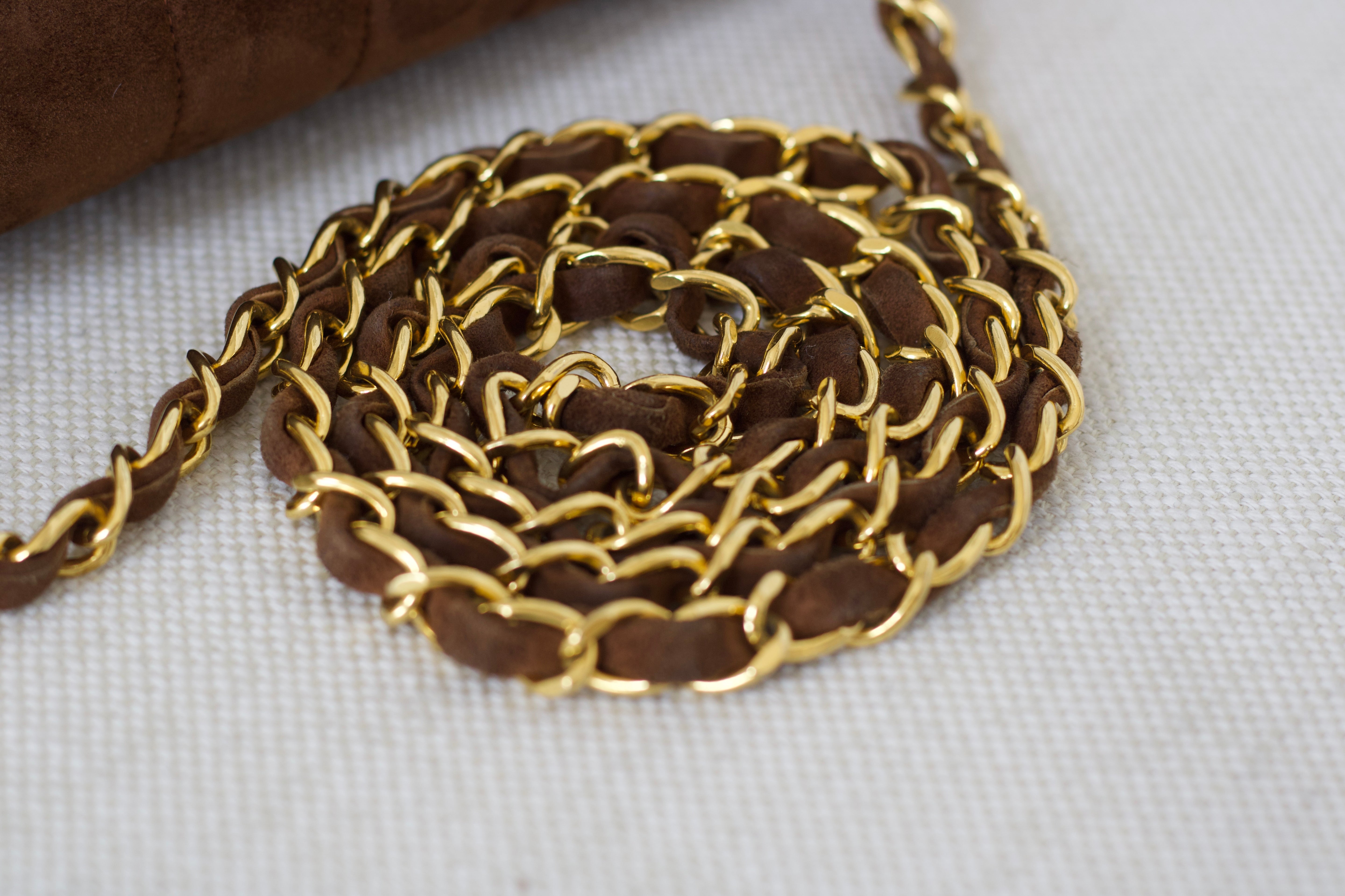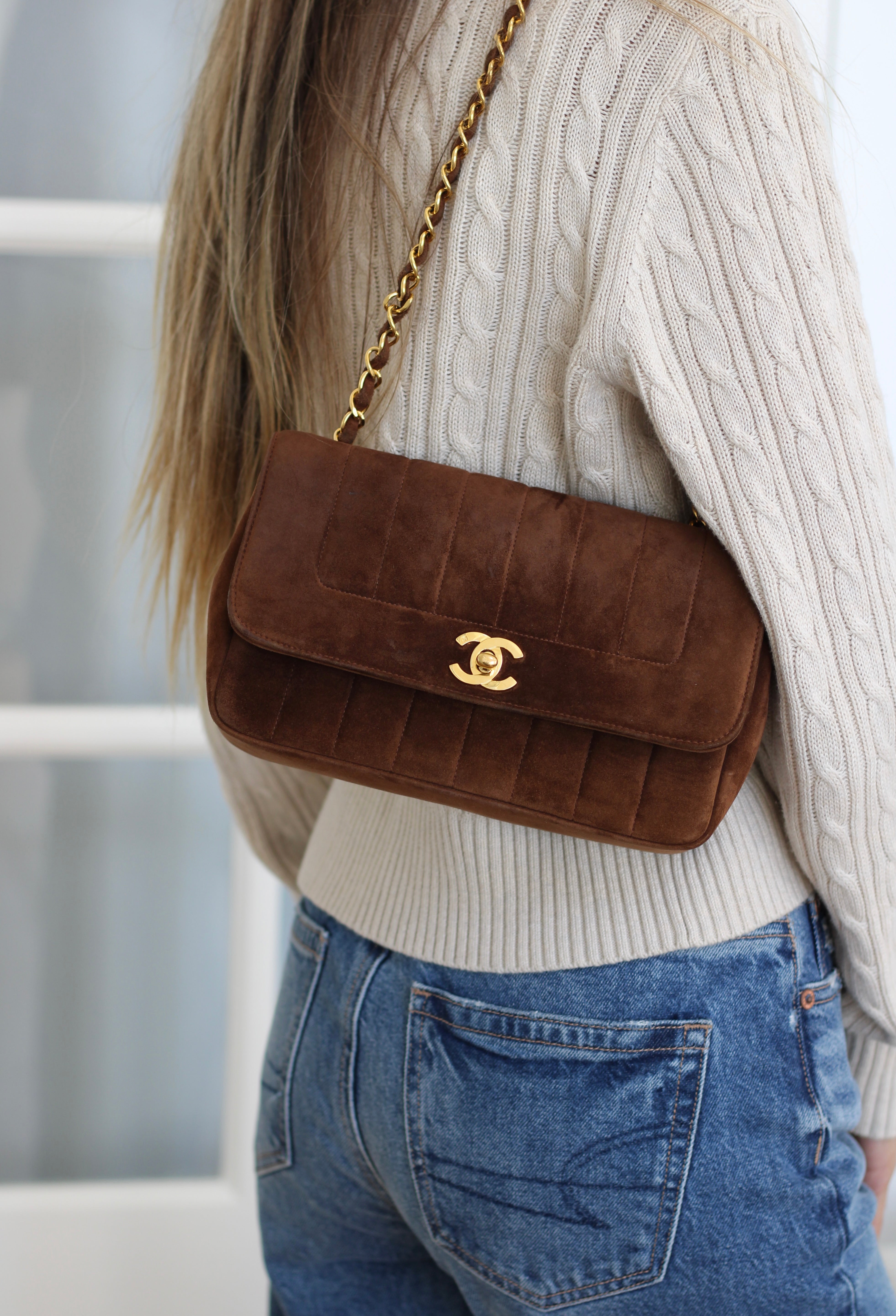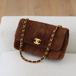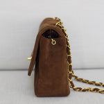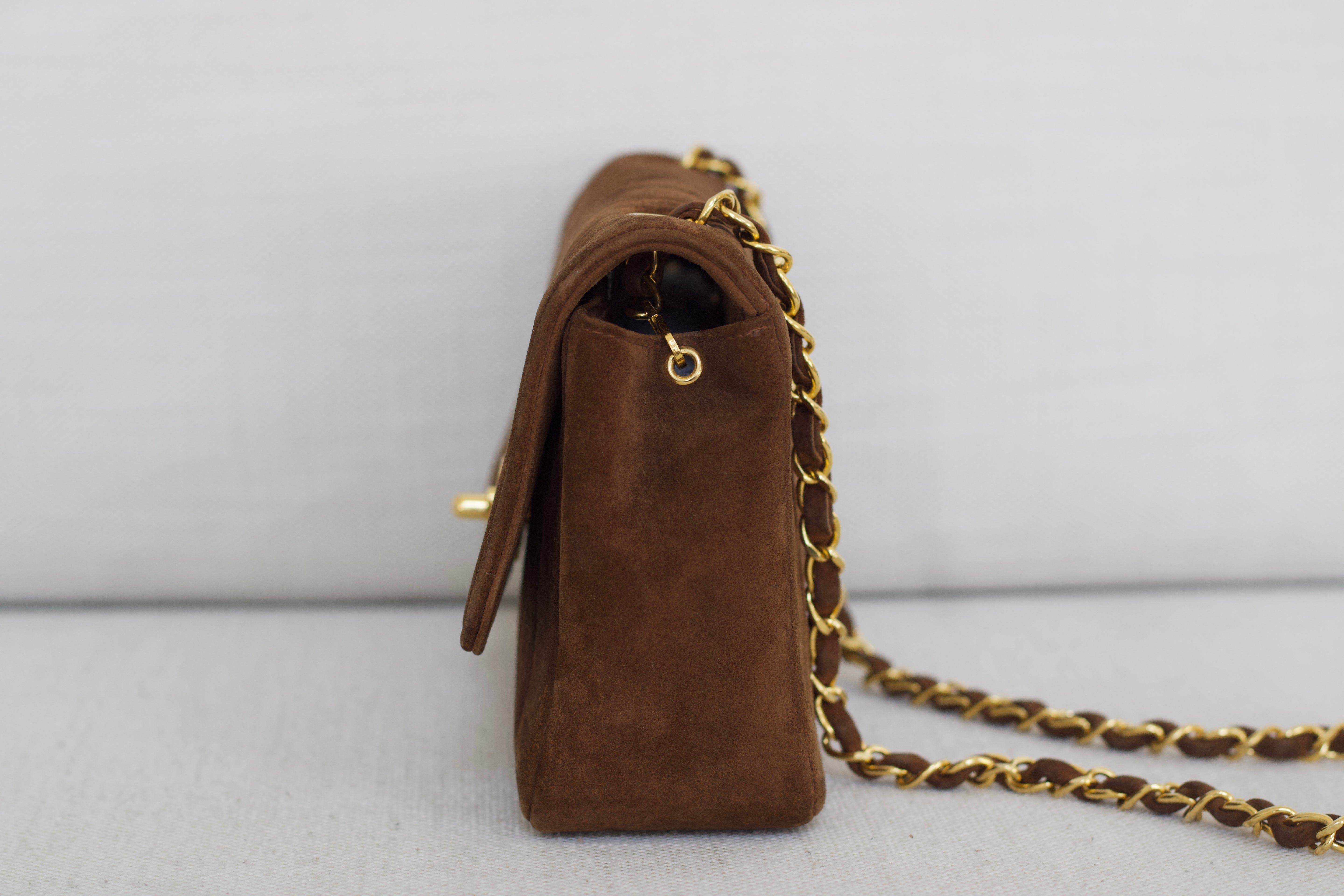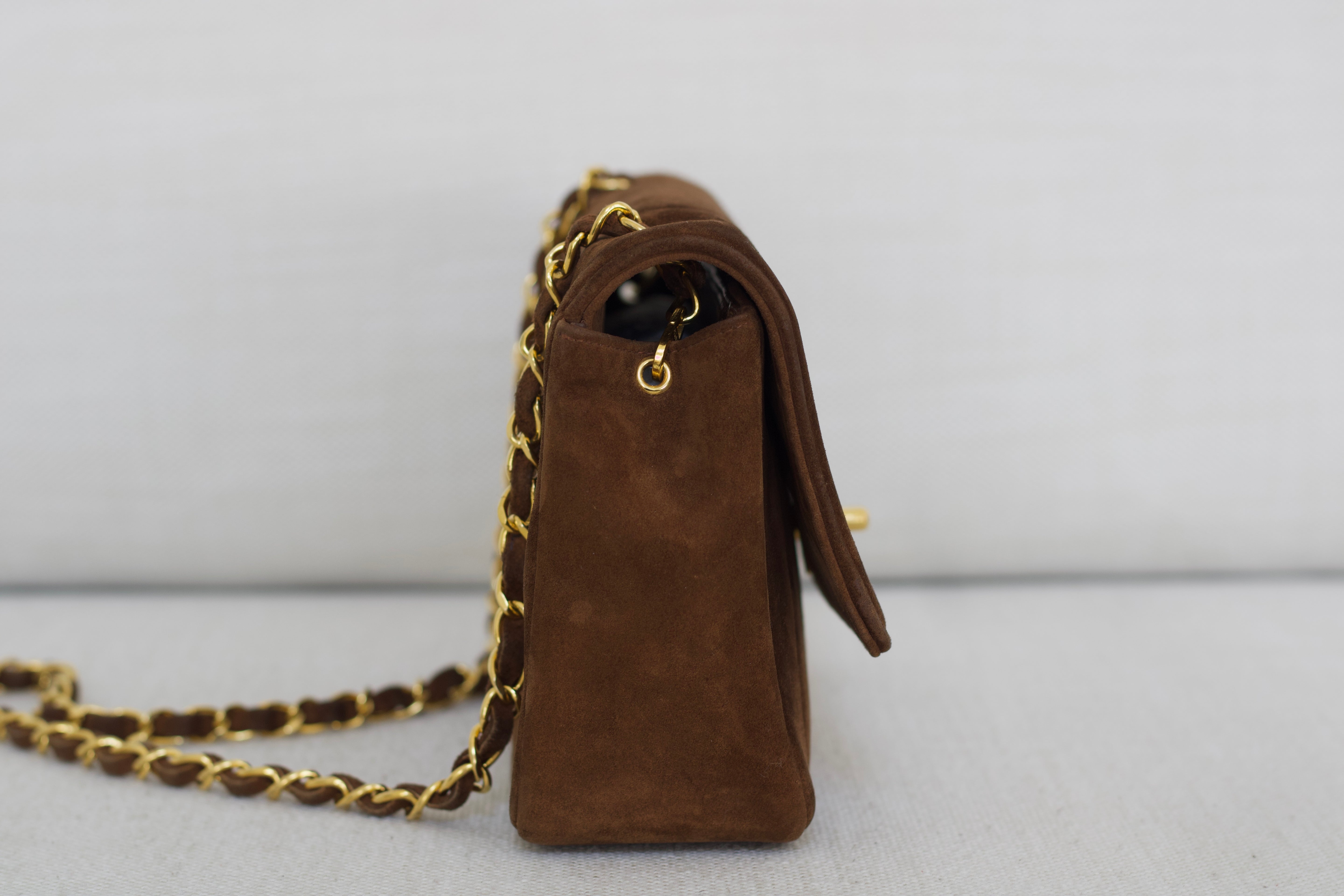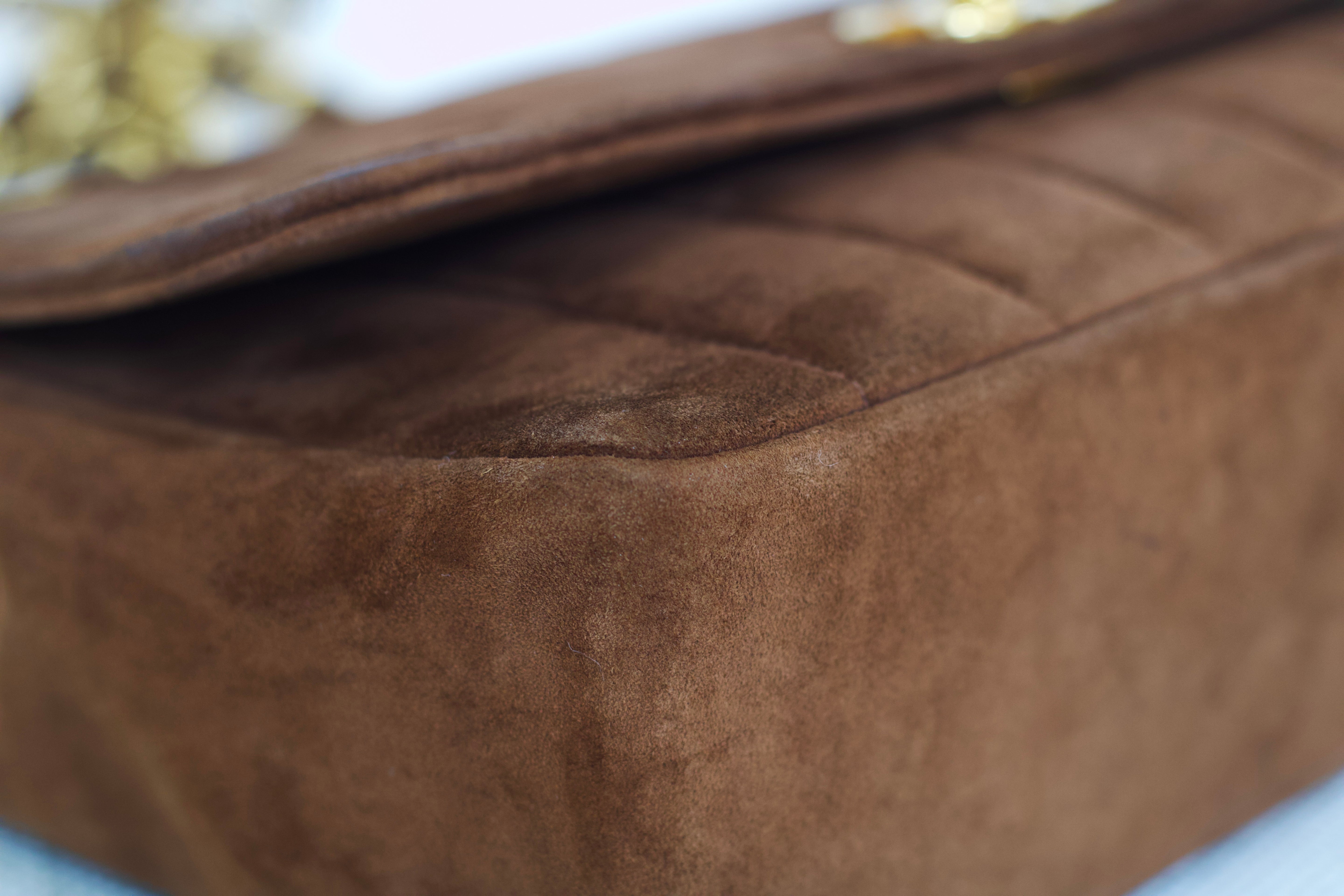 Vintage Chanel Brown Suede Sheepskin Vertical Flap with 24k Gold Hardware