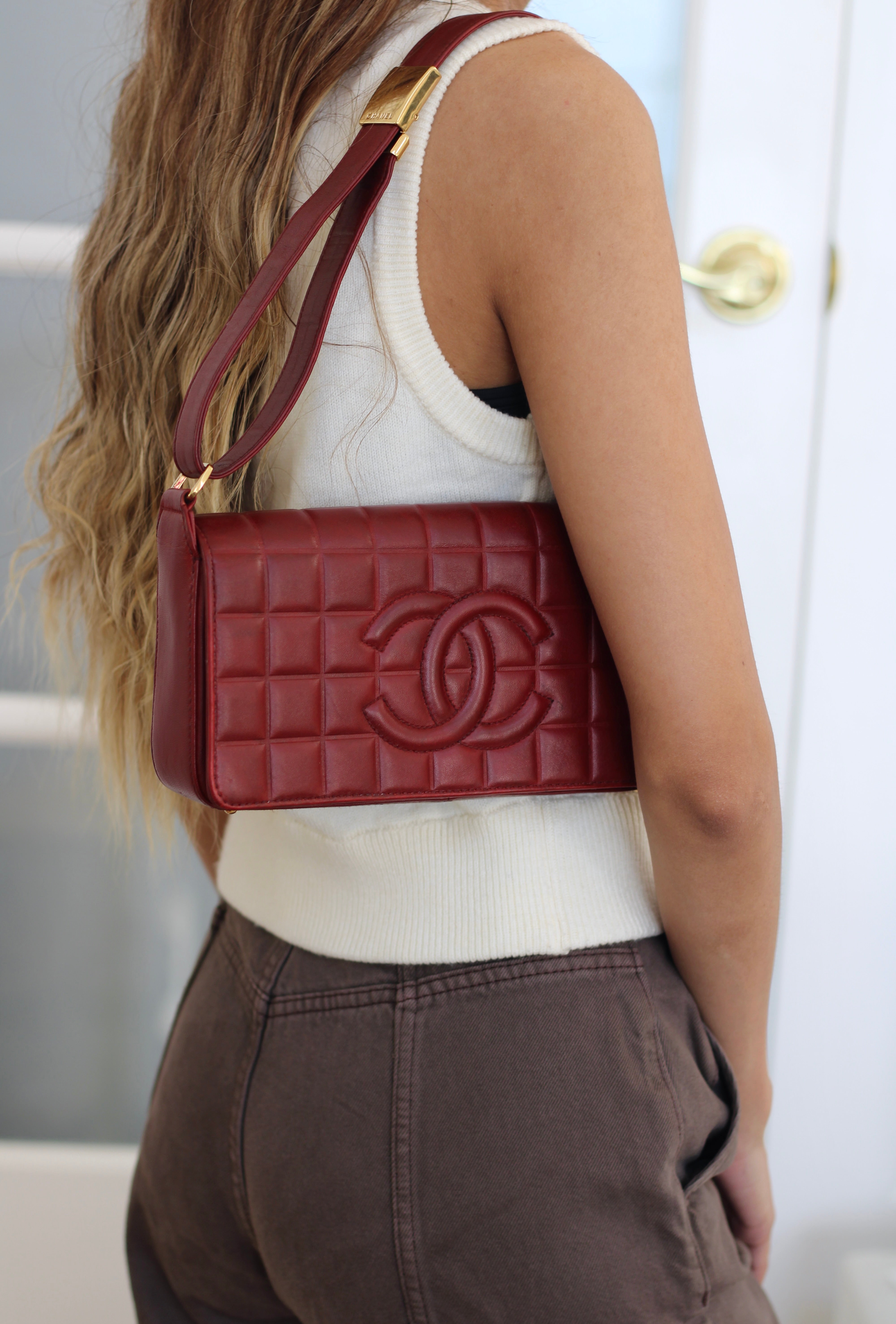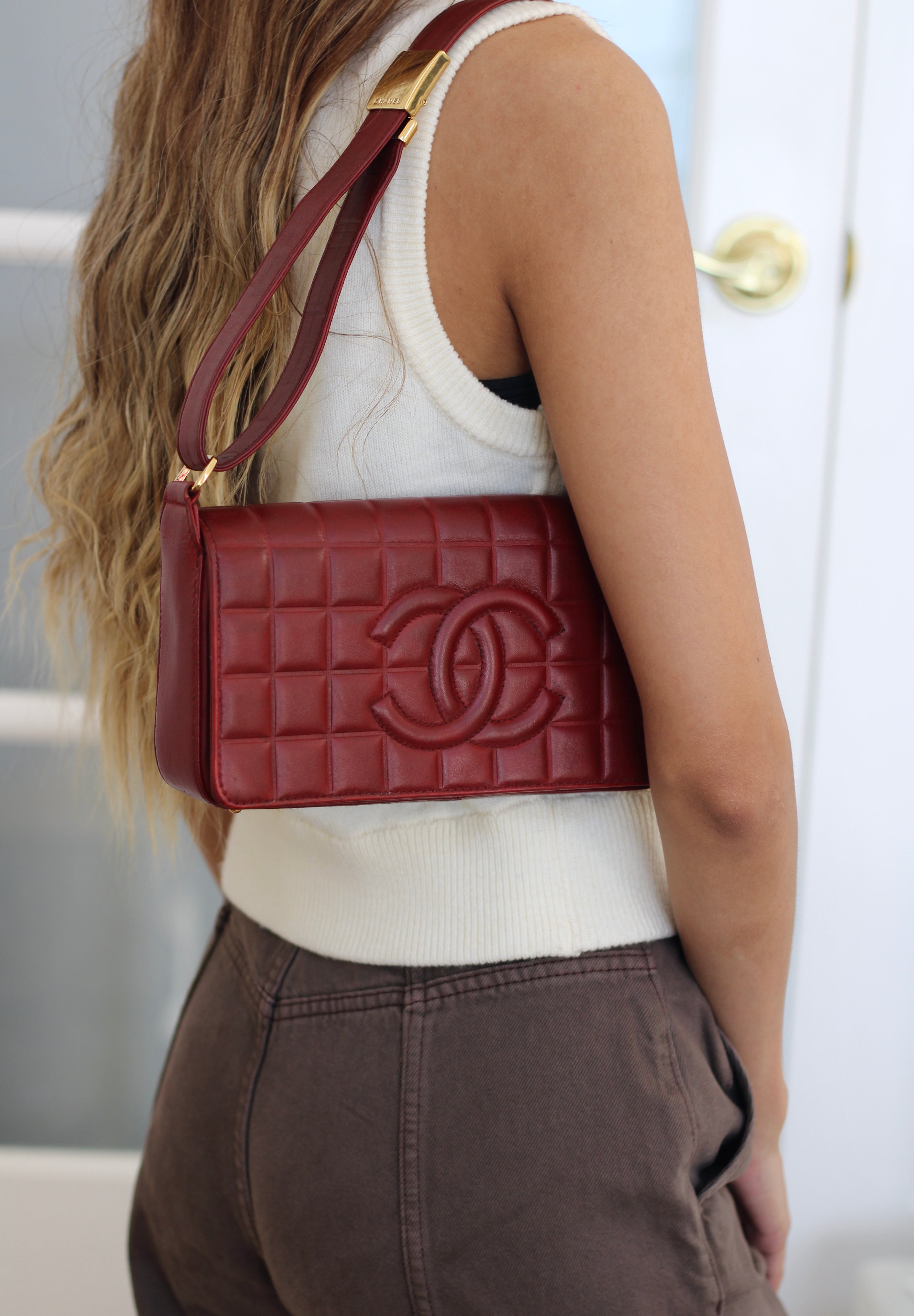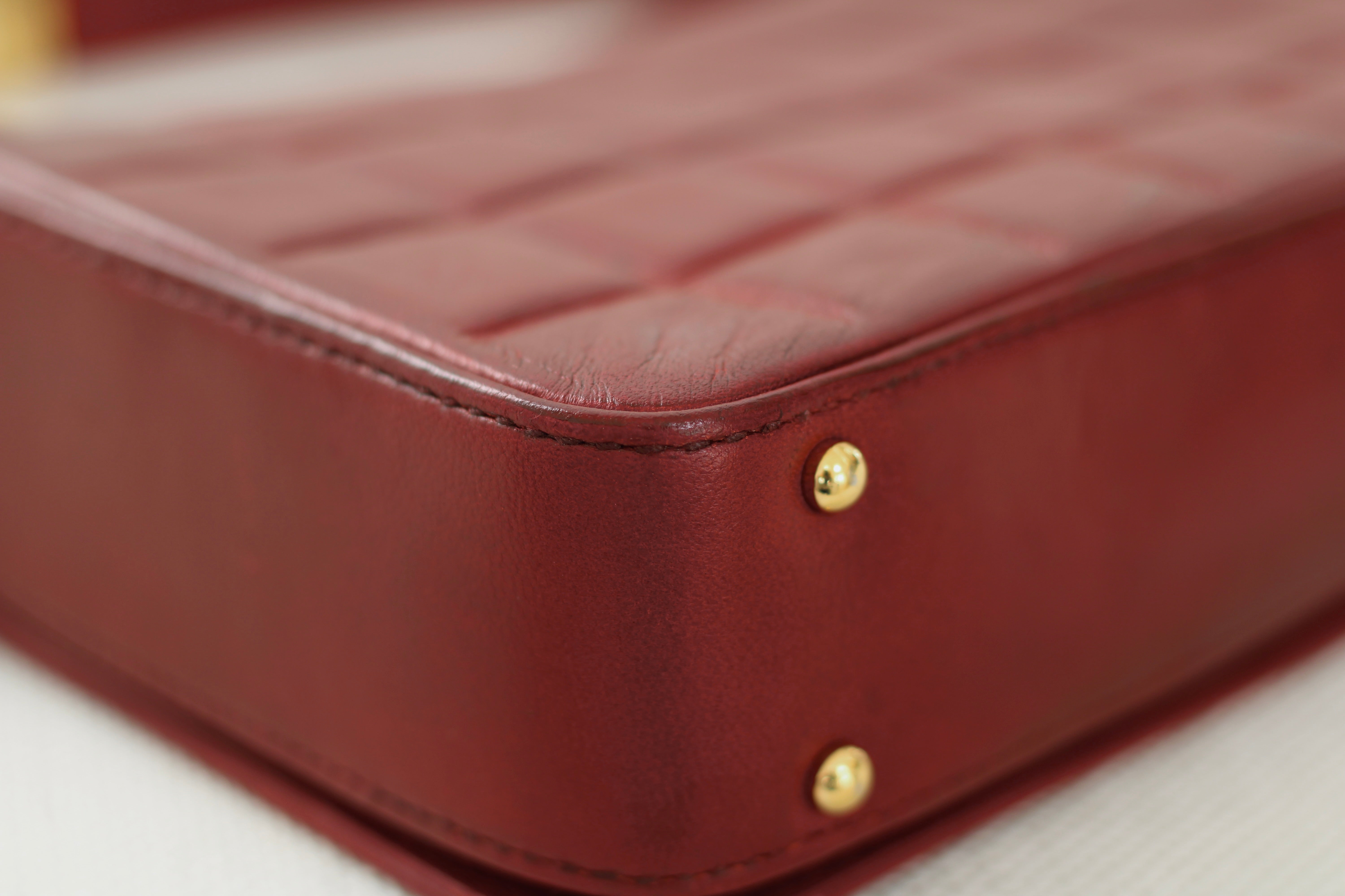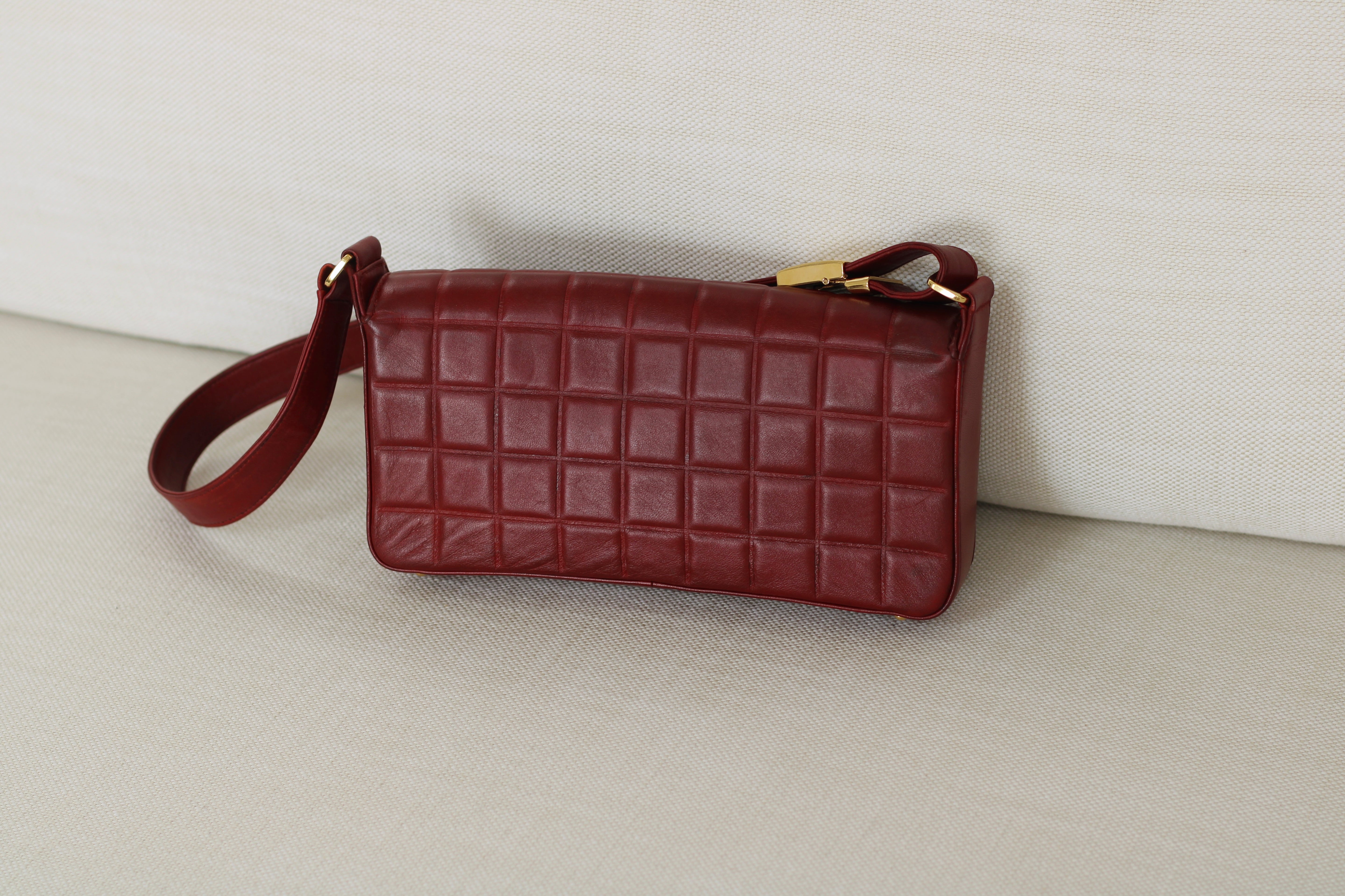 - Rich burgundy shade in the iconic elongated “chocolate bar” quilting