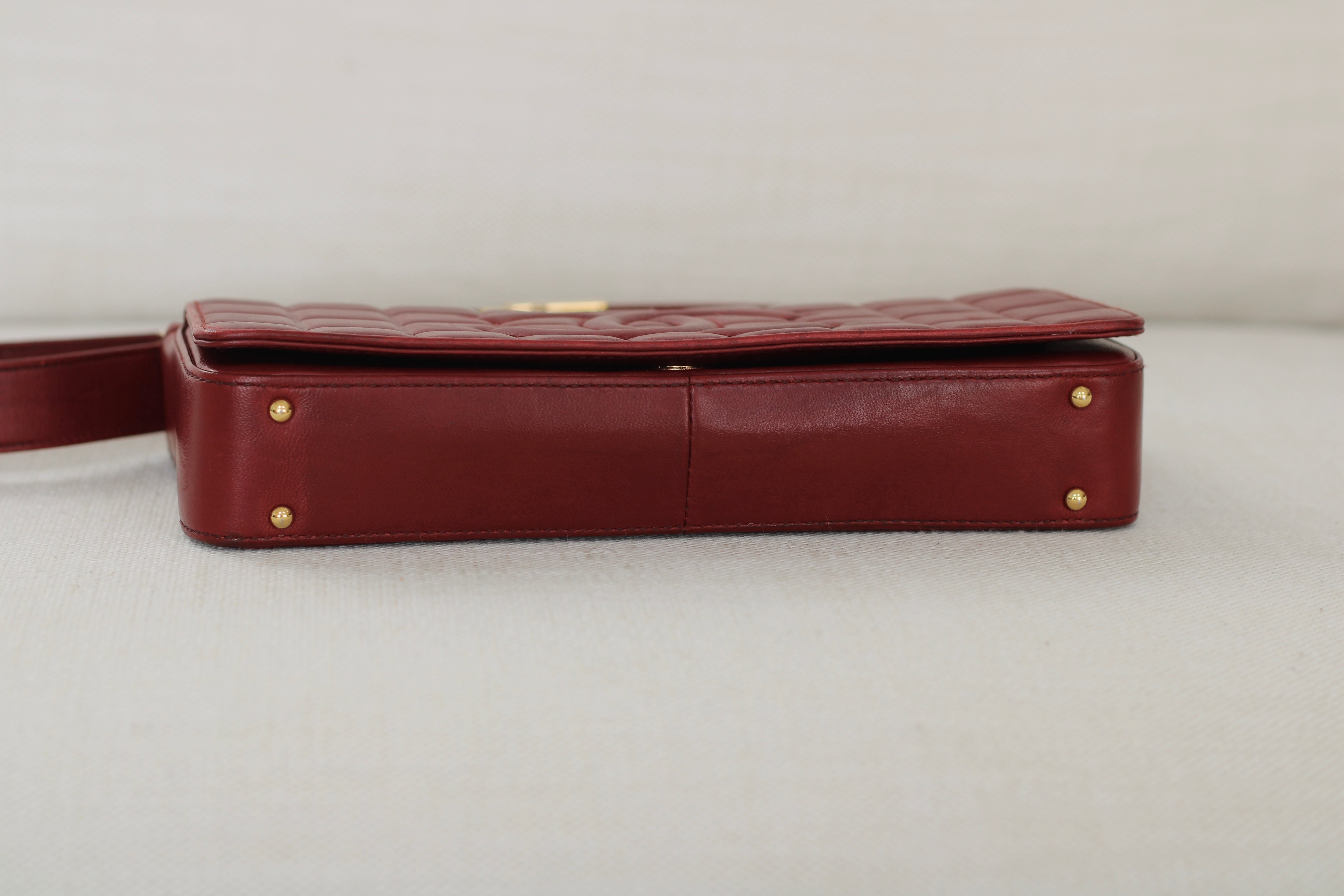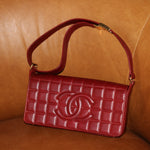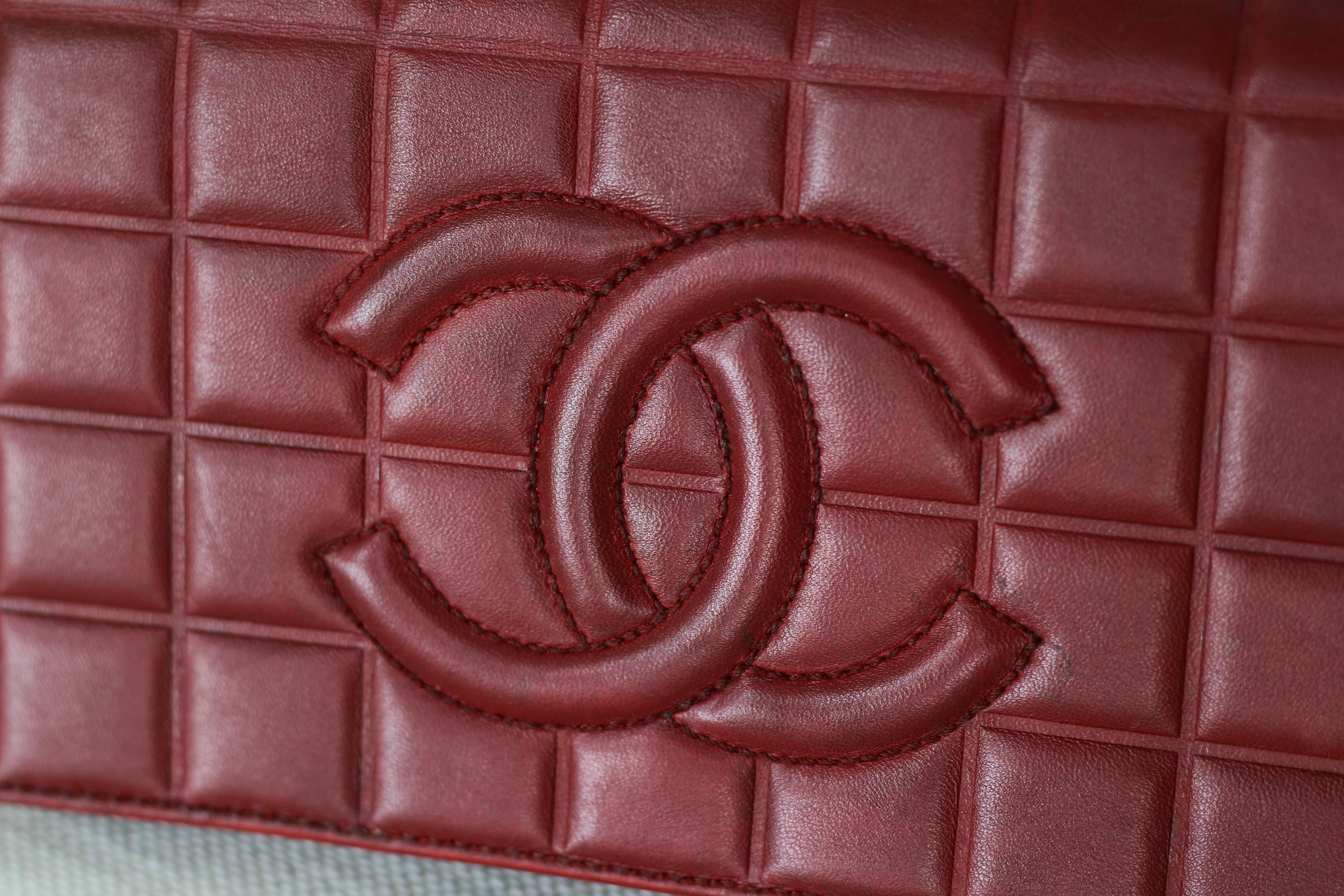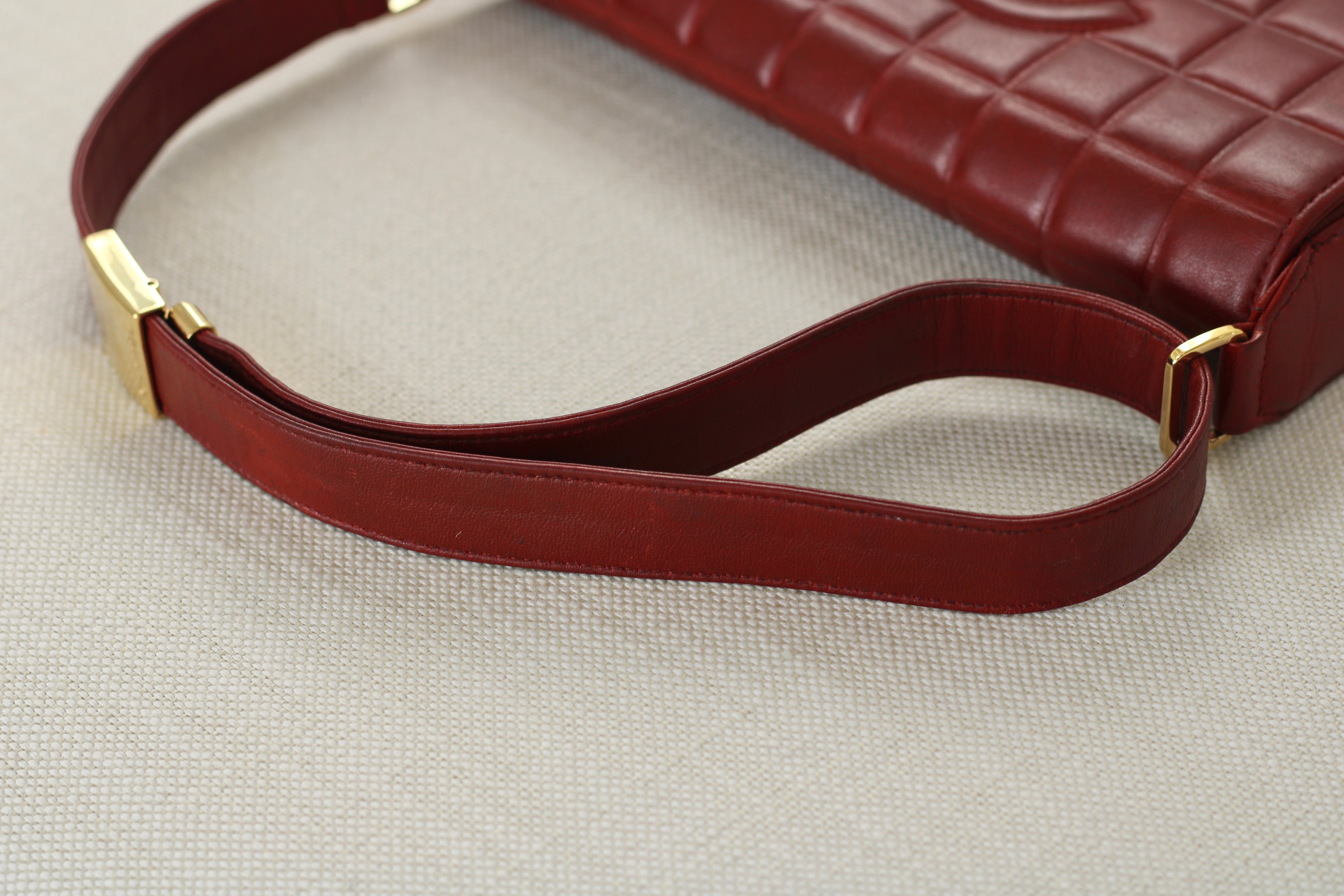 - Rich burgundy shade in the iconic elongated “chocolate bar” quilting